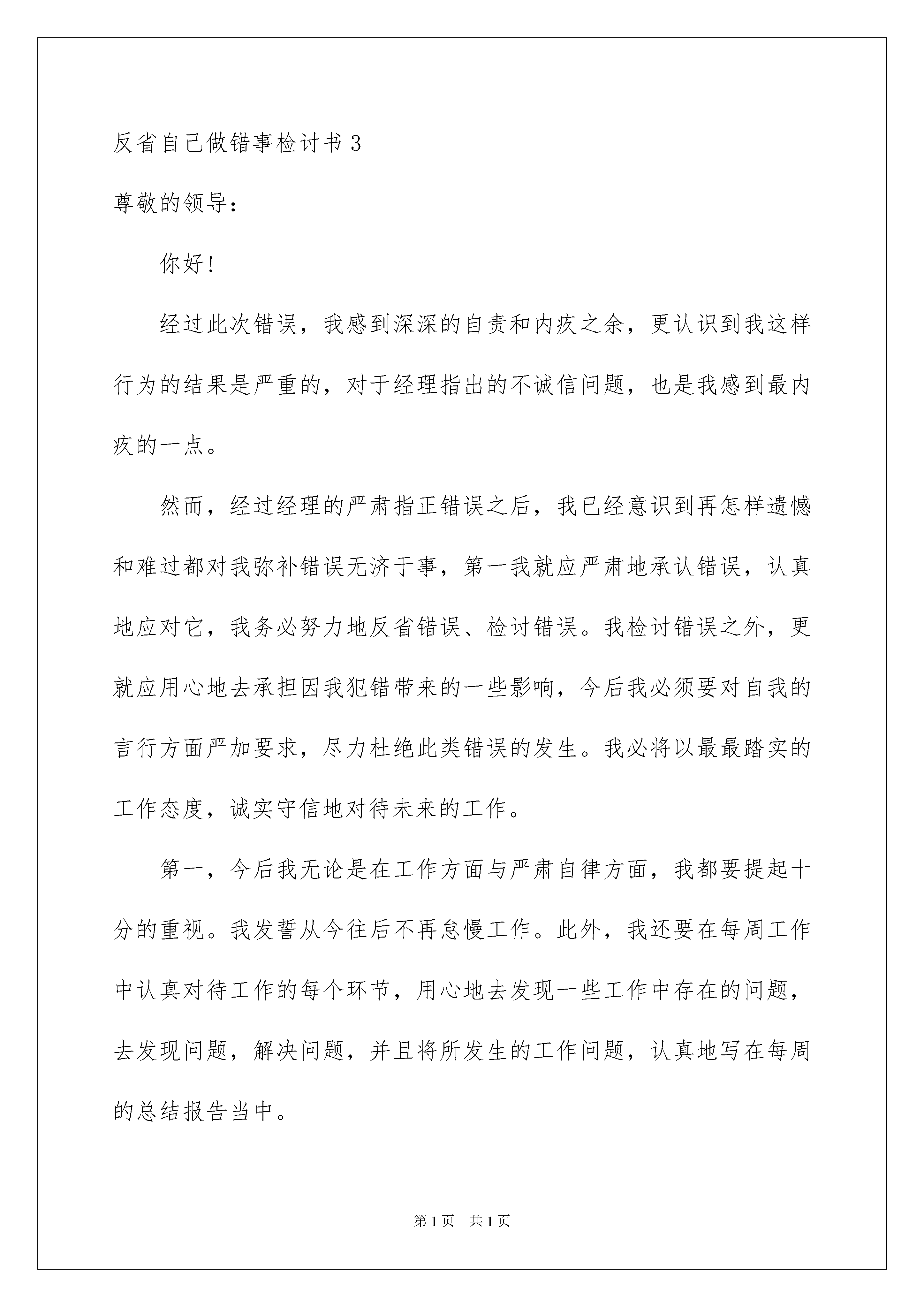 2022反省自己做错事检讨书反省自己做错事检讨书在有过错的情况下,为了避免再犯,我们常常被要求写检讨书,以对出现的问题和过错进行检讨,请注意写检讨书要注意正确的格式。问题来了,检讨书应该怎么写?以下是我为大家收集的反省自己做错事检讨书,仅供参考,大家一起来看看吧。反省自己做错事检讨书1尊敬的校领导、老师:您们好!我在深深的愧疚和不安中度过了漫长的三天,回想起自我进入高中阶段以来的学习和生活,自我这次的犯错并不是偶然的,是长期以来对自我要求不严格,随意放纵自我,自控潜力差的必然结果。在那里我要对关心和爱护我的学校老师、爸爸和妈妈说一声对不起,我错了,我辜负了您们为了我成长所付出的辛劳和情感。自开学以来学校就三令五申,一再强调校规校纪,提醒学生不要违反校规,爸爸妈妈也经常跟我说“做人做事要认真,无论任何时候都要按规定办,不然麻烦事会不断的缠着你”,可我却并没有把学校规定和老师、爸爸妈妈的话放在心上,总是放任自我,我行我素,时不时做一些违规的事,比如在宿舍不认真整理被子、熄火后讲话、上课不认真听讲、不认真按时完成作业等等,MP3,智能手机是学校禁止带回学校的,爸爸妈妈也提醒过我,但是我却一意孤行,坚持要带回学校,而且熄灯以后还听歌。更不就应的是,在受到老师批评教育之后相隔一天,晚上熄灯后又跟同学在宿舍讲话,这就是错上加错,这些严重的过错,不但给自我造成困扰也影响了同学,给班级抹黑也破坏了学校正常的秩序,所以学校和老师对我的处理是我违反校规应得的,我诚恳的理解。透过这三天的深刻反省,我醒悟了很多,似乎找到了自我为什么总是状态不好,成绩跟不上去的原因,自我纪律散漫、心思不正,目标不明,麻麻木木地度日是主要原因,假如再这样下去,我失去的东西将会越来越多,包括自我的欢笑,甚至虚度三年的青春。当我写这份检讨,老师和爸爸妈妈反复教导言犹在耳,严肃认真的表情犹在眼前,我感到很愧对您们,我不求您们的原谅,我要把它当成一个警钟,时刻敲响在脑际,监督我成长中的每一步,我要吸取教训,让它成为我今后学习和生活的动力,为此我保证:今后必须严格要求自我,遵守校规校纪,听老师的话,类似的错误不重犯,不把这次的犯错当成包袱;努力克服不足,抖擞精神投入到下一步的学习生活,不迟到,不早退,上课认真听讲,课后按时、按质、按量完成作业,努力提高学习成绩;维护班级形象,不给班级抹黑,为班级争取荣誉;努力争取做一名优秀学生。检讨虽然是诚意的,但也只是停留纸上,行动才是最主要的,我恳请老师和爸爸妈妈,给予我今后的学习和生活更严格的监督,我会以实际行动回报您们对我的关怀和爱护,绝对不辜负你们的辛劳和期望。反省自己做错事检讨书2尊敬的老师:你好!今天,上晚课语文的时候,我又一次的说话,再一次的犯了错误。所以,我检讨。事情的经过是这样的,今天语文,晚课讲的是卷子,上了半节课,我都没有说话,听到不知道谁说的话,反正挺招笑的,我就笑呵呵的说了两句。可不幸的是,被语文老师听到了,我坐在第一排,被她发现是件很容易的事情。她很生气,说我坐在第一座还说话,非得让我去走廊站着,在我的再三请求下,语文老师让我到前面站着,给了我一次机会。可我却没有珍惜,等到现在失去了这次机会时,才感到后悔莫及,那时,老师正在给我们丰富语文知识,讲诗圣、诗魔之类的。当讲到诗史的时候,我就冒出了两个字的粗话,仅这两个字,又被语文老师听到了。虽然她没有听到我讲的内容是什么,但十分肯定的说我说了与课堂无关的话题,非得让我出去站着,经过我的再三请求,语文老师还是坚持着她的原则,最后要去找班任柯老师,我也感到十分的后悔,老师给的机会不去珍惜,最后,闹的事情这么严重。我上课说话,不是一次两次了,谢谢老师给我一次次改过的机会,可是,上课说话,已经在我上初中的时候就已经形成了,所以,改起来,也不是一天,两天就能够改掉的,但我可以肯定的是,现在上课的时候,我已经克制了自己不去说那些十分无聊的话,但是,虽然现在有时候还会说,不过我真的是已经用心去改掉他们了,所以,请老师再给我一些机会。慢慢地改掉它们,只有这样,在学习上,才能够更加用心的去学,学的自然也会扎实。反省自己做错事检讨书3尊敬的领导:你好!经过此次错误,我感到深深的自责和内疚之余,更认识到我这样行为的结果是严重的,对于经理指出的不诚信问题,也是我感到最内疚的一点。然而,经过经理的严肃指正错误之后,我已经意识到再怎样遗憾和难过都对我弥补错误无济于事,第一我就应严肃地承认错误,认真地应对它,我务必努力地反省错误、检讨错误。我检讨错误之外,更就应用心地去承担因我犯错带来的一些影响,今后我必须要对自我的言行方面严加要求,尽力杜绝此类