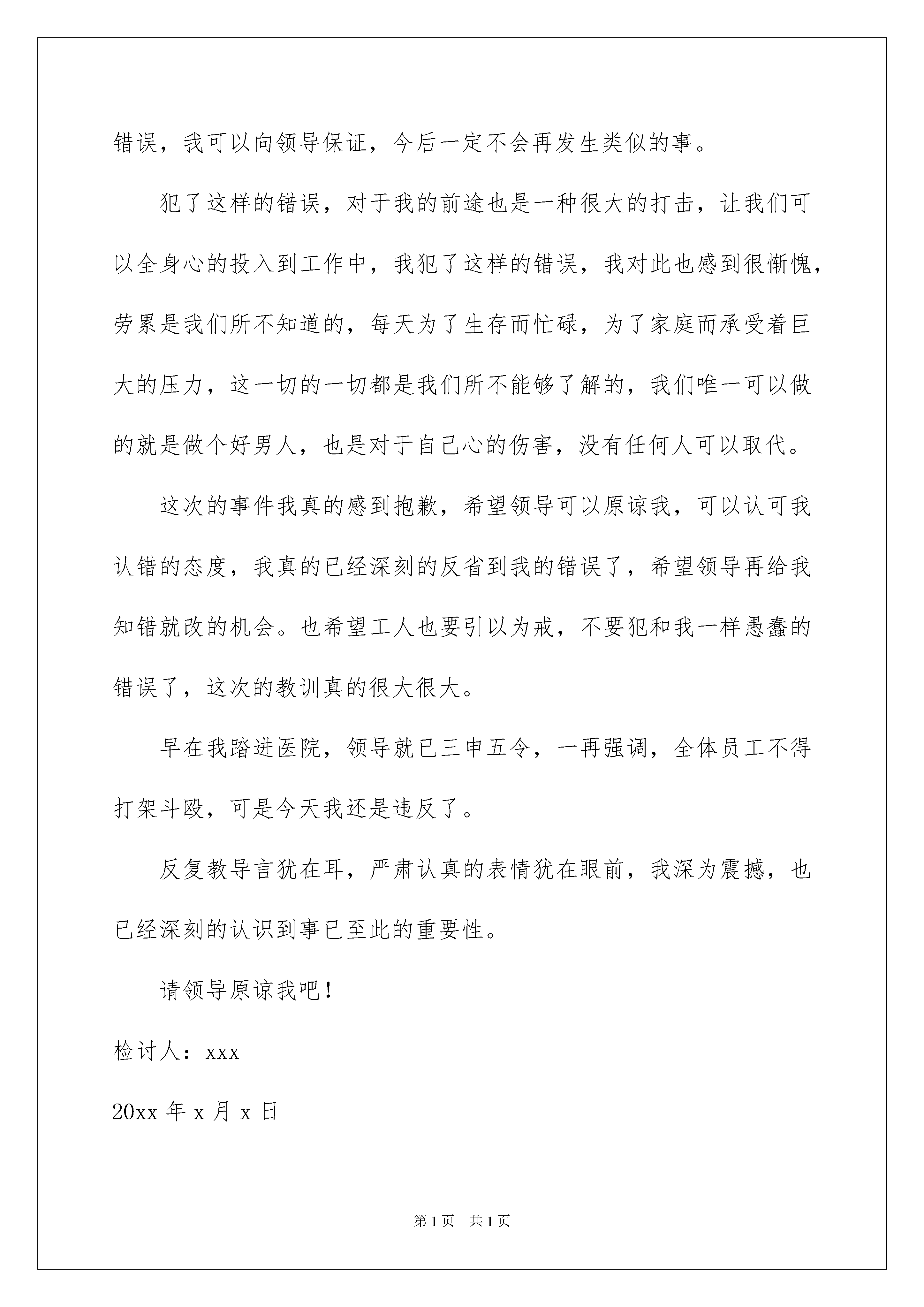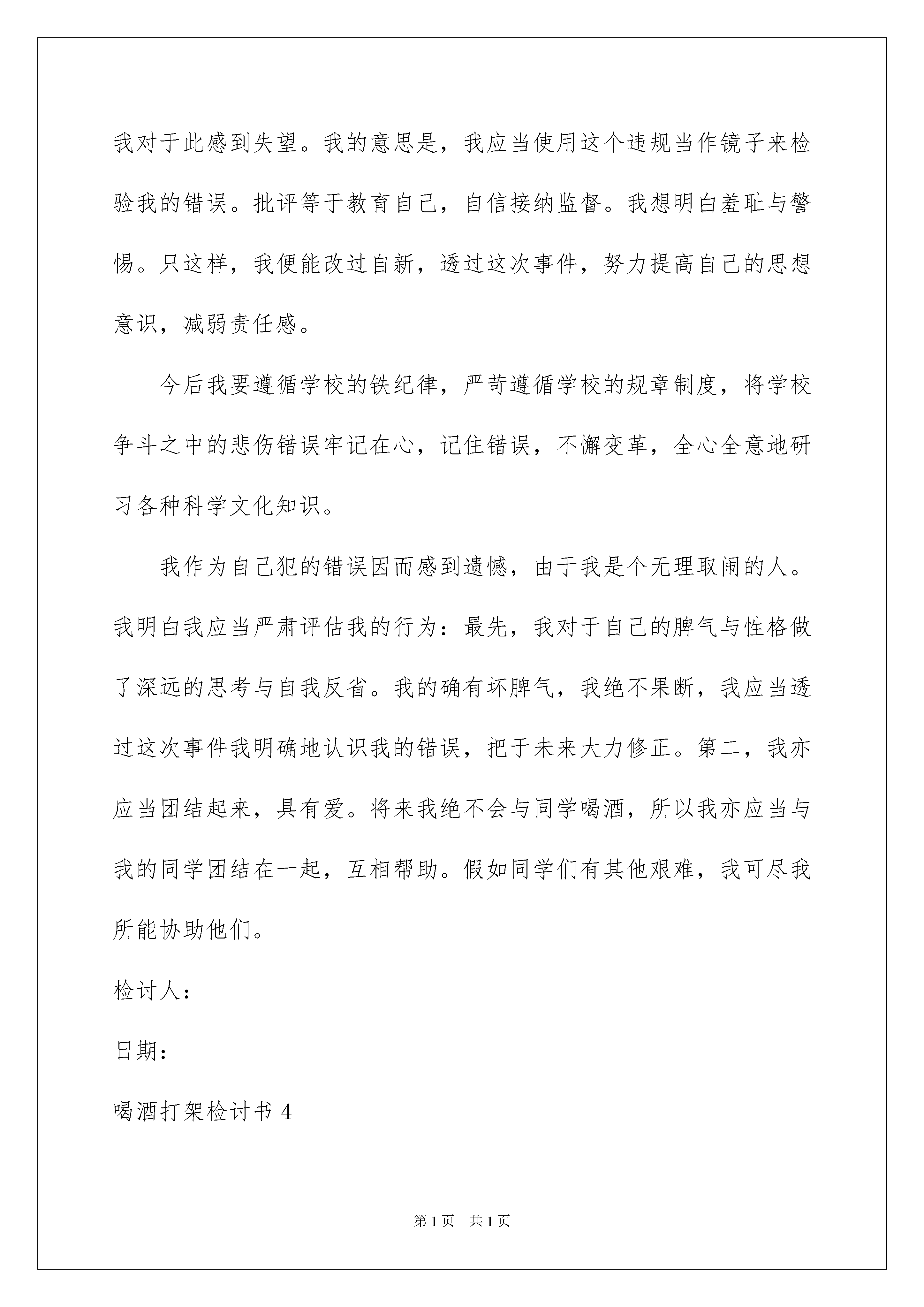 2022喝酒打架检讨书10篇喝酒打架检讨书我们在犯错后,避免再次犯错,往往被要求写检讨书来自我反思,写检讨书是为了能够不断提醒自己。问题来了,检讨书应该怎么写?下面是我精心整理的喝酒打架检讨书,希望能够帮助到大家。喝酒打架检讨书1尊敬的xx领导:您好!今天,我怀着愧疚和懊悔给您写下这份检讨书,以向您表示我对喝酒打架这种不良行为的深刻认识,以及再也不喝酒打架的决心这是一次十分深刻的检查,我对于我这次犯的错误感到很惭愧,我真的不应该喝酒之后打架,我不应该违背规定,我们作为工人就应该完全的听从领导的话,而我这次没有很好的重视到。我感到很抱歉,我希望领导可以原谅我的错误,我这次的悔过真的很深刻。相信领导看到我的这个态度也可以知道我对这次的事件有很深刻的悔过态度,我这样如此的重视这次的事件,希望领导可以原谅我的错误,我可以向领导保证,今后一定不会再发生类似的事。犯了这样的错误,对于我的前途也是一种很大的打击,让我们可以全身心的投入到工作中,我犯了这样的错误,我对此也感到很惭愧,劳累是我们所不知道的,每天为了生存而忙碌,为了家庭而承受着巨大的压力,这一切的一切都是我们所不能够了解的,我们唯一可以做的就是做个好男人,也是对于自己心的伤害,没有任何人可以取代。这次的事件我真的感到抱歉,希望领导可以原谅我,可以认可我认错的态度,我真的已经深刻的反省到我的错误了,希望领导再给我知错就改的机会。也希望工人也要引以为戒,不要犯和我一样愚蠢的错误了,这次的教训真的很大很大。早在我踏进医院,领导就已三申五令,一再强调,全体员工不得打架斗殴,可是今天我还是违反了。反复教导言犹在耳,严肃认真的表情犹在眼前,我深为震撼,也已经深刻的认识到事已至此的重要性。请领导原谅我吧!检讨人:xxx20xx年x月x日喝酒打架检讨书2尊敬的xx:首先,我要向公司领导表示诚挚的歉意。由于我愚蠢的行为给公司带来了不必要的麻烦,触犯了公司的铁律,也深刻认识到自己所犯错误的严重性,对自己所犯的错误感到了羞愧。在xx月xx日周x时,我和我们经理及泉南的同事在一起吃饭,由于一点小事争执起来,我知道这次是我的错,思想觉悟不高,当时都喝了点酒,情绪有点激动,才有了过激的行为。这次犯错误自己想了很多东西反省了很多的。事情,虽然是周日不上班,但有其他同事在场。事后我冷静的想了很久我这次犯的错误不仅给自己带来了麻烦耽误自己的工作。而且我这种行为给公司里也造成了坏的影响,破坏了公司里的管理制度,在同事们中间也造成了不良的影响。我已经意识到自己犯了很严重错误,我知道,无论是对公司还是对个人造成如此坏的影响,我应该为自己犯的错误付出代价,我知道在此错误中应负不可推卸的主要责任,并愿意接受公司给予的处理。我真诚地接受批评特此再次检讨。向领导保证以后不在发生类似事件。我已经对经理和同事们正式道歉了,对于这一切我还将进一步深入总结深刻反省恳请公司领导相信我能够吸取教训、改正错误在今后的工作中我一定踏踏实实做工作,积极完成公司领导安排的各项工作任务。检讨人:XX20xx年xx月xx日喝酒打架检讨书3尊敬的老师:您好!抱歉!这次我于学校喝酒的事。我原则之上犯了一个严重的错误。我明白学生绝不能参与喝酒,我的老师对于我的错误非常高兴。我亦明白,一个学生绝不应当违背学校的规定,纪律,应当努力学习,做自己的工作。这是一项基本上责任,亦是最为基本上的义务。但是我连最为基本上的东西均做绝不出。现在我犯了一个小错误,我对于此感到失望。我的意思是,我应当使用这个违规当作镜子来检验我的错误。批评等于教育自己,自信接纳监督。我想明白羞耻与警惕。只这样,我便能改过自新,透过这次事件,努力提高自己的思想意识,减弱责任感。今后我要遵循学校的铁纪律,严苛遵循学校的规章制度,将学校争斗之中的悲伤错误牢记在心,记住错误,不懈变革,全心全意地研习各种科学文化知识。我作为自己犯的错误因而感到遗憾,由于我是个无理取闹的人。我明白我应当严肃评估我的行为:最先,我对于自己的脾气与性格做了深远的思考与自我反省。我的确有坏脾气,我绝不果断,我应当透过这次事件我明确地认识我的错误,把于未来大力修正。第二,我亦应当团结起来,具有爱。将来我绝不会与同学喝酒,所以我亦应当与我的同学团结在一起,互相帮助。假如同学们有其他艰难,我可尽我所能协助他们。检讨人:日期:喝酒打架检讨书4尊敬的领导:首先,我要向公司领导表示诚挚的歉意。由于我愚蠢的行为给公司带来了不必要的麻烦,触犯了公司的铁律,也深刻认识到自己所犯错误的严重性,对自己所犯的错误感到了羞愧。在8月10日周日时,我和我们经理及泉南的同事在一起吃饭,由于一点小事争