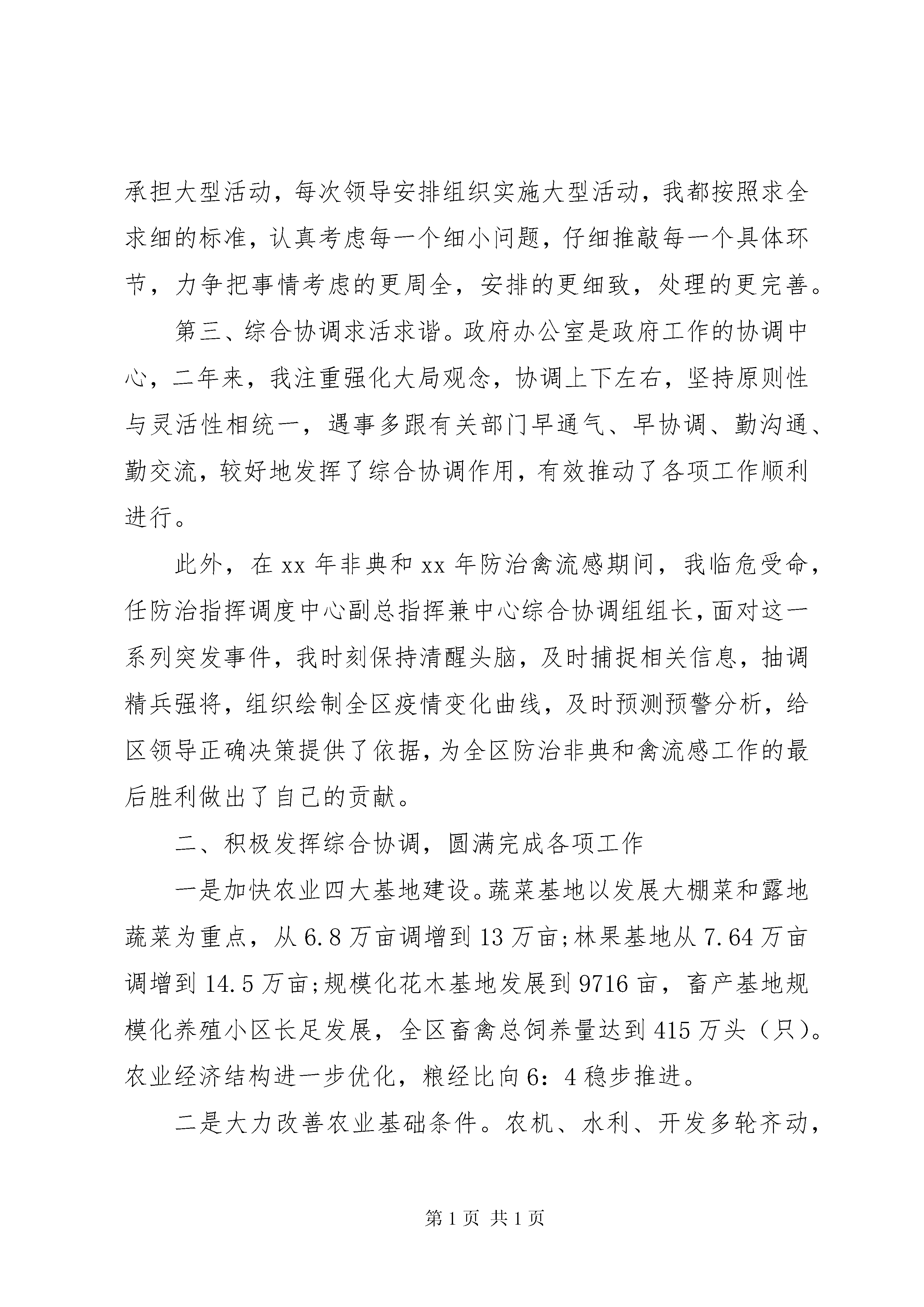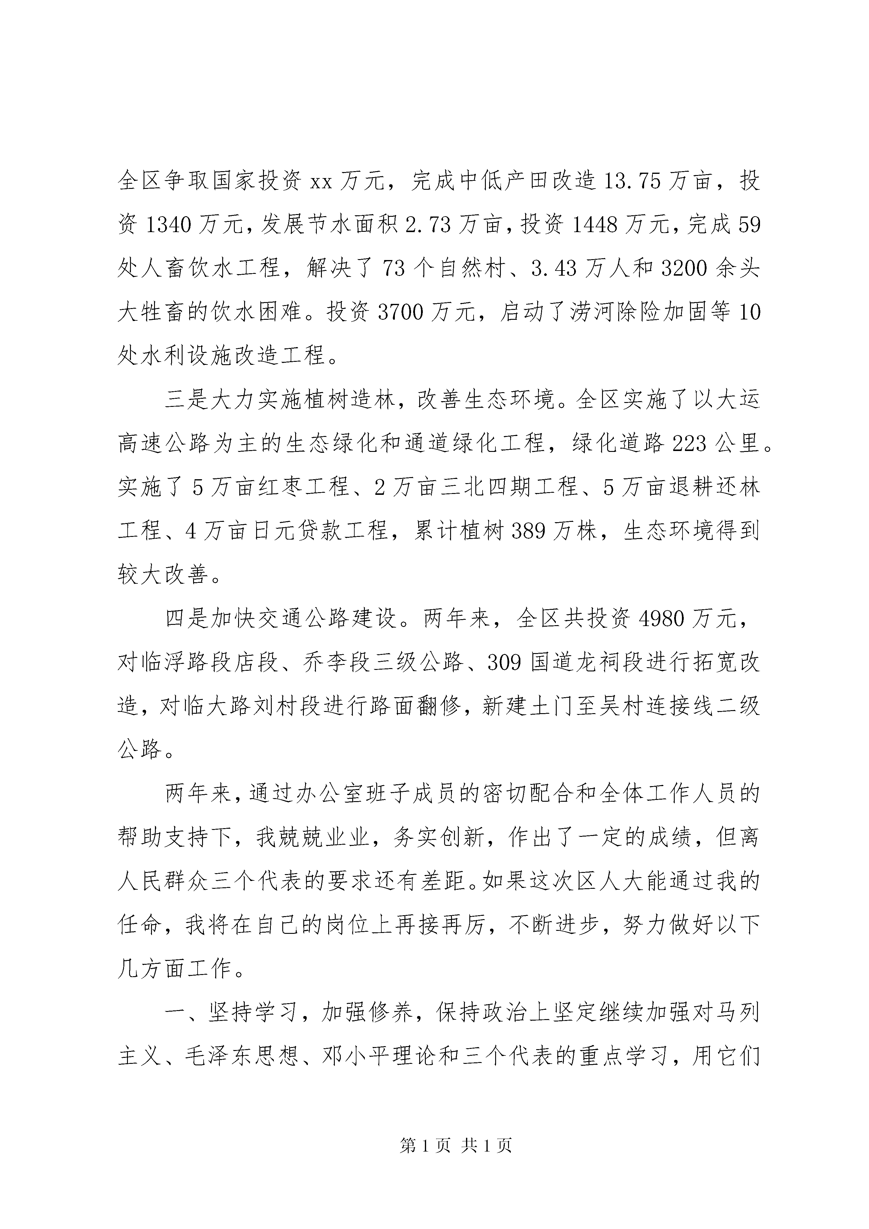 关于办公室主任就职演讲稿范文主任、副主任、各位委员:我是区六届人大常委会第26次会议上被任命为区政府办公室主任的。同时,按照分工协管农林、水利、民政、畜牧、林业、农机、交通、计划生育等工作。两年来,在区委、政府的下直接领导下,在人大各位主任、委员的监督支持下,我紧紧围绕政府中心工作思路,紧密团结政府办全体同志,认真履行参谋、协调、服务三大职责,坚持励精图治,务实高效,全力搞好工作。下面我将两年来的工作情况和下一步打算向各位主任、委员作具体汇报,请大家批评、指正,并提出宝贵意见。一、勤政务实,依法行政,努力搞好本职工作近年来,我紧紧围绕协调服务作用的发挥,以增强工作效率、服务质量、协调能力为突破口,科学安排,从严要求,使办公室办文、办会、办事水平明显提高。首先,周到细致办文办会。文件和会议是实施政令、推动工作的重要手段。政府出台的的美意各文件都事关大局,在办文过程中,我坚持高要求、高质量、高效率,严格把关,一丝不苟,做到快交、快办、快发;在办会中,坚持统筹考虑,合理安排,精心组织,加强协调,努力提高会议服务质量,确保政府工作的顺利开展。其次,成功组织重大活动。围绕政府中心工作,办公室多次承担大型活动,每次领导安排组织实施大型活动,我都按照求全求细的标准,认真考虑每一个细小问题,仔细推敲每一个具体环节,力争把事情考虑的更周全,安排的更细致,处理的更完善。第三、综合协调求活求谐。政府办公室是政府工作的协调中心,二年来,我注重强化大局观念,协调上下左右,坚持原则性与灵活性相统一,遇事多跟有关部门早通气、早协调、勤沟通、勤交流,较好地发挥了综合协调作用,有效推动了各项工作顺利进行。此外,在xx年非典和xx年防治禽流感期间,我临危受命,任防治指挥调度中心副总指挥兼中心综合协调组组长,面对这一系列突发事件,我时刻保持清醒头脑,及时捕捉相关信息,抽调精兵强将,组织绘制全区疫情变化曲线,及时预测预警分析,给区领导正确决策提供了依据,为全区防治非典和禽流感工作的最后胜利做出了自己的贡献。二、积极发挥综合协调,圆满完成各项工作一是加快农业四大基地建设。蔬菜基地以发展大棚菜和露地蔬菜为重点,从6.8万亩调增到13万亩;林果基地从7.64万亩调增到14.5万亩;规模化花木基地发展到9716亩,畜产基地规模化养殖小区长足发展,全区畜禽总饲养量达到415万头(只)。农业经济结构进一步优化,粮经比向6:4稳步推进。二是大力改善农业基础条件。农机、水利、开发多轮齐动,全区争取国家投资xx万元,完成中低产田改造13.75万亩,投资1340万元,发展节水面积2.73万亩,投资1448万元,完成59处人畜饮水工程,解决了73个自然村、3.43万人和3200余头大牲畜的饮水困难。投资3700万元,启动了涝河除险加固等10处水利设施改造工程。三是大力实施植树造林,改善生态环境。全区实施了以大运高速公路为主的生态绿化和通道绿化工程,绿化道路223公里。实施了5万亩红枣工程、2万亩三北四期工程、5万亩退耕还林工程、4万亩日元贷款工程,累计植树389万株,生态环境得到较大改善。四是加快交通公路建设。两年来,全区共投资4980万元,对临浮路段店段、乔李段三级公路、309国道龙祠段进行拓宽改造,对临大路刘村段进行路面翻修,新建土门至吴村连接线二级公路。两年来,通过办公室班子成员的密切配合和全体工作人员的帮助支持下,我兢兢业业,务实创新,作出了一定的成绩,但离人民群众三个代表的要求还有差距。如果这次区人大能通过我的任命,我将在自己的岗位上再接再厉,不断进步,努力做好以下几方面工作。一、坚持学习,加强修养,保持政治上坚定继续加强对马列主义、毛泽东思想、邓小平理论和三个代表的重点学习,用它们武装头脑,树立正确的理想信念,始终同党中央保持高度一致。继续学习社会主意市场经济知识、科技知识,全面提高综合素质,增强依法行政观念,自觉接受人大、政协以及社会各界的监督。加强学习社会主义市场经济、现代科技知识以及法律法规和业务理论,拓宽知识面,提高指导工作的科学性和驾驭复杂局面的能力。并把学习与改造人生观、世界观、价值观结合起来,把学习与调查研究综合起来,把学习与实际工作结合起来,使各项工作扎实有效的顺利开展。二、科学安排,从严要求,争取最好服务效果政府办作为全区的中心枢纽,事情多而杂,大到组织大型活动,小到一个电话,非常烦琐。但如果马虎大意,一件小事都有可能引起大的失误。因此,对待每一件工作我要求自己做到三亲自一是凡事无论大小必须亲自安排部署;二是必须亲自把关落实;三是必须亲自检查验收。力争做到精益求精。加强工作的主动性,变被动为主动,增强超前性和预见性,创造性地开展工作。此外,还要加强班子团结,充分发扬民主,积极开展批评与自我批评,遇事多与班子成员勤沟通,多交流,增强班