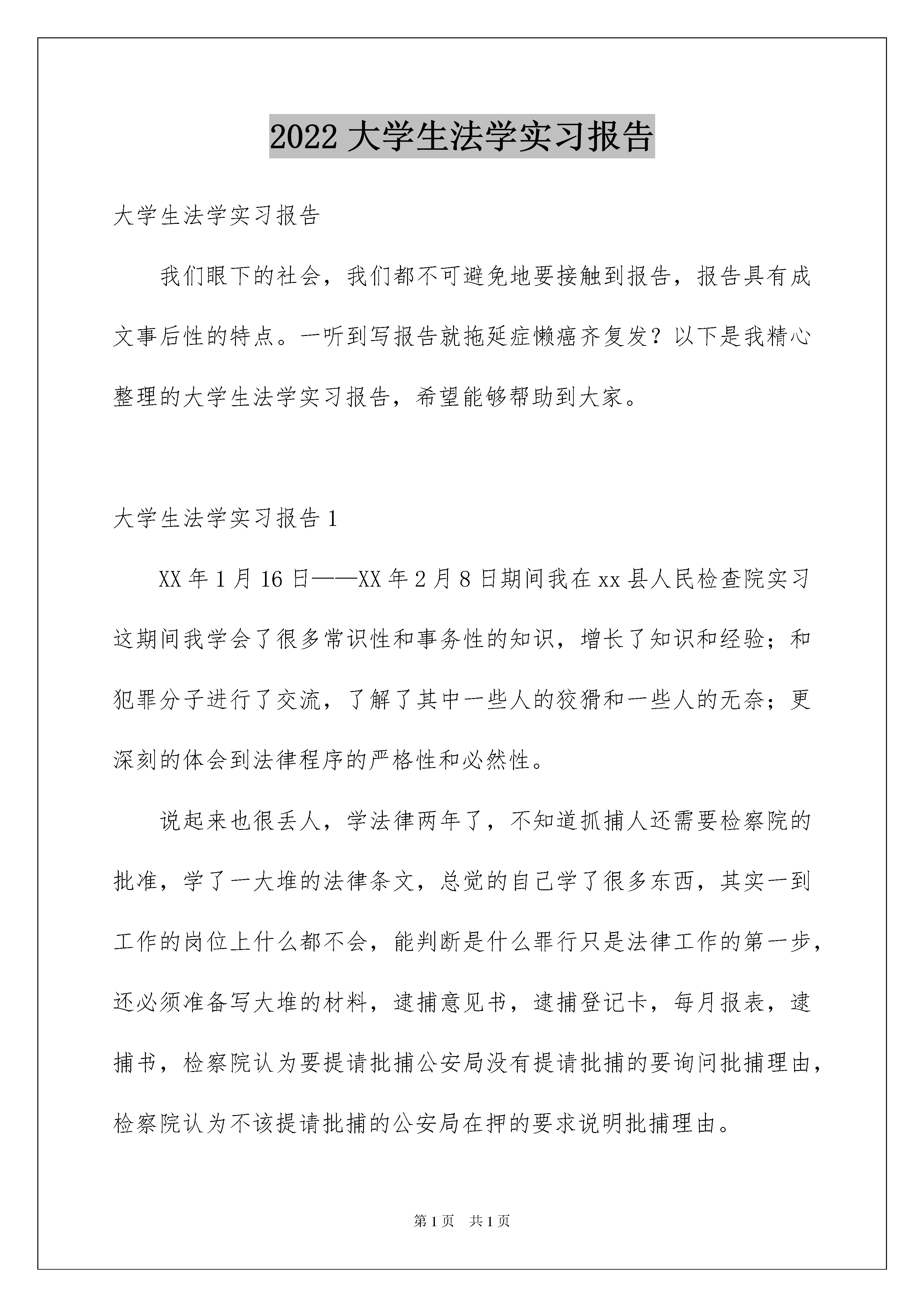 2022大学生法学实习报告大学生法学实习报告我们眼下的社会,我们都不可避免地要接触到报告,报告具有成文事后性的特点。一听到写报告就拖延症懒癌齐复发?以下是我精心整理的大学生法学实习报告,希望能够帮助到大家。大学生法学实习报告1XX年1月16日——XX年2月8日期间我在xx县人民检查院实习这期间我学会了很多常识性和事务性的知识,增长了知识和经验;和犯罪分子进行了交流,了解了其中一些人的狡猾和一些人的无奈;更深刻的体会到法律程序的严格性和必然性。说起来也很丢人,学法律两年了,不知道抓捕人还需要检察院的批准,学了一大堆的法律条文,总觉的自己学了很多东西,其实一到工作的岗位上什么都不会,能判断是什么罪行只是法律工作的第一步,还必须准备写大堆的材料,逮捕意见书,逮捕登记卡,每月报表,逮捕书,检察院认为要提请批捕公安局没有提请批捕的要询问批捕理由,检察院认为不该提请批捕的公安局在押的要求说明批捕理由。实习第一天,为了不迟到给别人留下好影响我起了个大早,上路,注册,报道,检查长问我要选择什么科室的时候我说不知道因我真的不知道检察院有什么科室以及各科室是干什么的。最终被安排在了xx县人民检察院的侦监科也就是以前的批捕科。我跟着才检察长认识了肖科长、张明住检察长和张辉几个志愿者。第一天的工作,科长让我自己看着学,看看案卷,一整天下来所有没有装订的没装订的只要是在办公室的案卷都被我看完了。发现xx县XX年死了很多人,不是杀人就是故意伤害、不是抢劫就是xx、不是盗窃就是赌博、案由一个比一个离奇,一个比一个可笑,一个比一个没道理,但我想大部分是真的,于是形成了检查院有鬼的理论,晚上渴的要死就是不敢一个人来办公室喝水。第二天的任务是整理档案卷宗并进行装订,在学校时也学习过档案整理,但着实不知道从哪里下手,都说档案整理十个枯燥的事情,但“新官上任三把火”,检察长说这个枯燥的机械性工作是我们法学专业的学生实习的必经科目。性质有点像后勤,说来似乎是很简单的归类,但每个卷宗都包括了目录表、审查逮捕提请书,审查逮捕登记卡,案件线索登记表,审查逮捕意见书、当事人身份证明、证据材料、笔录、送达回证等文书,要按照规定顺序放置,剔除不需要的文书。案卷依目录的顺序按照a4纸的大小排好顺序,打好页码,打好封皮,然后装订成册(装订要拿电钻打孔,线也有自己独特的穿法,觉得人很聪明)签字盖章,填好档案盒,将案件基本信息输入电脑存档,准备移送市人民检察院。说起来很简单,但是做起来,就是一些繁琐而重复的工作。而且好像没有什么技术含量。但是边整理边看,我发现在这些提请的案件中有很多典型案例,大家犯案的动机千奇百怪,比如李某就因为前妻不让其看孩子便将前妻娘家人全杀了;在整理卷宗过程中,我也对对刑事案件从立案到审结的程序,各种该归档的文书的分类有了详细的了解。实习的第二天就在埋头苦干悄然而逝,没有特别的感悟,没有动人的事迹,一切都非常的顺其自然。能够尽快的融入庭室的工作,尽快进入角色,对我来说,是实习之初最重要的事情。就这个意义而言,第二天,很是成功。我实习的地方是县检察院,地方小,事情多,虽然分工不够明确,却也因此让我在短短的实习日子中学习更多的东西,收获无疑是巨大的。在实习的过程中,我无数次感觉自己犯下的错误可笑,不过最丢人的是一个盗窃案审查逮捕案件我拿蔡检办公室让签字,蔡检问我犯罪嫌疑人哪里人我说不知道我去拿材料看,蔡让我喊肖科长去他办公室,后来张明大哥说是该找肖科长签字的不是蔡检,才知道自己错的有点离谱。无数次向助检查官,志愿者们请教我遇到的问题,小到复印机打印机怎么用,怎么给复印机打印机装纸,公章怎么盖以及该盖到什么地方(有日期和中分的地方)也无数次抱怨重复的工作,无数次欣喜自己收获到的知识,感受是很多的,但是我不愿意空谈体会,20多天的实习生活不是每时每刻都有做不完的工作,比如指导道老师不在的时候我就不知道要干什么,因为怕干错了就成倒忙了。但只要公安局送来了案卷,我能自己独立完成提请逮捕登记卡和审查逮捕意见书,(内容差不多包括犯罪嫌疑人的基本情况;发案、立案、破案的经过;公安认定的事实;(二)、证实这一事实的证据:证据一:案件来源、证据二:被害人陈述、证据三:1、辨认笔录(详见复印件)。2、当场盘问,检查笔录(详见复印件)3讯问笔录(详见复印件)、证据六:其他证据1、到案说明(详见复印件)。2、户籍证明(详见复印件)、证据七:犯罪嫌疑人供。四、处理意见:最后承办人签字,部门负责人签上意见)在科长和检察长批准逮捕后能填写逮捕意见书,跟公安机关要回回执,填提供法庭意见所需证据材料意见书,会自己编织目录复印各种证据完成案卷的装订