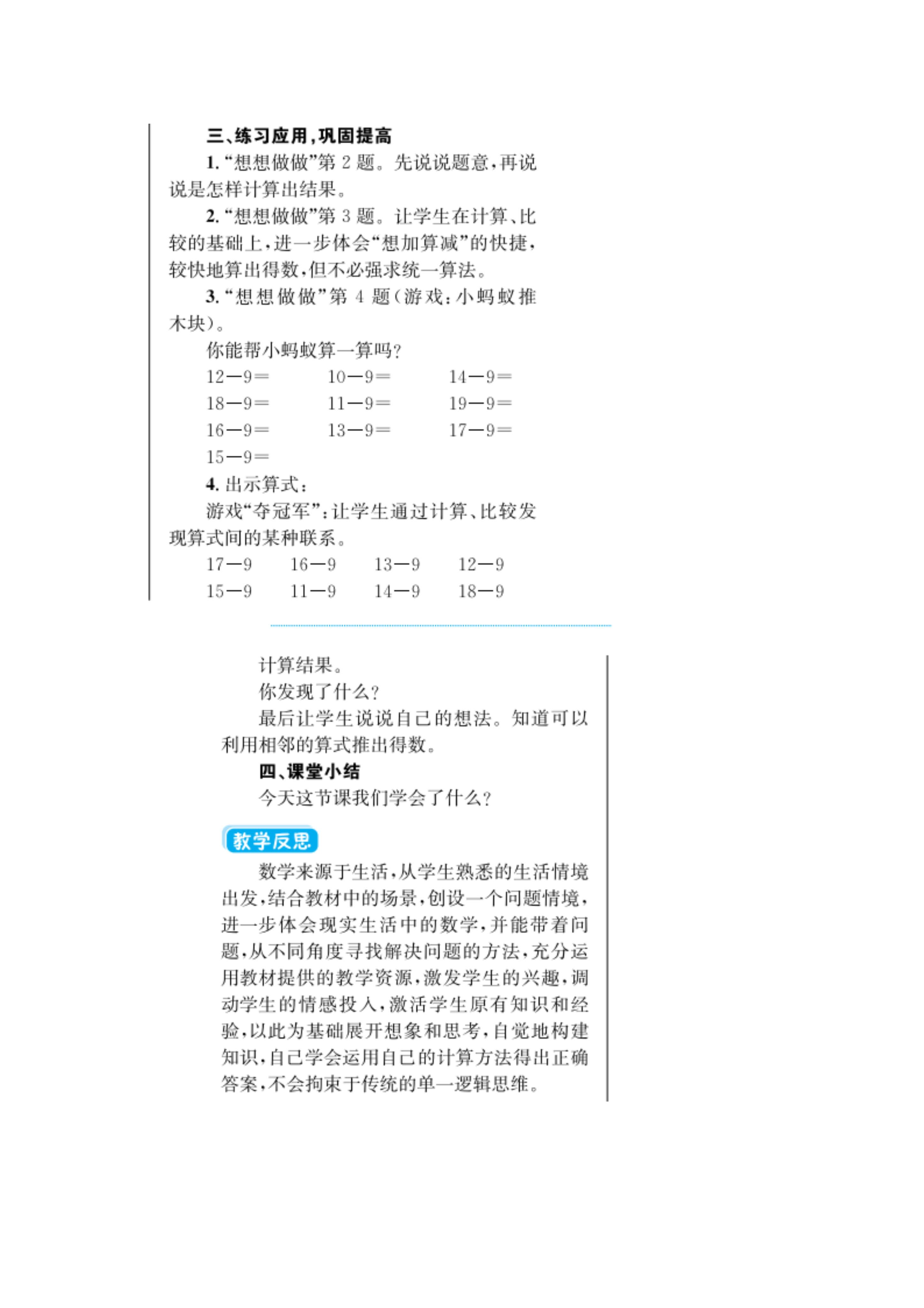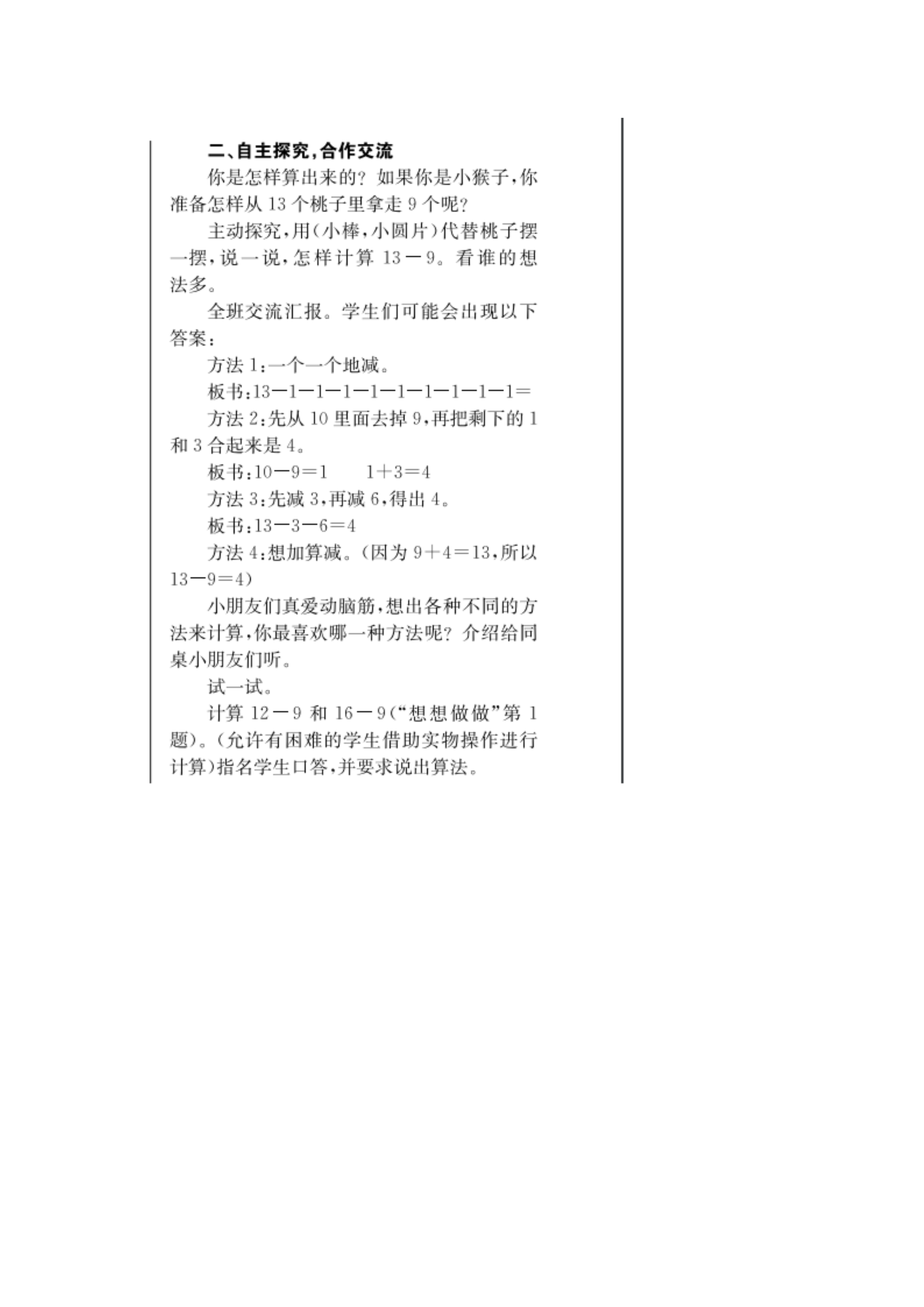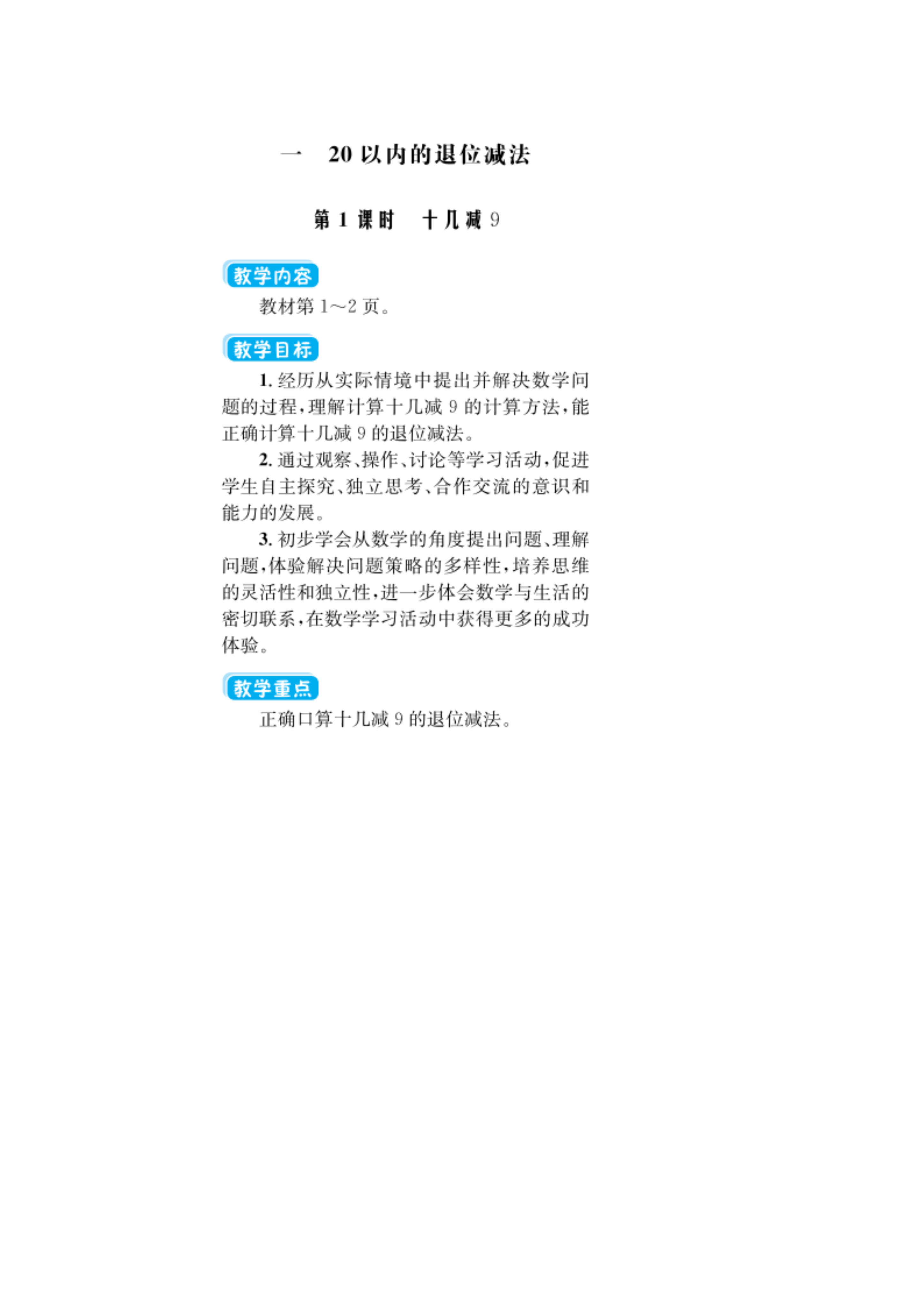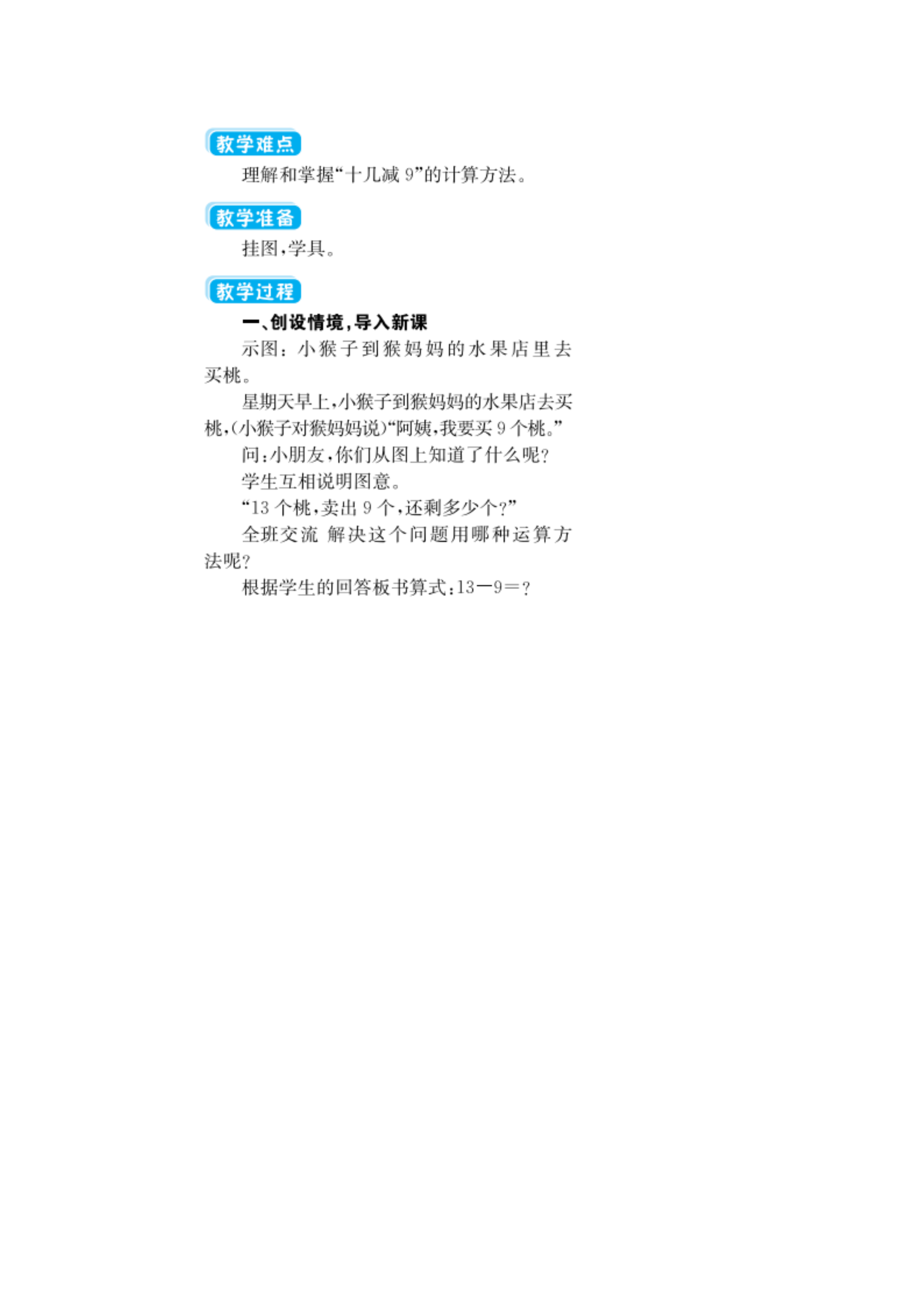 教案-全国-2020_2020春一年级数学下册 一 20以内的退位减法 第1课时 十几减9教案(扫描版) 苏教版.doc