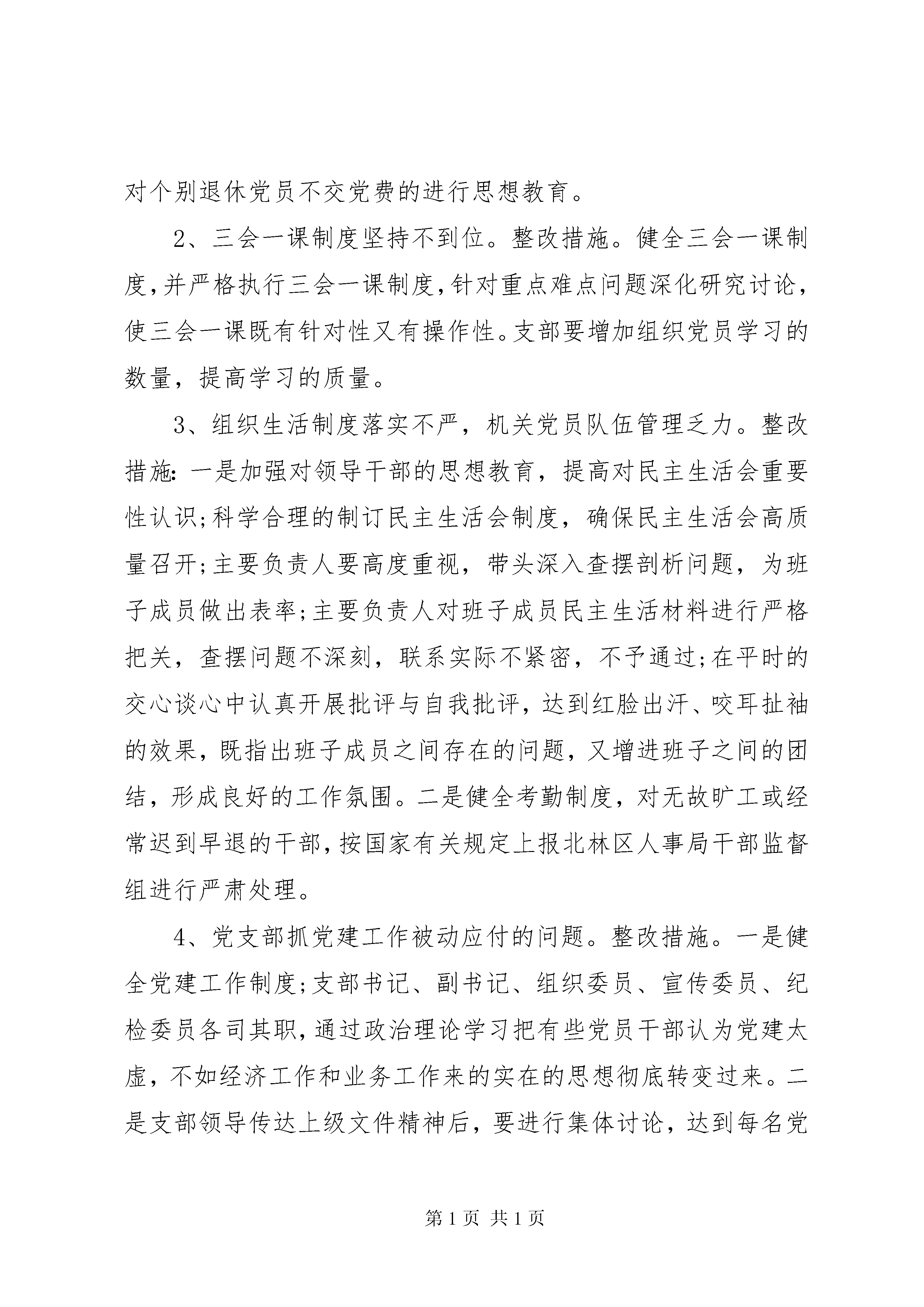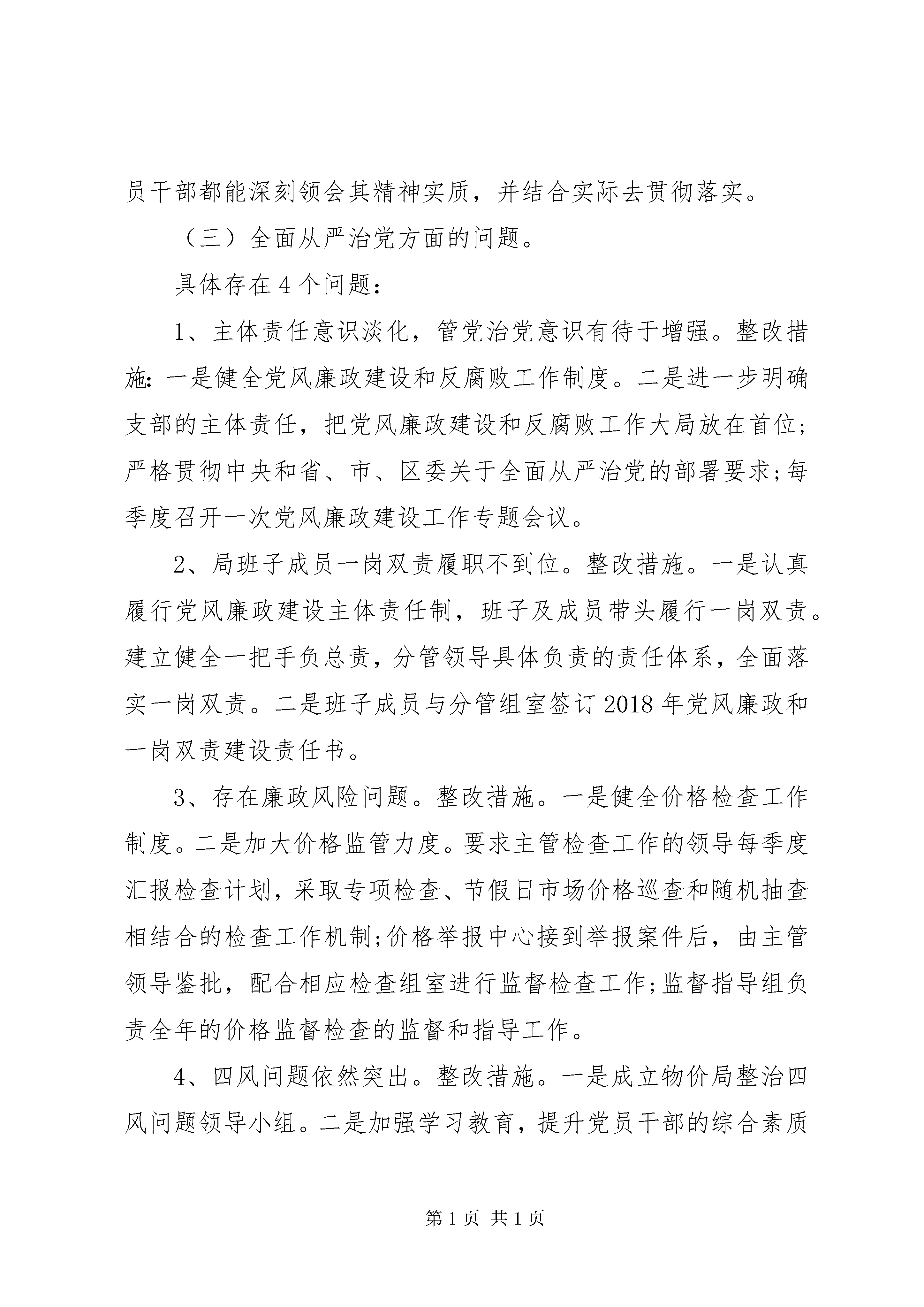 关于落实区委第二巡察组反馈意见整改情况的报告根据区委统一部署,2018年4月10日至6月5日,区委第二巡察组对我局进行了巡察,2018年8月将巡察意见进行了反馈。根据巡察工作有关要求,巡察意见反馈后,我局领导班子高度重视,统一思想,提高认识,持续开展问题整改工作,现将整改情况报告如下:一、整改主要做法区委第二巡察组反馈意见中指出的问题,客观中肯、切中要害,提出的要求具有很强的针对性、指导性。局领导班子对此高度重视、态度鲜明,完全赞同和诚恳接受区委第二巡察组的巡察反馈意见,照单全收,并立即部署开展巡察整改工作。一是加强组织领导。按照谁主管、谁负责的原则,第一时间成立了区委巡察反馈意见整改落实工作领导小组,由局长关胜杰任组长,副局长孙德生、价调办主任荆亚光、价调办副主任王景明、检查分局局长徐鹏程任副组长,办公室主任于海涛、收费组组长李劢、纪检委员潘海峰为成员,整改工作领导小组办公室设在局办公室,负责整改日常工作。二是专题会议部署。领导小组不定期召开有关会议,专题研究、部署和推进整改落实工作。二、各项问题的整改措施(一)党的领导弱化方面的问题。具体存在3个问题:1、党组织建设不健全。整改措施。一是健全党组织,把党支部书记、副书记、组织委员、宣传委员、纪检委员职务全部落实到位,各司其职,有效地监督和检查党员贯彻党组织决议等情况。二是按照规定划分党小组充分发挥党小组的作用,正常开展党小组活动,及时了解党员的思想、工作、学习、生活等情况。2、党支部落实上级部署不到位。整改措施。一是成立党的教育学习领导小组,严格按照上级部署及时开展工作。二是按照两学一做、十九大精神学习教育要求,抓好党员政治理论学习,充分发挥党支部党员的先锋模范作用。3、落实重大事项决策不够规范。整改措施。一是成立三重一大决议领导小组,认真贯彻落实三重一大制度,健全科学民主决策机制。二是对重大项目要认真研究讨论,集体决策后形成支部会议记录,并对重大项目支出形成大事大项报告单。(二)党的建设缺失方面的问题。具体存在4个问题:1、重业务,轻党建。整改措施。一是加强党建工作,更好的规划全年党建工作总体思路和具体措施;要召开一年至少三次专题研究党建的会议;强化政治学习与工作实践相结合,提升全局党员的综合能力素质。二是及时核定党员交纳党费金额,党员自觉按月足额交纳党员,支部每半年公布1次收缴党费情况,并对个别退休党员不交党费的进行思想教育。2、三会一课制度坚持不到位。整改措施。健全三会一课制度,并严格执行三会一课制度,针对重点难点问题深化研究讨论,使三会一课既有针对性又有操作性。支部要增加组织党员学习的数量,提高学习的质量。3、组织生活制度落实不严,机关党员队伍管理乏力。整改措施:一是加强对领导干部的思想教育,提高对民主生活会重要性认识;科学合理的制订民主生活会制度,确保民主生活会高质量召开;主要负责人要高度重视,带头深入查摆剖析问题,为班子成员做出表率;主要负责人对班子成员民主生活材料进行严格把关,查摆问题不深刻,联系实际不紧密,不予通过;在平时的交心谈心中认真开展批评与自我批评,达到红脸出汗、咬耳扯袖的效果,既指出班子成员之间存在的问题,又增进班子之间的团结,形成良好的工作氛围。二是健全考勤制度,对无故旷工或经常迟到早退的干部,按国家有关规定上报北林区人事局干部监督组进行严肃处理。4、党支部抓党建工作被动应付的问题。整改措施。一是健全党建工作制度;支部书记、副书记、组织委员、宣传委员、纪检委员各司其职,通过政治理论学习把有些党员干部认为党建太虚,不如经济工作和业务工作来的实在的思想彻底转变过来。二是支部领导传达上级文件精神后,要进行集体讨论,达到每名党员干部都能深刻领会其精神实质,并结合实际去贯彻落实。(三)全面从严治党方面的问题。具体存在4个问题:1、主体责任意识淡化,管党治党意识有待于增强。整改措施:一是健全党风廉政建设和反腐败工作制度。二是进一步明确支部的主体责任,把党风廉政建设和反腐败工作大局放在首位;严格贯彻中央和省、市、区委关于全面从严治党的部署要求;每季度召开一次党风廉政建设工作专题会议。2、局班子成员一岗双责履职不到位。整改措施。一是认真履行党风廉政建设主体责任制,班子及成员带头履行一岗双责。建立健全一把手负总责,分管领导具体负责的责任体系,全面落实一岗双责。二是班子成员与分管组室签订2018年党风廉政和一岗双责建设责任书。3、存在廉政风险问题。整改措施。一是健全价格检查工作制度。二是加大价格监管力度。要求主管检查工作的领导每季度汇报检查计划,采取专项检查、节假日市场价格巡查和随机抽查相结合的检查工作机制;价格举报中心接到举报案件后,由主管领导鉴批,配合相应检查组室进行监督检查工作;监督指导组负责全年的价格监督检查的监督和指导工作。4、四