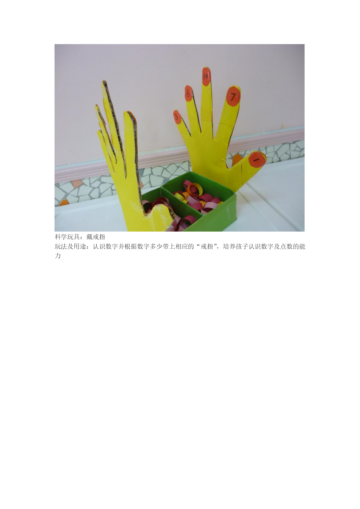 科学玩具:戴戒指玩法及用途:认识数字并根据数字多少带上相应的“戒指”,培养孩子认识数字及点数的能力