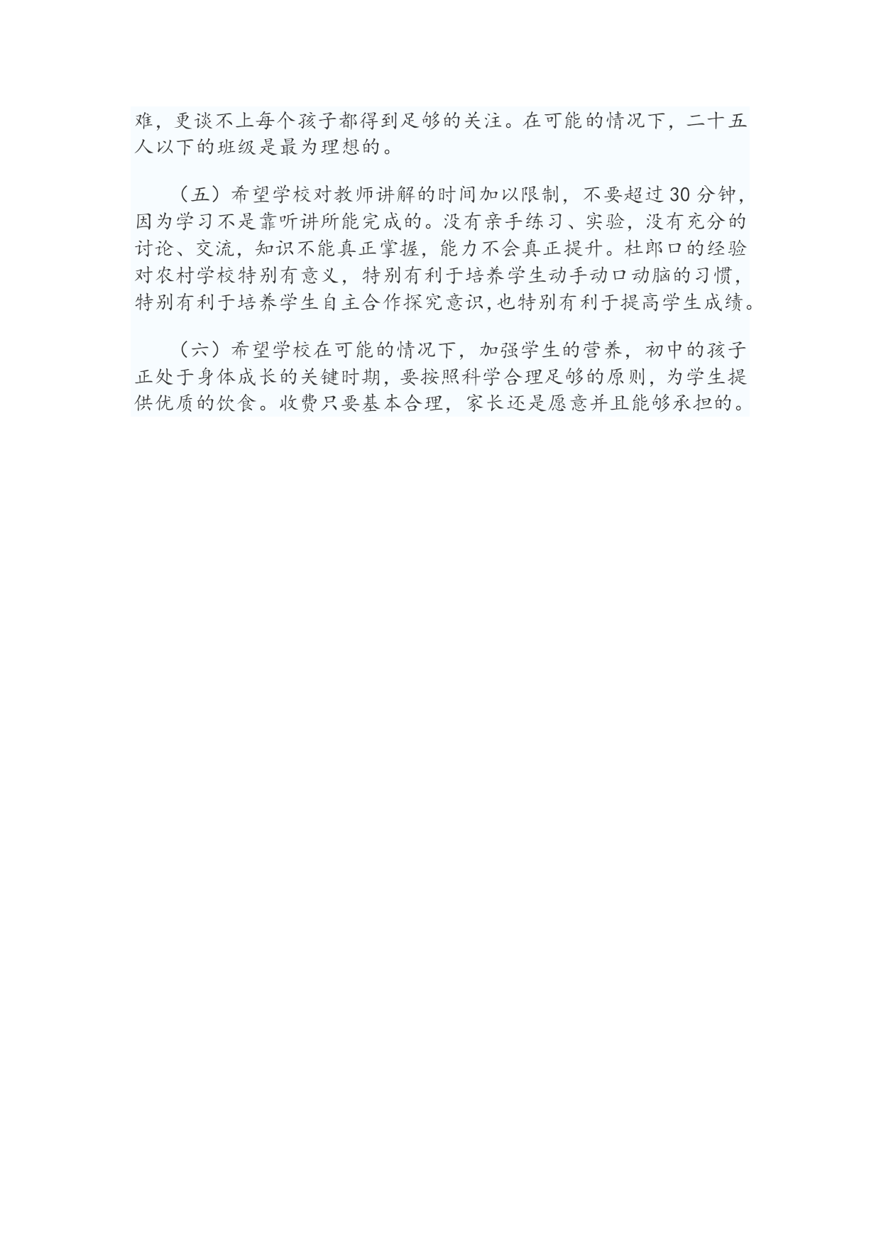 家长对学校的问卷调查一、关于生活健康:从生活上多照顾,吃饭要分碗,改善午餐。校内进行杀虫消毒,老师不要拖堂,课间要保证孩子休息,中午不能剥夺孩子的休息时间,课间、中午让放松。注意学生的书写姿势,增加学生运动量,天热了,饮水保证供应,不能断水。二、关于课业负担:作业较多;控制作业量;作业最好能稍微减少一些;减轻作业负担,降低考试难度;减少每天作业量;适当减少课外作业,提高布置作业的质量;孩子学习压力较大,双休日也做作业;考试难度偏大,提高部分占比例过高;引发孩子兴趣,不是增加作业、考试的难度;多点玩的时间,少点作业,降低作业难度,做法现实点。三、关于家校沟通:及时跟家长联系沟通;多使用家校通反馈孩子的在校情况;定期或不定期在家校通上发一些孩子在校的学习、生活情况;加强家校互动,多与家长沟通;建议每月在家校通上汇报一下小孩的总体情况;经常组织公开课,让家长更多的了解孩子的在学校的情况;希望在家校通上公布教学进度;多些家长开放日,家校互动的活动;在今天电脑普及的前提下,还是希望HYPERLINK"http://www.177liuxue.cn/info/2010-6/106584.html"\t"_blank"班主任老师用一个笔记小本子,家校通联系和沟通;适当减少家长签名的地方,如作业本上;班主任与任课老师缺少与家长沟通,应经常与家长联系,反映学生在学校的情况,班级内要经常开家长会;四、关于因材施教、个性培养、教育方法:因材施教;更多的理解每个孩子;培养孩子健康、积极向上的心灵;多关注不活泼的孩子;多关注学习能力弱的学生;注意个性培养;改善与学生交流方式,注重孩子的特点;对孩子习惯培养给予意见;加强习惯引导;要放大优点,淡化缺点;尽量发掘孩子的优点,多给予鼓励。对付每个学生;加强老师与学生单方面沟通,针对孩子的性格给予教育;如何能体现对每个孩子的关注,是需要思考的问题,教育资源在一个班级内已出现过度集中现象,所以归根到底,学校仍然是传统学校。不以批评为主,要表扬鼓励,多给孩子展示机会;老师要正确分析每个学生的具体状况,对症求药,培养孩子的独立能力和学习能力;多鼓励,多交流,学科老师应承担一定的责任。多鼓励孩子,增强自信,培养兴趣;希望班主任正确评价每一个孩子,不要对几个人特别偏爱;多关注细节,多全面发展,少一些哗众取宠;更注重赏识教育;对自然艺术特长的学生,要坚持长期培养;尽量多鼓励学生,培养学生自信心。五、关于各科学习:多读课外书;各年级集中优秀教师抓好“优、精、尖”学生培养;老师多明确一些课外的学习内容,最好能非常明确具体,现在有指导,但明确、具体尚不够;音乐、美术、体育课应该多样化;英语教学上,在提高学生学习英语的兴趣上下功夫;教学的重点不应是那些尖子,淡化分数,使学生喜欢学校;希望语、数、外主要课程不要经常更换老师;六、其他:作为一个家长对学校教育的几点建议(一)希望学校图书馆能长期对学生开放,能让孩子们亲自进入图书馆挑选书籍,寒暑假是学生阅读的良机,希望教师给学生推荐一定的书目,学生读书的成绩要进入评价,读书的成果要有展示的平台。(二)希望学校每个学期都有专门的大型体育活动,每个孩子都能在其中展示自己的才华,更希望每天的体育锻炼能真正到位,培养孩子早起跑步、晚饭后散步的习惯,希望学校能有意识的经常利用广播,播放一些比较高雅的音乐作品而不仅仅播放一点通俗歌曲。(三)希望学校能将成绩作为学生的隐私,不要搞全班性的排队,因为每个孩子的天赋是不同的,有的孩子付出的努力多而效果不一定好,更不希望将一个孩子与另一个孩子作无谓的比较,“人比人。气死人”,大人都怕比,何况孩子。但孩子自己的成绩可以比较,作为教师,要引导孩子将自己的今天跟自己的昨天比,明天跟今天比,提倡超越自我。同时,还希望比不仅仅局限于分数,可能的话,希望班主任有一个专门的观察本,每个孩子一页,让你班上的孩子在上面得到全方位、立体化的反映。(四)希望学校在可能的情况下,尽量把班级编得小一点,班级人数不要超过四十人,一个超过四十人的班级,教师维持住纪律都很难,更谈不上每个孩子都得到足够的关注。在可能的情况下,二十五人以下的班级是最为理想的。(五)希望学校对教师讲解的时间加以限制,不要超过30分钟,因为学习不是靠听讲所能完成的。没有亲手练习、实验,没有充分的讨论、交流,知识不能真正掌握,能力不会真正提升。杜郎口的经验对农村学校特别有意义,特别有利于培养学生动手动口动脑的习惯,特别有利于培养学生自主合作探究意识,也特别有利于提高学生成绩。(六)希望学校在可能的情况下,加强学生的营养,初中的孩子正处于身体成长的关键时期,要按照科学合理足够的原则,为学生提供优质的饮食。收费只要基本合理,家长还是愿意并且能够承担的。
