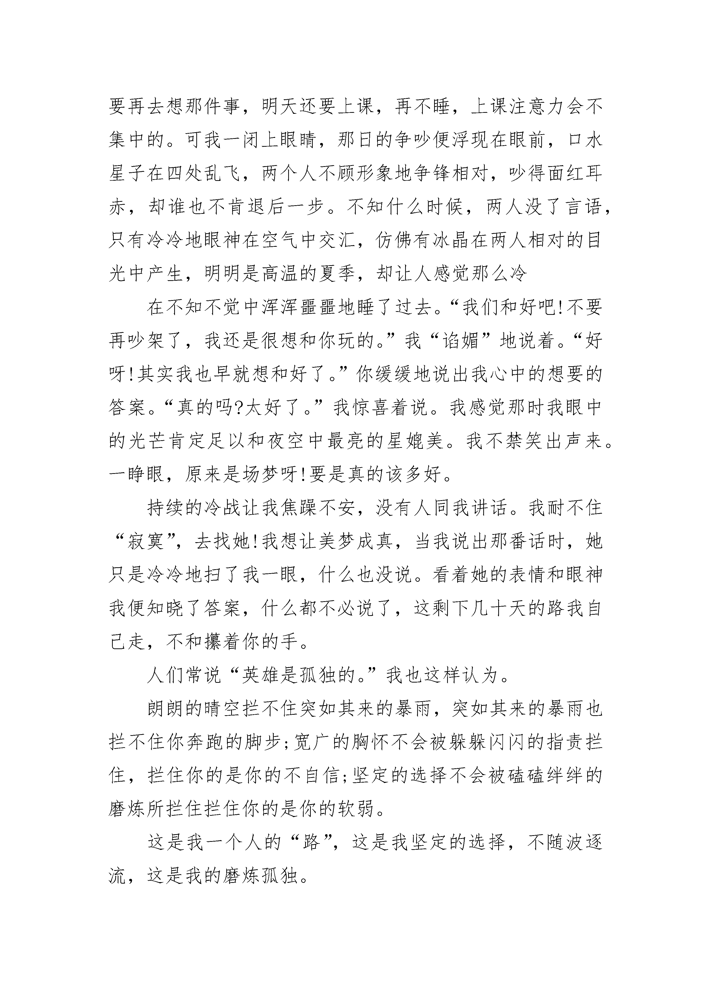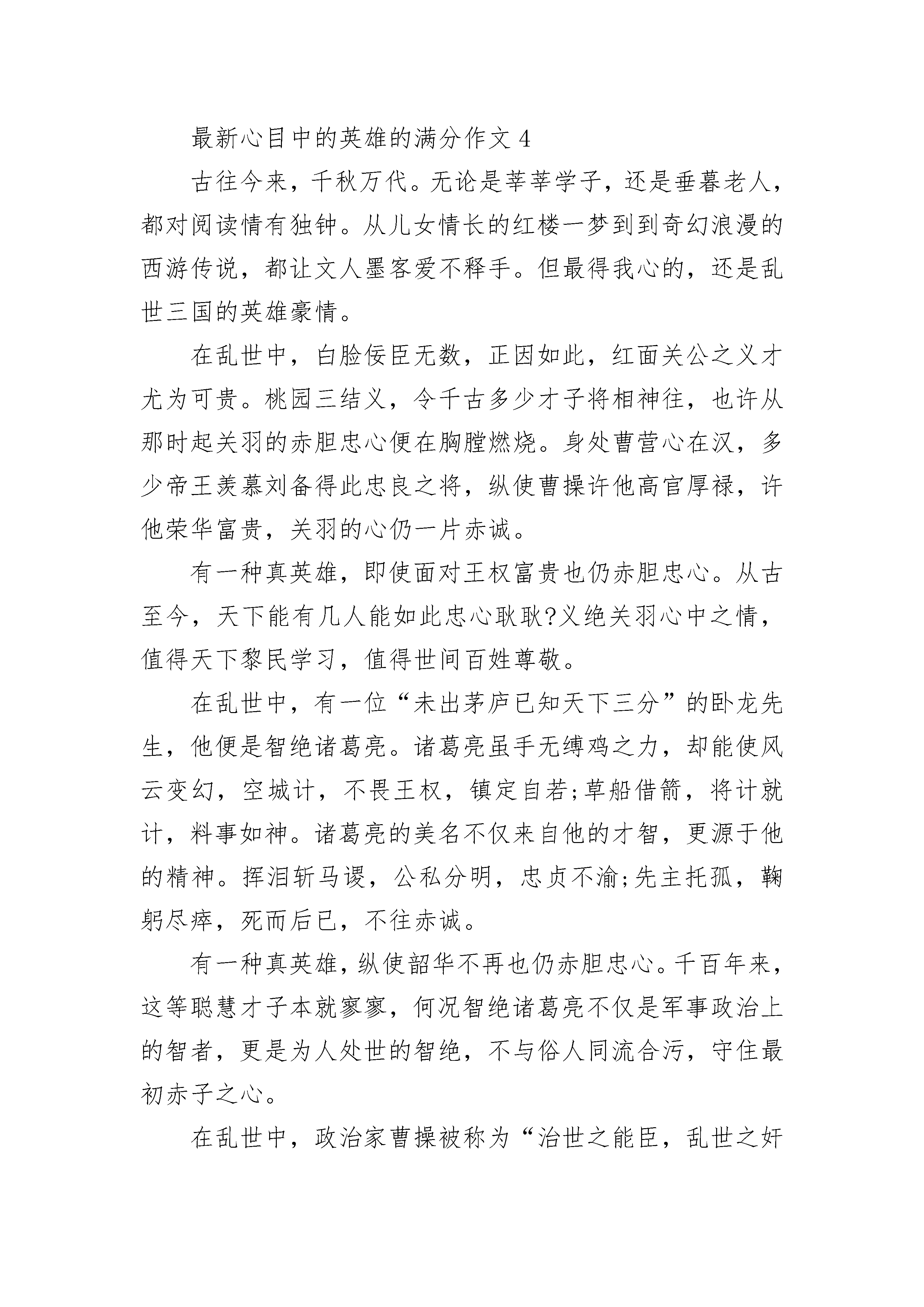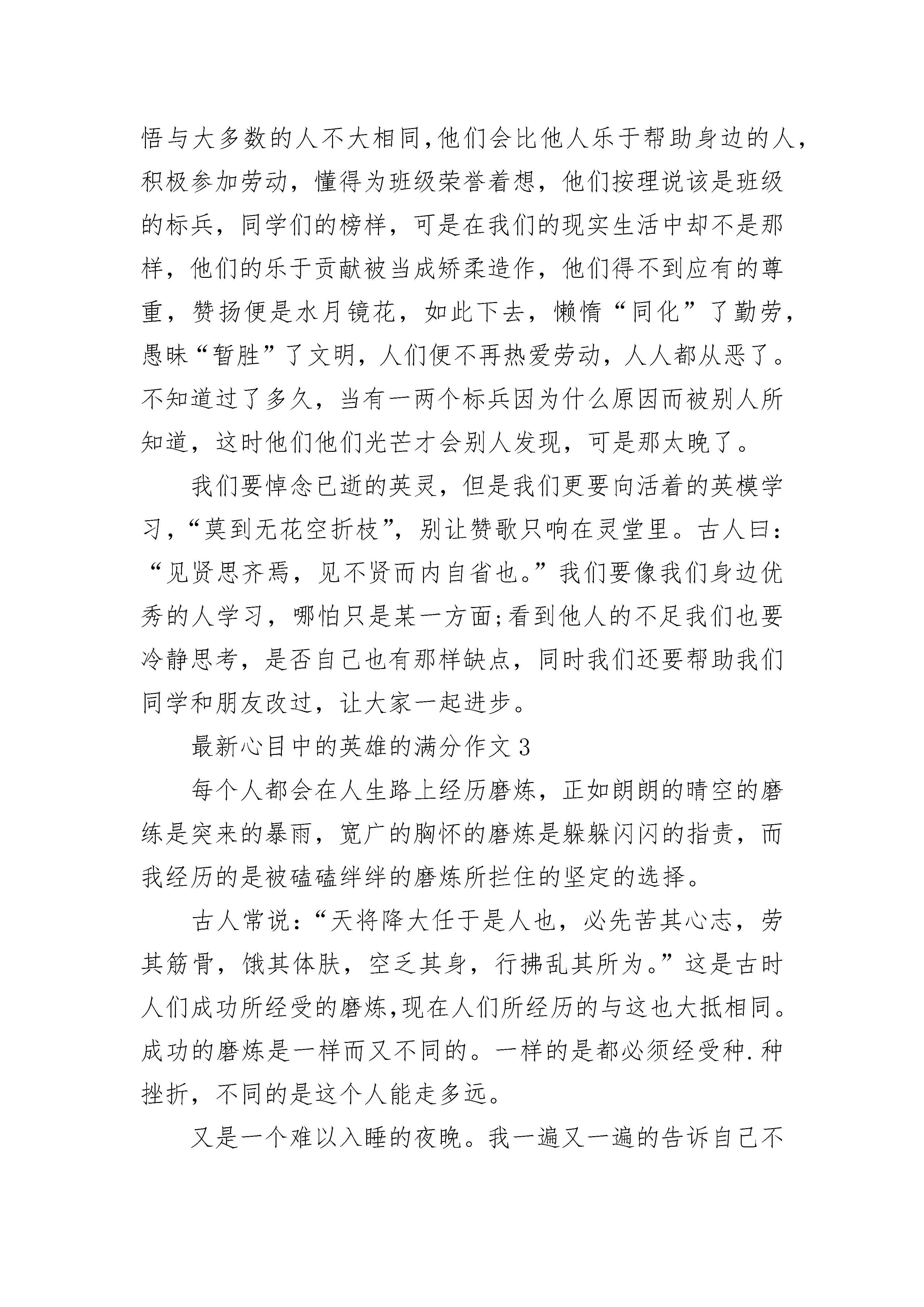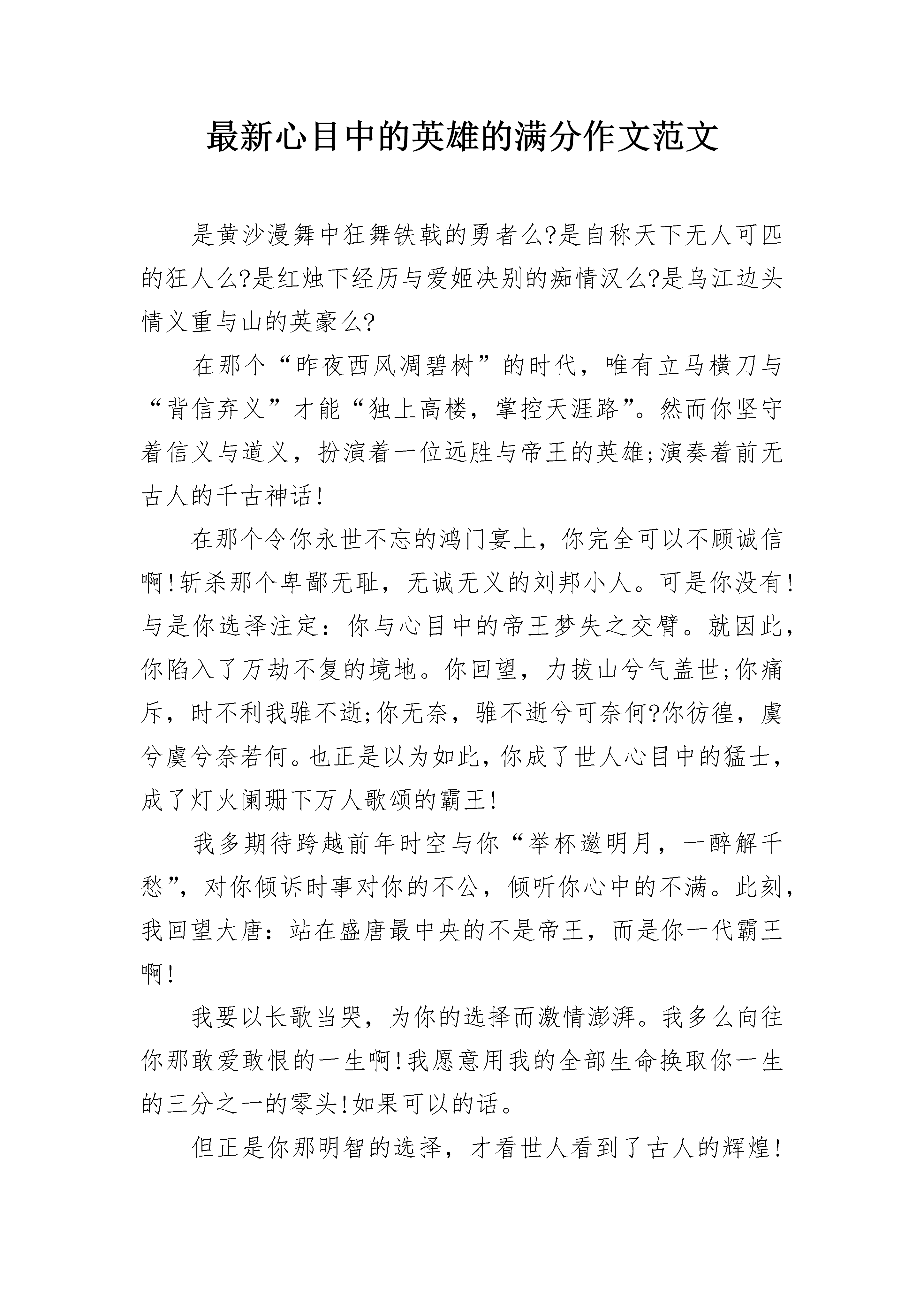 最新心目中的英雄的满分作文范文是黄沙漫舞中狂舞铁戟的勇者么?是自称天下无人可匹的狂人么?是红烛下经历与爱姬决别的痴情汉么?是乌江边头情义重与山的英豪么?在那个“昨夜西风凋碧树”的时代,唯有立马横刀与“背信弃义”才能“独上高楼,掌控天涯路”。然而你坚守着信义与道义,扮演着一位远胜与帝王的英雄;演奏着前无古人的千古神话!在那个令你永世不忘的鸿门宴上,你完全可以不顾诚信啊!斩杀那个卑鄙无耻,无诚无义的刘邦小人。可是你没有!与是你选择注定:你与心目中的帝王梦失之交臂。就因此,你陷入了万劫不复的境地。你回望,力拔山兮气盖世;你痛斥,时不利我骓不逝;你无奈,骓不逝兮可奈何?你彷徨,虞兮虞兮奈若何。也正是以为如此,你成了世人心目中的猛士,成了灯火阑珊下万人歌颂的霸王!我多期待跨越前年时空与你“举杯邀明月,一醉解千愁”,对你倾诉时事对你的不公,倾听你心中的不满。此刻,我回望大唐:站在盛唐最中央的不是帝王,而是你一代霸王啊!我要以长歌当哭,为你的选择而激情澎湃。我多么向往你那敢爱敢恨的一生啊!我愿意用我的全部生命换取你一生的三分之一的零头!如果可以的话。但正是你那明智的选择,才看世人看到了古人的辉煌!你是古往今来中最璀璨的明星,虽然你流逝了,却轰然划过了一道精彩绝伦的美妙啊!也正是因为你那非凡的决择,才守护了漫长的历史的无限期待,才守护了人类苦待千年的梦想,才守护了世间精神文明的崇高!最新心目中的英雄的满分作文2每一年,我们中总有一些人被另一些人评为优秀人物,或“感到中国人物”,或“优秀市民”等等,这些活着的人得到了应得的荣誉,但是,奉献了自己生命的那些英灵呢?我很痛心一件事:那些为社会做了贡献的人生前没有多少人关注,直到死后才得到他人虚假悼念和迟来的赞许。我们生活中有很多优秀的人,他们热爱劳动,乐于助人,公而忘私,尽自己的力量奉献社会,如人民的好干部焦裕禄,优秀革命战士雷锋,刚柔巾帼任长霞,义演无私奉献的从飞等等,他们生前做了很多好事,可是有多少人懂他们,有多少人赞许他们。直到一天,伟大的身体倒下了,倒在疲惫和血泊里,永远的离我们而去,这时才有一两个人站出来,高喊“向英雄人物学习”,大张旗鼓把追悼会弄得无人不知。试问,这样做的现实意义有多少?在我看来根本没有多少现实意义,人死了再去高呼如何如何,无异于倒掉牛奶再去怜惜。有的人想用死者效应来教育某些人,我们应该肯定他们的出发点是好的,但是他们是否想过,活着的英雄效应更大。我们可以从我们身边的小事情看出这个社会病弊。在学校,在班级里有个别思想较为向前的同学,他们的认识和觉悟与大多数的人不大相同,他们会比他人乐于帮助身边的人,积极参加劳动,懂得为班级荣誉着想,他们按理说该是班级的标兵,同学们的榜样,可是在我们的现实生活中却不是那样,他们的乐于贡献被当成矫柔造作,他们得不到应有的尊重,赞扬便是水月镜花,如此下去,懒惰“同化”了勤劳,愚昧“暂胜”了文明,人们便不再热爱劳动,人人都从恶了。不知道过了多久,当有一两个标兵因为什么原因而被别人所知道,这时他们他们光芒才会别人发现,可是那太晚了。我们要悼念已逝的英灵,但是我们更要向活着的英模学习,“莫到无花空折枝”,别让赞歌只响在灵堂里。古人曰:“见贤思齐焉,见不贤而内自省也。”我们要像我们身边优秀的人学习,哪怕只是某一方面;看到他人的不足我们也要冷静思考,是否自己也有那样缺点,同时我们还要帮助我们同学和朋友改过,让大家一起进步。最新心目中的英雄的满分作文3每个人都会在人生路上经历磨炼,正如朗朗的晴空的磨练是突来的暴雨,宽广的胸怀的磨炼是躲躲闪闪的指责,而我经历的是被磕磕绊绊的磨炼所拦住的坚定的选择。古人常说:“天将降大任于是人也,必先苦其心志,劳其筋骨,饿其体肤,空乏其身,行拂乱其所为。”这是古时人们成功所经受的磨炼,现在人们所经历的与这也大抵相同。成功的磨炼是一样而又不同的。一样的是都必须经受种.种挫折,不同的是这个人能走多远。又是一个难以入睡的夜晚。我一遍又一遍的告诉自己不要再去想那件事,明天还要上课,再不睡,上课注意力会不集中的。可我一闭上眼睛,那日的争吵便浮现在眼前,口水星子在四处乱飞,两个人不顾形象地争锋相对,吵得面红耳赤,却谁也不肯退后一步。不知什么时候,两人没了言语,只有冷冷地眼神在空气中交汇,仿佛有冰晶在两人相对的目光中产生,明明是高温的夏季,却让人感觉那么冷在不知不觉中浑浑噩噩地睡了过去。“我们和好吧!不要再吵架了,我还是很想和你玩的。”我“谄媚”地说着。“好呀!其实我也早就想和好了。”你缓缓地说出我心中的想要的答案。“真的吗?太好了。”我惊喜着说。我感觉那时我眼中的光芒肯定足以和夜空中最亮的星媲美。我不禁笑出声来。一睁眼,原来是场梦呀!要是真的该多好。持续的冷战让我焦躁不安,没有人同我讲话。我耐不住“寂寞”,去找她!我想让美梦成真,当我