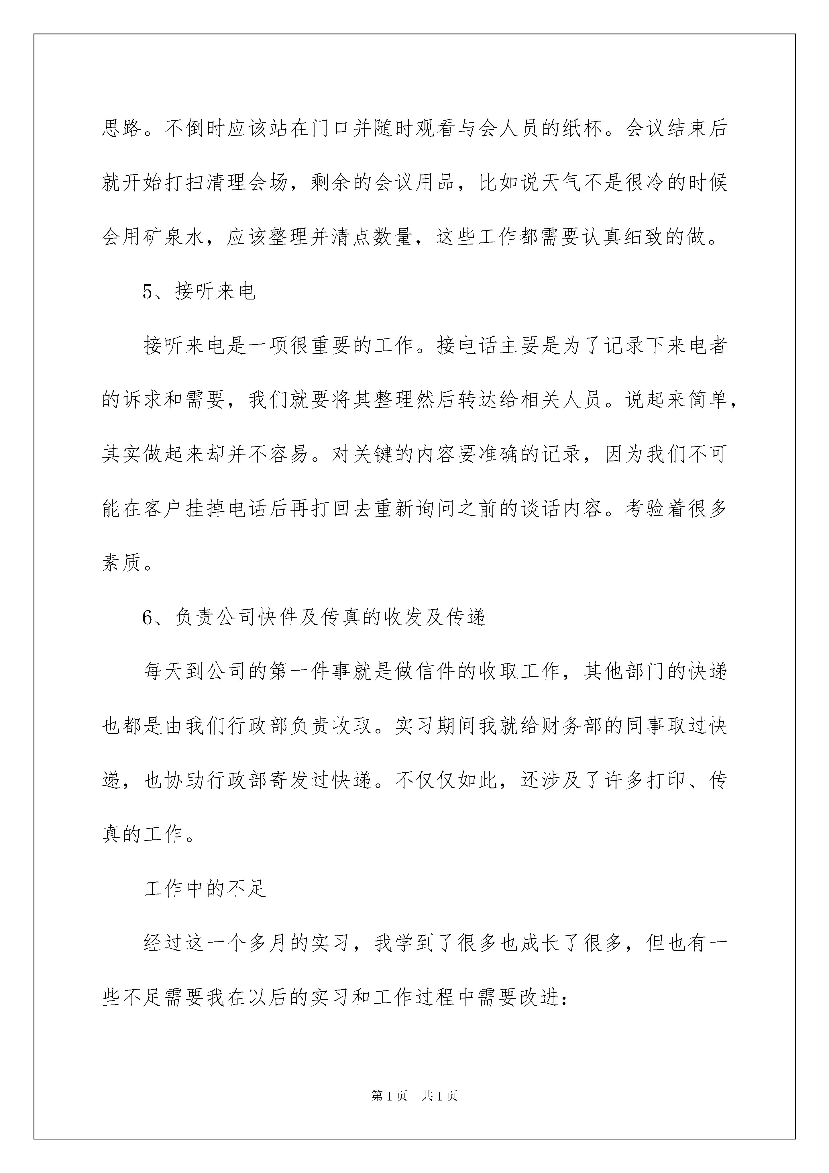 2022实习工作总结范文汇总四篇实习工作总结范文汇总四篇总结就是把一个时段的学习、工作或其完成情况进行一次全面系统的总结,它能帮我们理顺知识结构,突出重点,突破难点,不如立即行动起来写一份总结吧。总结一般是怎么写的呢?下面是我帮大家整理的实习工作总结5篇,欢迎阅读与收藏。实习工作总结篇1时光飞逝,日月如梭,转眼间大学生活即将过完,而这次实习就是我们学校生活与社会生活的一个良好的过度。20xx年1月25日,我进入xxx公司行政管理部实习,担任行政助理一职。行政助理工作是处理办公室各种事情的一个岗位,主要负责管理好办公室内的各方面有序的进行,所以工作非常繁杂。主要有以下几个方面:1、材料收集在行政部工作,少不了与文字打交道,因为工作的需要更是要搜集一些资料,有时候是自己部门的工作,有时会协助其他部门,以便下一步工作的开展。在我实习期间,公司决定制作一些宣传册和宣传栏,在选择制作单位时,就需要关于制作单位第一手的资料,比较它们的优势劣势,为最后的决策作参考。为了更客观的了解制作单位的情况,我在网上搜集完资料后,又进行了实地的考察,对确定好的几个因素进行了详细的了解,确保资料的准确。2、档案管理人事部招聘工作完成后,通过面试的人员,会经过短时间的培训,最后会办理入职手续,这些工作都是有作为行政人员的工作,把他们的个人资料,分档管理。除了人事档案需要管理,还有许多重要文件需要管理。公司要不断的拓展业务及开展新的项目,开展工作的过程中就会与其他公司和个人产生法律关系,这样就会有很多合同的签订和合同的管理工作,最后把这些合同归档入案。3、会议记录公司规定每星期都要开展一次会议,其会议主要是安排本周的工作及总结上周在工作中出现的问题和解决方案。除了定期的例会,在实习期间,又召开了许多日常会议。经理与各部门负责人的会议,各部门会议,有全体员工参加的安全动员大会等等。在会议中作为行政部人员的我们就负责记录这次会议的内容,会议结束后整理成案本,装订入册。作为实习生,因为刚开始业务不是很熟练,会议记录又是很重要的文档,所以我们只能做一些辅助的工作。刚开始,行政部的工作人员会把初稿给我们,我们负责校对,有的时候会整整一下午都坐在电脑前,为的就是零失误。慢慢熟练后,校对的会议记录也多了起来,错误也越来越少。整理会议记录,是行政人员的主要工作,也是必须掌握的工作之一。4、协助办理会议、培训、公司集体活动组织与安排组织筹办会议是每一个单位的行政人员不可或缺的工作内容,在汇晶电脑城担任行政助理期间,公司召开过许多次会议,所以我多次参与相关工作。开会之前,要通知参加会议的人员,确保所有与会人员对开会的时间地点是知晓的。然后开始布置会场,会议开始前半个小时将空调打开以确保会场温度不能太低并检查会场布置情况。会议开始后还要安排人员进行倒水工作。给参会人员倒水,看起来简单,实则里面的学问很深。倒水应该从最中间的领导也就是经理开始,水倒杯的七分满,动作要轻,不能因为自己动作太大而打乱与会人员的思路。不倒时应该站在门口并随时观看与会人员的纸杯。会议结束后就开始打扫清理会场,剩余的会议用品,比如说天气不是很冷的时候会用矿泉水,应该整理并清点数量,这些工作都需要认真细致的做。5、接听来电接听来电是一项很重要的工作。接电话主要是为了记录下来电者的诉求和需要,我们就要将其整理然后转达给相关人员。说起来简单,其实做起来却并不容易。对关键的内容要准确的记录,因为我们不可能在客户挂掉电话后再打回去重新询问之前的谈话内容。考验着很多素质。6、负责公司快件及传真的收发及传递每天到公司的第一件事就是做信件的收取工作,其他部门的快递也都是由我们行政部负责收取。实习期间我就给财务部的同事取过快递,也协助行政部寄发过快递。不仅仅如此,还涉及了许多打印、传真的工作。工作中的不足经过这一个多月的实习,我学到了很多也成长了很多,但也有一些不足需要我在以后的实习和工作过程中需要改进:1、不够细心,在工作中不够谨慎。行政部的.工作虽然难度不大,但是却非常繁杂,这就要求每一个行政人员必须细心,细心是必要的素质。在这方面,我做的还不够好,总是会犯一些不必要的错误。2、缺乏实际运用专业知识的能力,由于平时很少活用过去所学的专业知识,在进入实际的企业只会,面对实际的问题,显得手忙脚乱,不知道该如何下手,不知道该怎样系统化的与学到的知识联系起来,只能盲目的去探索。3、吃苦耐劳的能力有待提高,学校的生活相对来说是比较悠闲的,进入企业之后繁杂的工作,额定的工作的时间,让自己很难适应,会感到很累。实习收获与体会在电脑城实习的这段时间,对我个人而言受益匪浅,主要体现在以