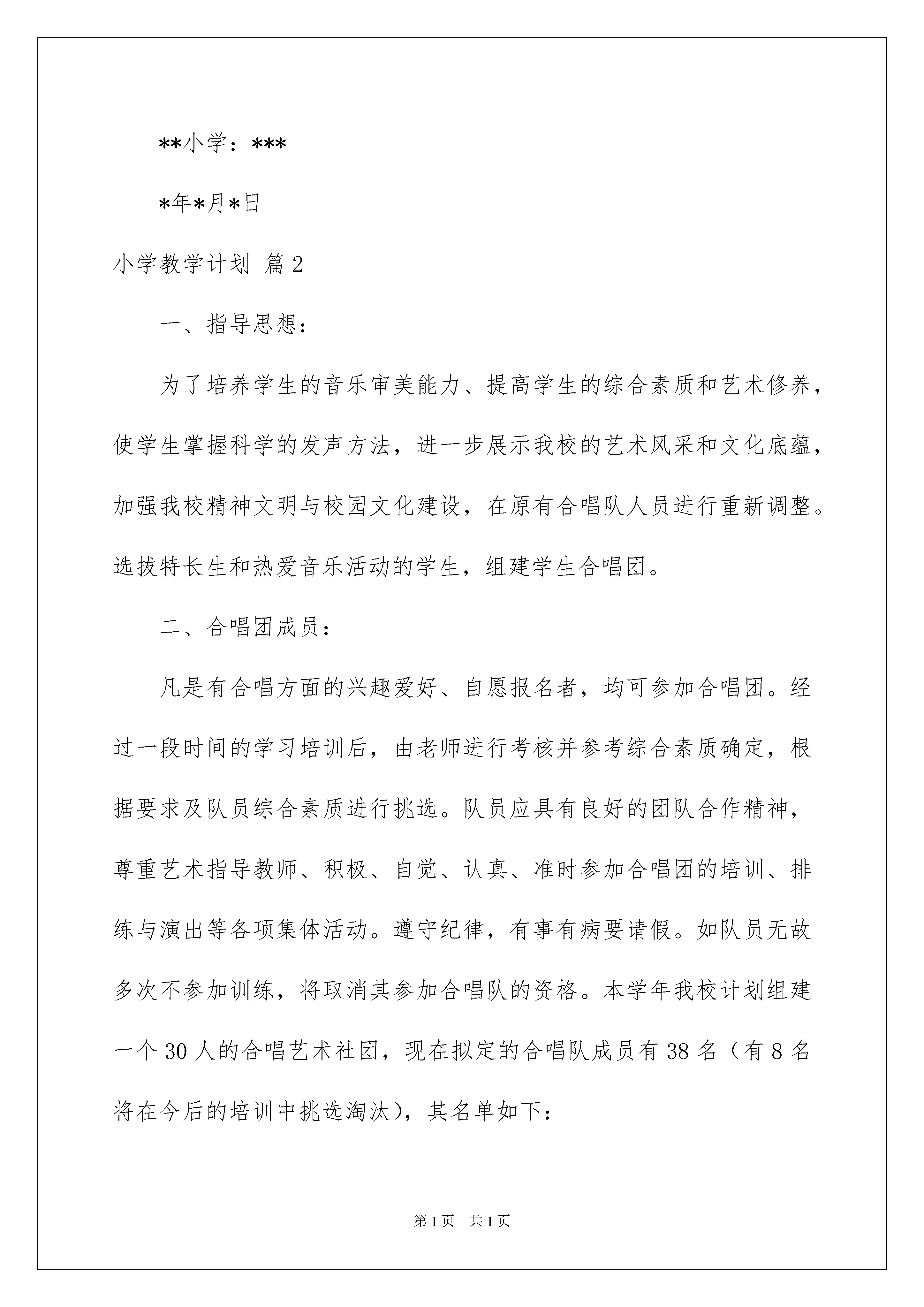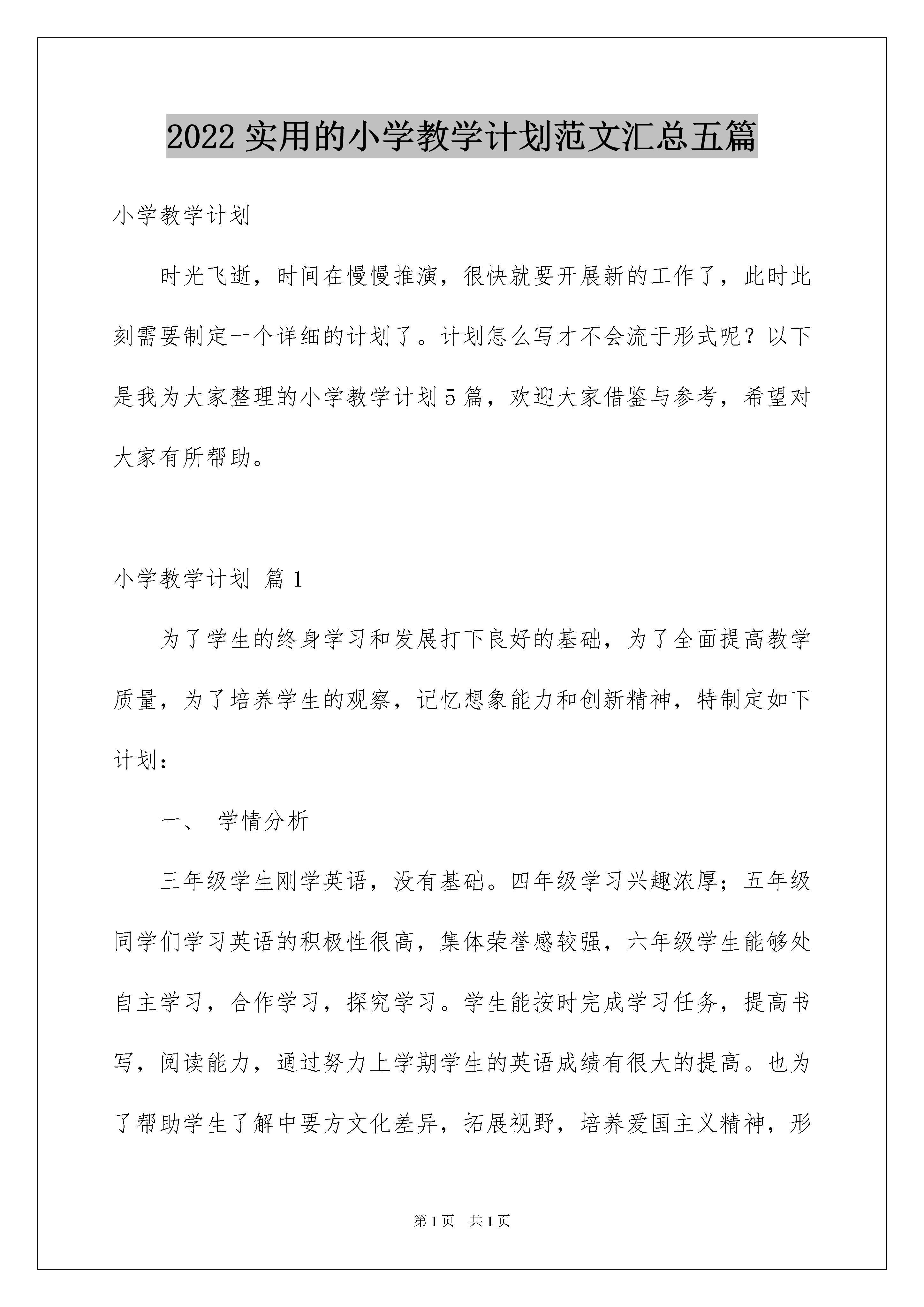 2022实用的小学教学计划范文汇总五篇小学教学计划时光飞逝,时间在慢慢推演,很快就要开展新的工作了,此时此刻需要制定一个详细的计划了。计划怎么写才不会流于形式呢?以下是我为大家整理的小学教学计划5篇,欢迎大家借鉴与参考,希望对大家有所帮助。小学教学计划篇1为了学生的终身学习和发展打下良好的基础,为了全面提高教学质量,为了培养学生的观察,记忆想象能力和创新精神,特制定如下计划:一、学情分析三年级学生刚学英语,没有基础。四年级学习兴趣浓厚;五年级同学们学习英语的积极性很高,集体荣誉感较强,六年级学生能够处自主学习,合作学习,探究学习。学生能按时完成学习任务,提高书写,阅读能力,通过努力上学期学生的英语成绩有很大的提高。也为了帮助学生了解中要方文化差异,拓展视野,培养爱国主义精神,形成健康的人生观,因而在本学期采用一套可实施的灵活的教学方法。二、教材分析《小学英语》每课包括“会话,主题句,语音,活动”四部分,四个部分均围绕一个中心话题展开。每课的各部分之间,每册的各课之间,构成一个封闭又开放的循环体系。在每课内,会话中的交际语言和语法结构在其余各部分中反复出现和深化,形成一个封闭的循环,这是每一个循环体系。三、本学期的教学任务和达到的目标激发和培养学生学习英语的兴趣使学生树立自信心,是本学期英语教学中重要的任务,把兴趣,自信心等放在第一位,是对英语教学任务的重新定位。学生在从阶段的学习,都是一个学会学习的过程,而不是把某一门专业知识或专业技能完全掌握的过程,这是终身学习的需要,学生首先应当对学科产生兴趣,树立自信心,学会学习发展自己的学习能力,然后在离开学校以后,就能自己学习,为终身学习做好准备,所以,在初级阶段首先要培养学生学习英语的兴趣,让他们喜欢学,然后再教他们如何学,使之会学,形成自主学习的能力。本学期争取让学生们喜欢学英语能交流交际。这一学期中把教学重点放在培养学生的听说读写能力上,小学英语教学不讲解语法概念,要充分利用教学资源,鼓励学生积极参与,大胆表达,侧重提高小学生对语言的感受和初步用英语进行听说演的能力。把德育放在工作的首位,教师用高尚的师德潜移默化地影响学生。小学英语以素质为根本宗旨,注重对儿童进行思想情感教育,使学生了解并尊重其他国家和民族的优秀文化传统,更好地理解并热爱中华民族的优秀文化传统。使学生受到英语给他们带来的快乐,促进他们身心健康发展。在学习中锻炼学生有坚强的意志,健康的体魄和自信心,全面培养和发展学生的综合素质,把他们培养成四有新人和创新性人才。结合英语课内容教育学生。四、完成目标所采取的措施:(一)教师要更新课程理念,适应新课改的需要,在教学中要注重培养学生的创新精神,给学生发展的空间和自学的时间,时刻以育人为本,全面提高学生的综合素质。(二)通过正面引导,提高后进生,给他们树立明确的学习目的,端正学生态度,树立学习标兵,给学生学有榜样。(三)教师要注重教学,让学生大胆尝试,积极探索,勇于创新,使学生真正成为课堂的主人,使学生积极有效参与课堂教学。让学生自主探索,合作交流,自己去发现去探索知识,用自己喜爱的学习方法学会知识,并创造性地解决问题。充分发挥学生的主体作用。搞好单元测试,及时批改,讲评,并做好总结,对中差学生及时给予指导,使其赶上来。五、培优补差工作中要善于观察、了解学生,针对每个学生的优点与缺点进行辅导,对症下药,发现他们的闪光点激发他们,使后进赶上来。课堂上照顾好“两头”,使后进生有所收获提高,使“优等生吃得饱”,给优等生出示一些带有思考性的题,也采取合作学习的方式,让学生互相学习,互相帮助,使他们共同提高。六、特长生培养:教师要针对特长生的特点不同的学生特长采用不同的方式方法,给予他们辅导。要充分利用课余时间,发展他们的特长。如朗读比较好学生,对他们加强朗读训练指导,教师给他们提供阅读材料,教师示范,学生尝试等方式进行训练。**小学:****年*月*日小学教学计划篇2一、指导思想:为了培养学生的音乐审美能力、提高学生的综合素质和艺术修养,使学生掌握科学的发声方法,进一步展示我校的艺术风采和文化底蕴,加强我校精神文明与校园文化建设,在原有合唱队人员进行重新调整。选拔特长生和热爱音乐活动的学生,组建学生合唱团。二、合唱团成员:凡是有合唱方面的兴趣爱好、自愿报名者,均可参加合唱团。经过一段时间的学习培训后,由老师进行考核并参考综合素质确定,根据要求及队员综合素质进行挑选。队员应具有良好的团队合作精神,尊重艺术指导教师、积极、自觉、认真、准时参加合唱团的培训、排练与演出等各项集体活动。遵守纪律,有事有病要请假。如队员无故多次不参加训