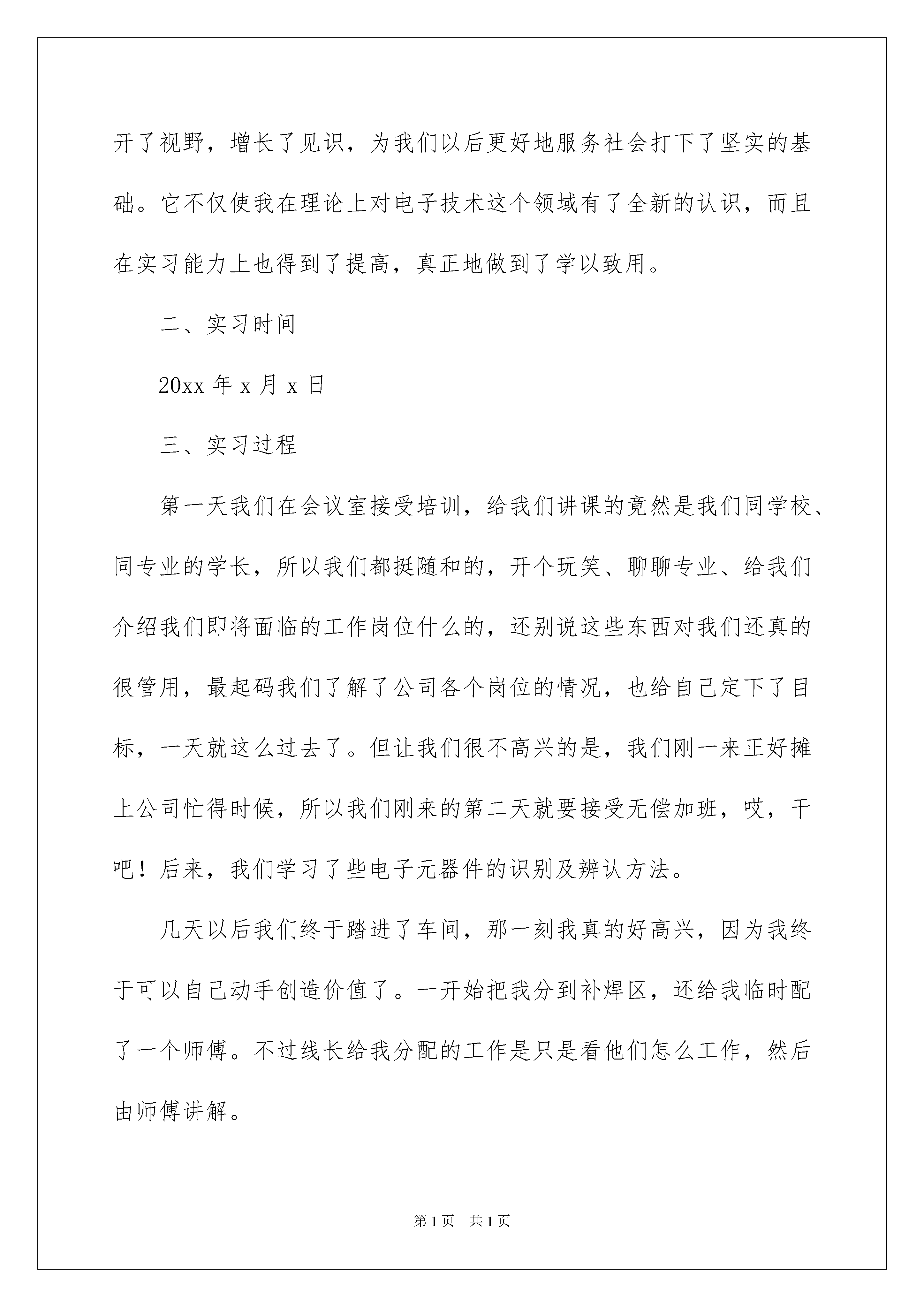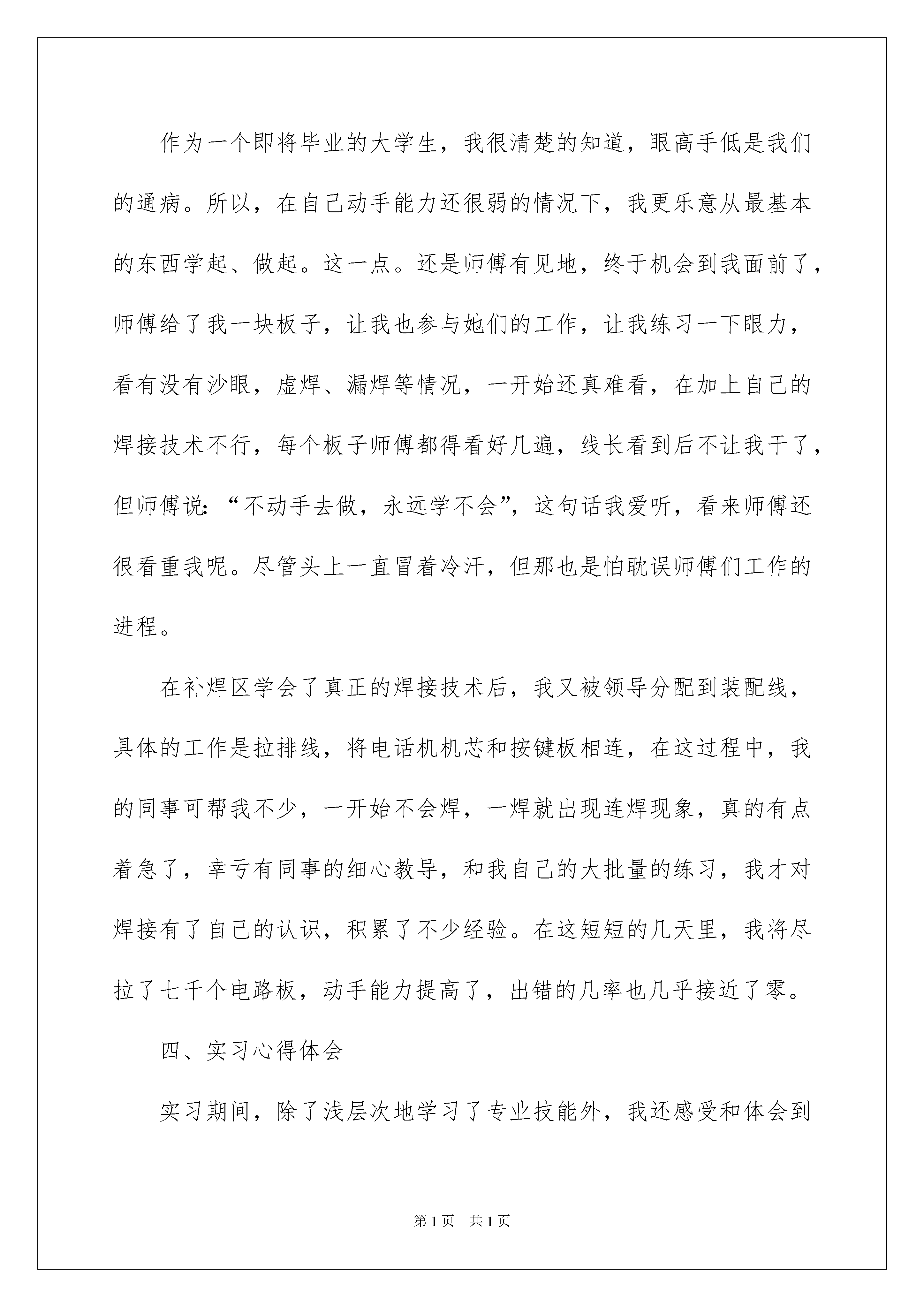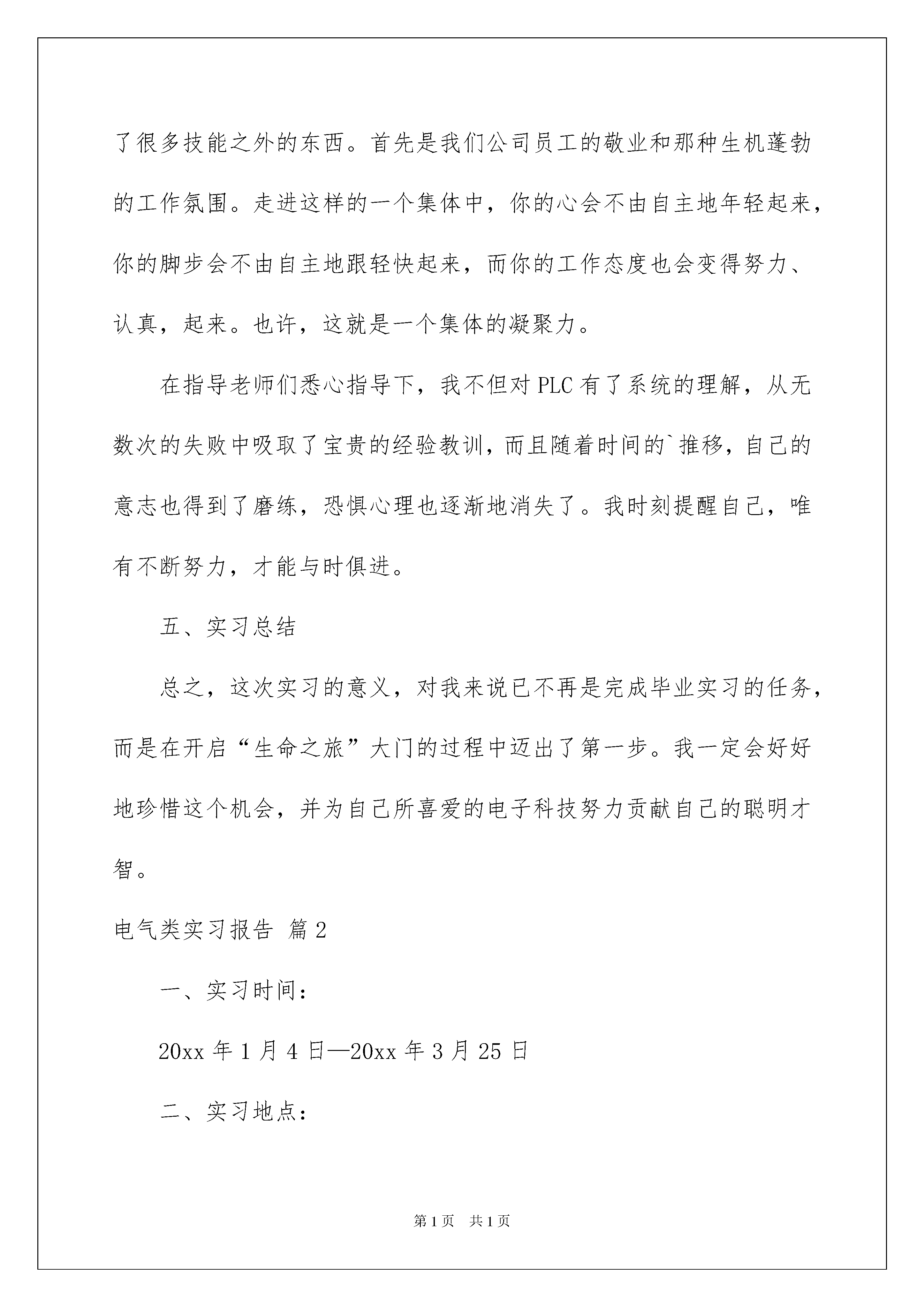 2022实用的电气类实习报告3篇实用的电气类实习报告3篇随着个人的素质不断提高,我们使用报告的情况越来越多,报告具有双向沟通性的特点。你知道怎样写报告才能写的好吗?以下是我收集整理的电气类实习报告3篇,供大家参考借鉴,希望可以帮助到有需要的朋友。电气类实习报告篇1时间飞逝,岁月如梭,不知不觉在xx电子科技有限公司已经实习快半年了,现在停下来往前想想时间过的真的是太匆匆了,这短短几个月的时间,我真的尝到了什么是苦、什么是甜、什么叫做辛酸、什么叫做生活。曾经我迷茫过,曾经我逃避过,曾经我失落过,但我最终还是战胜了自己,我将摆在我面前的困难克服了,所以我觉得我算有了一份自己的成功。以下是我的实习报告。一、实习概况实习是每一个大学毕业生必须拥有的一段经历,它使我们在实习中了解社会,让我们学到了很多在课堂上根本就学不到的知识,也打开了视野,增长了见识,为我们以后更好地服务社会打下了坚实的基础。它不仅使我在理论上对电子技术这个领域有了全新的认识,而且在实习能力上也得到了提高,真正地做到了学以致用。二、实习时间20xx年x月x日三、实习过程第一天我们在会议室接受培训,给我们讲课的竟然是我们同学校、同专业的学长,所以我们都挺随和的,开个玩笑、聊聊专业、给我们介绍我们即将面临的工作岗位什么的,还别说这些东西对我们还真的很管用,最起码我们了解了公司各个岗位的情况,也给自己定下了目标,一天就这么过去了。但让我们很不高兴的是,我们刚一来正好摊上公司忙得时候,所以我们刚来的第二天就要接受无偿加班,哎,干吧!后来,我们学习了些电子元器件的识别及辨认方法。几天以后我们终于踏进了车间,那一刻我真的好高兴,因为我终于可以自己动手创造价值了。一开始把我分到补焊区,还给我临时配了一个师傅。不过线长给我分配的工作是只是看他们怎么工作,然后由师傅讲解。作为一个即将毕业的大学生,我很清楚的知道,眼高手低是我们的通病。所以,在自己动手能力还很弱的情况下,我更乐意从最基本的东西学起、做起。这一点。还是师傅有见地,终于机会到我面前了,师傅给了我一块板子,让我也参与她们的工作,让我练习一下眼力,看有没有沙眼,虚焊、漏焊等情况,一开始还真难看,在加上自己的焊接技术不行,每个板子师傅都得看好几遍,线长看到后不让我干了,但师傅说:“不动手去做,永远学不会”,这句话我爱听,看来师傅还很看重我呢。尽管头上一直冒着冷汗,但那也是怕耽误师傅们工作的进程。在补焊区学会了真正的焊接技术后,我又被领导分配到装配线,具体的工作是拉排线,将电话机机芯和按键板相连,在这过程中,我的同事可帮我不少,一开始不会焊,一焊就出现连焊现象,真的有点着急了,幸亏有同事的细心教导,和我自己的大批量的练习,我才对焊接有了自己的认识,积累了不少经验。在这短短的几天里,我将尽拉了七千个电路板,动手能力提高了,出错的几率也几乎接近了零。四、实习心得体会实习期间,除了浅层次地学习了专业技能外,我还感受和体会到了很多技能之外的东西。首先是我们公司员工的敬业和那种生机蓬勃的工作氛围。走进这样的一个集体中,你的心会不由自主地年轻起来,你的脚步会不由自主地跟轻快起来,而你的工作态度也会变得努力、认真,起来。也许,这就是一个集体的凝聚力。在指导老师们悉心指导下,我不但对PLC有了系统的理解,从无数次的失败中吸取了宝贵的经验教训,而且随着时间的`推移,自己的意志也得到了磨练,恐惧心理也逐渐地消失了。我时刻提醒自己,唯有不断努力,才能与时俱进。五、实习总结总之,这次实习的意义,对我来说已不再是完成毕业实习的任务,而是在开启“生命之旅”大门的过程中迈出了第一步。我一定会好好地珍惜这个机会,并为自己所喜爱的电子科技努力贡献自己的聪明才智。电气类实习报告篇2一、实习时间:20xx年1月4日—20xx年3月25日二、实习地点:XX电源有限公司三、实习目的:毕业实习的质量关系到了毕业设计的好坏,作为大学期间最重要的实习之一,我们认真参与。通过最后一次实习,让学生进一步了解生产现场,把在校期间的学习和生产结合起来,发现自己的不足,温顾已学过的知识。在做毕业设计期间认真改进,为将来快速融入工作打下坚实的基础。四、实习公司简介:毕业实习是我们大学四年最后一次也是最重要的一次实习,它不仅让我们体验到了工厂生产,还给我们制作毕业设计提供了一个很好的机会,因此我们都非常重视。我也一直期待着自己的实习,学校计划毕业实习是大四下学期开始,但由于我已经签了工作,便提前开始了自己的实习生活。这次我实习的地方是XX集团下属的XX电源有限公司。它立于1994年3月,是XX集团核心子公司之一。目前XX集团拥有1家上市公司