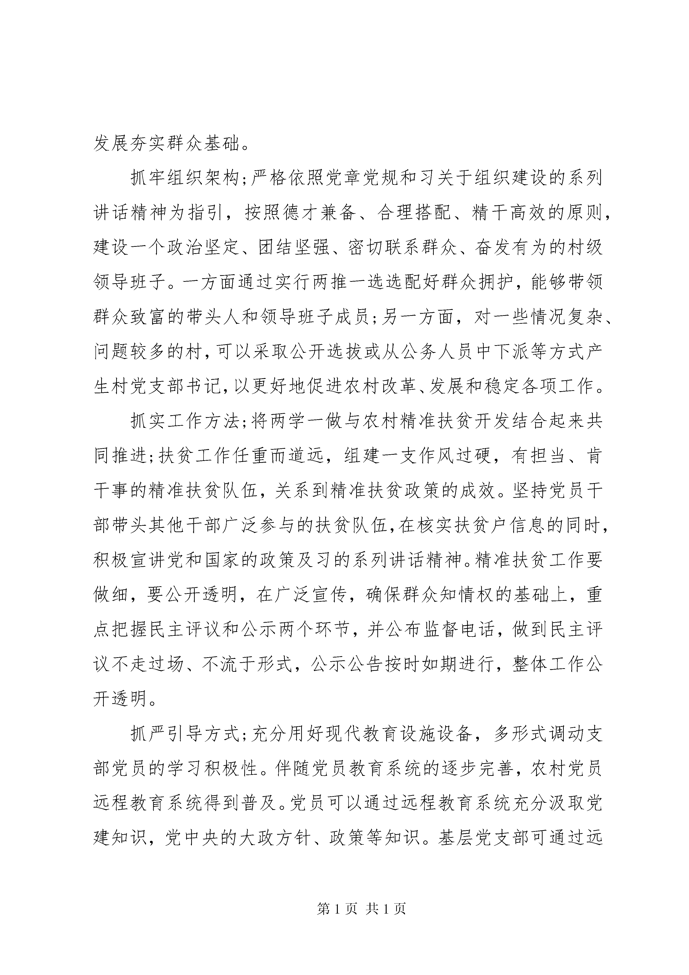 农村两学一做演讲稿为更好地推进两学一做学习教育,增强全局党员党性意识和党性自觉,开展了两学一做的演讲活动,以下是下面范文大全小编整理的相关的演讲内容,快来阅读看看吧。农村两学一做演讲稿强化问题意识、突出问题导向,是党的以来全面从严治党的鲜明特点和成功经验。在两学一做学习教育中,我们必须坚持问题导向,学要带着问题学,做要针对问题改,把发现问题、解决问题贯穿始终,确保学习教育取得实实在在的成效。要在找准问题上下功夫。在的重要指示和各级党委的学习教育方案中,都明确指出了当前基层党组织和党员队伍建设中存在的突出问题,比如,一些基层党组织软弱涣散,政治属性不强,党内政治生活不严肃、不认真、不经常,对党员监督管理不严不实,落实党建工作责任制不到位,等等;一些党员理想信念模糊动摇,党的意识淡化,宗旨观念淡薄,精神不振,道德行为不端,等等。把这些问题找准、找深,是确保学习教育取得实效的前提。落实到各级党组织和每位党员,就是要从问题的挖掘中自觉对照、认真反思,结合实际仔细查找自身存在的问题,深刻剖析问题产生的原因,为精准解决问题奠定基础。要在解决问题上下功夫。衡量学习教育成效如何,关键要看是否解决了问题,要看党员干部在理想信念、党的意识、宗旨观念、道德行为、干事创业等方面是否有提高,要看基层党组织在落实党建责任制、软弱涣散整顿、严肃党内生活、联系服务群众等方面是否有提高。我们要坚持以解决问题为牵引开展学习教育,盯着问题去、对着问题走,把自己摆进去,边学边改、即知即改。要着力克服以往一些部门和单位在教育活动中重形式、走过场,活动完成了效果却一般化的现象。要与教育实践活动和三严三实专题教育问题整改结合起来,持续深入纠正四风抓好不严不实问题整改,整治群众身边的不正之风,使解决问题前后呼应、接续推进。两学一做突出问题导向是全面从严治党向基层延伸的基本要求,各级党组织和全体党员在两学一做学习教育中,应边学边改、边查边改,快刀斩乱麻刮骨疗毒以解决问题的实际成效推动全体党员的综合素质进一步提升,党组织的战斗堡垒作用进一步发挥,党领导的各项事业持续健康发展。农村两学一做演讲稿基层党组织在我国分布最广、吸纳党员人数最多、最贴近广大群众。如何管理好党员,发挥好基层党组织的先锋模范作用、战斗堡垒作用,继而带动群众积极参与到国家发展建设中,推动国家长治久安、协调发展。夯实群众基础需要党员、党组的模范带头作用。工欲善其事,必先利其器积极响应党中央的号召,认真开展两学一做教育活动,加强基层党组织建设,为党和国家的发展夯实群众基础。抓牢组织架构;严格依照党章党规和习关于组织建设的系列讲话精神为指引,按照德才兼备、合理搭配、精干高效的原则,建设一个政治坚定、团结坚强、密切联系群众、奋发有为的村级领导班子。一方面通过实行两推一选选配好群众拥护,能够带领群众致富的带头人和领导班子成员;另一方面,对一些情况复杂、问题较多的村,可以采取公开选拔或从公务人员中下派等方式产生村党支部书记,以更好地促进农村改革、发展和稳定各项工作。抓实工作方法;将两学一做与农村精准扶贫开发结合起来共同推进;扶贫工作任重而道远,组建一支作风过硬,有担当、肯干事的精准扶贫队伍,关系到精准扶贫政策的成效。坚持党员干部带头其他干部广泛参与的扶贫队伍,在核实扶贫户信息的同时,积极宣讲党和国家的政策及习的系列讲话精神。精准扶贫工作要做细,要公开透明,在广泛宣传,确保群众知情权的基础上,重点把握民主评议和公示两个环节,并公布监督电话,做到民主评议不走过场、不流于形式,公示公告按时如期进行,整体工作公开透明。抓严引导方式;充分用好现代教育设施设备,多形式调动支部党员的学习积极性。伴随党员教育系统的逐步完善,农村党员远程教育系统得到普及。党员可以通过远程教育系统充分汲取党建知识,党中央的大政方针、政策等知识。基层党支部可通过远程教育系统全覆盖、常态化、重创新、求实效,面向全体党员,加强分类指导,组织听党课、学党章党规、学习系列重要讲话精神,开展党员学习交流讨论。并结合三会一课等日常教育形式的优势。通过发挥党员的积极性、创造性将两学一做真正落实到每一个党员头上。从而实现基层党组织在抓党建、促扶贫,发挥党组织在精准扶贫、精准脱贫中的政治优势、组织优势。农村作为我党带领人民群众取得民主革命胜利的基地,更应成为新的历史条件下建设富强、民主、文明的社会主义现代化国家的根据地。努力践行两学一做建设更加坚强有力的基层党组织、党员干部队伍,充分发挥农村党支部的战斗堡垒作用,为推进党中央的决策部署在基层落地、落实,确保十三五建设的良好开局创建坚实有力的组织基础。持续健康发展。农村两学一做演讲稿20xx年作为深化改革之年,全面建设小康社会关键之年,身为党员干部应提高思想认识,认真学习贯彻两学一做党员教育活动,将自己投
