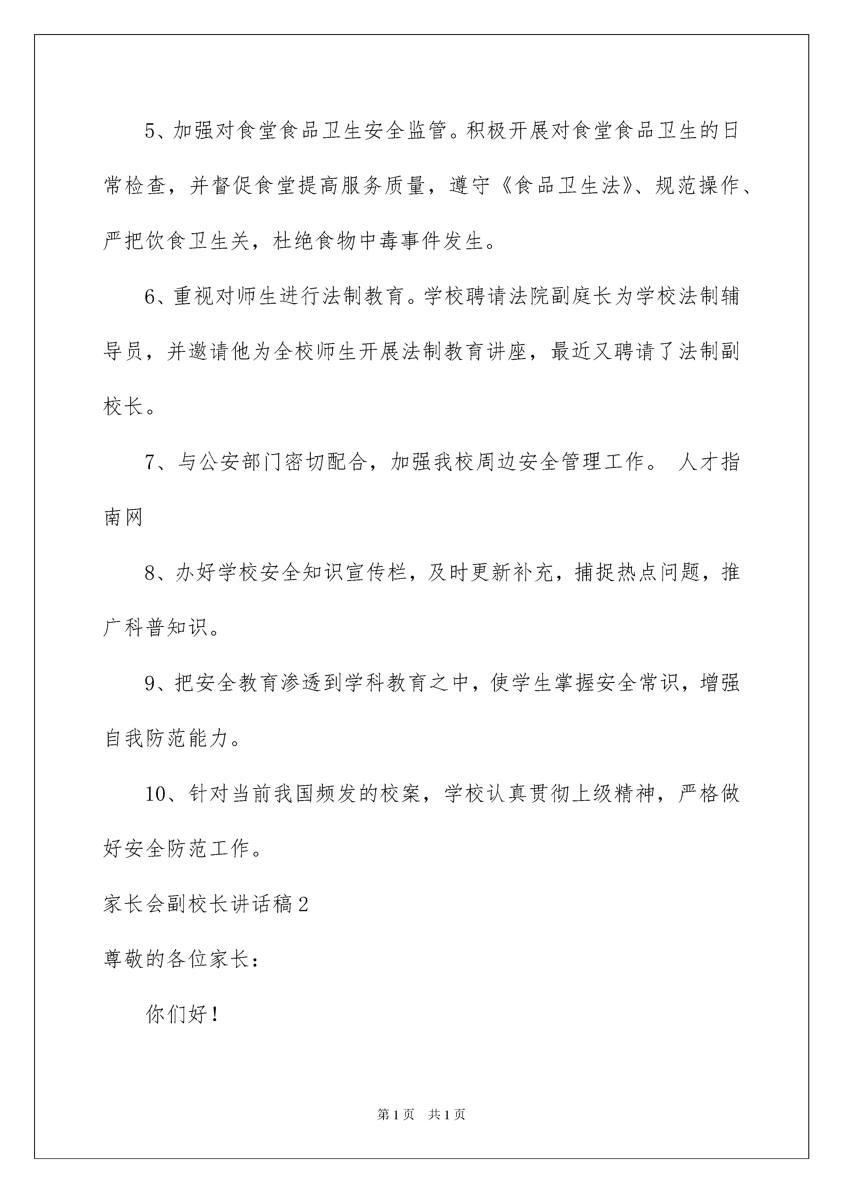2022家长会副校长讲话稿家长会副校长讲话稿在当今社会生活中,用到讲话稿的地方越来越多,讲话稿是指把在一定场合下所要讲的话事先用文字有条理的写出来的文稿。相信许多人会觉得讲话稿很难写吧,以下是我整理的家长会副校长讲话稿,仅供参考,欢迎大家阅读。家长会副校长讲话稿1尊敬的各位家长:大家好!今天我们相聚在这里举行家长会。在此,谨让我代表学校党政领导班子向你们表示热烈欢迎和衷心感谢!光阴似箭,转眼间,这个学期已经过半,上一周我校进行了半期考。为此,我们利用这个双休日召开家长会,目的是让大家进一步了解学校的情况,以及孩子在校的表现和本次半期考试的成绩,共同探讨如何让孩子们都能好好学习,健康成长。今天我们的会议就是围绕这一主题展开的。今天会议分为两个阶段,第一阶段集中在这里开大会,第二阶段到你们孩子所在班级,与班主任及课任老师进行相互交流。下面我主要讲两方面内容:一是简要介绍今年以来学校抓教育教学的情况;二是提出目前存在的一些问题及建议。一、学校半学期以来工作情况xx-xx年,我们提出了实现一个目标:争创文明学校;突出两项重点:提升教育质量和形成办学特色;落实四项工作:德育工作为首位,教学工作为中心,后勤工作为保障,党群工作促发展;实施六大工程:名师工程、青蓝工程(培养年青教师)、明星工程(明星师生)、帮扶工程(扶持学困生)、联通工程(家校社区联系)、创新工程的工作思路。半学期以来,我们按照工作思路做好各项工作。下面着重介绍几方面工作:(一)加强学生思想道德教育。1、继续抓好学生的行为规范教育。开学以来,我们狠抓了学生早读、早操、晚自修、仪容仪表等方面的工作,目的是养成他们良好的生活习惯和学风。狠抓了学生的上课常规,目的是养成他们良好的学习习惯。现在,学生的一日常规得到了强化,学生的精神面貌有了更大的起色。今后,我们还将继续抓好学生的文明礼貌习惯,良好的生活、学习习惯和遵章守纪的习惯养成教育。2、进行感恩教育。结合现在独生子女的现实,我校开展了“感恩父母、感恩祖国、感恩老师”的系列感恩活动,在拗九节进行“尊老、爱亲、感恩”教育,让学生知道自己成长过程中父母、老师的艰辛,学会感恩。3、进行爱国主义和民族精神教育。开展清明节组织学生前往烈士陵园扫墓等活动4、开展“学习榜样、表彰先进、争做优秀学生”、评选校园之星活动。涌现出大量优秀的学生,树立了榜样,形成了良好氛围,学校拨出2万多元为品学兼优、工作积极、进步显着的学生予以表彰奖励。5、开展献爱心教育。组织学生为遭受旱灾、震灾地区人民以及本县外校一名患重病同学捐款献爱心。6、开展廉政文化进校园活动。结合教师学习《廉政准则》同时进行。7、做好广场文艺晚会前期工作。为汇报我校素质教育成果,展示我校师生的艺术风采,呈现我校办学特色,体现向真、向善、向美、向上的校园文化,定于5月下旬举行对外开放的广场文艺晚会。(二)加强安全防范工作。学校始终把安全工作放在首位。学校各项活动都制订预案,落实到位,年初聘请了保安人员,放学时段负责维持路口-交通秩序,平时负责学校安全巡逻。在节假日期间向家长发“致家长一封信”,加强家校联系,共同教育孩子注意安全。1、紧绷安全责任弦。按照本县《校园维护稳定工作若干制度》,健全各项应急处置工作预案,落实安全工作责任制、责任追究制和情况通报制。学校要求行政干部实行坐班制以及值日制度,并实行首问责任制。年段室安排值班老师每天两人值勤,负责接待家长,督促班级卫生、学生课间活动,及时处理应急事件,为家长、学生排忧解难。2、签订安全责任书。开学初,校长与分管领导、处室主任签订了安全责任书。德育处与各年段、班级、家长签订安全责任状,真正做到落实责任到位。学校要求班主任坚持开展“每天5分钟安全教育”,杜绝安全事故的发生。3、开展逃生、消防演练。组织师生开展逃生、消防演练活动,以提高全体师生安全意识和安全防范能力。人才指南网4、定期开展生指保卫工作人员会议,加强寄宿生的教育管理,生活指导,加强晚自修管理工作。5、加强对食堂食品卫生安全监管。积极开展对食堂食品卫生的日常检查,并督促食堂提高服务质量,遵守《食品卫生法》、规范操作、严把饮食卫生关,杜绝食物中毒事件发生。6、重视对师生进行法制教育。学校聘请法院副庭长为学校法制辅导员,并邀请他为全校师生开展法制教育讲座,最近又聘请了法制副校长。7、与公安部门密切配合,加强我校周边安全管理工作。人才指南网8、办好学校安全知识宣传栏,及时更新补充,捕捉热点问题,推广科普知识。9、把安全教育渗透到学科教育之中,使学生掌握安全常识,增强自我防范能力。10、针对当前我国频发的校案,学校认真贯彻上级精神,严格