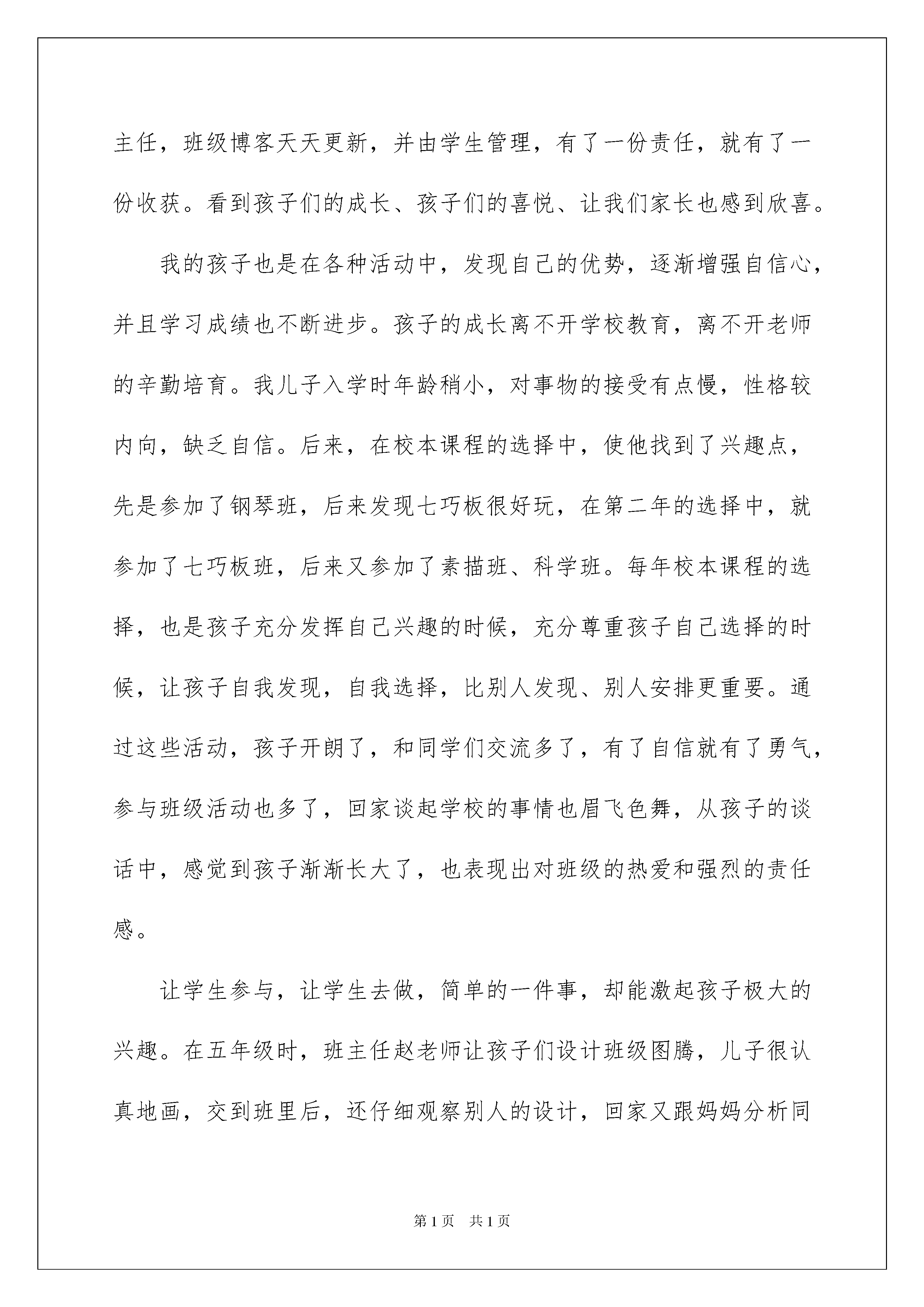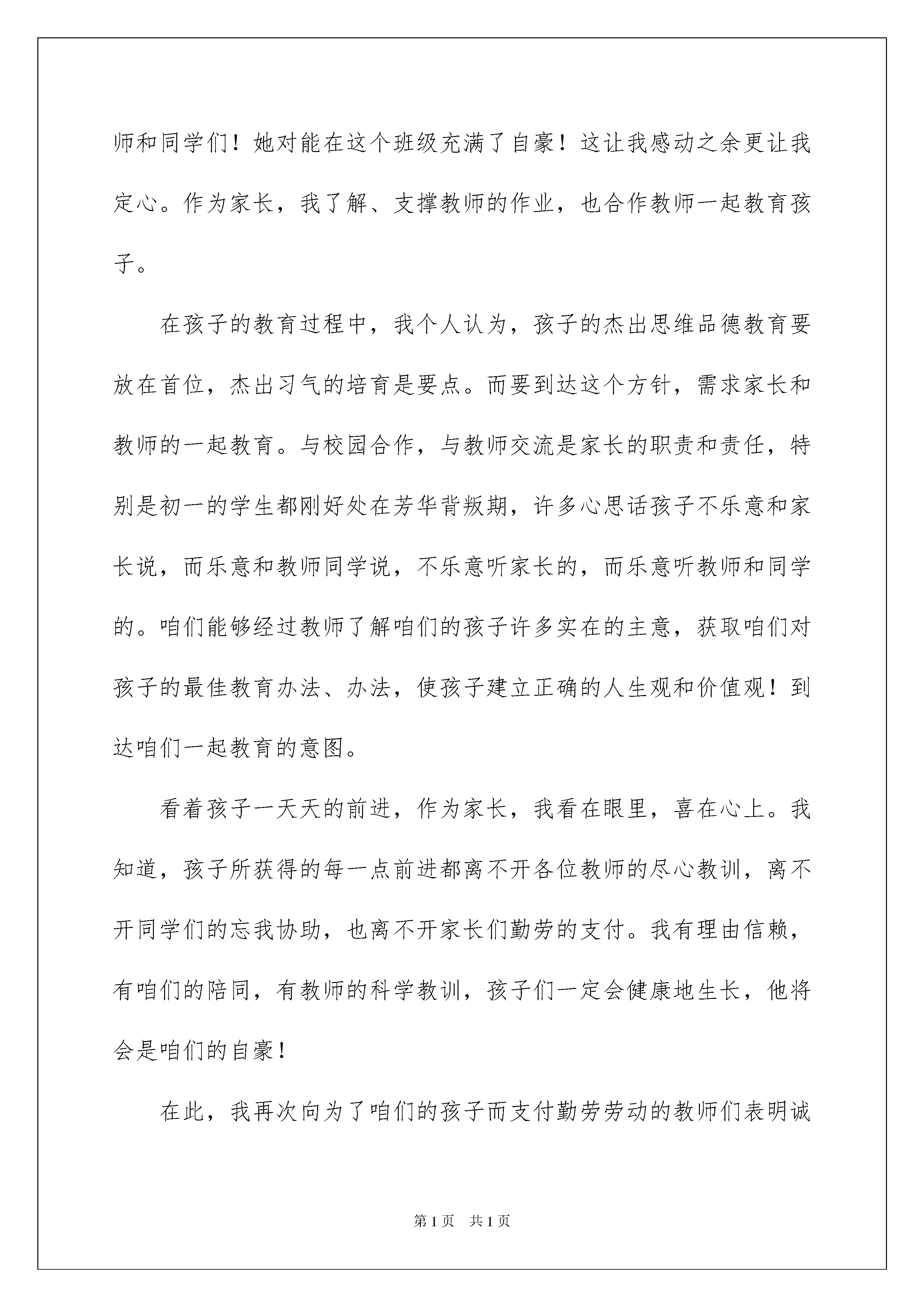 2022家长会的发言稿(精选5篇)家长会的发言稿(精选5篇)在现实社会中,发言稿与我们的生活息息相关,发言稿的写法比较灵活,结构形式要求也不像演讲稿那么严格,可以根据会议的内容、一件事事后的感想、需要等情况而有所区别。如何写一份恰当的发言稿呢?以下是我为大家整理的家长会的发言稿(精选5篇),欢迎大家分享。家长会的发言稿1尊敬的学校领导,各位老师、家长朋友们:大家好!我是xxx的家长。很侥幸能在这儿作为家长代表讲话。首要请答应我代表各位家长朋友,向尽心教育和关怀咱们孩子生长的教师表明崇高的敬意和诚心的感谢!孩子进到校园将近两个月了,每次回家孩子们都会对咱们讲校园又展开了什么活动,教师怎么样上课,同学怎么样共处,这让我感觉孩子在这个校园,在这个班级日子、学习真的是高兴。她喜爱她的教师和同学们!她对能在这个班级充满了自豪!这让我感动之余更让我定心。作为家长,我了解、支撑教师的作业,也合作教师一起教育孩子。在孩子的教育过程中,我个人认为,孩子的杰出思维品德教育要放在首位,杰出习气的培育是要点。而要到达这个方针,需求家长和教师的一起教育。与校园合作,与教师交流是家长的职责和责任,特别是初一的学生都刚好处在芳华背叛期,许多心思话孩子不乐意和家长说,而乐意和教师同学说,不乐意听家长的,而乐意听教师和同学的。咱们能够经过教师了解咱们的孩子许多实在的主意,获取咱们对孩子的最佳教育办法、办法,使孩子建立正确的人生观和价值观!到达咱们一起教育的意图。看着孩子一天天的前进,作为家长,我看在眼里,喜在心上。我知道,孩子所获得的每一点前进都离不开各位教师的尽心教训,离不开同学们的忘我协助,也离不开家长们勤劳的支付。我有理由信赖,有咱们的陪同,有教师的科学教训,孩子们一定会健康地生长,他将会是咱们的自豪!在此,我再次向为了咱们的孩子而支付勤劳劳动的教师们表明诚心的感谢!祝福一切的教师和家长朋友们身体健康、作业顺利!谢谢咱们!家长会的发言稿2尊敬的学校领导,各位老师、家长朋友们:大家好!首先自我介绍一下,我是八年三班xxx同学的家长,十分感谢学校给我创造这么好的一个机会,让我站在这里和大家共同探讨孩子的成长教育,我感到十分荣幸。我的女儿去年升入初中,当时我犹豫了很久,在如今家长都把孩子送入市内念书的大潮中,我选择了双羊中学。一年多来,孩子变得更加朴实、勤奋、刻苦、不事张扬,得到了大家的肯定,借此机会,我特别感谢各位老师对孩子无微不至的关爱。作为家长,我时刻关注着孩子的学习,更加关注学校的教学。去年学校引进了“小组积分制”的教学,当时听孩子说起,还不太理解,怕他分心,怕影响到她的学习成绩,事实证明,我的担心是多余的,原来这种教学的精髓就是合作,共同进步。在物欲横流,私有化严重的当下,孩子们的合作意识并不强烈,事不关己,高高挂起的思想非常严重,所以,每个孩子都需要这种帮助,团结合作精神的熏陶和教育。亲爱的孩子们,积分教学,小组合作,你们一路前行,梁启超先生曾经说过:少年富则国富,少年强则国强。我相信,你们的课堂会更加精彩,你们的未来会更加美好!家长会的发言稿3尊敬的学校领导,各位老师、家长朋友们:大家好!首先感谢学校给我这个机会,和大家共同探讨孩子的成长教育。xxx小学关于素质教育的理念体现在学校教育的各个方面:校本课程,给孩子们带来极大的兴趣和启发,培养了孩子的创新能力,充分发挥孩子的特长;校园节日丰富多彩,体育节、读书节、艺术节、科技节,每个节日同学们都积极参加,也涌现出一批批节日小明星;学校种的葫芦长廊、养的广场鸽子无处不体现出学校新教育的理念已深入到日常教育的方方面面,让孩子们的兴趣、创造力得到充分体现和发挥。我孩子叫赵海程,所在的六年级8班,赵老师的班级管理方式也得到家长的认同,让每个孩子参与班级管理,每个孩子都是副班主任,班级博客天天更新,并由学生管理,有了一份责任,就有了一份收获。看到孩子们的成长、孩子们的喜悦、让我们家长也感到欣喜。我的孩子也是在各种活动中,发现自己的优势,逐渐增强自信心,并且学习成绩也不断进步。孩子的成长离不开学校教育,离不开老师的辛勤培育。我儿子入学时年龄稍小,对事物的接受有点慢,性格较内向,缺乏自信。后来,在校本课程的选择中,使他找到了兴趣点,先是参加了钢琴班,后来发现七巧板很好玩,在第二年的选择中,就参加了七巧板班,后来又参加了素描班、科学班。每年校本课程的选择,也是孩子充分发挥自己兴趣的时候,充分尊重孩子自己选择的时候,让孩子自我发现,自我选择,比别人发现、别人安排更重要。通过这些活动,孩子开朗了,和同学们交流多了,有了自信就有了勇气,参与班级活动也多了,回家谈起学