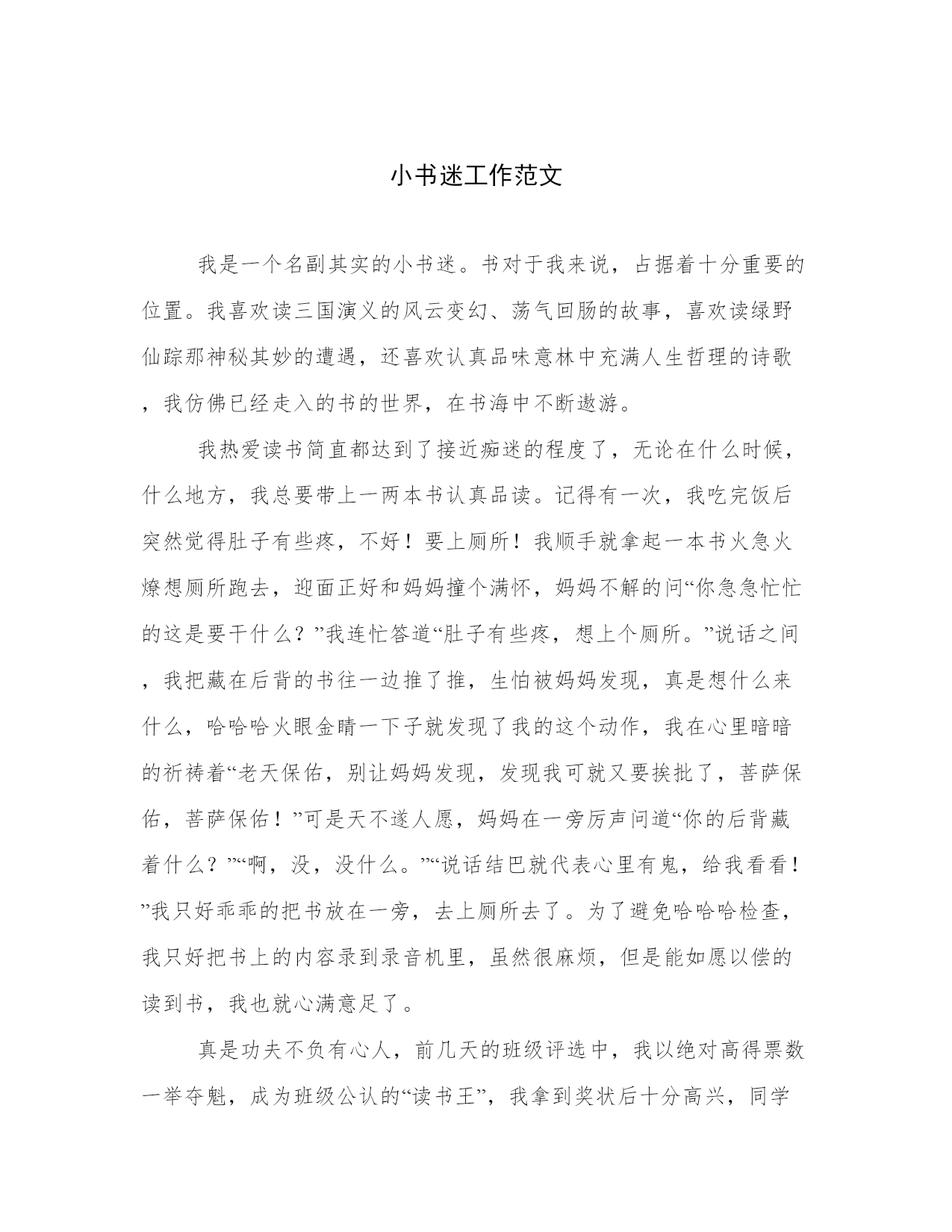 小书迷工作范文我是一个名副其实的小书迷。书对于我来说,占据着十分重要的位置。我喜欢读三国演义的风云变幻、荡气回肠的故事,喜欢读绿野仙踪那神秘其妙的遭遇,还喜欢认真品味意林中充满人生哲理的诗歌,我仿佛已经走入的书的世界,在书海中不断遨游。我热爱读书简直都达到了接近痴迷的程度了,无论在什么时候,什么地方,我总要带上一两本书认真品读。记得有一次,我吃完饭后突然觉得肚子有些疼,不好!要上厕所!我顺手就拿起一本书火急火燎想厕所跑去,迎面正好和妈妈撞个满怀,妈妈不解的问“你急急忙忙的这是要干什么?”我连忙答道“肚子有些疼,想上个厕所。”说话之间,我把藏在后背的书往一边推了推,生怕被妈妈发现,真是想什么来什么,哈哈哈火眼金睛一下子就发现了我的这个动作,我在心里暗暗的祈祷着“老天保佑,别让妈妈发现,发现我可就又要挨批了,菩萨保佑,菩萨保佑!”可是天不遂人愿,妈妈在一旁厉声问道“你的后背藏着什么?”“啊,没,没什么。”“说话结巴就代表心里有鬼,给我看看!”我只好乖乖的把书放在一旁,去上厕所去了。为了避免哈哈哈检查,我只好把书上的内容录到录音机里,虽然很麻烦,但是能如愿以偿的读到书,我也就心满意足了。真是功夫不负有心人,前几天的班级评选中,我以绝对高得票数一举夺魁,成为班级公认的“读书王”,我拿到奖状后十分高兴,同学们纷纷投来羡慕的目光,我在大家的鼓励下说出了我的读书秘诀“只要肯读,肯思考,就会品读到书本的无穷乐趣,书也就不那么枯燥了。”讲台下顿时响起了一阵热烈的掌声。我就是这样一个小书迷,喜欢吗?