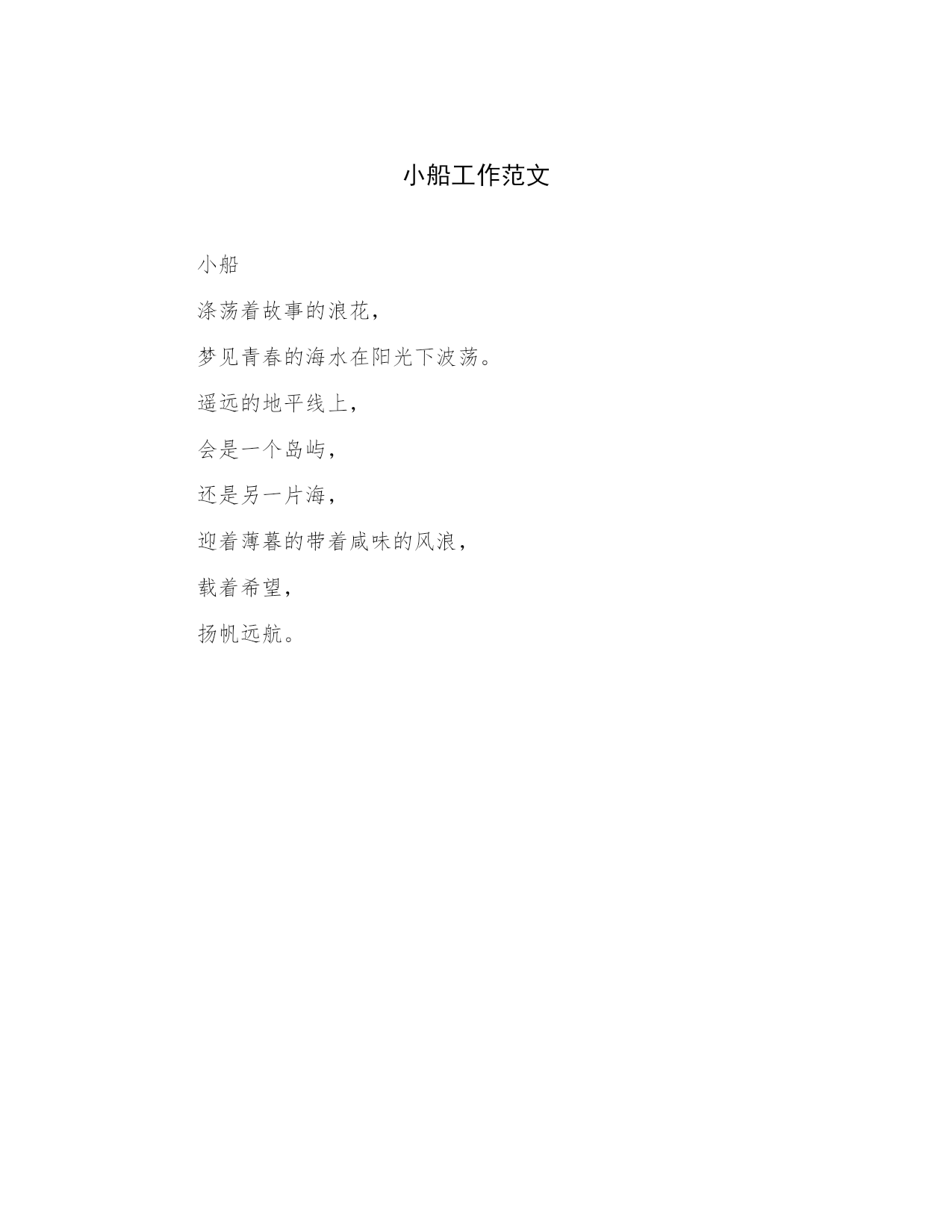 小船工作范文小船涤荡着故事的浪花,梦见青春的海水在阳光下波荡。遥远的地平线上,会是一个岛屿,还是另一片海,迎着薄暮的带着咸味的风浪,载着希望,扬帆远航。