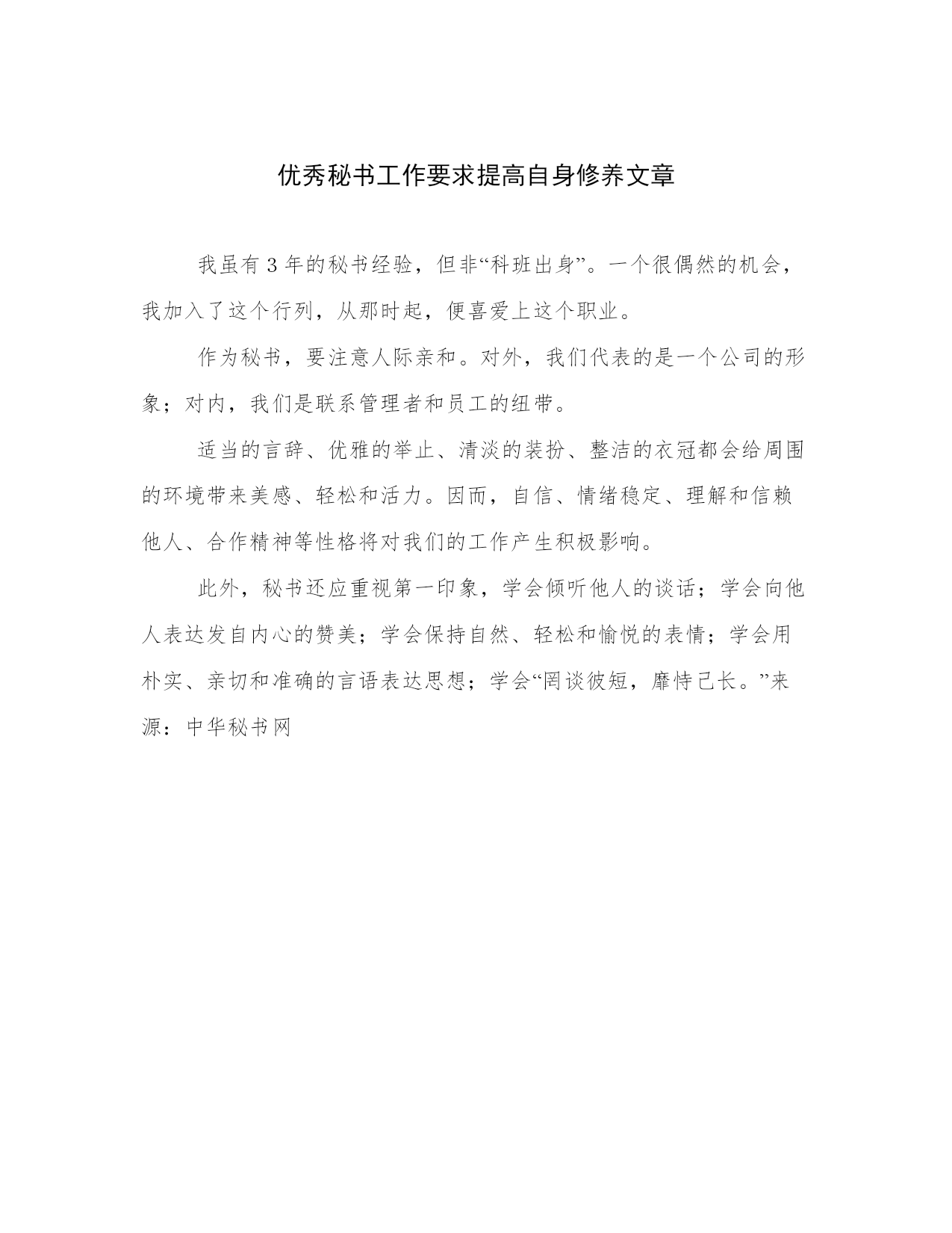 优秀秘书工作要求提高自身修养文章我虽有3年的秘书经验,但非“科班出身”。一个很偶然的机会,我加入了这个行列,从那时起,便喜爱上这个职业。作为秘书,要注意人际亲和。对外,我们代表的是一个公司的形象;对内,我们是联系管理者和员工的纽带。适当的言辞、优雅的举止、清淡的装扮、整洁的衣冠都会给周围的环境带来美感、轻松和活力。因而,自信、情绪稳定、理解和信赖他人、合作精神等性格将对我们的工作产生积极影响。此外,秘书还应重视第一印象,学会倾听他人的谈话;学会向他人表达发自内心的赞美;学会保持自然、轻松和愉悦的表情;学会用朴实、亲切和准确的言语表达思想;学会“罔谈彼短,靡恃己长。”来源:中华秘书网