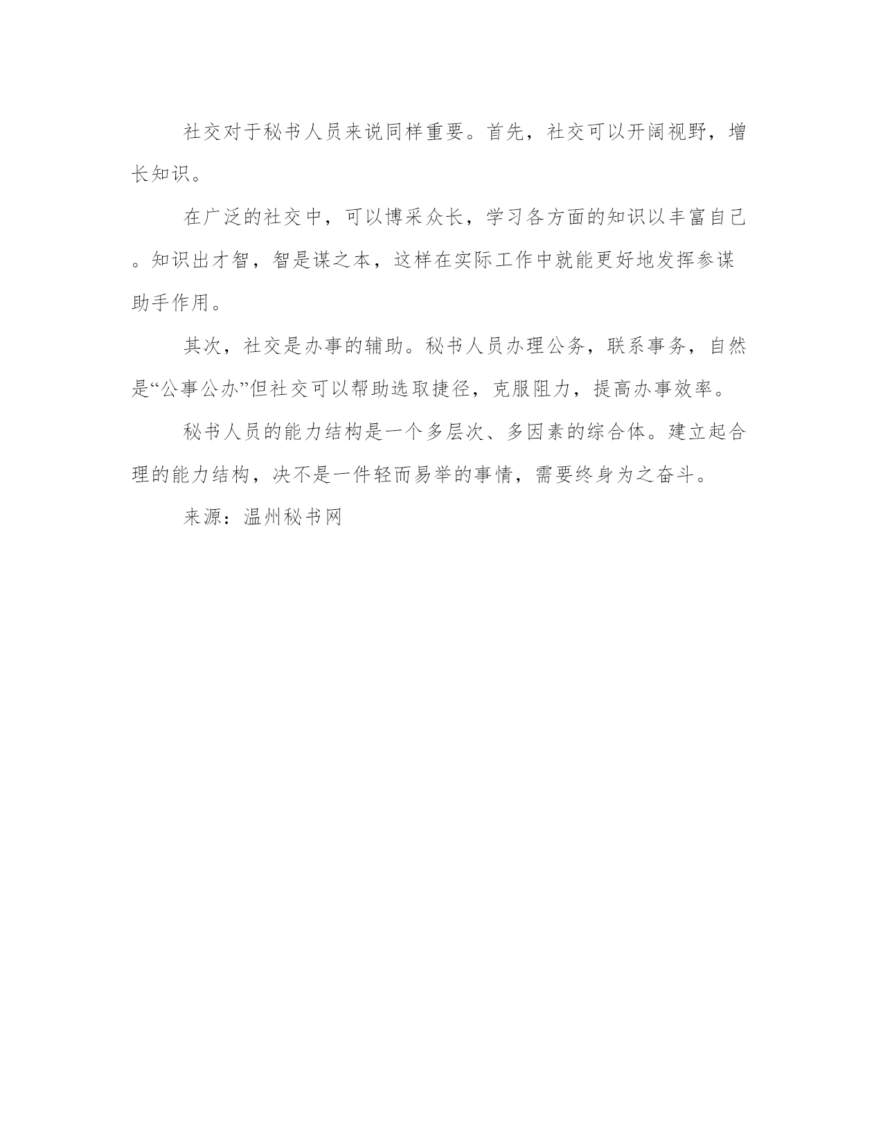 精选秘书人员的能力素养工作文档秘书人员作为领导的参谋和助手,一方面要积极主动地献计献策,另一方面还要具备瘵自己的聪明才智融进领导者的决策过程之中的能力。这就要求秘书人员不仅掌握足够的知识,还要具有合理的能力结构。合理的能力结构,是一个广义的概念,它主要是指由基本能力和专业能力组成的立体的能力结构。一、秘书人员的基本能力所谓基本能力,主要是指秘书人员的智力,包括敏锐的观察能力、良好的记忆能力、丰富的想象能力和科学的思维能力。这是秘书人员赖以吸收外界知识的能力,也是其他能力的基础。(一)敏锐的观察能力(二)良好的记忆能力(三)丰富的想象力(四)科学的思维能力二、秘书人员的专业能力秘书人员的专业能力,主要是指语言文字应用能力、组织能力、判断能力、应变能力和社交能力。(一)较高的文字水平。秘书人员工作中的一个重要任务,就是从事大量的文字工作,几乎天天都要修改或草拟文稿。因此,秘书人员必须具备扎实的文字功底,不仅要精通语法、修辞和逻辑知识,还要掌握一定的写作规律。汉语词语浩瀚,文体广博,这为文字工但是,写作是一种综合能力的表现,要做到内容与形式的统一,既要有好的表现形式,又要有充实的内内容,并不是一件轻而易举的事。这就要求秘书人员加强写作实践,熟练掌握各类公文的特点、写作要求和语言表达技巧,随时注意积累资料,不断提高写作水平。要注意文风的改革,培养洗炼的文字表达能力。(二)较强的组织能力。现代的秘书人员,既不是那种整天伏案看文件、写文章的纯“文牍性”人才,也不是那种只会“捆捆扎扎、收收发发”的简单劳动者,而是具有一定的组织和管理能力的人才。根据职责的要求,秘书人员经常要按照领导的意图组织各类活动,如果缺乏一些现代的、科学的组织管理能力,就无法把工作搞好。对此,秘书人员一方面要通晓办事的渠道,提高办事的效能,平时多接触一些具体事物,处处留意他人和自己的上级是如何处理问题的,不断增加自己的阅历和经验。另一方面要用系统的观点,统筹安排工作。(三)准确的判断能力。(四)敏捷的应变能力。(五)广泛的社交能力。当前,社会交往已成为社会各阶层的一项“热门”活动。社交对于秘书人员来说同样重要。首先,社交可以开阔视野,增长知识。在广泛的社交中,可以博采众长,学习各方面的知识以丰富自己。知识出才智,智是谋之本,这样在实际工作中就能更好地发挥参谋助手作用。其次,社交是办事的辅助。秘书人员办理公务,联系事务,自然是“公事公办”但社交可以帮助选取捷径,克服阻力,提高办事效率。秘书人员的能力结构是一个多层次、多因素的综合体。建立起合理的能力结构,决不是一件轻而易举的事情,需要终身为之奋斗。来源:温州秘书网