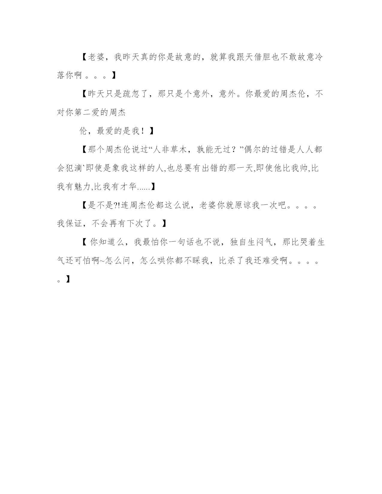 最新老公的检讨书文章【老婆首先要说一句对不起。】【昨天的事我感到很抱歉,我居然认不得路。让你白跑了那么多冤枉路。。。】【吃烧烤的时候我居然忘了问你想吃什么,只顾着和其他女孩子讲话,冷落了我们家宝宝,让老婆你伤心。】【这种低级错误,我保证以后不会再犯了,如果有下次,就让宝宝咬我一百次(咬嘴哦。。)】【其实。。。。。】【嘿嘿,你生气的时候好可爱的,】【用王超的话说就是“肥嘟嘟的你”小嘴撅起来,脸憋的红通通的,眼泪水还不停的往下掉,好像芭比娃娃的,】【要不是你在生着气,我一定狠狠的捏你几下。。。。】【不就是那么点大的事么。至于哭成那样么。。。让我既觉得心疼,又觉得你稚嫩。永远长不大。不过我就是喜欢你傻乎乎的。。。。】【我觉得在自己爱的人面前,女孩子没必要那么聪明的对吧。。。像老婆你这样就刚刚好。偶尔显露点小聪明。关键时候就只会围在我身边问“怎么办啊。。。”当然,免不了的是小嘴要嘟起来问。】【不对不对,偏题了。】【老婆,我昨天真的你是故意的,就算我跟天借胆也不敢故意冷落你啊。。。】【昨天只是疏忽了,那只是个意外,意外。你最爱的周杰伦,不对你第二爱的周杰伦,最爱的是我!】【那个周杰伦说过“人非草木,孰能无过?”偶尔的过错是人人都会犯滴`即使是象我这样的人,也总要有出错的那一天,即使他比我帅,比我有魅力,比我有才华......】【是不是?!连周杰伦都这么说,老婆你就原谅我一次吧。。。。我保证,不会再有下次了。】【你知道么,我最怕你一句话也不说,独自生闷气,那比哭着生气还可怕啊~怎么问,怎么哄你都不睬我,比杀了我还难受啊。。。。。】
