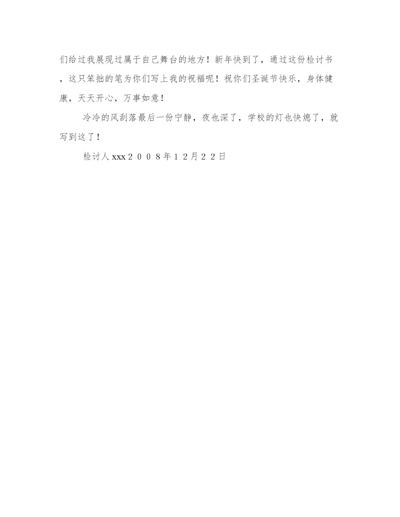 优选大学旷课检讨书工作文档尊敬的系领导.您好!我是07级酒店管理1班的学子xxx,因旷课而写这份检讨书,面对这突如其来的这些旷课.我很茫然,也很无奈!就那区区的十三节旷课,让我背负了受处分的责任!我不怪任何人,的确我旷了那么多节课呢!但此时心中莫名其妙的回想起我哥结婚的那段时间了!我没有请假就跑回家了,也许是我不喜欢去系办请假吧!也许是我不喜欢向班干部请假吧!也许是我的一个借口!但一向来我喜欢做什么就做什么呢!但对于重要的课程我没缺过,我很勇敢的说!听到自律委员叫我去开会的时候,我带着一份吃惊,一份伤感的走进教师.406教室的气氛让我的心和紧张纠结在一起!心一直的在想就那区区的十几节课会那么严重嘛!听到何老师说的不好之外在也没什么好的了!才发现自己的想法错了!但我欣然的接受批评和责骂,甚至才发现我来都海职院到底是得到什么呢!心不由的平静下来呢!今晚上的天气有点冷,但无法抑制我心中那份过错!在此感谢领导给我这次改过自新的机会,也感谢何老师这样的批评我们,让我不得没有信服你的理由!从今以后我会对我的行为负债,我会改,试着去努力做好一个属于自己的我.不管是纪律上,还是人格上,我都会试着去改变呢!也很感谢你们给我写这份检讨书,让我和你们进一步靠近呢!也感谢你们给过我展现过属于自己舞台的地方!新年快到了,通过这份检讨书,这只笨拙的笔为你们写上我的祝福呢!祝你们圣诞节快乐,身体健康,天天开心,万事如意!冷冷的风刮落最后一份宁静,夜也深了,学校的灯也快熄了,就写到这了!检讨人xxx2008年12月22日