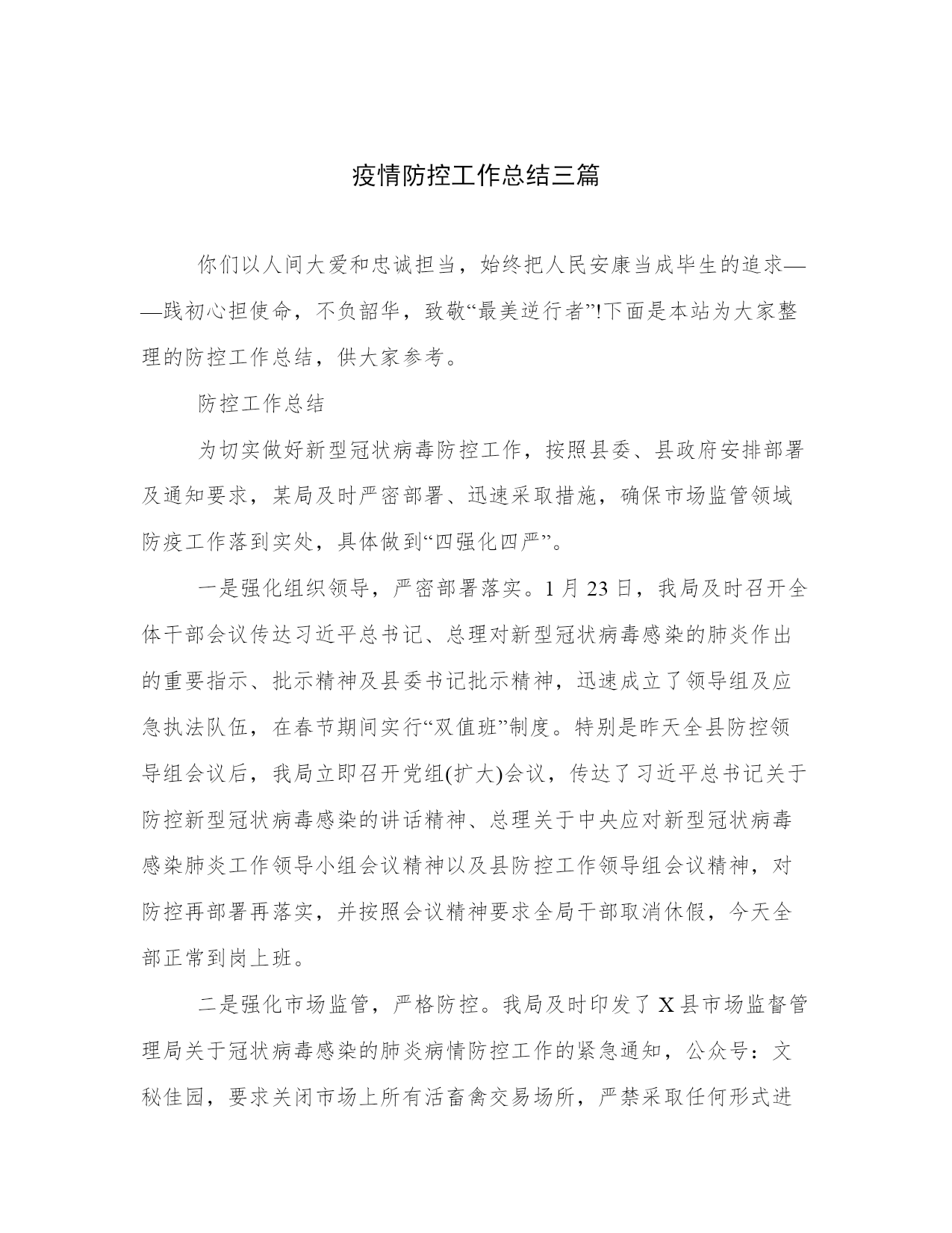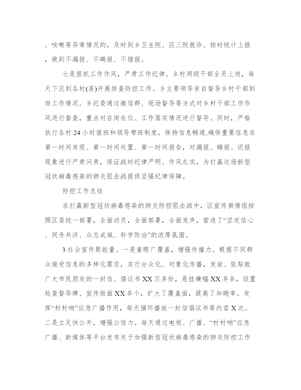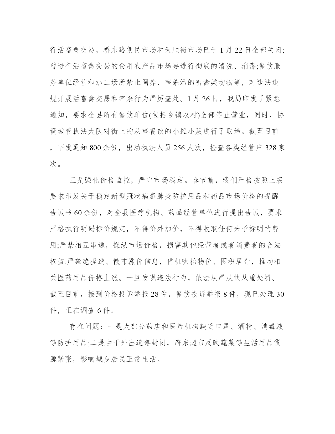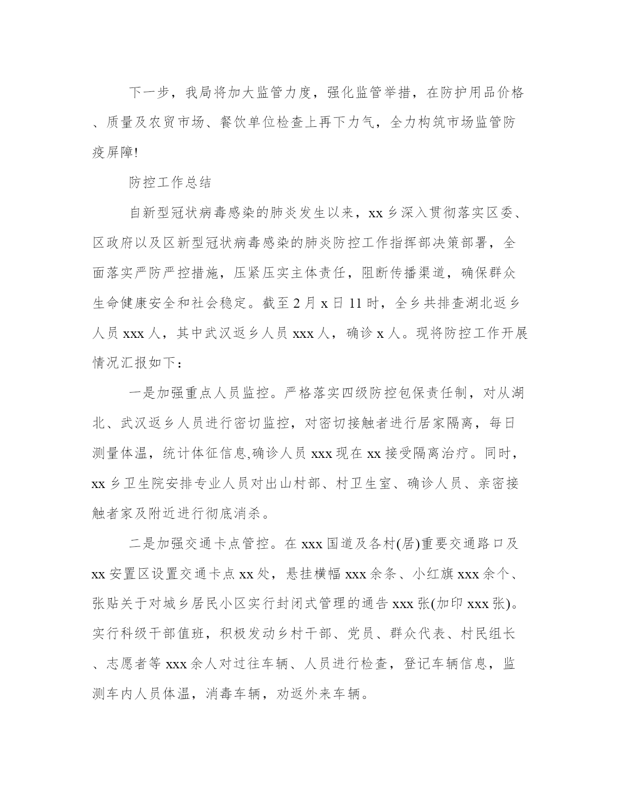 疫情防控工作总结三篇你们以人间大爱和忠诚担当,始终把人民安康当成毕生的追求——践初心担使命,不负韶华,致敬“最美逆行者”!下面是本站为大家整理的防控工作总结,供大家参考。防控工作总结为切实做好新型冠状病毒防控工作,按照县委、县政府安排部署及通知要求,某局及时严密部署、迅速采取措施,确保市场监管领域防疫工作落到实处,具体做到“四强化四严”。一是强化组织领导,严密部署落实。1月23日,我局及时召开全体干部会议传达习近平总书记、总理对新型冠状病毒感染的肺炎作出的重要指示、批示精神及县委书记批示精神,迅速成立了领导组及应急执法队伍,在春节期间实行“双值班”制度。特别是昨天全县防控领导组会议后,我局立即召开党组(扩大)会议,传达了习近平总书记关于防控新型冠状病毒感染的讲话精神、总理关于中央应对新型冠状病毒感染肺炎工作领导小组会议精神以及县防控工作领导组会议精神,对防控再部署再落实,并按照会议精神要求全局干部取消休假,今天全部正常到岗上班。二是强化市场监管,严格防控。我局及时印发了X县市场监督管理局关于冠状病毒感染的肺炎病情防控工作的紧急通知,公众号:文秘佳园,要求关闭市场上所有活畜禽交易场所,严禁采取任何形式进行活畜禽交易,桥东路便民市场和天顺街市场已于1月22日全部关闭;曾进行活畜禽交易的食用农产品市场要进行彻底的清洗、消毒;餐饮服务单位经营和加工场所禁止圈养、宰杀活的畜禽类动物等,对违法违规开展活畜禽交易和宰杀行为严厉查处。1月26日,我局印发了紧急通知,要求全县所有餐饮单位(包括乡镇农村)全部停止营业,同时,协调城管执法大队对街上的从事餐饮的小摊小贩进行了取缔。截至目前,下发通知800余份,出动执法人员256人次,检查各类经营户328家次。三是强化价格监控,严守市场稳定。春节前,我们严格按照上级要求印发关于稳定新型冠状病毒肺炎防护用品和药品市场价格的提醒告诫书60余份,对全县医疗机构、药品经营单位进行提出告诫,要求严格执行明码标价规定,不得价外加价,不得收取任何未予标明的费用;严禁相互串通,操纵市场价格,损害其他经营者或者消费者的合法权益;严禁绝捏造、散布涨价信息,借机哄抬物价、囤积居奇,推动相关医药用品价格上涨。一旦发现违法行为,依法从严从快从重处罚。截至目前,接到价格投诉举报28件,餐饮投诉举报8件,现已处理30件,正在调查6件。存在问题:一是大部分药店和医疗机构缺乏口罩、酒精、消毒液等防护用品;二是由于外出道路封闭,府东超市反映蔬菜等生活用品货源紧张,影响城乡居民正常生活。下一步,我局将加大监管力度,强化监管举措,在防护用品价格、质量及农贸市场、餐饮单位检查上再下力气,全力构筑市场监管防疫屏障!防控工作总结自新型冠状病毒感染的肺炎发生以来,xx乡深入贯彻落实区委、区政府以及区新型冠状病毒感染的肺炎防控工作指挥部决策部署,全面落实严防严控措施,压紧压实主体责任,阻断传播渠道,确保群众生命健康安全和社会稳定。截至2月x日11时,全乡共排查湖北返乡人员xxx人,其中武汉返乡人员xxx人,确诊x人。现将防控工作开展情况汇报如下:一是加强重点人员监控。严格落实四级防控包保责任制,对从湖北、武汉返乡人员进行密切监控,对密切接触者进行居家隔离,每日测量体温,统计体征信息,确诊人员xxx现在xx接受隔离治疗。同时,xx乡卫生院安排专业人员对出山村部、村卫生室、确诊人员、亲密接触者家及附近进行彻底消杀。二是加强交通卡点管控。在xxx国道及各村(居)重要交通路口及xx安置区设置交通卡点xx处,悬挂横幅xxx余条、小红旗xxx余个、张贴关于对城乡居民小区实行封闭式管理的通告xxx张(加印xxx张)。实行科级干部值班,积极发动乡村干部、党员、群众代表、村民组长、志愿者等xxx余人对过往车辆、人员进行检查,登记车辆信息,监测车内人员体温,消毒车辆,劝返外来车辆。三是暂停部分公共场所营业。组成联合执法队伍,对辖区内酒店、酒吧、歌舞厅、洗浴店、宗教场所等区域进行检查,要求暂停营业及活动。全乡共关闭酒店xx家,饭店xx家,宾馆x家,KTVx家,足浴店x家,宗教点x个,对xx敬老院实行封闭式管理,禁止外来人员探视。四是加强重点区域消杀。安排xx人对辖区大型超市、农贸市场、办公区、文化广场、高层、多层、重点防控人员居住区单元楼道、公共厕所、垃圾桶等进行全面消杀。五是加大宣传力度。通过微信公众号和各工作群宣传防控知识,解读防控政策,充分赢得群众理解和支持,依靠群众,发动群众开展防控。建立乡级举报系统,鼓励群众对从湖北、武汉返乡人员进行举报。按照要求利用广播、微信群、发放宣传单、悬挂条幅、张贴通知等多种形式,向村民宣传普及防控知识,出动巡逻车13台及固定音箱xx个,LED显示屏xx余处,全天候对防控知识进行宣传。在xxx沿线、各村主干道及三官安置区悬挂横幅标语xx