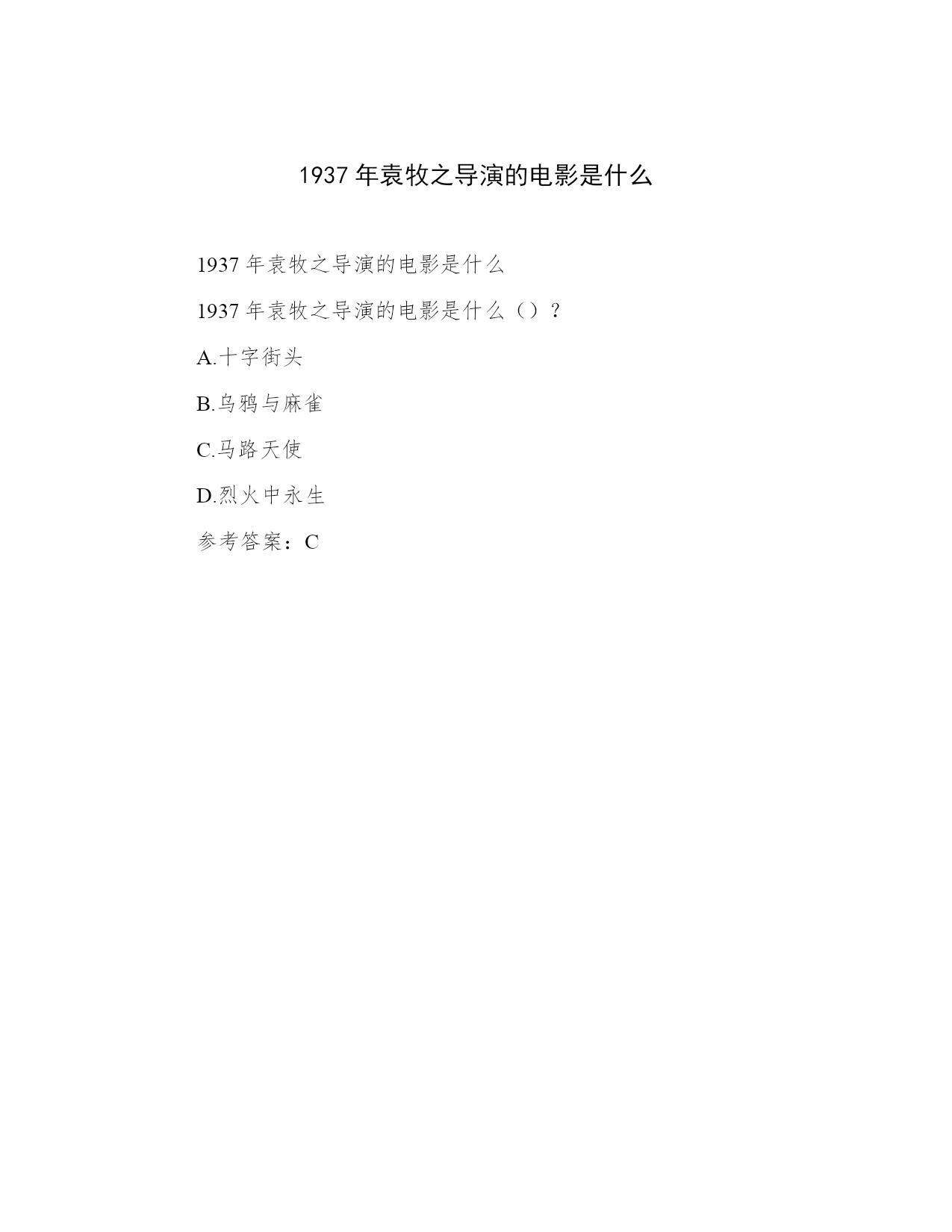1937年袁牧之导演的电影是什么1937年袁牧之导演的电影是什么1937年袁牧之导演的电影是什么()?A.十字街头B.乌鸦与麻雀C.马路天使D.烈火中永生参考答案:C