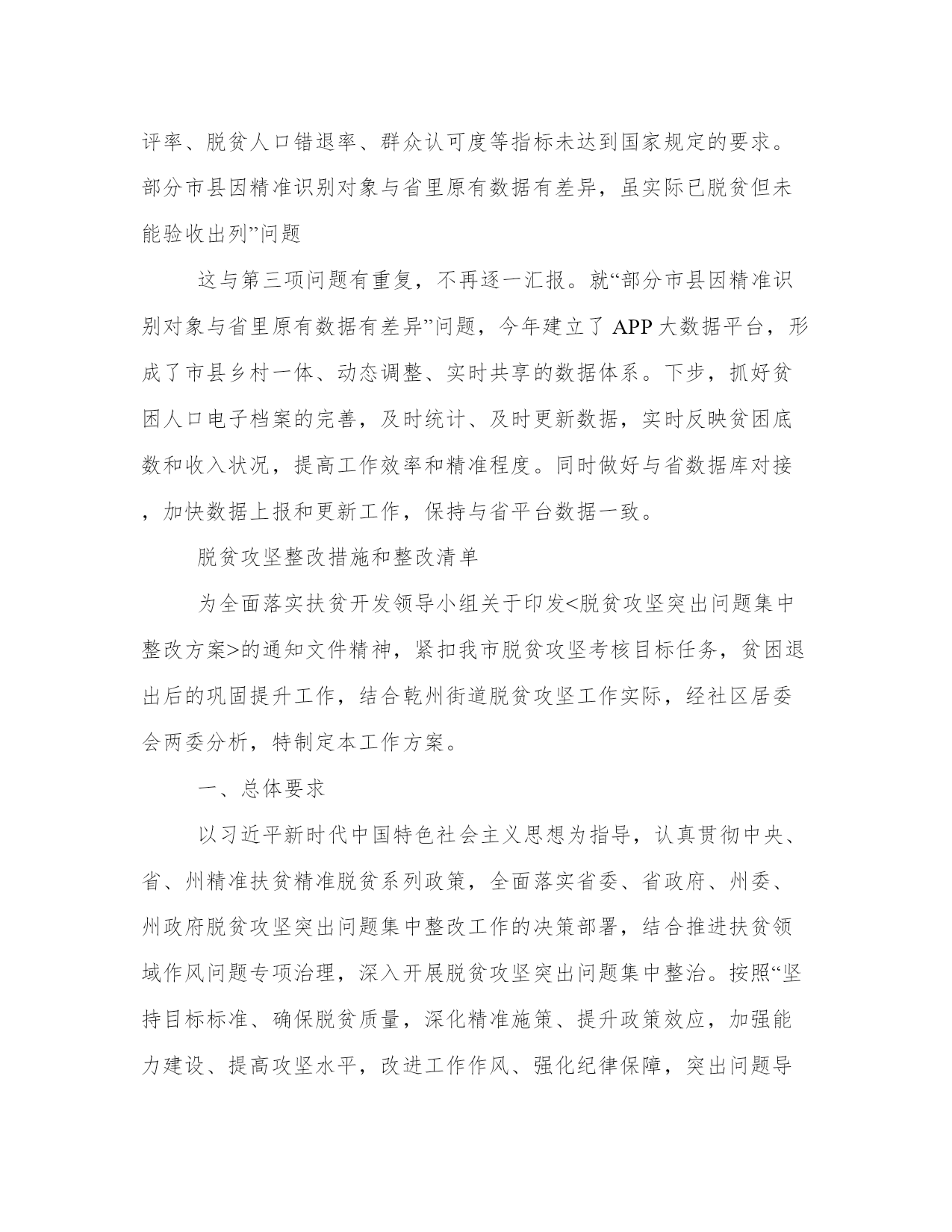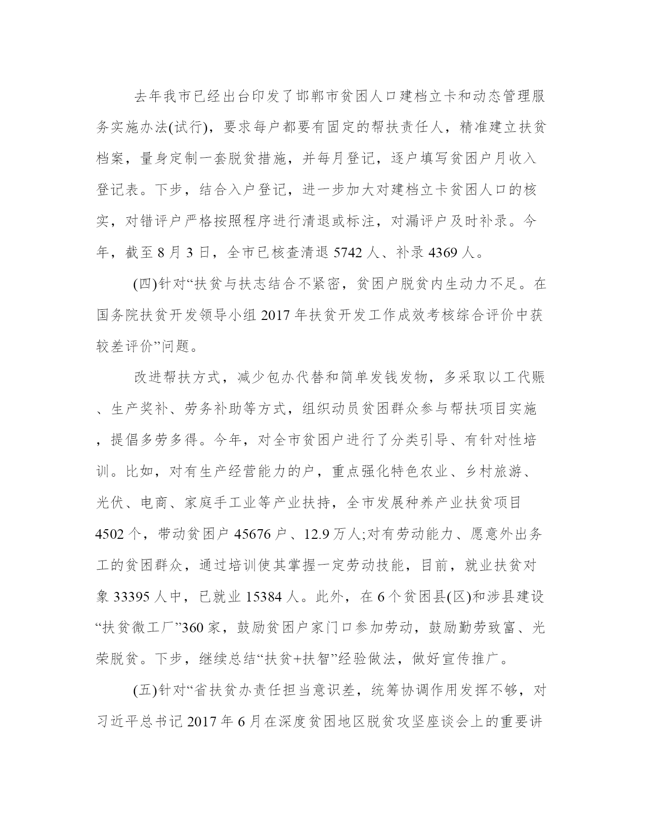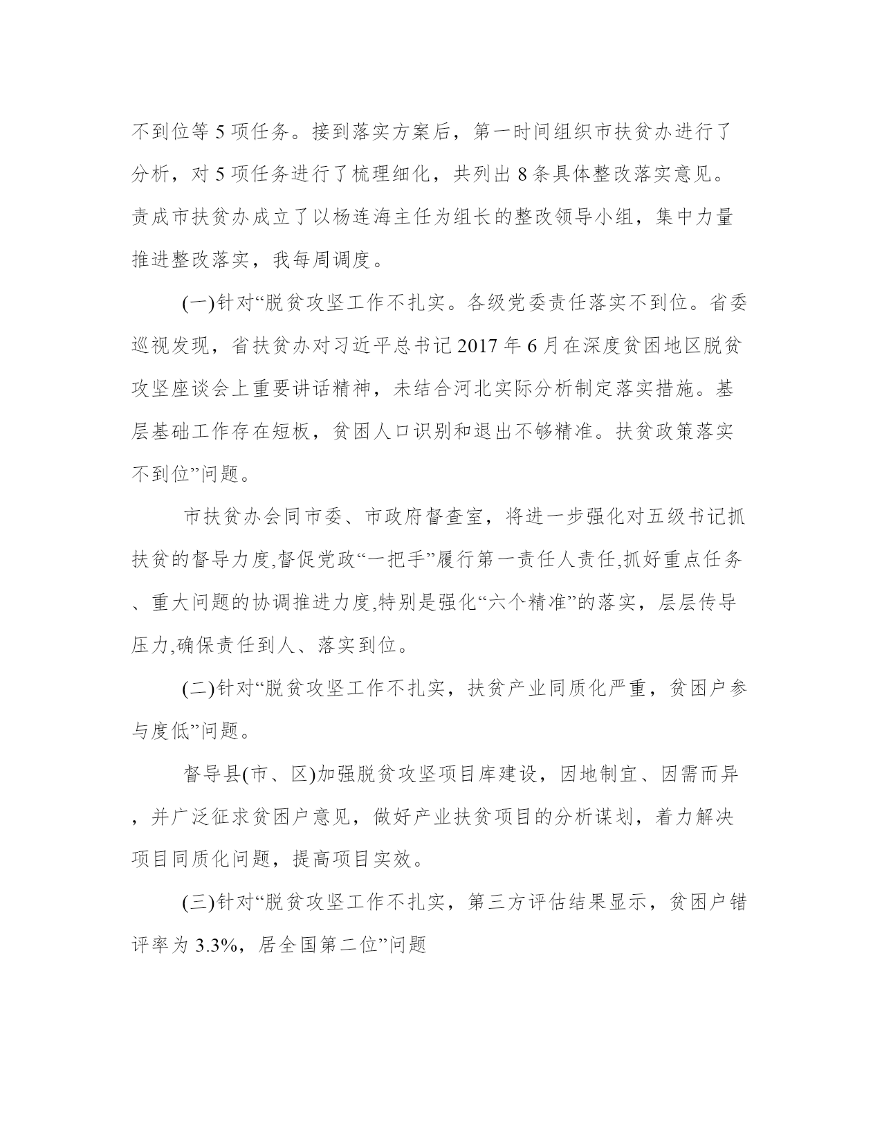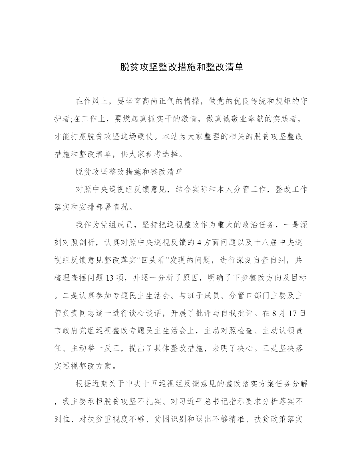 脱贫攻坚整改措施和整改清单在作风上,要培育高尚正气的情操,做党的优良传统和规矩的守护者;在工作上,要燃起真抓实干的激情,做真诚敬业奉献的实践者,才能打赢脱贫攻坚这场硬仗。本站为大家整理的相关的脱贫攻坚整改措施和整改清单,供大家参考选择。脱贫攻坚整改措施和整改清单对照中央巡视组反馈意见,结合实际和本人分管工作,整改工作落实和安排部署情况。我作为党组成员,坚持把巡视整改作为重大的政治任务,一是深刻对照剖析,认真对照中央巡视反馈的4方面问题以及十八届中央巡视组反馈意见整改落实“回头看”发现的问题,进行深刻自查自纠,共梳理查摆问题13项,并逐一分析了原因,明确了下步整改方向及目标。二是认真参加专题民主生活会。与班子成员、分管口部门主要及主管负责同志逐一进行谈心谈话,开展了批评与自我批评。在8月17日市政府党组巡视整改专题民主生活会上,主动对照检查、主动认领责任、主动举一反三,提出了具体整改措施,表明了决心。三是坚决落实巡视整改方案。根据近期关于中央十五巡视组反馈意见的整改落实方案任务分解,我主要承担脱贫攻坚不扎实、对习近平总书记指示要求分析落实不到位、对扶贫重视度不够、贫困识别和退出不够精准、扶贫政策落实不到位等5项任务。接到落实方案后,第一时间组织市扶贫办进行了分析,对5项任务进行了梳理细化,共列出8条具体整改落实意见。责成市扶贫办成立了以杨连海主任为组长的整改领导小组,集中力量推进整改落实,我每周调度。(一)针对“脱贫攻坚工作不扎实。各级党委责任落实不到位。省委巡视发现,省扶贫办对习近平总书记2017年6月在深度贫困地区脱贫攻坚座谈会上重要讲话精神,未结合河北实际分析制定落实措施。基层基础工作存在短板,贫困人口识别和退出不够精准。扶贫政策落实不到位”问题。市扶贫办会同市委、市政府督查室,将进一步强化对五级书记抓扶贫的督导力度,督促党政“一把手”履行第一责任人责任,抓好重点任务、重大问题的协调推进力度,特别是强化“六个精准”的落实,层层传导压力,确保责任到人、落实到位。(二)针对“脱贫攻坚工作不扎实,扶贫产业同质化严重,贫困户参与度低”问题。督导县(市、区)加强脱贫攻坚项目库建设,因地制宜、因需而异,并广泛征求贫困户意见,做好产业扶贫项目的分析谋划,着力解决项目同质化问题,提高项目实效。(三)针对“脱贫攻坚工作不扎实,第三方评估结果显示,贫困户错评率为3.3%,居全国第二位”问题去年我市已经出台印发了邯郸市贫困人口建档立卡和动态管理服务实施办法(试行),要求每户都要有固定的帮扶责任人,精准建立扶贫档案,量身定制一套脱贫措施,并每月登记,逐户填写贫困户月收入登记表。下步,结合入户登记,进一步加大对建档立卡贫困人口的核实,对错评户严格按照程序进行清退或标注,对漏评户及时补录。今年,截至8月3日,全市已核查清退5742人、补录4369人。(四)针对“扶贫与扶志结合不紧密,贫困户脱贫内生动力不足。在国务院扶贫开发领导小组2017年扶贫开发工作成效考核综合评价中获较差评价”问题。改进帮扶方式,减少包办代替和简单发钱发物,多采取以工代赈、生产奖补、劳务补助等方式,组织动员贫困群众参与帮扶项目实施,提倡多劳多得。今年,对全市贫困户进行了分类引导、有针对性培训。比如,对有生产经营能力的户,重点强化特色农业、乡村旅游、光伏、电商、家庭手工业等产业扶持,全市发展种养产业扶贫项目4502个,带动贫困户45676户、12.9万人;对有劳动能力、愿意外出务工的贫困群众,通过培训使其掌握一定劳动技能,目前,就业扶贫对象33395人中,已就业15384人。此外,在6个贫困县(区)和涉县建设“扶贫微工厂”360家,鼓励贫困户家门口参加劳动,鼓励勤劳致富、光荣脱贫。下步,继续总结“扶贫+扶智”经验做法,做好宣传推广。(五)针对“省扶贫办责任担当意识差,统筹协调作用发挥不够,对习近平总书记2017年6月在深度贫困地区脱贫攻坚座谈会上的重要讲话精神,未结合河北实际分析制定落实措施,对精准扶贫工作安排不细致、不深入”问题。对干部责任担当的问题,书记在8月2日市委九届四次全会上专门做了强调,明确指示责任担当是政治问题,将严格问责;明确指示今后不能把他人的“责任状”变为自己的“免责单”。市扶贫办前段时间已通过民主生活会等形式进行了问题查摆,开展了整改。对此,下步,我将以身作则,在各项工作推进落实中率先表率,督促市、县扶贫办强化“四个意识”,践行“两个维护”,狠抓队伍作风建设,真抓实干,确保承担的各项任务精细、精准落实到位。并针对精准扶贫,持续开展问题排查,立行立改,务求实效,让群众满意。(六)针对“一些贫困县主要负责同志对扶贫工作重视不够,没有把脱贫攻坚工作作为重大政治责任扛牢抓实”问题今年,我市严格执行党政“一把手”双组长负责制,加强党政负责同志主动担当的责任意识,并就重点