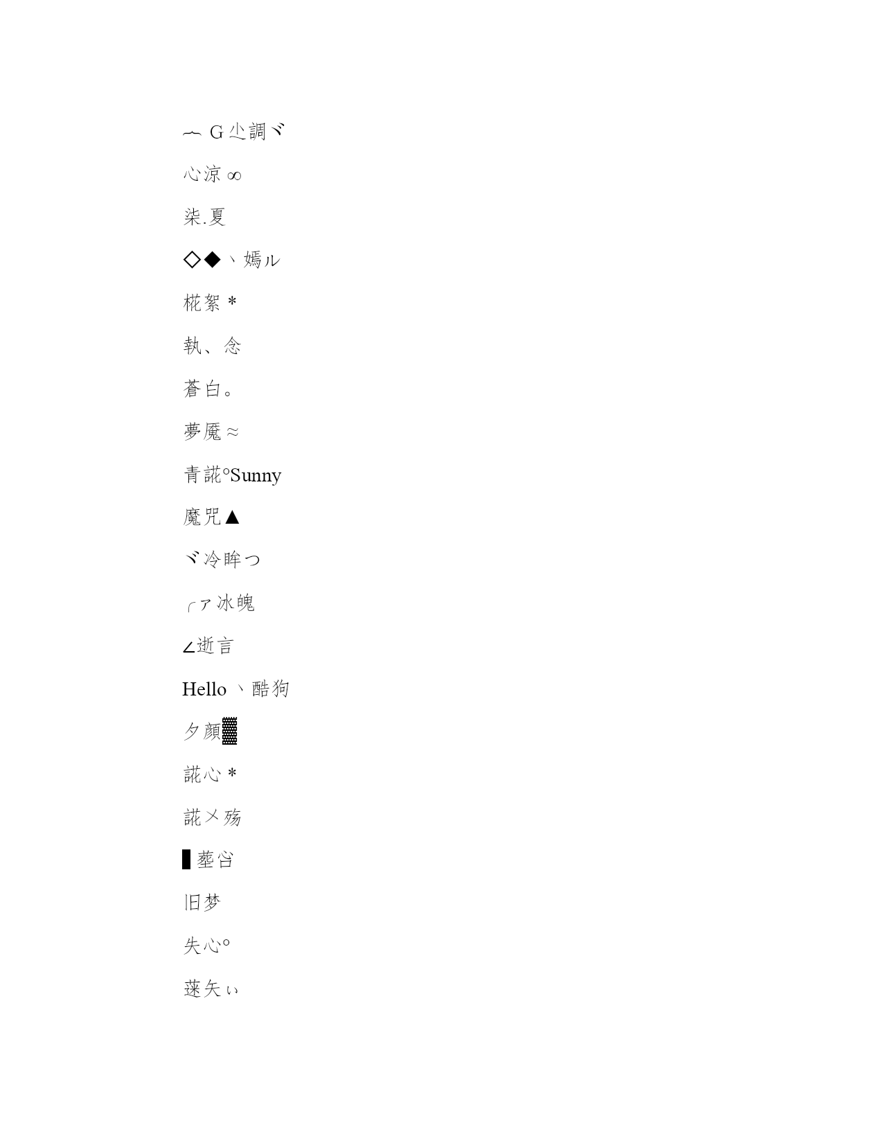 2014很有个性的2个字qq网名:兜兜【www.sxqingyun.com--二个字的网名】温瞳ゞ冷╭瞳゜ヘ祭┼┄逝癫子°蒝點℡ゅ念旧兜兜初晴半夏。↘囧男↙微凉°堇年Angel丶泡泡°落幕冷瞳丷‖惜染°等ní浅忆▁傀儡▁止步浅念丶旧颜゛初夏離殇梦醒堇年释然花颜※夏夜淡然△甜心﹎断誸硪艹残舞、離殇陌颜_初夏⊕婉儿-孽缘-ふ葬薆浅_Smile昔年°旧城′汐颜°浮夸°___柒月〝仰望蜕变°破碎相依∞暖心偏爱梦呓余温▲挥霍未眠如詩髒殇凌乱-_____末年°墨蓝。幻影°瞳孔____∞゛恋蝶╰つ凌乱旧颜宿命浮华灬祭Ψ魂媤惗ら╭喵喵╮Darling·初夏樱花念旧.▋夏沫丶冫笑雨天﹌尐丑﹌路人白纸じò情殤ぴé︷G尐調ヾ心涼∞柒.夏◇◆丶嫣ル椛絮*執、念蒼白。夢魇≈青誮°Sunny魔咒▲ヾ冷眸つ╭ァ冰魄∠逝言Hello丶酷狗夕顔▓誮心*誮〤殇▋塟吢旧梦失心°蒾矢ぃ╭⌒冷颜丶蕶誶独守〃▍借口末凉╰╯花舞﹌℡終嚸♂算了凉城りSmile&憂傷笑靥*顔﹡夕殘夢ヽ陌、诺﹌雪の殇孤城堇年◎騷年°念汐.昔年°孤魂oO浅殇Oo匿名°回眸ヽ偷心﹏沫沫ミづ嫣然し☆ve執.戀"骚年丶浮华﹌≈碎花暖瞳丶╰喵喵°念旧#丨丢丢丶安好°蓝调〆不屑┏━━半岛木偶