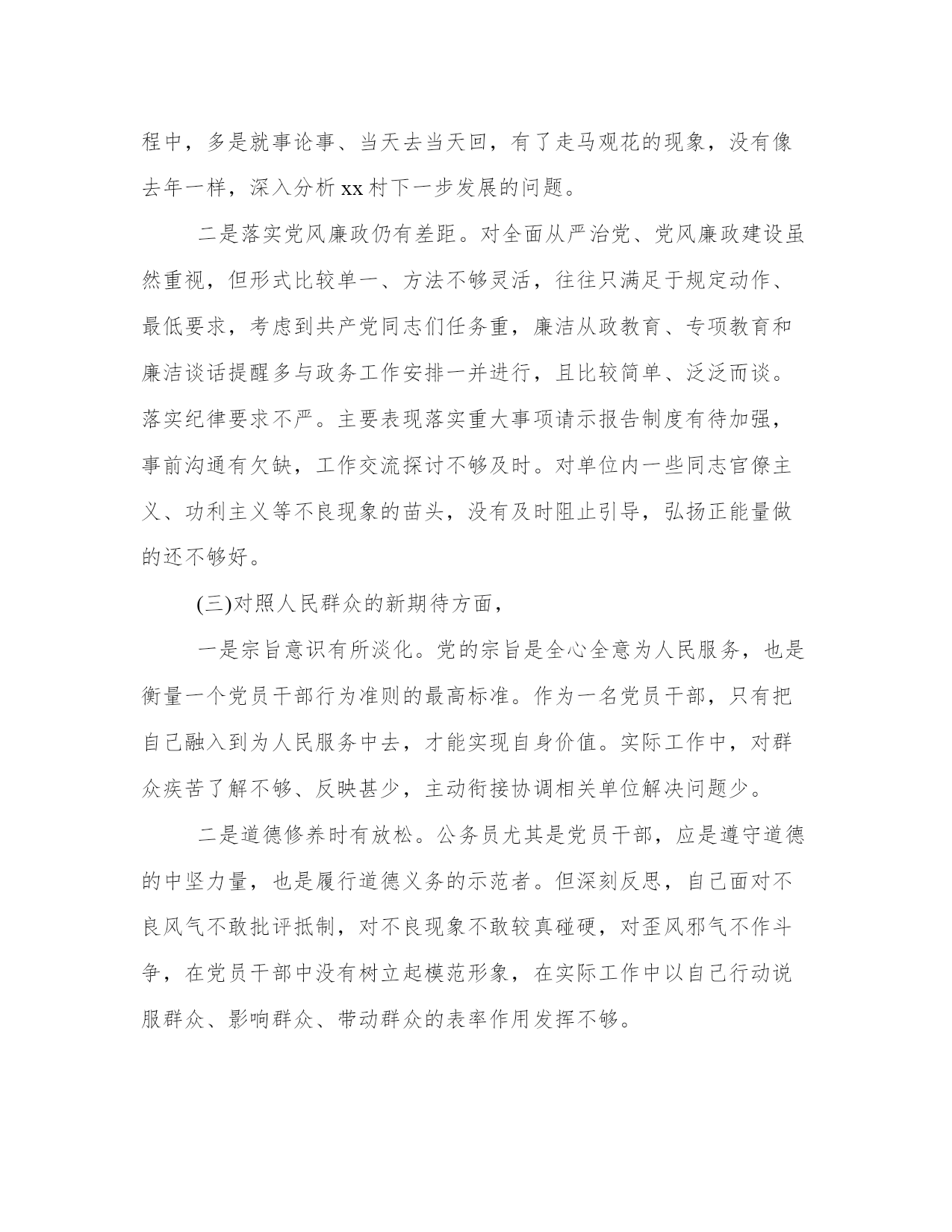 “四个对照”,“四个找一找”的民主生活会发言材料不忘初心牢记使命主题教育按照总书记关于“四个对照”、“四个找一找”的要求,全面查找了个人在初心和使命方面存在的问题,下面是本站为大家整理的“四个对照”,“四个找一找”的民主生活会发言材料,供大家参考。“四个对照”,“四个找一找”的民主生活会发言材料按照中央、省委关于第一批主题教育单位开好“不忘初心牢记使命”专题民主生活会的通知要求,根据主题教育工作安排,我在深入学习贯彻习近平新时代中国特色社会主义思想,学习领会习近平总书记在“xx”主题教育工作会议和在内蒙古考察并指导开展“不忘初心牢记使命”主题教育时的重要讲话的基础上,按照总书记关于“四个对照”、“四个找一找”的要求,全面查找了个人在初心和使命方面存在的问题,现汇报如下:一、对照新时代中国特色社会主义思想和党中央决策部署(一)学习贯彻新时代中国特色社会主义思想方面。能做到认真学习贯彻习近平新时代中国特色社会主义思想,牢固树立“四个意识”,坚定“四个自信”,做到“四个服从”能自觉在思想上政治上行动上同以习近平同志为核心的党中央保持高度一致。对照检查发现的主要问题有以下几点:一是理论学习不系统、不深入的问题,对学习习近平新时代中国特色社会主义思想存在片面化、碎片化的现象。一定程度存在以业务工作代替理论学习的现象,对政治理论学习同党中央和省委要求相比还存在不小差距,没有真正做到往深里走、往心里走、往实里走。二是没有很好地处理工学矛盾,当前xx工作任务重、压力大,忙于应对业务工作,没有利用好工作空闲和业余时间的自学,理论学习有所放松;三是虽能积极参加局党组中心组学习、党组会、局务会集中学习,但在学懂、弄通、做实方面还不够,满足于一般性的了解、知道,还不能熟练运用习近平新时代中国特色社会主义思想来分析分析问题,科学系统谋划共产党工作;四是能够较好地参与集中学、辅导学和自学,但与班子成员和党员干部之间相互交流讨论学习体会少,思想碰撞少,没能将理论知识较好地应用于指导共产党工作实际。(二)对照党章党规方面,主要存在2个方面问题:一是进取精神不足。近年来,有了“人过四十、不提当年”的懒惰思想,工作锐气、劲头有所减弱,对一些事情仅满足于安排了、推动了,缺乏步步为营、环环相扣的抓落实招数,尤其是面对一些紧事难事、烦事愁事,缺乏攻坚克难的勇气。虽然经常加班加点工作,但效率不高、效果不明显。走访调研不深入。表现在脱贫攻坚工作中,总认为我们包扶的xx村已经脱贫了,今年可以松一口气了,进村入户过程中,多是就事论事、当天去当天回,有了走马观花的现象,没有像去年一样,深入分析xx村下一步发展的问题。二是落实党风廉政仍有差距。对全面从严治党、党风廉政建设虽然重视,但形式比较单一、方法不够灵活,往往只满足于规定动作、最低要求,考虑到共产党同志们任务重,廉洁从政教育、专项教育和廉洁谈话提醒多与政务工作安排一并进行,且比较简单、泛泛而谈。落实纪律要求不严。主要表现落实重大事项请示报告制度有待加强,事前沟通有欠缺,工作交流探讨不够及时。对单位内一些同志官僚主义、功利主义等不良现象的苗头,没有及时阻止引导,弘扬正能量做的还不够好。(三)对照人民群众的新期待方面,一是宗旨意识有所淡化。党的宗旨是全心全意为人民服务,也是衡量一个党员干部行为准则的最高标准。作为一名党员干部,只有把自己融入到为人民服务中去,才能实现自身价值。实际工作中,对群众疾苦了解不够、反映甚少,主动衔接协调相关单位解决问题少。二是道德修养时有放松。公务员尤其是党员干部,应是遵守道德的中坚力量,也是履行道德义务的示范者。但深刻反思,自己面对不良风气不敢批评抵制,对不良现象不敢较真碰硬,对歪风邪气不作斗争,在党员干部中没有树立起模范形象,在实际工作中以自己行动说服群众、影响群众、带动群众的表率作用发挥不够。(四)对照先进典型和身边榜样查问题找差距方面,主要存在2个方面问题:一是管理不够严格。在遇到工作中的一些矛盾和问题时,存在求稳怕乱思想,缺乏“严管、勤管、狠管”的精神,对一些屡教不改的同志,缺乏行之有效的办法和手段,导致XX工作成效不明显,工作亮点不突出。二是在学习上还不能深入自觉。按照要求学的多,主动学习的少,更缺乏挤时间学习的意识,也存在着注重抄写学习笔记而囫囵吞枣、不求甚解的情况。学习上浅尝辄止、蜻蜓点水,在系统深入上还不够重视,导致对政策规定学习不透,不能很好地用于实践,用于工作。在党建、党风廉政、纪检监察等业务学习方面年初就制定了学习计划,但一直都没能静下心来认真学习,不愿意深入吃苦地学习,满足于现有知识,甚至学习了抄了笔记,停留在纸上,不能活学活用。积极进取心不强。总以为自己参加工作多年,有的工作放一放、拖一拖也无伤大雅。有时感觉自己能力欠缺又不主动学习,就会出现出了问题自己解决不到位的现象。担当