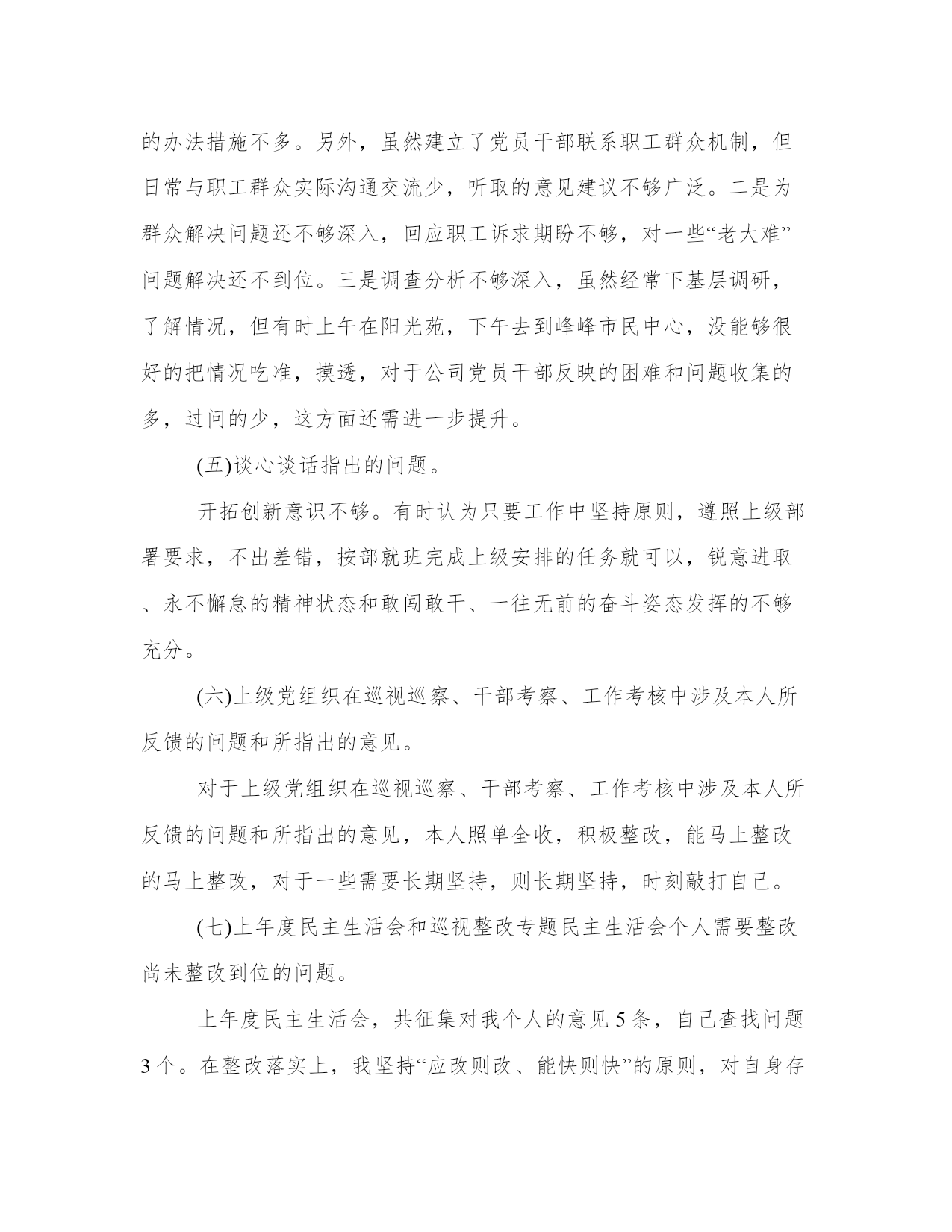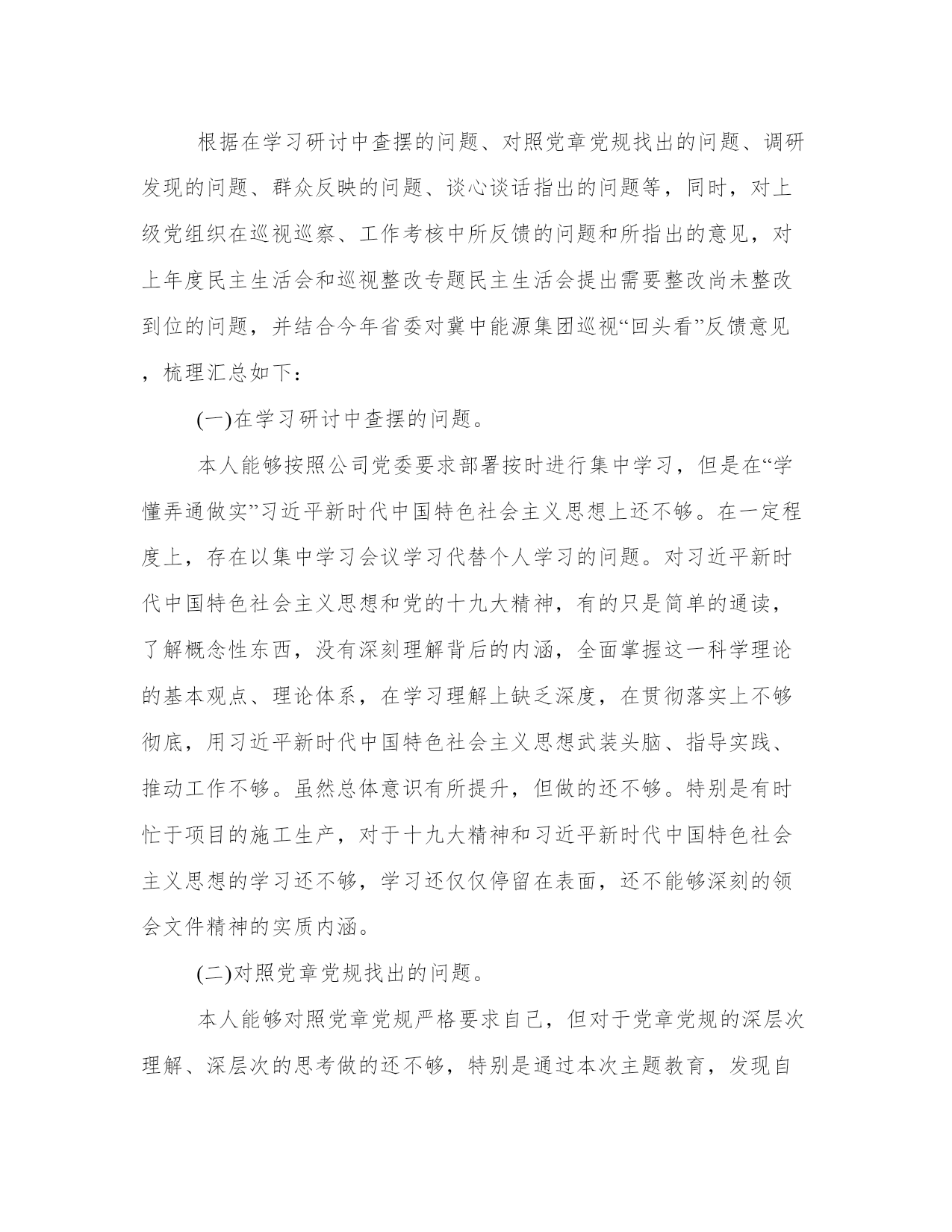 “不忘初心、牢记使命”主题教育民主生活会对照检查材料3篇不忘初心、牢记使命,主题教育活动开展以来,全党上下都在学习。开展主题教育最重要的任务,就是用习近平新时代中国特色社会主义思想武装全党,深入学习贯彻党的十九大精神,推动全党更加自觉地为实现新时代党的历史使命不懈奋斗。本站精心为大家整理了“不忘初心、牢记使命”主题教育民主生活会对照检查材料,希望对你有帮助。“不忘初心、牢记使命”主题教育民主生活会对照检查材料一、参加主题教育基本情况和收获体会根据集团公司关于召开“不忘初心、牢记使命”专题民主生活会的通知要求,我紧紧围绕“守初心、担使命、找差距、抓落实”总要求,以“不忘初心,牢记使命”为衡量标尺,在学习讲话、研讨交流、调查分析的基础上,对照学习贯彻习近平新时代中国特色社会主义思想、对照“两谋”、对照“伟大斗争、伟大工程、伟大事业、伟大梦想”重要论断、对照党章党规、对照初心使命、对照群众期盼,紧密结合思想和工作实际,按照“四个对照”、“四个找一找”的整体要求,广泛征求意见建议,进行了深刻检视和自我剖析,针对检视和剖析出来的问题,明确了努力方向和整改措施。二、存在的主要问题根据在学习研讨中查摆的问题、对照党章党规找出的问题、调研发现的问题、群众反映的问题、谈心谈话指出的问题等,同时,对上级党组织在巡视巡察、工作考核中所反馈的问题和所指出的意见,对上年度民主生活会和巡视整改专题民主生活会提出需要整改尚未整改到位的问题,并结合今年省委对冀中能源集团巡视“回头看”反馈意见,梳理汇总如下:(一)在学习研讨中查摆的问题。本人能够按照公司党委要求部署按时进行集中学习,但是在“学懂弄通做实”习近平新时代中国特色社会主义思想上还不够。在一定程度上,存在以集中学习会议学习代替个人学习的问题。对习近平新时代中国特色社会主义思想和党的十九大精神,有的只是简单的通读,了解概念性东西,没有深刻理解背后的内涵,全面掌握这一科学理论的基本观点、理论体系,在学习理解上缺乏深度,在贯彻落实上不够彻底,用习近平新时代中国特色社会主义思想武装头脑、指导实践、推动工作不够。虽然总体意识有所提升,但做的还不够。特别是有时忙于项目的施工生产,对于十九大精神和习近平新时代中国特色社会主义思想的学习还不够,学习还仅仅停留在表面,还不能够深刻的领会文件精神的实质内涵。(二)对照党章党规找出的问题。本人能够对照党章党规严格要求自己,但对于党章党规的深层次理解、深层次的思考做的还不够,特别是通过本次主题教育,发现自己对照党章党规、准则条例,对于党员的要求还有一些差距。一是落实意识形态责任制不到位。对新时代意识形态领域斗争的严峻性、复杂性、隐蔽性认识不到位,虽然公司制定出台了相关文件规定,但对文件的具体执行落实较少。二是学用结合不够紧密。存在就理论学理论、不能及时融会贯通新知识的问题,缺乏掌握习近平新时代中国特色社会主义思想立场、观点、方法,用以指导解决改造客观世界和主观世界的实际问题的能力,理论政策方面,分析思考的不多,与实践实际结合的不够紧密。(三)在调研发现的问题。本人在工作方法上注重安排部署和调度结果的多,工作过程关注的不够,对有的工作缺乏直接督促检查,一抓到底做得不够。对一些形式主义、官僚主义新表现不能有效整治,揭短亮丑、通报曝光力度不够,部门主义、本位主义问题仍然存在。有时在安排调度工作时,怕影响同志们感情,面对存在的问题,常认为把该说的话都说到就可以了,而不好板起脸来提出严格要求,在一定程度上影响了工作落实的效果。(四)群众反映的问题。本人能够坚持党的群众路线,树牢宗旨意识,坚持从群众中来、到群众中去,但是联系群众还不够紧密。在日常工作中,还存在几点问题。一是深入基层虽然较多,但多是与干部交流谈心,较少与普通职工交流。调查分析不够全面深入,通过调研来改进工作、创新方法的办法措施不多。另外,虽然建立了党员干部联系职工群众机制,但日常与职工群众实际沟通交流少,听取的意见建议不够广泛。二是为群众解决问题还不够深入,回应职工诉求期盼不够,对一些“老大难”问题解决还不到位。三是调查分析不够深入,虽然经常下基层调研,了解情况,但有时上午在阳光苑,下午去到峰峰市民中心,没能够很好的把情况吃准,摸透,对于公司党员干部反映的困难和问题收集的多,过问的少,这方面还需进一步提升。(五)谈心谈话指出的问题。开拓创新意识不够。有时认为只要工作中坚持原则,遵照上级部署要求,不出差错,按部就班完成上级安排的任务就可以,锐意进取、永不懈怠的精神状态和敢闯敢干、一往无前的奋斗姿态发挥的不够充分。(六)上级党组织在巡视巡察、干部考察、工作考核中涉及本人所反馈的问题和所指出的意见。对于上级党组织在巡视巡察、干部考察、工作考核中涉及本人所反馈的问题和所指出的意见,本人照单全收,积极整改,能马上整改的马上整改,对于