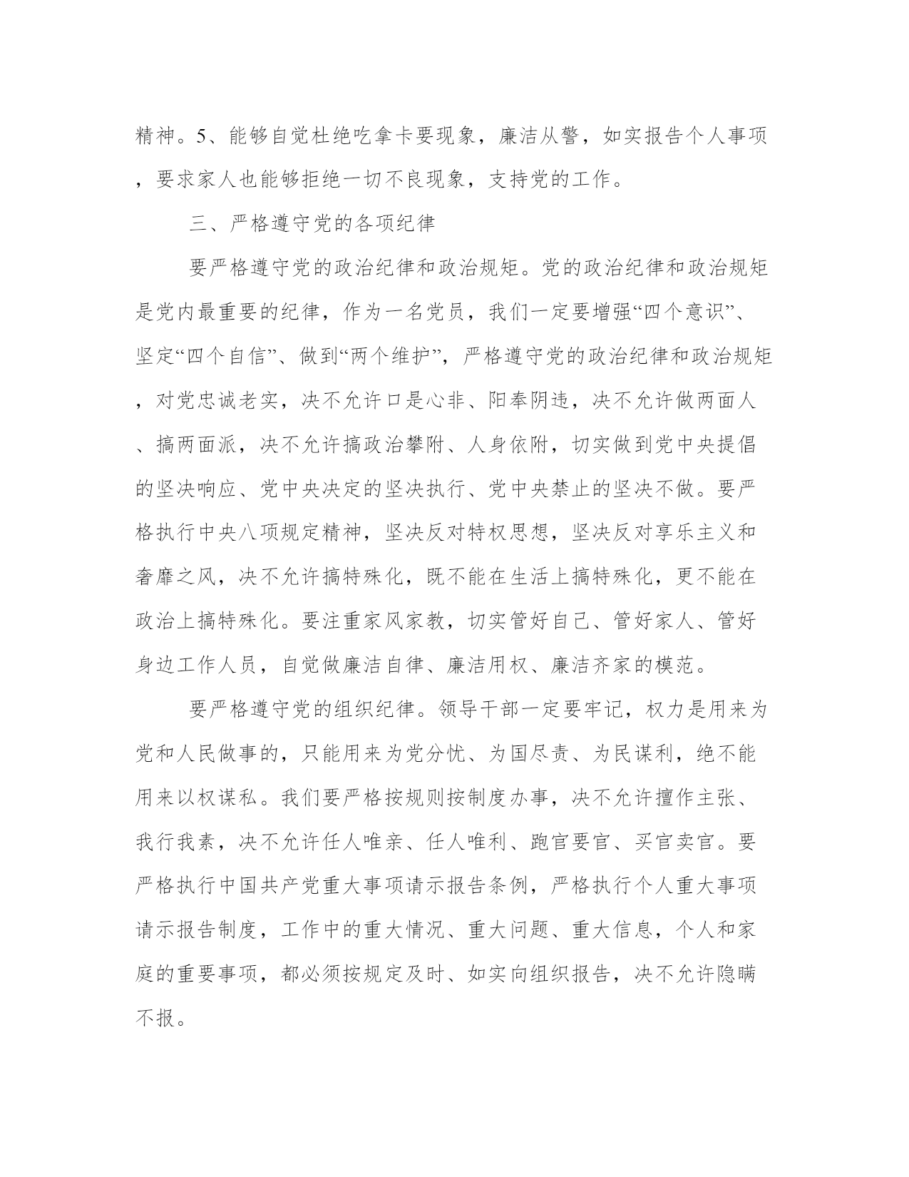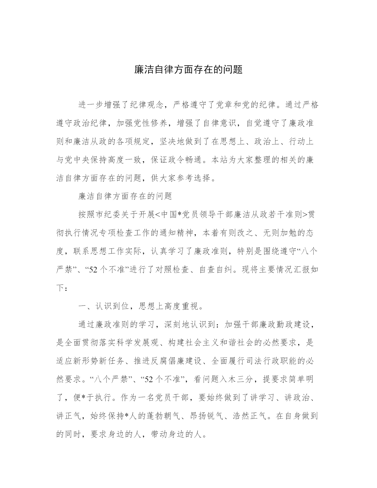 廉洁自律方面存在的问题进一步增强了纪律观念,严格遵守了党章和党的纪律。通过严格遵守政治纪律,加强党性修养,增强了自律意识,自觉遵守了廉政准则和廉洁从政的各项规定,坚决地做到了在思想上、政治上、行动上与党中央保持高度一致,保证政令畅通。本站为大家整理的相关的廉洁自律方面存在的问题,供大家参考选择。廉洁自律方面存在的问题按照市纪委关于开展<中国*党员领导干部廉洁从政若干准则>贯彻执行情况专项检查工作的通知精神,本着有则改之、无则加勉的态度,联系思想工作实际,认真学习了廉政准则,特别是围绕遵守“八个严禁”、“52个不准”进行了对照检查、自查自纠。现将主要情况汇报如下:一、认识到位,思想上高度重视。通过廉政准则的学习,深刻地认识到:加强干部廉政勤政建设,是全面贯彻落实科学发展观、构建社会主义和谐社会的必然要求,是适应新形势新任务、推进反腐倡廉建设、全面履行司法行政职能的必然要求。“八个严禁”、“52个不准”,看问题入木三分,提要求简单明了,便*于执行。作为一名党员干部,要始终做到了讲学习、讲政治、讲正气,始终保持*人的蓬勃朝气、昂扬锐气、浩然正气。在自身做到的同时,要求身边的人,带动身边的人。二、遵纪守法,廉洁从政。进一步增强了纪律观念,严格遵守了党章和党的纪律。通过严格遵守政治纪律,加强党性修养,增强了自律意识,自觉遵守了廉政准则和廉洁从政的各项规定,坚决地做到了在思想上、政治上、行动上与党中央保持高度一致,保证政令畅通。坚决纠正有令不行、有禁不止,以权谋私,不给好处不办事,给了好处乱办事等不正之风。作为一名市管党员干部,有效地做到了自重、自省、自警、自励,严格地要求自己进一步树立廉洁奉公的良好形象。三、勤奋工作,敬业奉献。进一步提高了贯彻落实党的理论和路线方针政策的能力和水平,提高推动科学发展、促进社会和谐的能力和水平,提高依法行政、依法办事的能力和水平,把实现好、维护好、发展好最广大人民的根本利益作为思考问题和开展工作的出发点和落脚点,不断提高了工作效率和服务水平,在抓好落实上狠下功夫,在务求实效上狠下功夫,努力做出经得起实践检验的政绩。四、求真务实,开拓创新。进一步树立了科学发展观,正确的人生观、价值观、权力观和利益观及“无功即是过”的工作理念,改进工作方法,转变干部作风。积极发扬求真务实作风,坚持一切从实际出发。坚决纠正形式主义、官僚主义和弄虚作假行为以及工作平庸、不求进取、畏首畏尾等固步自封、小胜即安的不良作风,倡导开拓创新、勇于尝试的新型机关作风,切实做到以饱满旺盛的干劲和科学求实的奋斗精神,完成好本职工作。五、存在的问题与不足。六、整改措施及下步打算。廉洁自律方面存在的问题一、坚决与不良势力划清界限我们要深刻认识案件给党和国家利益造成的恶劣影响,深刻认识孟宏伟案件给事业带来的严重危害,深刻认识案件给公安部机关声誉和形象造成的重大损害,从中汲取教训、引以为戒,毫不动摇地拥护党中央的决定,努力以铁的纪律锻造一支对党忠诚、服务人民、执法公正、纪律严明的高素质过硬公安铁军。本人作为一名青年民警,与无任何交集交往,思想上未受到其任何沾染影响,一直以来将廉洁从政作为自己的工作信条,对不良势力坚决划清界限。二、深刻剖析自身问题与不足1、理想信念坚定,能够做到真抓真学,入脑入心。不存在信奉鬼神的封建迷信思想,不存在四风方面的问题。2、党员意识比较强,能够在平时积极主动发挥先锋模范作用。但是学习积极主动性还是需要提高。3、纪律观念和法纪意识比较牢固,不存在打“擦边球”的问题,能够保守党的秘密和工作秘密。严格按照考勤管理规定。但是保密意识还是应该加强,从失泄密案件事例中总结学习。4、言行一致,严格按照请示报告规定进行工作。工作中缺少创新意识,和吃苦耐劳的精神。5、能够自觉杜绝吃拿卡要现象,廉洁从警,如实报告个人事项,要求家人也能够拒绝一切不良现象,支持党的工作。三、严格遵守党的各项纪律要严格遵守党的政治纪律和政治规矩。党的政治纪律和政治规矩是党内最重要的纪律,作为一名党员,我们一定要增强“四个意识”、坚定“四个自信”、做到“两个维护”,严格遵守党的政治纪律和政治规矩,对党忠诚老实,决不允许口是心非、阳奉阴违,决不允许做两面人、搞两面派,决不允许搞政治攀附、人身依附,切实做到党中央提倡的坚决响应、党中央决定的坚决执行、党中央禁止的坚决不做。要严格执行中央八项规定精神,坚决反对特权思想,坚决反对享乐主义和奢靡之风,决不允许搞特殊化,既不能在生活上搞特殊化,更不能在政治上搞特殊化。要注重家风家教,切实管好自己、管好家人、管好身边工作人员,自觉做廉洁自律、廉洁用权、廉洁齐家的模范。要严格遵守党的组织纪律。领导干部一定要牢记,权力是用来为党和人民做事的,只能用来为党分忧、为国尽责、为民谋利,绝不能用来以权谋私。我们要严格按规则按制度办事,决不允许擅