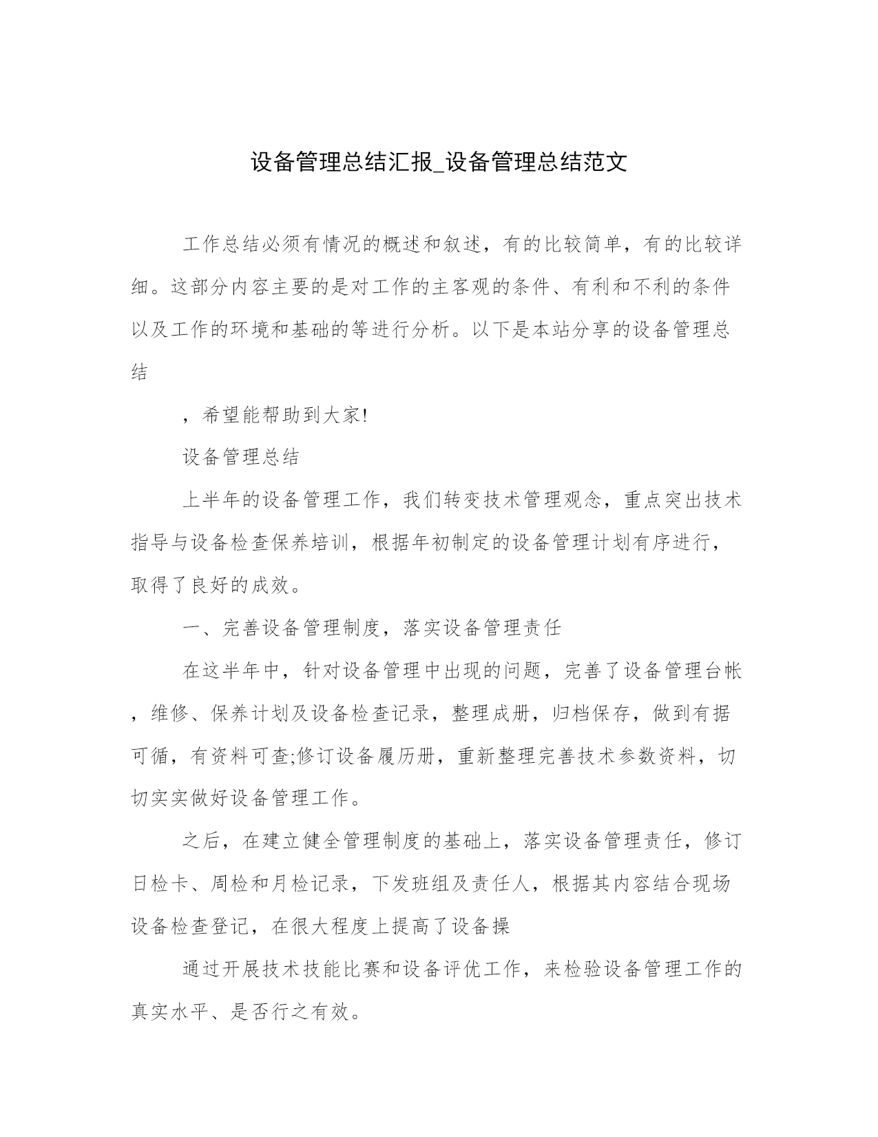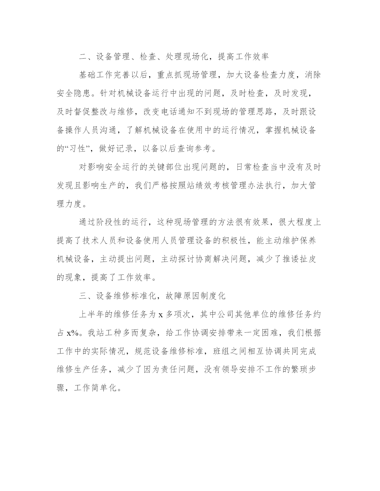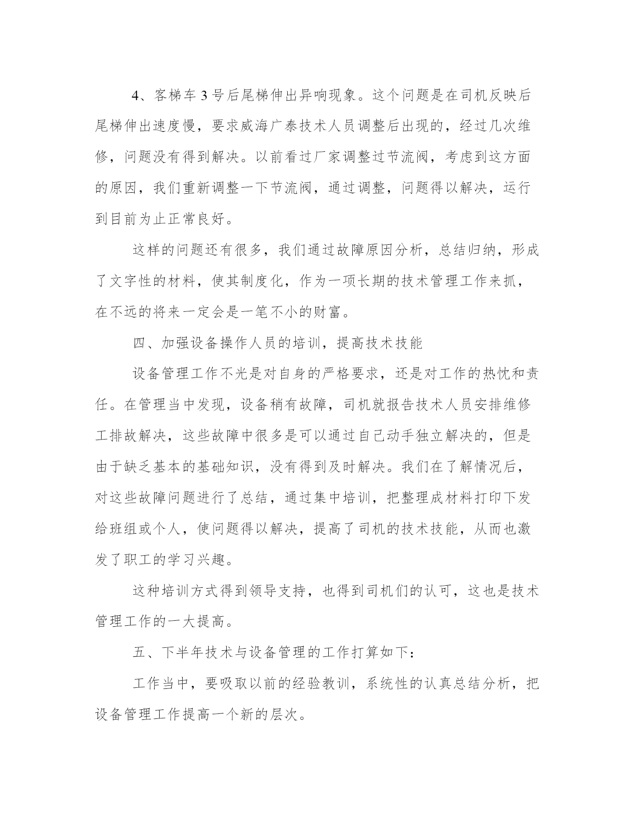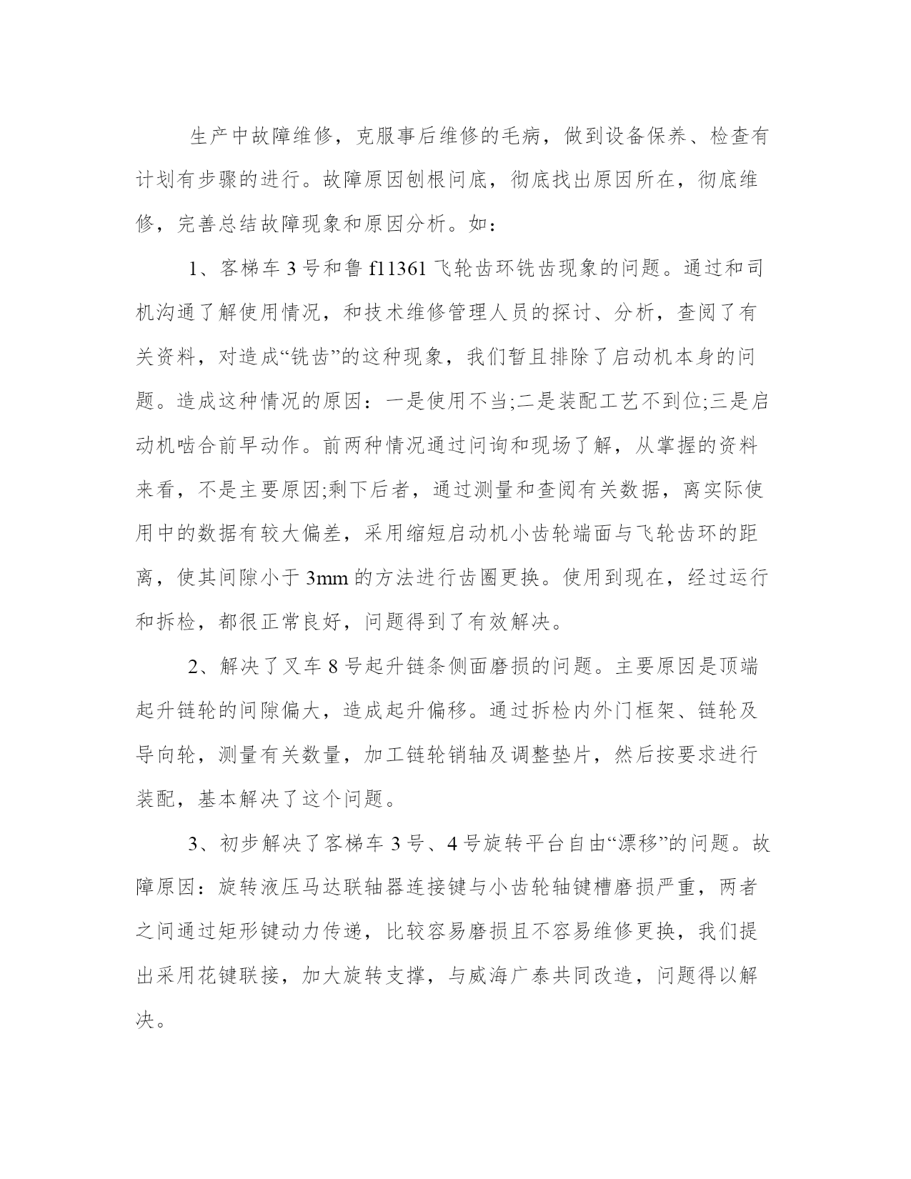 设备管理总结汇报_设备管理总结范文工作总结必须有情况的概述和叙述,有的比较简单,有的比较详细。这部分内容主要的是对工作的主客观的条件、有利和不利的条件以及工作的环境和基础的等进行分析。以下是本站分享的设备管理总结,希望能帮助到大家!设备管理总结上半年的设备管理工作,我们转变技术管理观念,重点突出技术指导与设备检查保养培训,根据年初制定的设备管理计划有序进行,取得了良好的成效。一、完善设备管理制度,落实设备管理责任在这半年中,针对设备管理中出现的问题,完善了设备管理台帐,维修、保养计划及设备检查记录,整理成册,归档保存,做到有据可循,有资料可查;修订设备履历册,重新整理完善技术参数资料,切切实实做好设备管理工作。之后,在建立健全管理制度的基础上,落实设备管理责任,修订日检卡、周检和月检记录,下发班组及责任人,根据其内容结合现场设备检查登记,在很大程度上提高了设备操通过开展技术技能比赛和设备评优工作,来检验设备管理工作的真实水平、是否行之有效。二、设备管理、检查、处理现场化,提高工作效率基础工作完善以后,重点抓现场管理,加大设备检查力度,消除安全隐患。针对机械设备运行中出现的问题,及时检查,及时发现,及时督促整改与维修,改变电话通知不到现场的管理思路,及时跟设备操作人员沟通,了解机械设备在使用中的运行情况,掌握机械设备的“习性”,做好记录,以备以后查询参考。对影响安全运行的关键部位出现问题的,日常检查当中没有及时发现且影响生产的,我们严格按照站绩效考核管理办法执行,加大管理力度。通过阶段性的运行,这种现场管理的方法很有效果,很大程度上提高了技术人员和设备使用人员管理设备的积极性,能主动维护保养机械设备,主动提出问题,主动探讨协商解决问题,减少了推诿扯皮的现象,提高了工作效率。三、设备维修标准化,故障原因制度化上半年的维修任务为x多项次,其中公司其他单位的维修任务约占x%。我站工种多而复杂,给工作协调安排带来一定困难,我们根据工作中的实际情况,规范设备维修标准,班组之间相互协调共同完成维修生产任务,减少了因为责任问题,没有领导安排不工作的繁琐步骤,工作简单化。生产中故障维修,克服事后维修的毛病,做到设备保养、检查有计划有步骤的进行。故障原因刨根问底,彻底找出原因所在,彻底维修,完善总结故障现象和原因分析。如:1、客梯车3号和鲁f11361飞轮齿环铣齿现象的问题。通过和司机沟通了解使用情况,和技术维修管理人员的探讨、分析,查阅了有关资料,对造成“铣齿”的这种现象,我们暂且排除了启动机本身的问题。造成这种情况的原因:一是使用不当;二是装配工艺不到位;三是启动机啮合前早动作。前两种情况通过问询和现场了解,从掌握的资料来看,不是主要原因;剩下后者,通过测量和查阅有关数据,离实际使用中的数据有较大偏差,采用缩短启动机小齿轮端面与飞轮齿环的距离,使其间隙小于3mm的方法进行齿圈更换。使用到现在,经过运行和拆检,都很正常良好,问题得到了有效解决。2、解决了叉车8号起升链条侧面磨损的问题。主要原因是顶端起升链轮的间隙偏大,造成起升偏移。通过拆检内外门框架、链轮及导向轮,测量有关数量,加工链轮销轴及调整垫片,然后按要求进行装配,基本解决了这个问题。3、初步解决了客梯车3号、4号旋转平台自由“漂移”的问题。故障原因:旋转液压马达联轴器连接键与小齿轮轴键槽磨损严重,两者之间通过矩形键动力传递,比较容易磨损且不容易维修更换,我们提出采用花键联接,加大旋转支撑,与威海广泰共同改造,问题得以解决。4、客梯车3号后尾梯伸出异响现象。这个问题是在司机反映后尾梯伸出速度慢,要求威海广泰技术人员调整后出现的,经过几次维修,问题没有得到解决。以前看过厂家调整过节流阀,考虑到这方面的原因,我们重新调整一下节流阀,通过调整,问题得以解决,运行到目前为止正常良好。这样的问题还有很多,我们通过故障原因分析,总结归纳,形成了文字性的材料,使其制度化,作为一项长期的技术管理工作来抓,在不远的将来一定会是一笔不小的财富。四、加强设备操作人员的培训,提高技术技能设备管理工作不光是对自身的严格要求,还是对工作的热忱和责任。在管理当中发现,设备稍有故障,司机就报告技术人员安排维修工排故解决,这些故障中很多是可以通过自己动手独立解决的,但是由于缺乏基本的基础知识,没有得到及时解决。我们在了解情况后,对这些故障问题进行了总结,通过集中培训,把整理成材料打印下发给班组或个人,使问题得以解决,提高了司机的技术技能,从而也激发了职工的学习兴趣。这种培训方式得到领导支持,也得到司机们的认可,这也是技术管理工作的一大提高。五、下半年技术与设备管理的工作打算如下:工作当中,要吸取以前的经验教训,系统性的认真总结分析,把设备管理工作提高一个新的层次。1)做好机械设备的维护保养计划工作机械设备故障率低首先要通