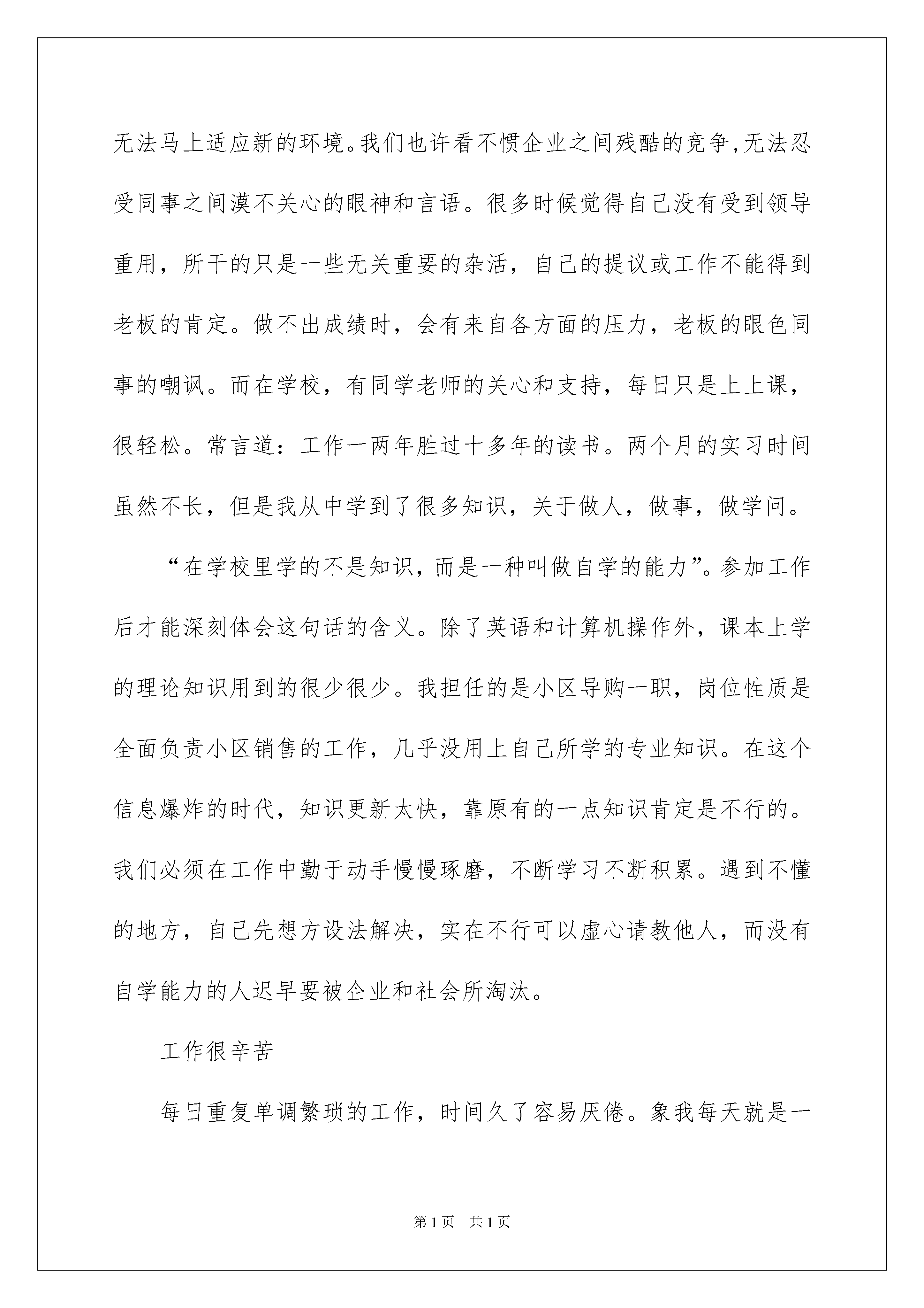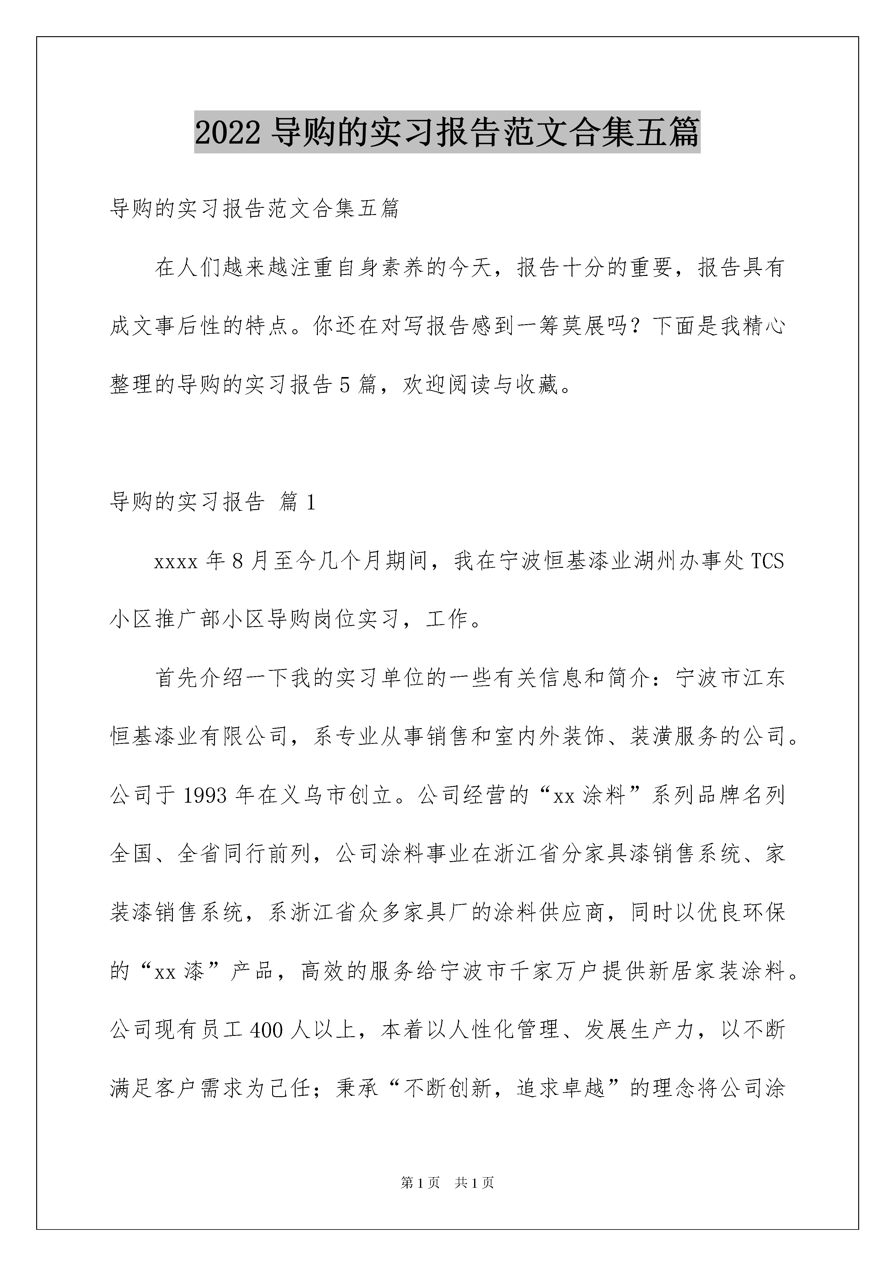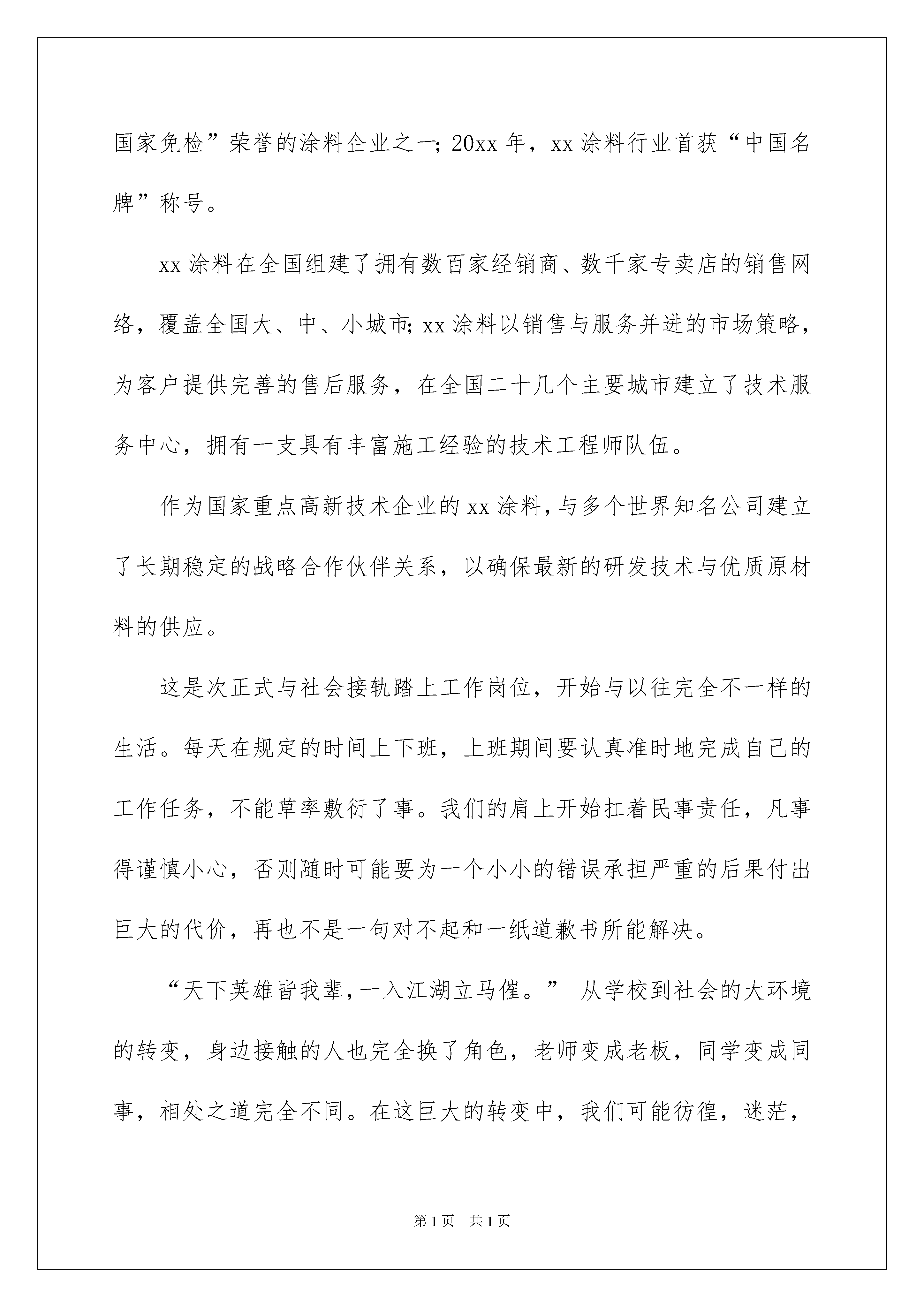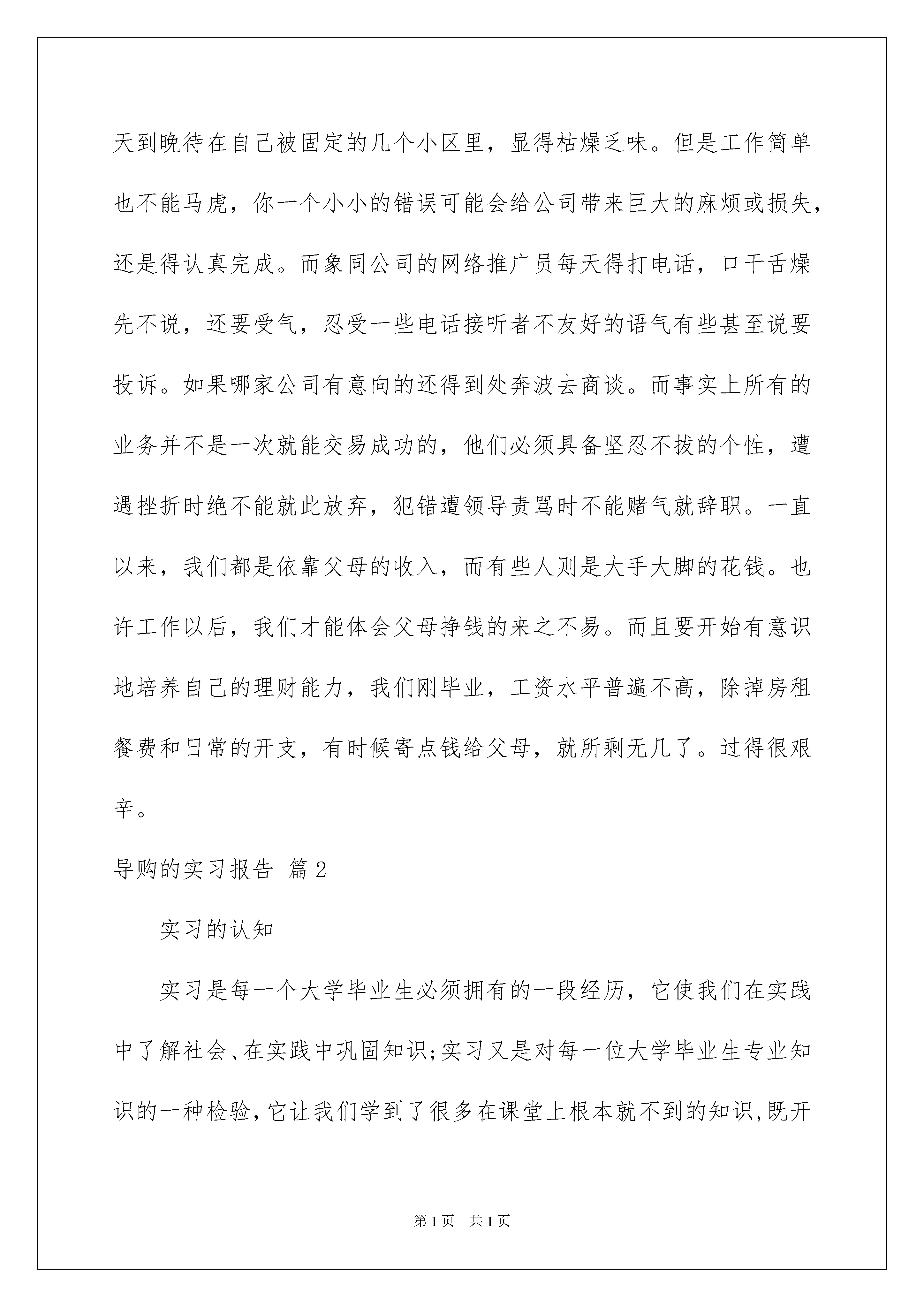 2022导购的实习报告范文合集五篇导购的实习报告范文合集五篇在人们越来越注重自身素养的今天,报告十分的重要,报告具有成文事后性的特点。你还在对写报告感到一筹莫展吗?下面是我精心整理的导购的实习报告5篇,欢迎阅读与收藏。导购的实习报告篇1xxxx年8月至今几个月期间,我在宁波恒基漆业湖州办事处TCS小区推广部小区导购岗位实习,工作。首先介绍一下我的实习单位的一些有关信息和简介:宁波市江东恒基漆业有限公司,系专业从事销售和室内外装饰、装潢服务的公司。公司于1993年在义乌市创立。公司经营的“xx涂料”系列品牌名列全国、全省同行前列,公司涂料事业在浙江省分家具漆销售系统、家装漆销售系统,系浙江省众多家具厂的涂料供应商,同时以优良环保的“xx漆”产品,高效的服务给宁波市千家万户提供新居家装涂料。公司现有员工400人以上,本着以人性化管理、发展生产力,以不断满足客户需求为己任;秉承“不断创新,追求卓越”的理念将公司涂料产业作为主业,向其他产业发展。最终实现股东、合作伙伴、员工和社会的和谐发展,积极支持公益事业。广东xx涂料有限公司,始建于1991年,是一家专业研发、生产、销售高档家具涂料、水性涂料、建筑装饰装修涂料和胶粘剂等系列产品的专业化、集团化高新技术企业。成长于中国涂料之乡---顺德的xx涂料,多年来一直是中国涂料行业的领跑者。xx涂料拥有亚洲最大、现代化程度最高以及采用德国全程监控技术的生产基地,产品产销量多年来一直位居国内同行业前列。xx涂料汇集了国内行业顶尖科研人才,聘请了数名德国等国家的涂料研发专家,“用科技的飞跃帮助生活变得更安全、更健康、更美好”的科技开发理念促使xx涂料多年来一直站在国内涂料产品技术创新的前沿,公司每年均有多项技术、多个产品获得省级以上奖励或荣誉。xx涂料在国内涂料行业内率先通过ISO9001质量体系、ISO14001环境体系以及中国环境标志产品等多项认证;20xx年,“xx”商标被认定为广东省著名商标;20xx年初,xx涂料成为首批获得“产品质量国家免检”荣誉的涂料企业之一;20xx年,xx涂料行业首获“中国名牌”称号。xx涂料在全国组建了拥有数百家经销商、数千家专卖店的销售网络,覆盖全国大、中、小城市;xx涂料以销售与服务并进的市场策略,为客户提供完善的售后服务,在全国二十几个主要城市建立了技术服务中心,拥有一支具有丰富施工经验的技术工程师队伍。作为国家重点高新技术企业的xx涂料,与多个世界知名公司建立了长期稳定的战略合作伙伴关系,以确保最新的研发技术与优质原材料的供应。这是次正式与社会接轨踏上工作岗位,开始与以往完全不一样的生活。每天在规定的时间上下班,上班期间要认真准时地完成自己的工作任务,不能草率敷衍了事。我们的肩上开始扛着民事责任,凡事得谨慎小心,否则随时可能要为一个小小的错误承担严重的后果付出巨大的代价,再也不是一句对不起和一纸道歉书所能解决。“天下英雄皆我辈,一入江湖立马催。”从学校到社会的大环境的转变,身边接触的人也完全换了角色,老师变成老板,同学变成同事,相处之道完全不同。在这巨大的转变中,我们可能彷徨,迷茫,无法马上适应新的环境。我们也许看不惯企业之间残酷的竞争,无法忍受同事之间漠不关心的眼神和言语。很多时候觉得自己没有受到领导重用,所干的只是一些无关重要的杂活,自己的提议或工作不能得到老板的肯定。做不出成绩时,会有来自各方面的压力,老板的眼色同事的嘲讽。而在学校,有同学老师的关心和支持,每日只是上上课,很轻松。常言道:工作一两年胜过十多年的读书。两个月的实习时间虽然不长,但是我从中学到了很多知识,关于做人,做事,做学问。“在学校里学的不是知识,而是一种叫做自学的能力”。参加工作后才能深刻体会这句话的含义。除了英语和计算机操作外,课本上学的理论知识用到的很少很少。我担任的是小区导购一职,岗位性质是全面负责小区销售的工作,几乎没用上自己所学的专业知识。在这个信息爆炸的时代,知识更新太快,靠原有的一点知识肯定是不行的。我们必须在工作中勤于动手慢慢琢磨,不断学习不断积累。遇到不懂的地方,自己先想方设法解决,实在不行可以虚心请教他人,而没有自学能力的人迟早要被企业和社会所淘汰。工作很辛苦每日重复单调繁琐的工作,时间久了容易厌倦。象我每天就是一天到晚待在自己被固定的几个小区里,显得枯燥乏味。但是工作简单也不能马虎,你一个小小的错误可能会给公司带来巨大的麻烦或损失,还是得认真完成。而象同公司的网络推广员每天得打电话,口干舌燥先不说,还要受气,忍受一些电话接听者不友好的语气有些甚至说要投诉。如果哪家公司有意向的还得到处奔波去商谈。而事实上