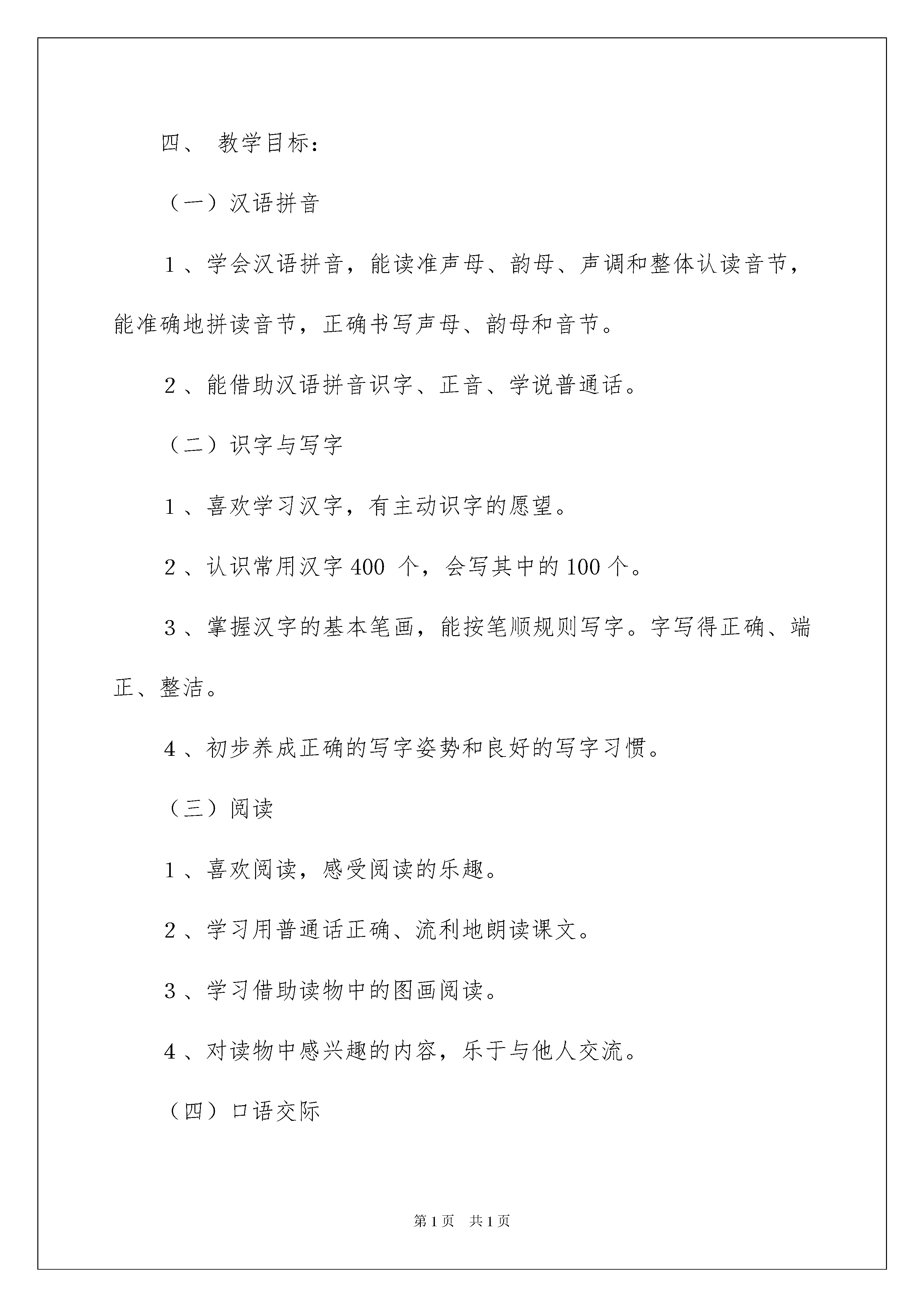 2022小学教学计划模板汇编五篇小学教学计划模板汇编五篇时光飞逝,时间在慢慢推演,又将迎来新的工作,新的挑战,立即行动起来写一份教学计划吧。想必许多人都在为如何写好教学计划而烦恼吧,下面是我整理的小学教学计划5篇,仅供参考,欢迎大家阅读。小学教学计划篇1一、指导思想:在语文教学中,贯彻国家的教育方针,面向现代化、面向世界、面向未来;要以马列主义和科学的教育理论为指导,联系学生现实生活,倡导自主、合作、探究的学习方式,全面提高学生的语文素养,培养创新精神和实践能力,促进每个学生的全面发展,加强语文实践,积极进行教学改革,提高教学质量。二、班级分析:刚刚进入小学阶段的小学生,活泼好动、天真烂漫,每个人的思想,品德都不成熟,处于形成的初步时期。对于学校班级的各项纪律、规定都不了解,集体主义观念还未形成,对于学习更说不上什么“勤奋、钻研、细心”的精神,学习目的还未明确,学习习惯正处于逐步形成的阶段。因此需要老师耐心引导。三、教材分析:本册教科书包括“入学教育”、“汉语拼音”、“识字”、“课文”“语文园地”、“口语交际”几个部分。识字的编排,实行认写分开,多认少写。首先编排汉语拼音,在学习拼音的同时认识70个常用字。而后是识字(一)、10篇课文,接下来是识字(二)、又10篇课文。两个识字单元各5课,每课认字11-14个。20篇课文分作4个单元,大体按由浅入深的顺序编排,每个单元的课文在内容上有一定的联系。在每个单元之后设语文园地,以丰富的内容和多样的形式,巩固语文知识,发展语文能力。此外,全册设6个口语交际话题,安排在每个单元后面,使学生在创设的情境中进行口语交际的训练。识字的编排,实行认写分开,多认少写。全册认识400个常用字,写其中100个笔画简单的字。教材的编写以课程标准为依据,体现了课程标准提出的基本理念和基本精神,教材内容具有综合性、科学性、时代性、趣味性、广泛适用性等特点。四、教学目标:(一)汉语拼音1、学会汉语拼音,能读准声母、韵母、声调和整体认读音节,能准确地拼读音节,正确书写声母、韵母和音节。2、能借助汉语拼音识字、正音、学说普通话。(二)识字与写字1、喜欢学习汉字,有主动识字的愿望。2、认识常用汉字400个,会写其中的100个。3、掌握汉字的基本笔画,能按笔顺规则写字。字写得正确、端正、整洁。4、初步养成正确的写字姿势和良好的写字习惯。(三)阅读1、喜欢阅读,感受阅读的乐趣。2、学习用普通话正确、流利地朗读课文。3、学习借助读物中的图画阅读。4、对读物中感兴趣的内容,乐于与他人交流。(四)口语交际1、学说普通话,逐步养成说普通话的习惯。2、能认真听别人讲话,努力了解讲话的主要内容。3、能与别人交谈,态度自然大方,有礼貌。4、有表达的自信心。积极参加口语交际,踊跃发表自己的意见。五、教学重点、难点:(一)重点:1、汉语拼音是学生学习汉语的工具,因此汉语拼音的教学是重点。2、认识常用汉字380个,其中会写160个汉字。3、学讲普通话,逐步养成讲普通话的习惯。(二)难点:1、汉语拼音比较抽象又容易混淆,因此学生掌握起来就比较困难,因此,拼音教学是难点。2、识字量的增加,使学生“回生率”很高,因此380个汉字教学是难点,如何巩固汉字更是一个难点。3、如何引导学生积累语言,在阅读教学中是个难点。六、教学措施:1、端正教学思想,改进教学方法,正确把握新教材的特点,抓住教学的重点、难点,紧扣教学目的,备好每一堂课,使学生上完课后都能有所得,都有充实感。帮助学生了解学校常规,帮助学生养成良好的学习习惯。2、帮助学生了解学校常规,帮助学生养成良好的学习习惯。吃透新教材,深入了解学生,创造性地使用新教材。3、在拼音教学中要摆正情境图、语境歌和学字母的关系,强化音节教学,重视教给学生拼读成直呼音节的方法,利用教材形象优美的情境图,创设轻松愉悦的学习情境,激发学生的学习兴趣。4、加强语文和儿童生活的联系;引导学生留意生活,在生活中学语文。5、设立学习小组,让学生自主合作地开展学习,培养合作探究精神。6、认真批改每课作业,及时作好反馈、小结。7、尊重学生的个体差异,及时导优辅差。8、变学会为会学,教给学生学习的灵活方法,把主动权交给学生。尽量注重教材和整合,整体地运用教材,并力求能创造性地使用教材,进行整单元备课,在备课时注重单元内每个教点的联系。9、阅读教学中要结合学生的年龄特点和认识水平,把握好理解的度,摒弃繁琐的分析和空洞的说教,做到“读”字当头,多读、精讲、重视朗读背诵的指导,重视学生对语字的认识和积累。10、重视学生写字习惯的培养,要加强写字教学的指导。在指导写字的时候,板书示