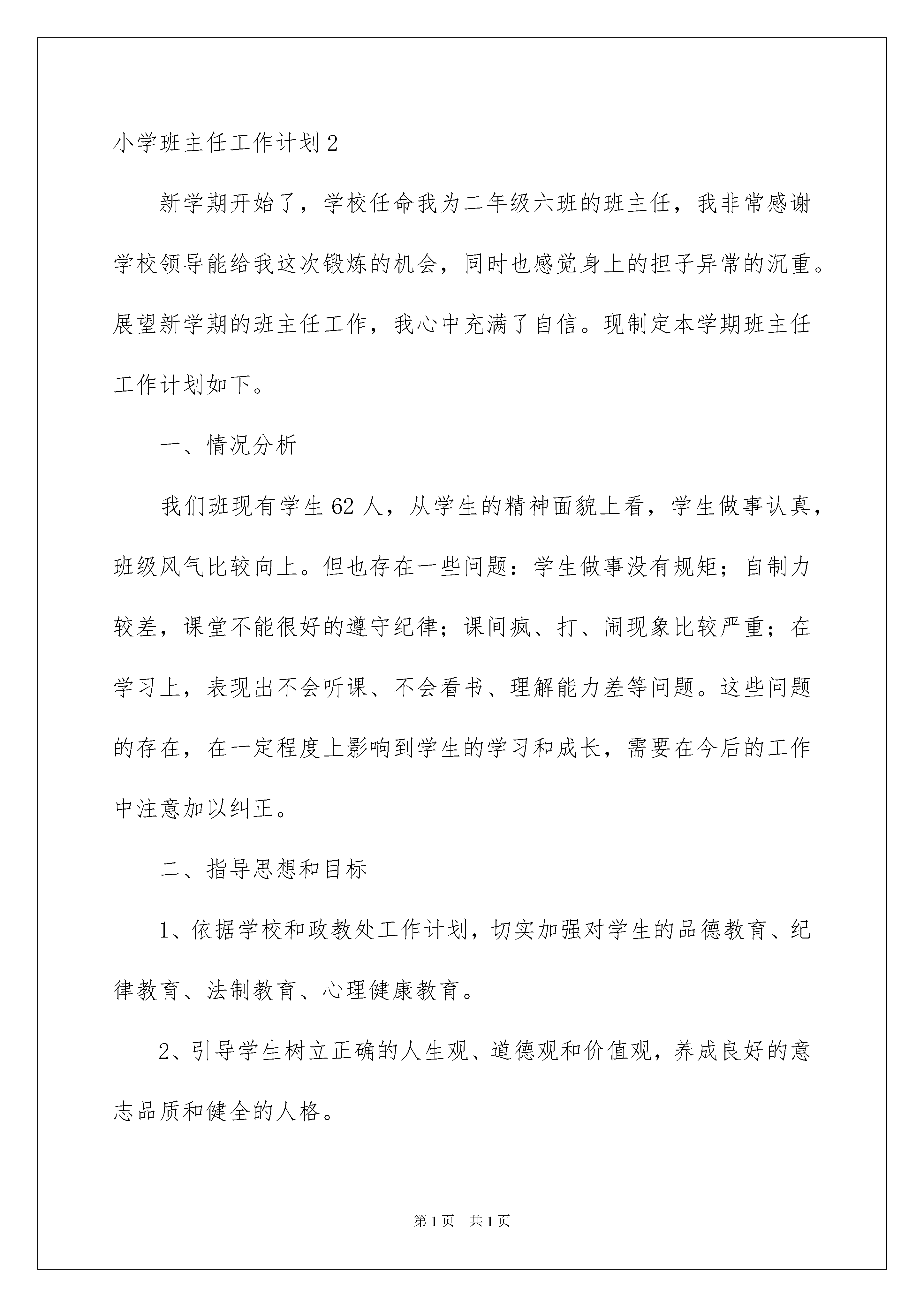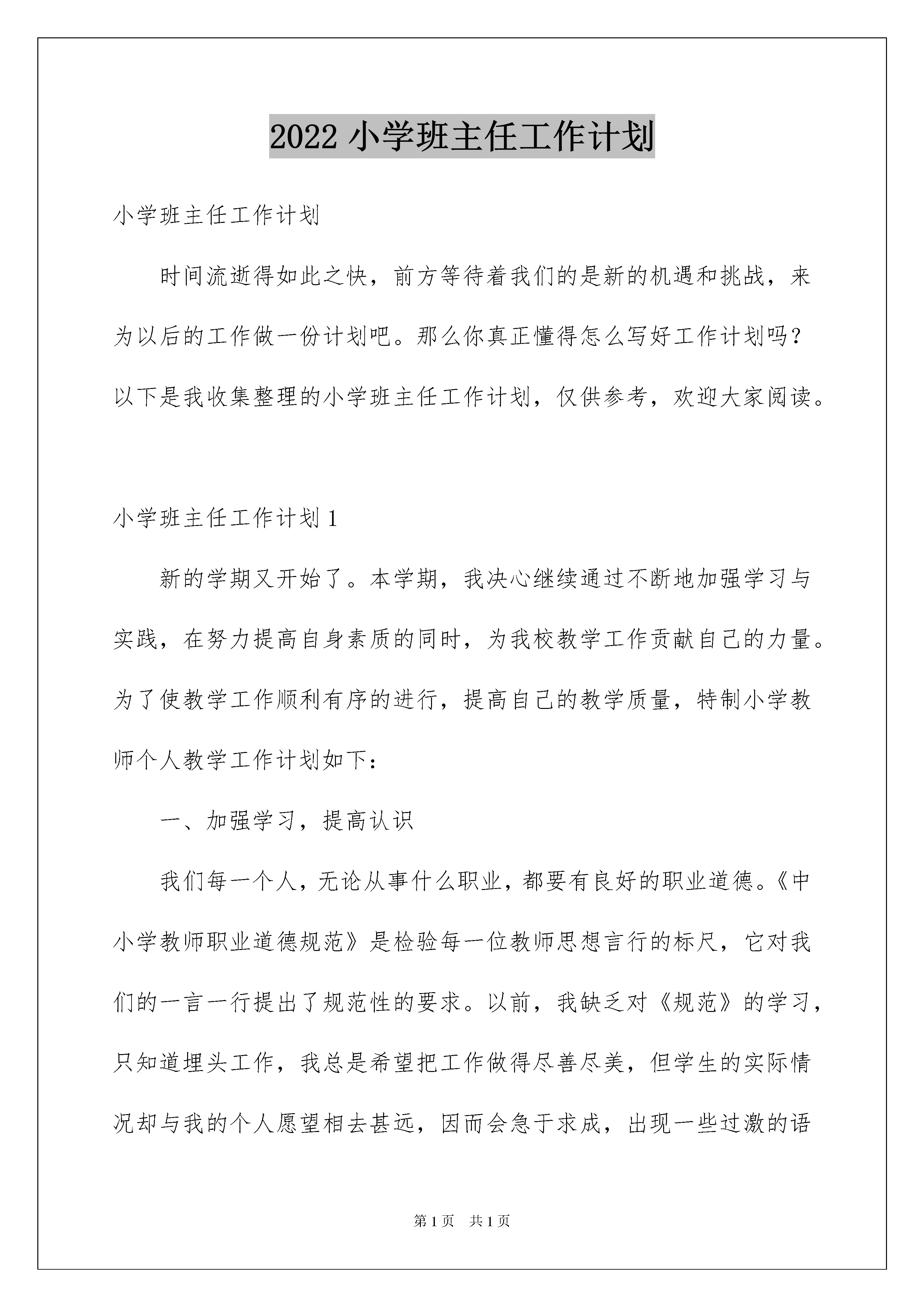 2022小学班主任工作计划小学班主任工作计划时间流逝得如此之快,前方等待着我们的是新的机遇和挑战,来为以后的工作做一份计划吧。那么你真正懂得怎么写好工作计划吗?以下是我收集整理的小学班主任工作计划,仅供参考,欢迎大家阅读。小学班主任工作计划1新的学期又开始了。本学期,我决心继续通过不断地加强学习与实践,在努力提高自身素质的同时,为我校教学工作贡献自己的力量。为了使教学工作顺利有序的进行,提高自己的教学质量,特制小学教师个人教学工作计划如下:一、加强学习,提高认识我们每一个人,无论从事什么职业,都要有良好的职业道德。《中小学教师职业道德规范》是检验每一位教师思想言行的标尺,它对我们的一言一行提出了规范性的要求。以前,我缺乏对《规范》的学习,只知道埋头工作,我总是希望把工作做得尽善尽美,但学生的实际情况却与我的个人愿望相去甚远,因而会急于求成,出现一些过激的语言或行为。虽然我的动机是良好的,殊不知在不知不觉中却违反了师德。因此,我首先要加强学习,认真领会《规范》中的各项内容,让《规范》的要求深入我心,只有这样,才能保证自己在今后的工作中不偏离方向,不出现违反师德的行为。二、以身立教,为人师表师德中既有教师本人的品德,又有作为教师的职业道德。教师的工作对象是学生,教师的思想、行为、作风、仪表、气质随时都感染和影响着学生。因此,教师必须“美其德,慎其行”,不能出现一点疏漏。凡是要求学生做到的事情,自己必须做到。虽然我的孩子很小,家庭负担很重,但我决不因为个人原因影响工作,哪里有学生,哪里就有我。要求学生每天7:40到校,我坚持每天必到,无论有多大的困难也要自己克服。在工作中,时刻注意自己的形象,穿戴整洁、朴素、大方,举止文雅,带头遵守学校的各项规章制度,积极参加各项活动及公益劳动,为学生树立良好的学习榜样,同时,也用自己的实际行动树立起自己在学生中的威信及良好的教师形象。三、加强修养,提高素质马卡连柯曾说过:“学生可以原谅老师的严肃、刻板,甚至吹毛求疵,但不能原谅他们的不学无术。”作为一名教师,肩负着教书育人的双重任务,要想出色地完成任务,不仅要具备精深的专业知识,还要广泛涉猎其他相邻学科的知识领域,用丰富的知识武装自己的头脑。随着时代的前进,学生对教师的要求越来越高,加之新课程改革地推行,也开始呼唤新时代的新型教师。因此,为了能够更好地完成本职工作,无愧于学生、家长及社会的期望,无愧于人民教师的光荣称号,今后,我要继续加强学习,在条件允许的情况下,继续深造,努力提高自己的专业知识和专业素养,尽快提高教学水平;同时,深入学习《教育学》、《心理学》,了解学生的年龄和心理特征,为顺利开展班主任工作奠定基础。另外,在搞好教育教学工作的同时,还要注意培养自己广泛的兴趣和爱好,不断陶冶自己的情操,做一名高素质的人民教师。四、关爱学生,无私奉献教师师德高尚的重要体现就是把自己的全部身心都献给学生,献给教育事业。本学期,我继续担任一年级教学工作。虽然这对于我来说负担比较重,在工作中,要注意转变观念,端正思想,摒弃传统的师道尊严的影响,把学生视为平等的教育对象,而不是凌驾于学生之上,惟我独尊,任意发号施令,要逐渐树立正确的人才观、师生观,尊重学生的人格,建立平等、和谐的师生关系。在今后的教育和教学工作中,我对学生要本着关心爱护与严格要求的原则,不偏袒好学生,更不歧视差学生,要爱得有方,严得有度,特别是对后进生,决不讽刺挖苦他们,更不体罚和变相体罚他们,要善于发现学生身上的闪光点,并为他们创造展示自我的机会,帮助学生树立信心,矫正不良的行为习惯。在工作中要有“四心“,即爱心、耐心、信心、恒心,以自己对学生的一片热爱和对教育事业的一片赤诚,坚持不懈的做好本职工作,不惜时间,不计报酬。做好对学生的家访工作,尤其是对后进生要逐一进行家访,加强与学生家长的沟通,帮助父母重新认识自己的孩子,找到孩子真正的致差的原因,变革教育方法,并有意识地诱导家长反省自己的失误,认识孩子的发展变化,变盲目配合为协作教育。总之,我会从自我做起,维护人民教师的良好形象,本着教育一个学生,挽救一个家庭,稳定整个社会的宗旨和敬业、爱生、奉献的原则,严肃认真、全心全意地做好本职工作,以良好的师德回报社会。小学班主任工作计划2新学期开始了,学校任命我为二年级六班的班主任,我非常感谢学校领导能给我这次锻炼的机会,同时也感觉身上的担子异常的沉重。展望新学期的班主任工作,我心中充满了自信。现制定本学期班主任工作计划如下。一、情况分析我们班现有学生62人,从学生的精神面貌上看,学生做事认真,班级风气比较向上。但也存在一些问题:学生做事没有规矩