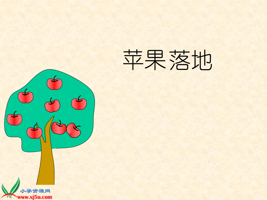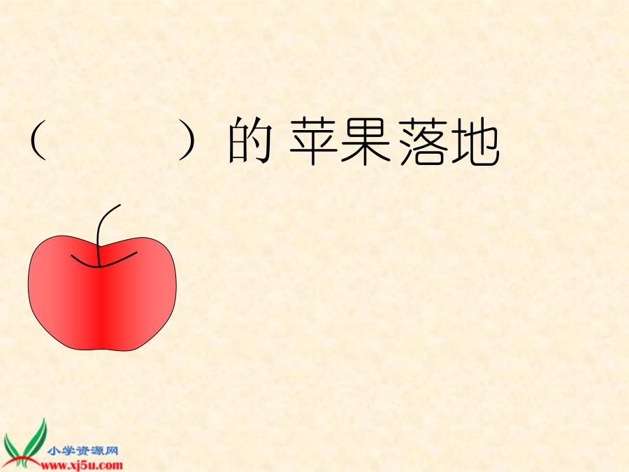 苹果落地苹果苹果苹果苹果苹果苹果苹果hūpā 忽然,一个苹果“啪”的一声 diào 从树上掉了下来,落在他的身边。第一步: 1.拼拼音节,读准字音。 2.把句子读通顺。dùnnaojīnyùzǒngxīuxī 牛顿动脑筋遇到总要休息 hūpādiàoyán 忽然啪掉了下来自言自语 érsīikaozhuānyánjīuxīyǐn 而思考专心研究吸引力 pǔxiàngkēshìjièzhùmíng 普通现象科学世界著名第二步: 通读课文,思考:牛顿是个什么样 的人?牛顿从小爱动脑筋,遇 到问题总要问个为什么。牛顿从小爱动脑筋,遇 到问题总要问个为什么。牛顿看见了,觉得很奇怪, 他想:“这个苹果为什么会掉下 来呢?” “那一定是它太熟了。”他自 言自语地说。“可是,为什么苹 果只向地上落,而不向天上飞, 也不向左右抛落呢?”他又想。可是,为什么苹果只向地上落, 而不向天上飞,也不向左右抛 落呢?牛顿看见了,觉得很奇怪。照样子用为什么提问。 例:苹果掉下来。 苹果为什么会掉下来呢? (1)苹果不向天上飞。 (2)地球有吸引力。 Zǒngdiàoyánér 总掉言而请填上表示声音的词。 1.花瓶()一声 被小花猫打破了。 2.北风()地刮着。 3.小树()一声被 大风刮断了。