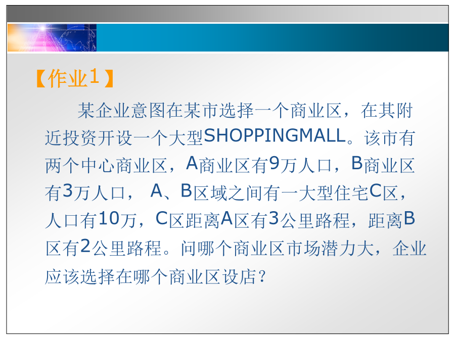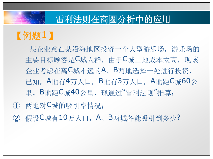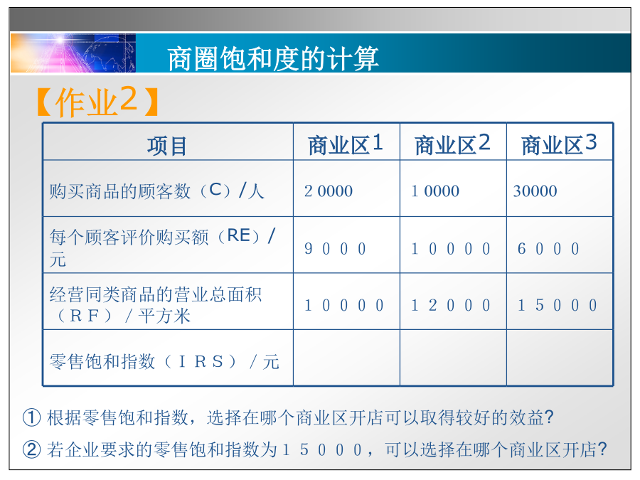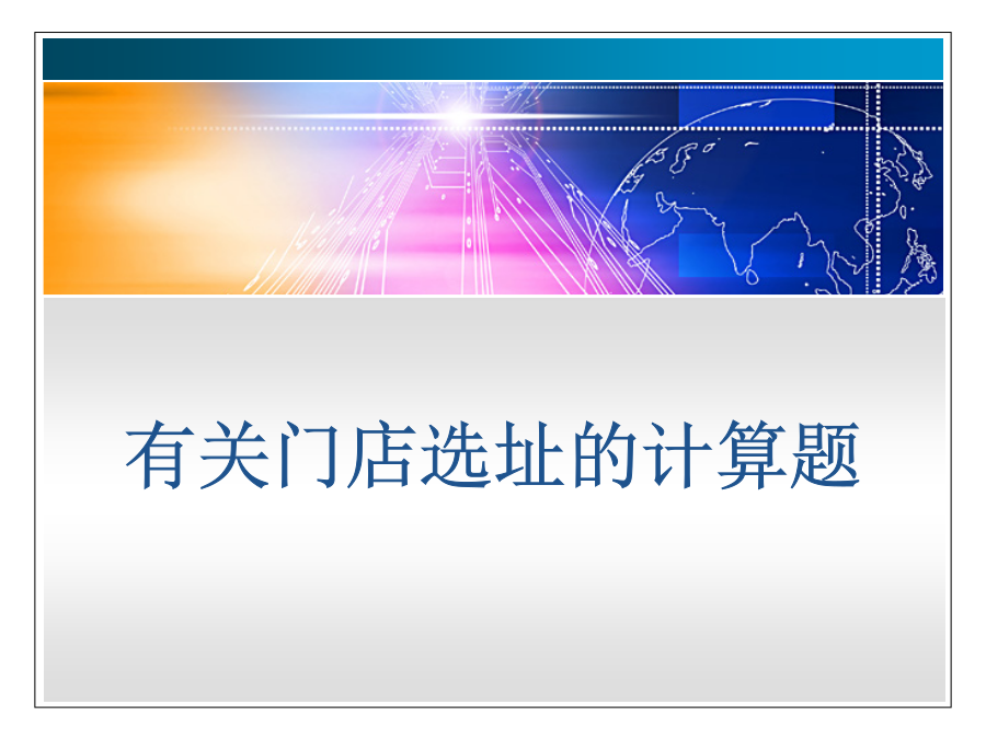 有关门店选址的计算题雷利法则在商圈分析中的应用商圈饱和度的计算商圈饱和度的计算