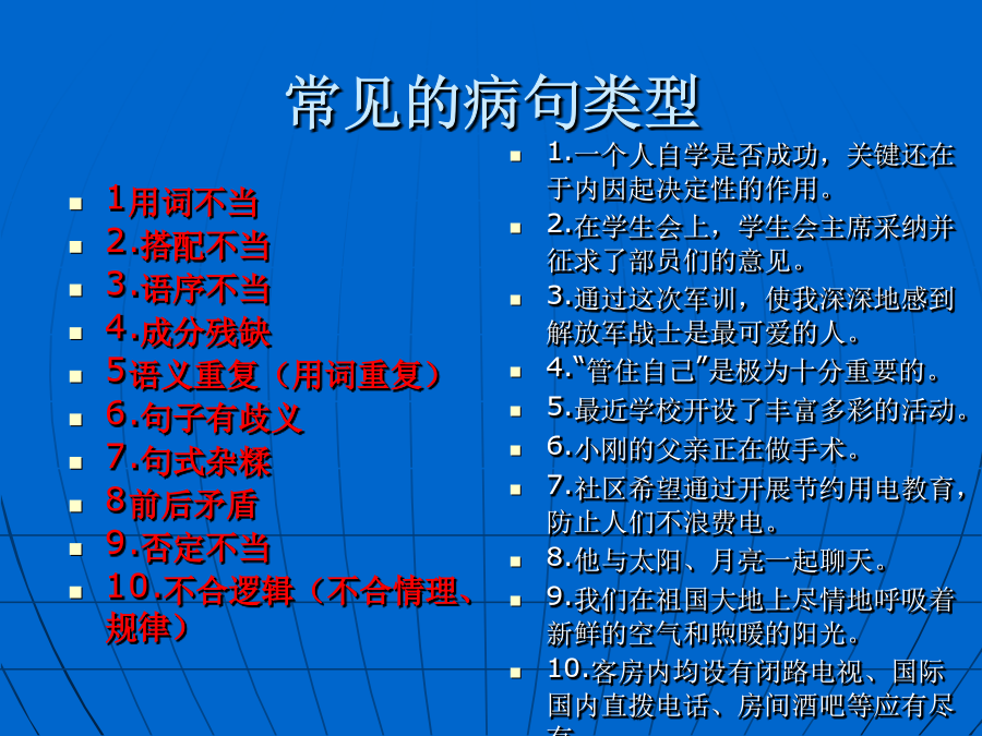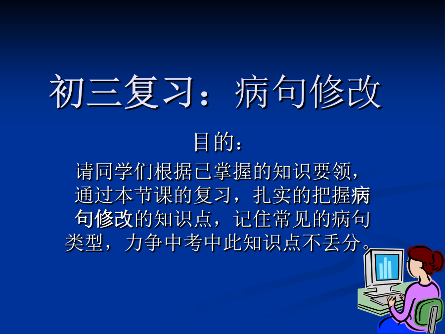 初三复习:病句修改常见的病句类型病句修改的原则和方法