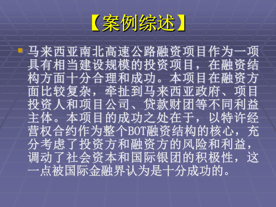 案例2马来西亚南北高速公路项目融资)国际金融(理论·实务·案例)