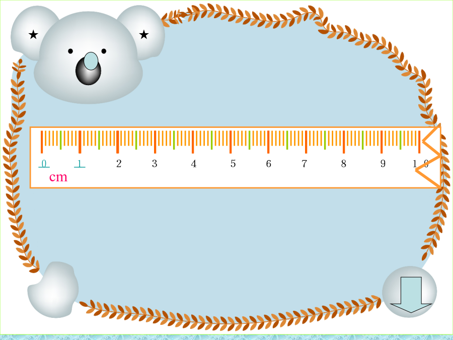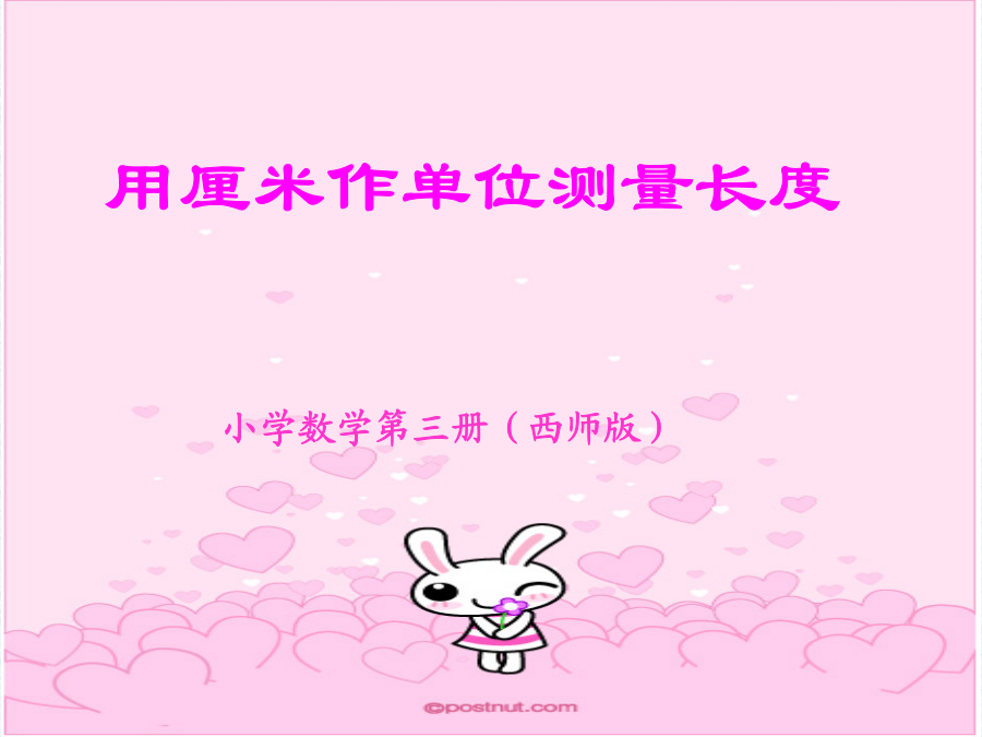 用厘米作单位测量长度刻度线厘米00123456789100123456789100123456789100123456789100123456789100123456789102cm4cm5cm2cm蚂蚁王国测量大赛现在开始!!!4cm7cm6cm4cm