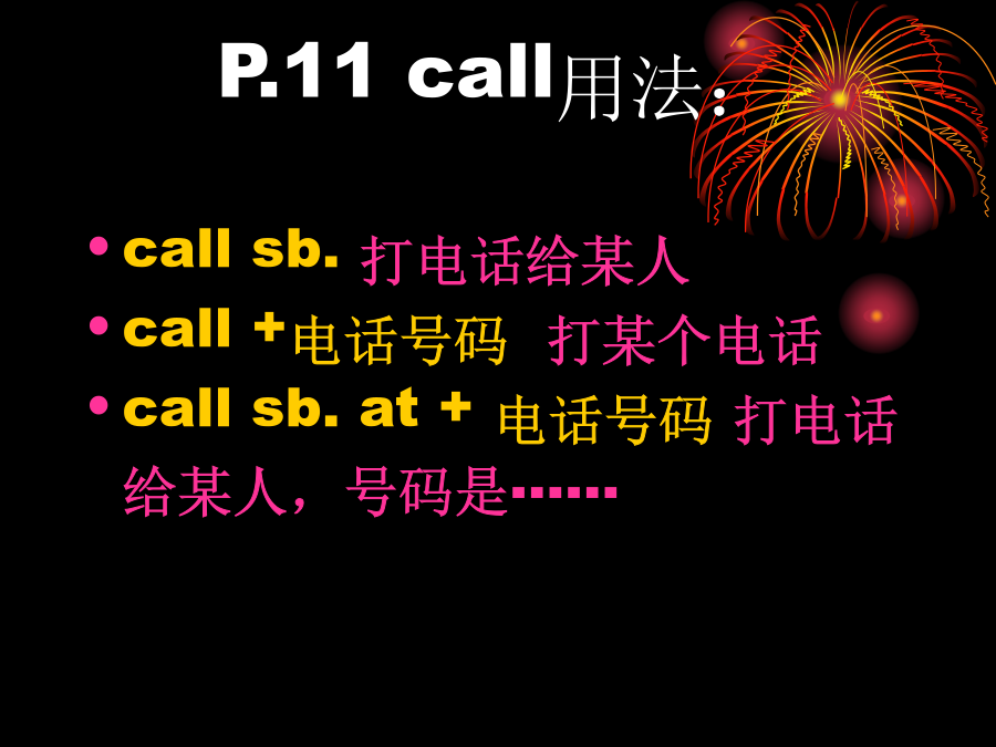 P.11call用法:Game:Yes./No.(每题可考虑5秒钟)Practice:LostandfoundLost:mycomputergame/Toby/15324763459