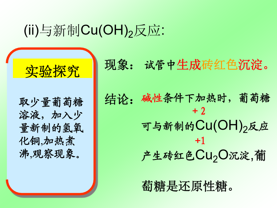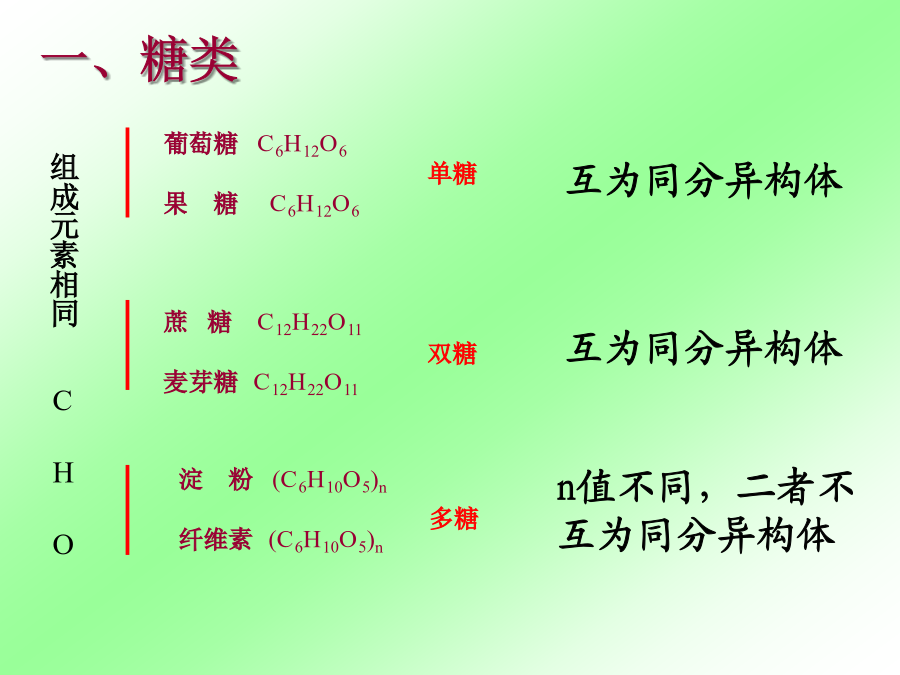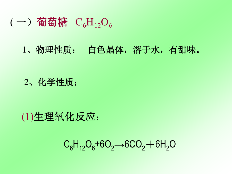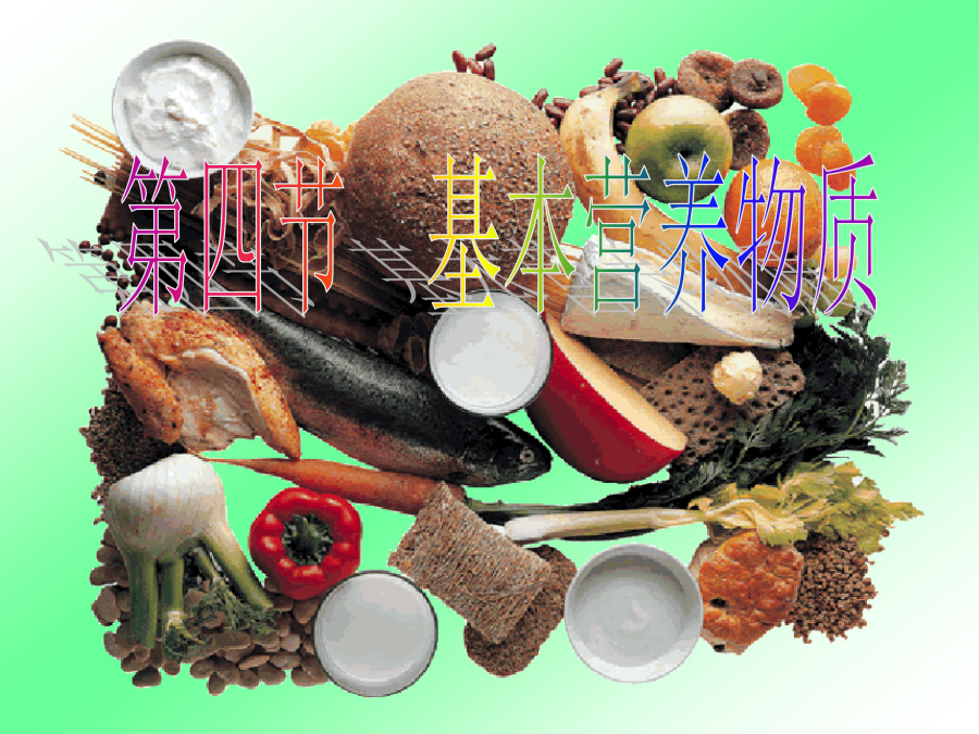 第四节基本营养物质葡萄糖C6H12O6果糖C6H12O6(2)特征反应(二)蔗糖:演示对比实验:反应原理:常温下,淀粉遇碘变蓝思考:二、油脂三、蛋白质二、基本营养物在生产、生活中的应用能力提高谢谢指导!
