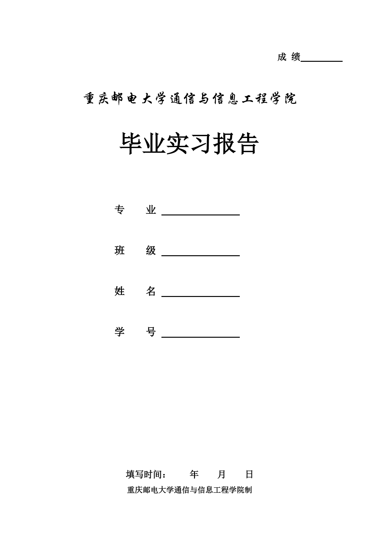 成绩重庆邮电大学通信与信息工程学院毕业实习报告专业班级姓名学号填写时间:年月日重庆邮电大学通信与信息工程学院制实习时间实习单位实习主要经历今天是个好日今天是个历练注:此栏不够可自行加长,用小四号宋体,行距1.3,填写时请删除本行文字。实习中遇到的主要问题及解决情况注:此栏不够可自行加长,用小四号宋体,行距1.3,填写时请删除本行文字。实习总结注:此栏不够可自行加长,用小四号宋体,行距1.3,填写时请删除本行文字。实习单位鉴定注:本栏内容可打印,也可用蓝、黑墨水笔书写。(校外实习需加盖单位公章)年月日