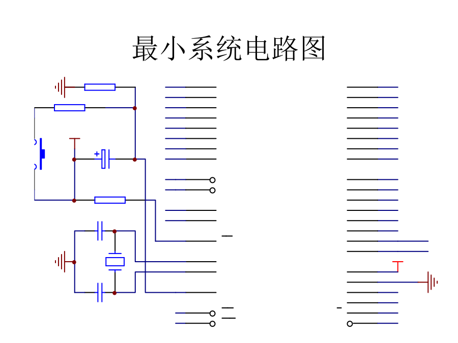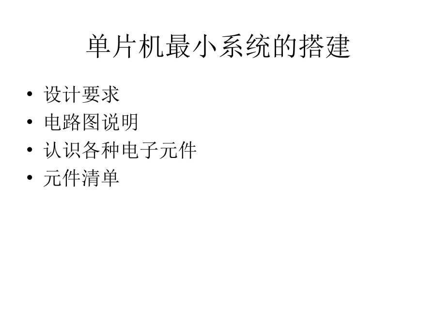单片机最小系统的搭建设计要求最小系统电路图实物图实物图反面单片机IC座电阻电容晶振二极管三极管LED插件连接线与杜邦元件清单