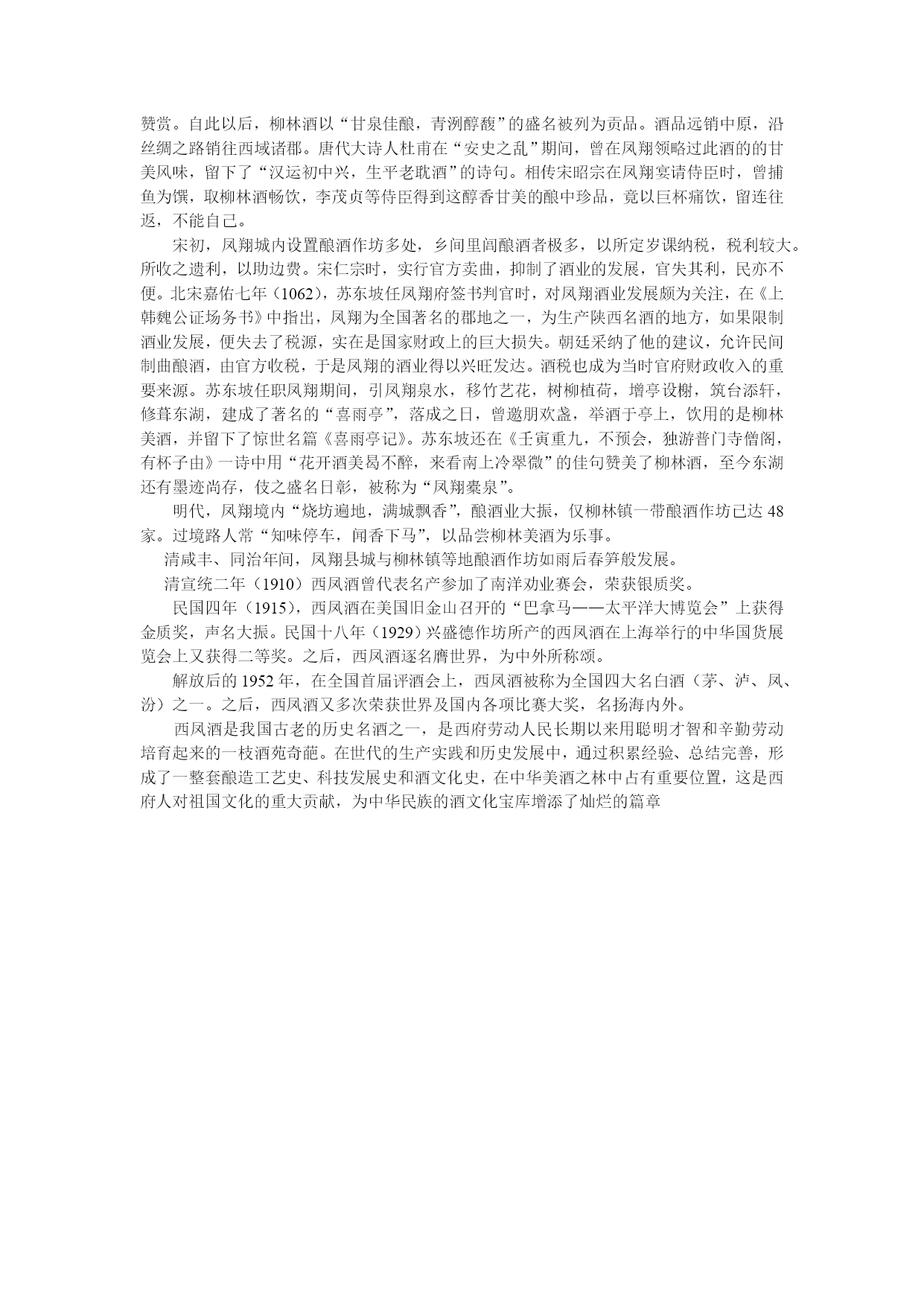 西凤酒发源据《凤翔县志》载:唐代安史之乱爆发,叛兵逼近雍城。太守广征民夫构筑新城以防不测,但屡筑屡塌。有天夜里突然天降大雪,人武都感到奇怪。清晨从东边天际飞来一只金色凤凰,金凤先在柳林上空盘旋了一阵,又飞回雍城。它昂首高鸣,直冲云霄,霎时风住雪停,霞光满天。在灿烂的霞光里,金凤踏雪而行,走了一个四方形的圈子,便飞往柳林饱饮了柳林泉水,然后迎着明媚的阳光飞往太阳升起的东方。太守得知此事后亲自查看,便在凤凰所踏之足迹上筑城。不久一座新城便巍然屹立在旧城一侧。后来唐肃宗在雍城继位,他根据金凤飞翔之意,下令将雍城改名为“凤翔”。为了纪念此事,人们还将凤凰饮用过的水泉易名为“凤凰泉”。陕西牡丹西凤酒有限公司位于13朝古都西安,公司所经营的牡丹系列西凤酒是公司的主打产品。我公司是以酒品、饮料营销、研发、策划、管理、物流配送为一体的专业化营销企业。陕西牡丹西凤酒有限公司隶属于西凤酒招商营销网sxxfj.un118.com中华西凤酒超市。陕西牡丹西凤酒有限公司成立于2003年,注册资金600万元人民币,现有员工300多人,下设行政和人力资源部、市场营销部、市场拓展部、生产控制部、物流配送中心、财务部等职能部门和16个销售部门和分支机构,是中国四大名酒之一——牡丹西凤酒系列产品的全国总经销商,产品营销网络覆盖陕西108个市县及北京、广东、郑州、厦门、新疆、重庆、广西、吉林等二十多个省市,公司位于西安高新技术产业开发区丈八一路绿地同盟大厦B座。公司成立以来,始终秉承“诚信经营、质量为本、客户至尊、实现共赢”的企业经营理念,依托西凤酒本身浓厚的文化氛围和强势品牌,与陕西白酒行业巨头西凤酒集团股份有限公司牵手合作共同开创了白酒侠文化第一品牌,并致力于打造中国白酒第一文化品牌的企业发展战略,牡丹西凤酒酒质保持西凤酒三绝:不上头、不干喉、回味愉快的特点基础上,将传统工艺与现代科技相结合,在原凤香型酒基础上开创了新型凤兼浓香型,醇香典雅,味甘挺爽,诸味协调,尾净悠长,改写了西凤酒口味辛辣暴烈的历史,实现了西凤酒酒体上的一大突破。西凤酒·华山论剑系列酒自投放市场以来,深受消费者喜爱和青睐,已连续五年销售额和市场占有率实现翻番。经过七年的探索和成功运作,牡丹酒业现已发展成为一支组织机构健全、营销网络密集、人才储备完善、销售业绩骄人的陕西高端白酒市场的劲旅,被誉为陕西白酒界的一匹黑马。西凤酒始于殷商时期的“秦酒”,至今已有3000多年的历史。商周时即为王宫御酒,独特酿造工艺无断代传承,至今已形成其独特风格。凭借三千年的独特古法酿造工艺和五百年的酒海秘藏储存方式,西凤酒形成醇香典雅、甘润挺爽、诸味协调、尾净悠长的凤香型白酒典范。作为凤香型白酒典型代表,西凤酒多次荣获国际大奖,是我国最早的历史名酒之一。并为首届国家四大名酒。其优良品质被古今名人甚为推崇。牡丹西凤酒介绍西凤酒是我国“八大名酒”之一,唯以凤翔城西柳镇所生产的酒为最佳,声誉最高。在唐朝西凤酒就以“甘泉佳酿,清冽醇馥”被列入珍品而闻名于世。是我国和世界上最古老的酒种之一。牡丹西凤酒(4张)西凤牡丹酒—酒色清亮透明,醇香芬芳,清而不淡,浓而不艳,集清香、浓香之优点融于一体,幽雅、诸味谐调,回味舒畅,浓头酱尾,风格独特。被誉为“酸、甜、苦、辣、香五味俱全而各不出头”,乃酒中珍品也!西凤酒具有“凤型”酒的独特风格。它清而不淡,浓而不艳,酸、甜、苦、辣、香,诸味谐调,又不出头。它把清香型和浓香型二者之优点融为一体,香与味、头与尾和调一致,属于复合香型的大曲白酒。西凤酒的特点是:酒液无色,清澈透明,清芳甘润、细致,入口甜润、醇厚、丰满,有水果香,尾净味长,为喜饮烈性酒者所钟爱。走进西风文化凤翔,古称雍州,为成周发祥之地、嬴秦创霸之区,是古代农业发展较早的地区,人类在这里从事农业活动已有五六千年的历史,是黄河流域上中华民族古老文化的重要发源地之一。相传周文之时“凤凰集于歧山,飞鸣过雍”;春秋时代秦穆公之爱女弄玉喜欢吹笛,引来善于吹萧的华山隐士萧史,知音相遇,终成眷属,后乘凤凰飞翔而去。唐萧宗至德二年(757年)取此意将雍州改名为凤翔。先秦19位王公曾在此建都,历时294年,历史上曾是关中西部的政治、经济、文化中心。从秦建都以后的各个朝代,均为州、郡、府、路之治所,故又有“西府”之称。这里自古以来盛产美酒,尤以凤翔县城以西的柳林镇所酿造的酒为上乘。到了汉代,雍城的酿酒业发展更快。汉朝自高祖至文景帝之祭五[田寺]活动,曾19次到雍地举行,“百礼之会,非酒不行”,耗酒量甚巨,自宫廷而至达官贵人“日夜饮醇酒”;民间婚丧嫁娶,请客送礼,无不用酒。酒的产量和制酒工艺日见提高,民间制曲技术亦有长足进步,进而逐步改进酿酒设备,遂开始了用文梁作原料,用大麦、豌豆做曲的蒸馏酒的酿造,于是烧酒开始问世,此种白酒便是西凤酒的早期前身,当时凤翔