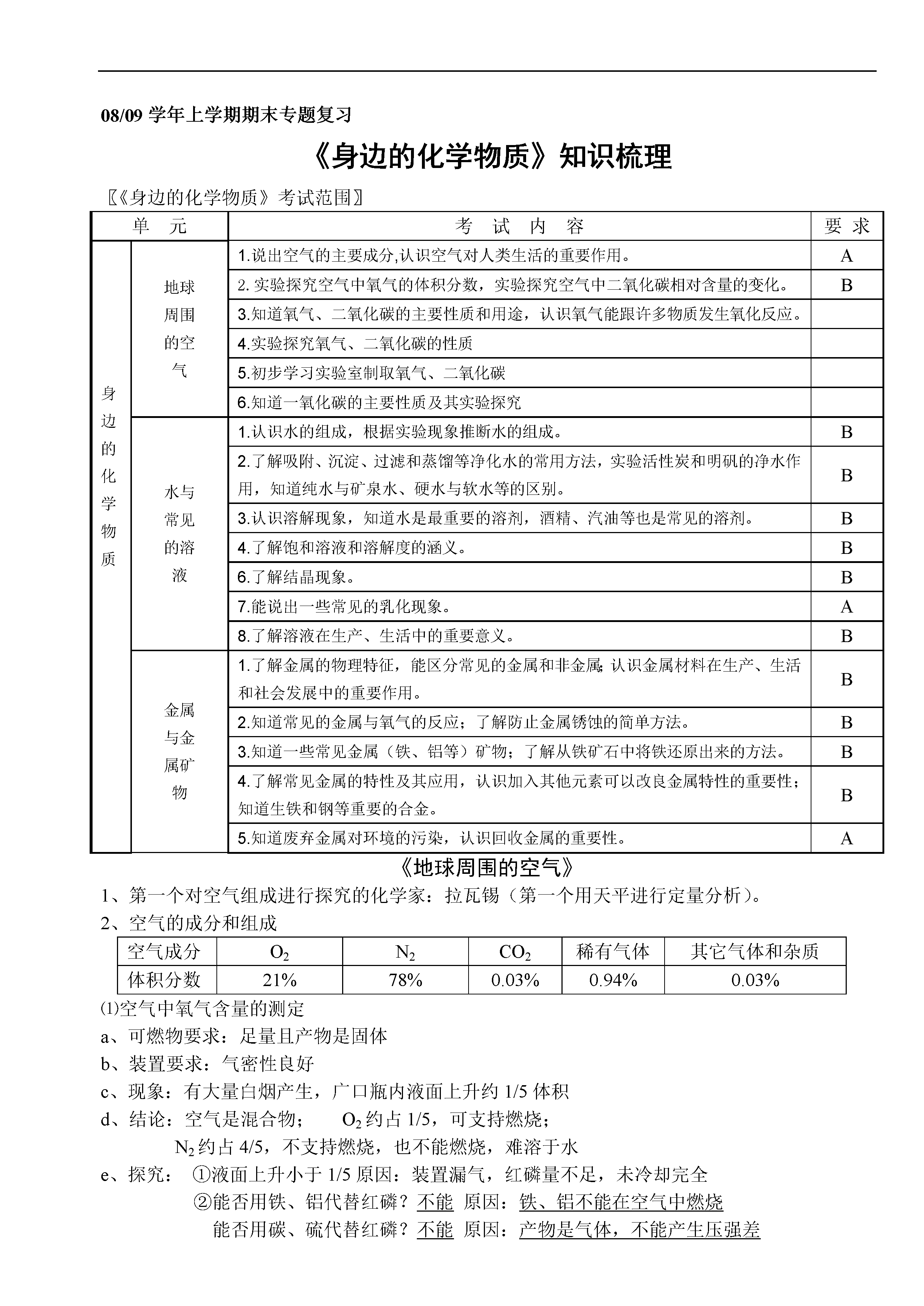076-上学期期末复习《身边的化学物质》知识梳理(2009-1.10).doc