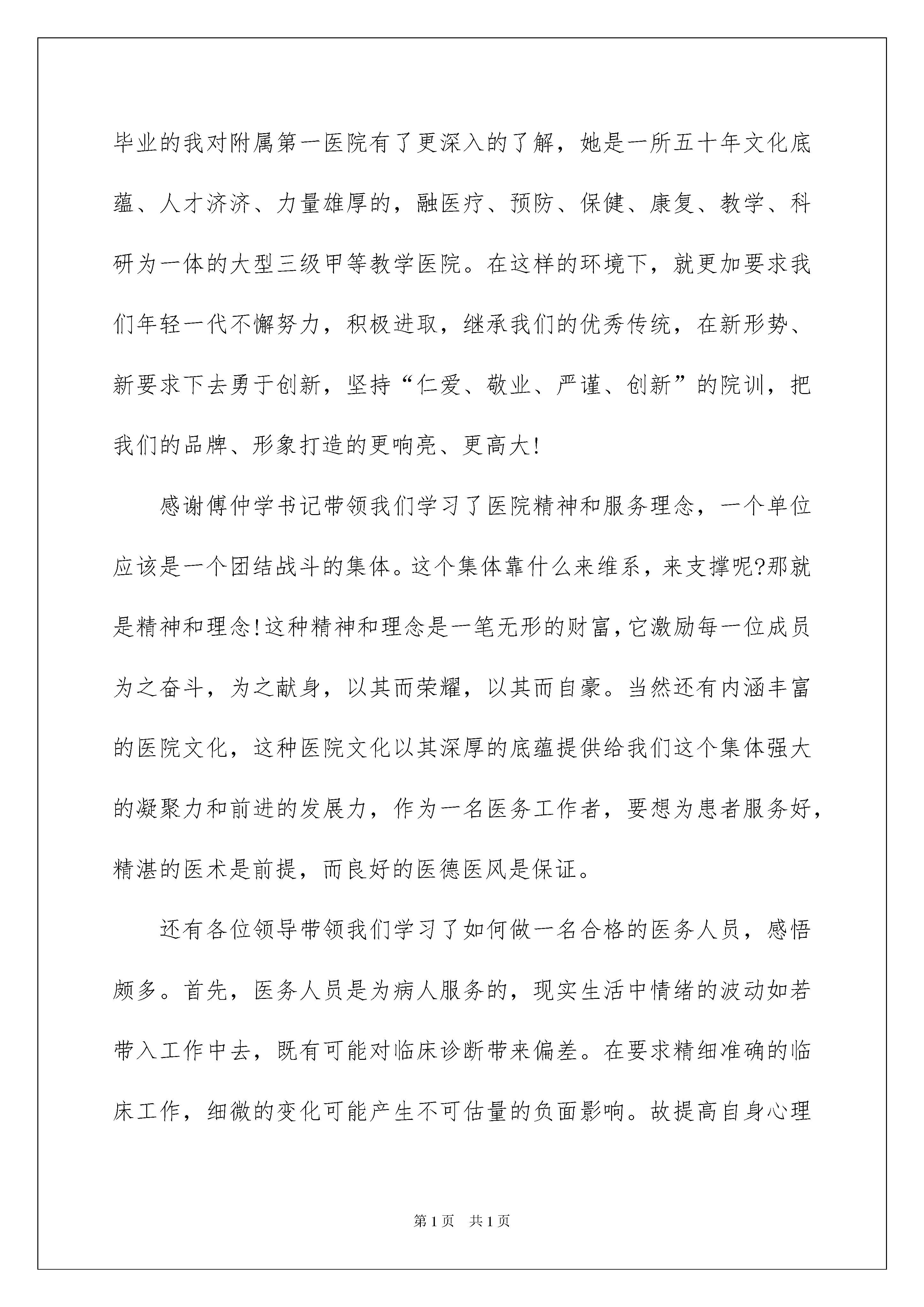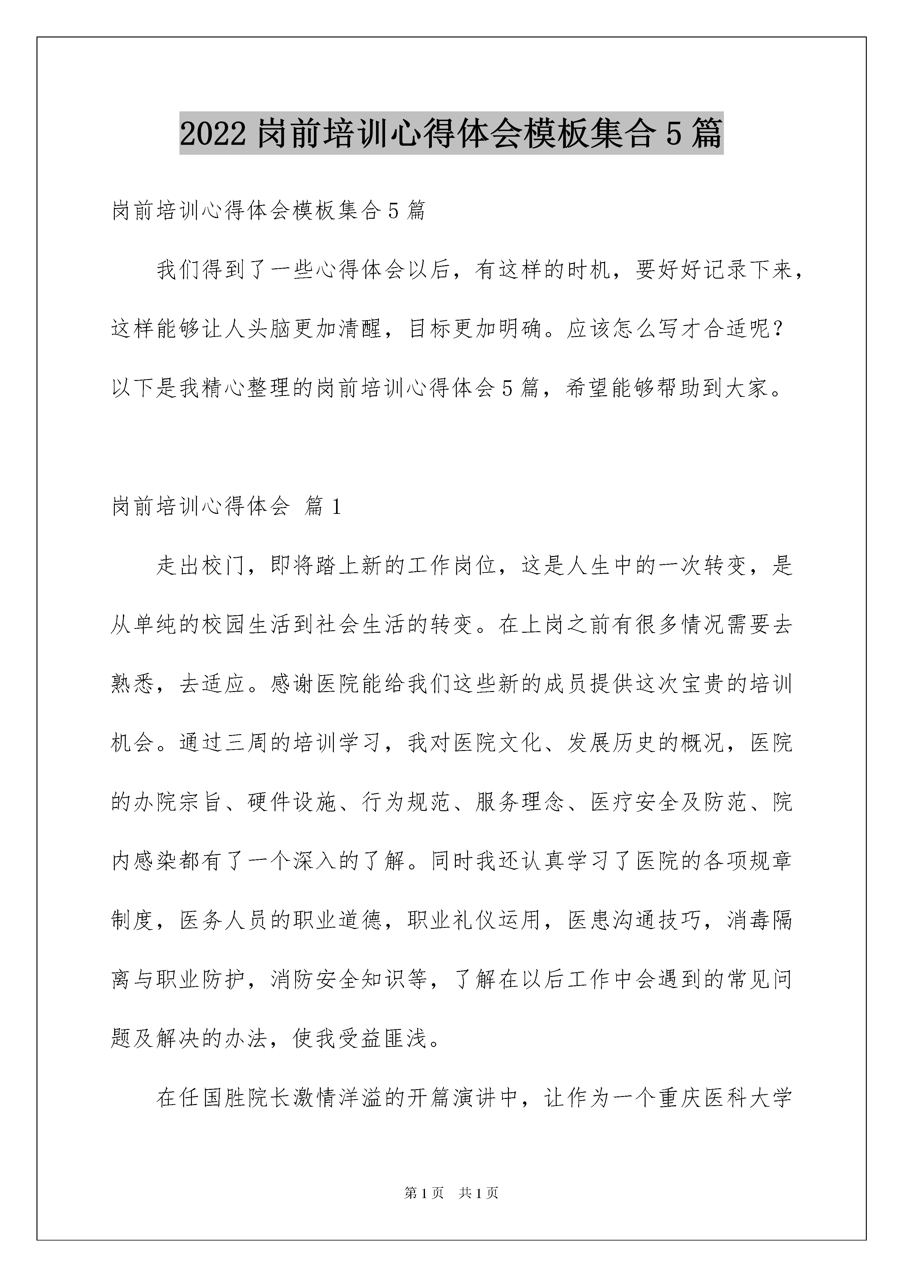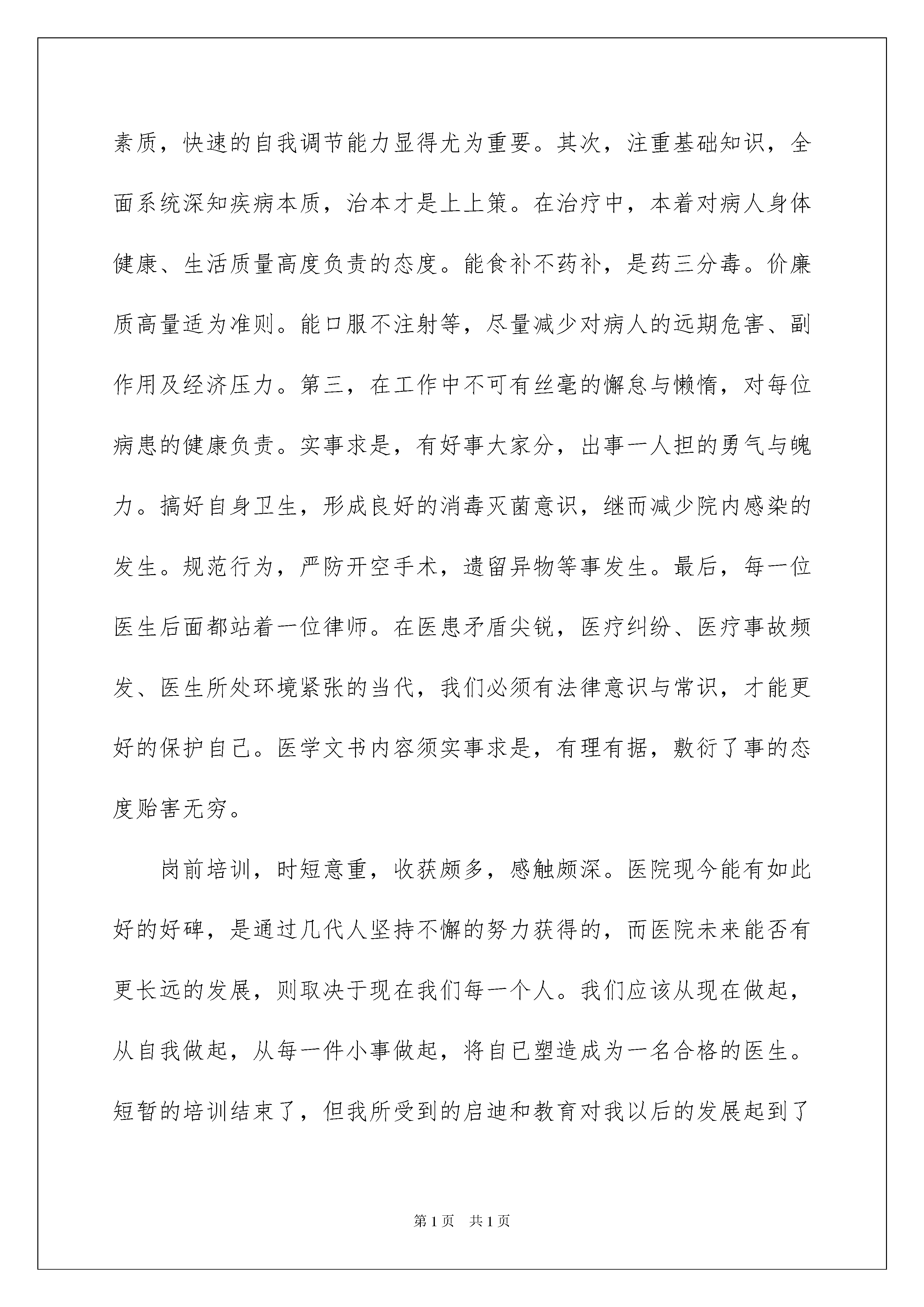 2022岗前培训心得体会模板集合5篇岗前培训心得体会模板集合5篇我们得到了一些心得体会以后,有这样的时机,要好好记录下来,这样能够让人头脑更加清醒,目标更加明确。应该怎么写才合适呢?以下是我精心整理的岗前培训心得体会5篇,希望能够帮助到大家。岗前培训心得体会篇1走出校门,即将踏上新的工作岗位,这是人生中的一次转变,是从单纯的校园生活到社会生活的转变。在上岗之前有很多情况需要去熟悉,去适应。感谢医院能给我们这些新的成员提供这次宝贵的培训机会。通过三周的培训学习,我对医院文化、发展历史的概况,医院的办院宗旨、硬件设施、行为规范、服务理念、医疗安全及防范、院内感染都有了一个深入的了解。同时我还认真学习了医院的各项规章制度,医务人员的职业道德,职业礼仪运用,医患沟通技巧,消毒隔离与职业防护,消防安全知识等,了解在以后工作中会遇到的常见问题及解决的办法,使我受益匪浅。在任国胜院长激情洋溢的开篇演讲中,让作为一个重庆医科大学毕业的我对附属第一医院有了更深入的了解,她是一所五十年文化底蕴、人才济济、力量雄厚的,融医疗、预防、保健、康复、教学、科研为一体的大型三级甲等教学医院。在这样的环境下,就更加要求我们年轻一代不懈努力,积极进取,继承我们的优秀传统,在新形势、新要求下去勇于创新,坚持“仁爱、敬业、严谨、创新”的院训,把我们的品牌、形象打造的更响亮、更高大!感谢傅仲学书记带领我们学习了医院精神和服务理念,一个单位应该是一个团结战斗的集体。这个集体靠什么来维系,来支撑呢?那就是精神和理念!这种精神和理念是一笔无形的财富,它激励每一位成员为之奋斗,为之献身,以其而荣耀,以其而自豪。当然还有内涵丰富的医院文化,这种医院文化以其深厚的底蕴提供给我们这个集体强大的凝聚力和前进的发展力,作为一名医务工作者,要想为患者服务好,精湛的医术是前提,而良好的医德医风是保证。还有各位领导带领我们学习了如何做一名合格的医务人员,感悟颇多。首先,医务人员是为病人服务的,现实生活中情绪的波动如若带入工作中去,既有可能对临床诊断带来偏差。在要求精细准确的临床工作,细微的变化可能产生不可估量的负面影响。故提高自身心理素质,快速的自我调节能力显得尤为重要。其次,注重基础知识,全面系统深知疾病本质,治本才是上上策。在治疗中,本着对病人身体健康、生活质量高度负责的态度。能食补不药补,是药三分毒。价廉质高量适为准则。能口服不注射等,尽量减少对病人的远期危害、副作用及经济压力。第三,在工作中不可有丝毫的懈怠与懒惰,对每位病患的健康负责。实事求是,有好事大家分,出事一人担的勇气与魄力。搞好自身卫生,形成良好的消毒灭菌意识,继而减少院内感染的发生。规范行为,严防开空手术,遗留异物等事发生。最后,每一位医生后面都站着一位律师。在医患矛盾尖锐,医疗纠纷、医疗事故频发、医生所处环境紧张的当代,我们必须有法律意识与常识,才能更好的保护自己。医学文书内容须实事求是,有理有据,敷衍了事的态度贻害无穷。岗前培训,时短意重,收获颇多,感触颇深。医院现今能有如此好的好碑,是通过几代人坚持不懈的努力获得的,而医院未来能否有更长远的发展,则取决于现在我们每一个人。我们应该从现在做起,从自我做起,从每一件小事做起,将自已塑造成为一名合格的医生。短暂的培训结束了,但我所受到的启迪和教育对我以后的发展起到了不可估量的作用,此次岗前培训不仅培训不仅帮助新来员工在短时间内获得医院有关的信息和服务的技能。更重的是向员工传递了一种信息,即学习是我院进步的源泉,文化的根基。岗前培训只是入院学习的开始,接下来的工作培训将是一个不断的长期学习过程。岗前培训心得体会篇2为了让新员工更快地了解公司、熟习公司的各个业务,更好的适应工作,公司特地对我们新员工进行了为期5天的进职培训,充分反应了公司对人才的重视和培养。参加这次培训的员工大部份都还未成为我行的正式员工,分别来自各个支行的不同部分,大家都很珍惜这次培训机会,培训当天都充分的做好了预备,精神饱满的早早的来到公司门口预备动身。这一次培训的主要内容主要是对公司各个业务的先容和公司的一些规章制度和安全防范知识的先容,是我们对公司的各项业务有了更深的了解,并把握了实际操纵中的一些非常有用的技能,对我们往后的工作起到了非常重要的作用,最后公司老总还对公司的企业文化、企业现状、战略规划等方面进行了精心的讲授,是我们对公司的基本运作流程有了更深的熟悉,同时更加增强了我们对公司未来发展的信心。通过这次培训,让我们收获颇丰、深有体会。培训的第一天,我们率先来到了位于平山的野外扩大练习中心,这一切都是出乎我们的预感的,之前只是听说过的扩大项