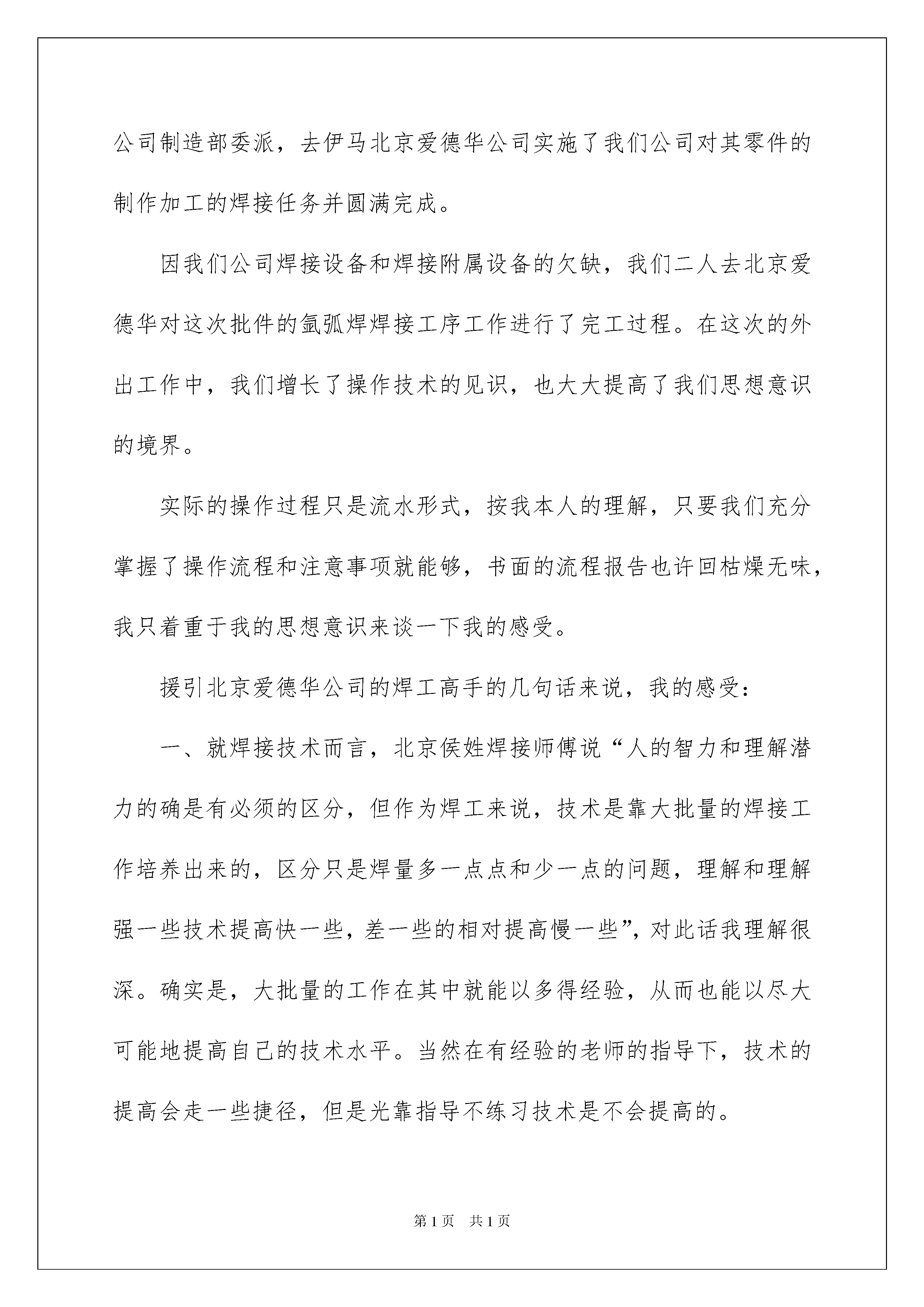 2022工作人员个人自我总结工作人员个人自我总结总结是事后对某一阶段的学习或工作情况作加以回顾检查并分析评价的书面材料,它能帮我们理顺知识结构,突出重点,突破难点,让我们一起来学习写总结吧。总结你想好怎么写了吗?下面是我精心整理的工作人员个人自我总结,欢迎大家分享。工作人员个人自我总结120xx,这是我工作初始的一年。在这一年里,我完成了一个由高校毕业生到企业员工主角的转变。回顾这段时间的成长,收获颇多,自己的心态不断调整、成熟,为人处事的潜力,各方面都在不断的成长变强。记得刚进公司的那会,不明白自己该干什么,师父交代的活儿干完了就不明白干啥了,脑子一片空白。每一天下线、压端子、分线,原先这就是工作。心里很不是滋味,校园学的知识一点都不能学以致用,很迷茫。随着时间的推移,我发现下线布线虽然看起来枯燥、平淡,把工作完成是极容易的事儿,但要做的快,做的好,且不出项点,却是件十分不容易的事。于是,我慢慢的调整好自己的心态去重新审视这个小群众,也渐渐的明白,其实各个岗位都有发展才能、增长见识的机会,只要我们满怀着一颗热忱的心,最平凡的岗位也能够做出最不平凡的业绩。我将这一年的工作收获总结如下:一、诚信敬业无规矩不成方圆。工作中,我严格遵守公司班组的各项规章制度,不迟到、早退,不懂就问,把自己本职工作内的事情做到最好。即使是最基础的工作,也不断地创新求进。二、学无止境职业生涯是学生生涯的一种延续。进入社会的这个大群众后,我仍发现自己在许多方面的知识缺乏。三人行则必有我师,原先社会这个大群众是如此的粉彩多呈,没有什么知识是学的完的。学如逆水行舟,不进则退。为了让自己的知识底蕴更上一个台阶,也为了职业生涯能有更好的发展,我激励自己自考学习,用更强的知识来武装自己。三、处事为人象牙塔中的生活,我们天真的活在一种自以为的骄傲中,以为自己已经无与伦比。工作后才真正明白,如果只是一个人,永久都成全不了最优秀的团队。谁都不可能建座孤岛,一个人要取得成功,务必与他人一道工作并得到别人的合作。这个过程,除了技术,便是处事为人的潜力,不是狡诈,是尊重聆听,真心换真心的过程。我们的群众和谐融洽,我们的工作氛围简单,大家都毫不吝啬的交流传授经验,我们的团队凝聚力强了,我们的工作效率便越来越好。今年,是我职业生涯的第一个丰收之年,无论是在行为、思维上都切身感受到了提升和进步,更加清楚的明白自己的优势与不足,也下定决心去学习职业生涯中必备的更多的潜力和技巧,我会在此基础上不断的调整学习。新的一年即将开始,相信,在未来的工作之路道路上有全新的收获和精彩!工作人员个人自我总结2我是公司员工xxx,与本公司员工xx一齐于20xx年x月25号受公司制造部委派,去伊马北京爱德华公司实施了我们公司对其零件的制作加工的焊接任务并圆满完成。因我们公司焊接设备和焊接附属设备的欠缺,我们二人去北京爱德华对这次批件的氩弧焊焊接工序工作进行了完工过程。在这次的外出工作中,我们增长了操作技术的见识,也大大提高了我们思想意识的境界。实际的操作过程只是流水形式,按我本人的理解,只要我们充分掌握了操作流程和注意事项就能够,书面的流程报告也许回枯燥无味,我只着重于我的思想意识来谈一下我的感受。援引北京爱德华公司的焊工高手的几句话来说,我的感受:一、就焊接技术而言,北京侯姓焊接师傅说“人的智力和理解潜力的确是有必须的区分,但作为焊工来说,技术是靠大批量的焊接工作培养出来的,区分只是焊量多一点点和少一点的问题,理解和理解强一些技术提高快一些,差一些的相对提高慢一些”,对此话我理解很深。确实是,大批量的工作在其中就能以多得经验,从而也能以尽大可能地提高自己的技术水平。当然在有经验的老师的指导下,技术的提高会走一些捷径,但是光靠指导不练习技术是不会提高的。二、“要有我们中国技术工人的尊严,不要让外国佬说我们中国的技术工人水平一般般”。我理解的是:我们公司超多的产品都是出口国外的,确实是我们的产品代表着中国,更代表着我们中国技术工人的水平和脸面,不论何时何地,我们都应尽最大的潜力把我们的工作水平发挥出来,让我们技术工人脸上有光。三、“只有更好,没有最好。在美国人眼中,我们的焊件只有能够的概念,而没有很好的概念,我也在不断地提高自己。”他的这句话给我的认识就是,我们要不断地学习和提高自己。是的,在机械行业,个性是手工机械如钳工和焊工,确实是只有更好,没有最好,我们更不能夜郎自大。四、“要充满自信,这时候你的工作会干的最好”。他谈到他的爱人问他“什么时候最自信?”他说“我左手拿着焊丝右手拿着焊钳这时最自信”。我充分理解他的话,在北京爱德华他是氩弧焊焊接的第