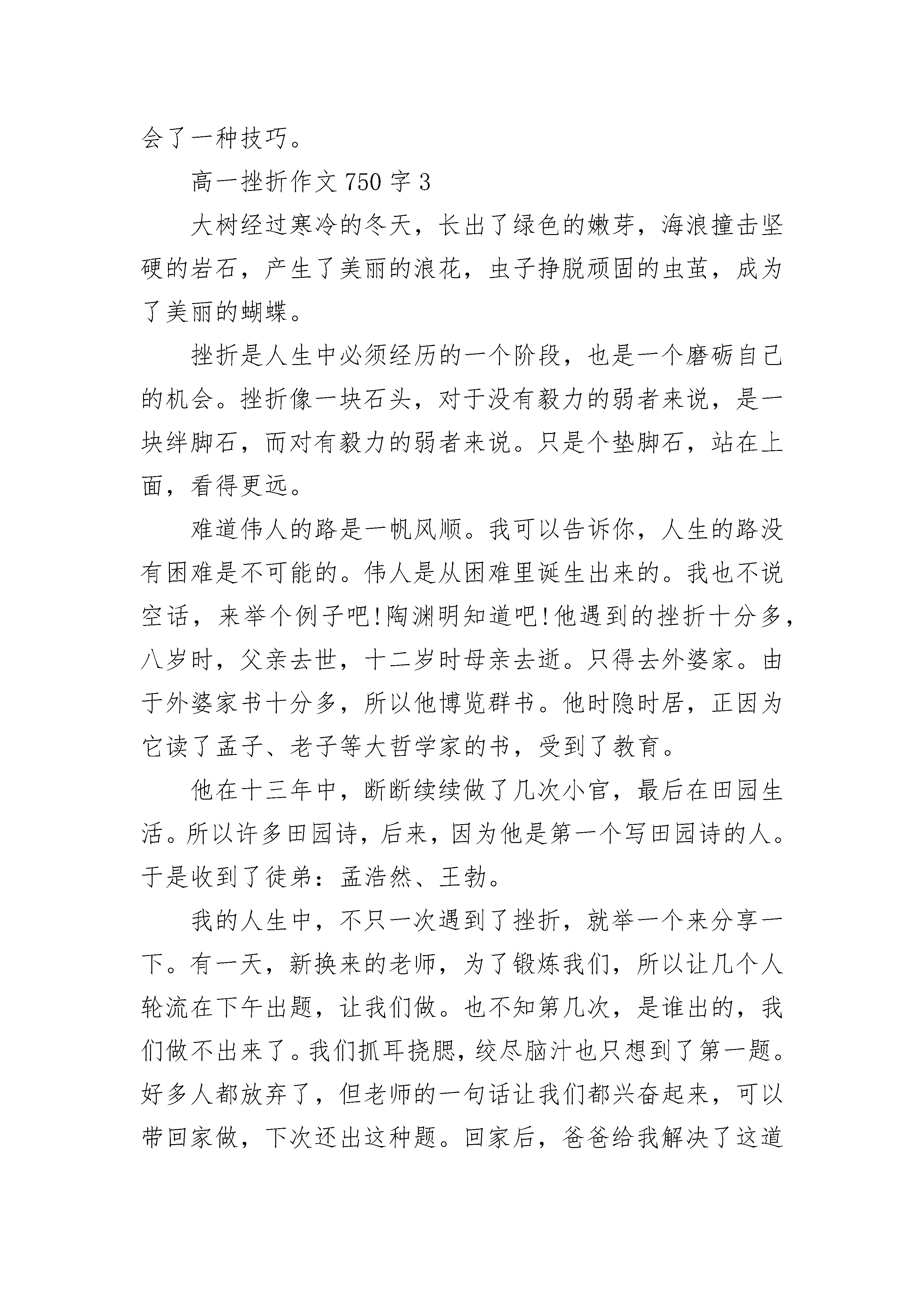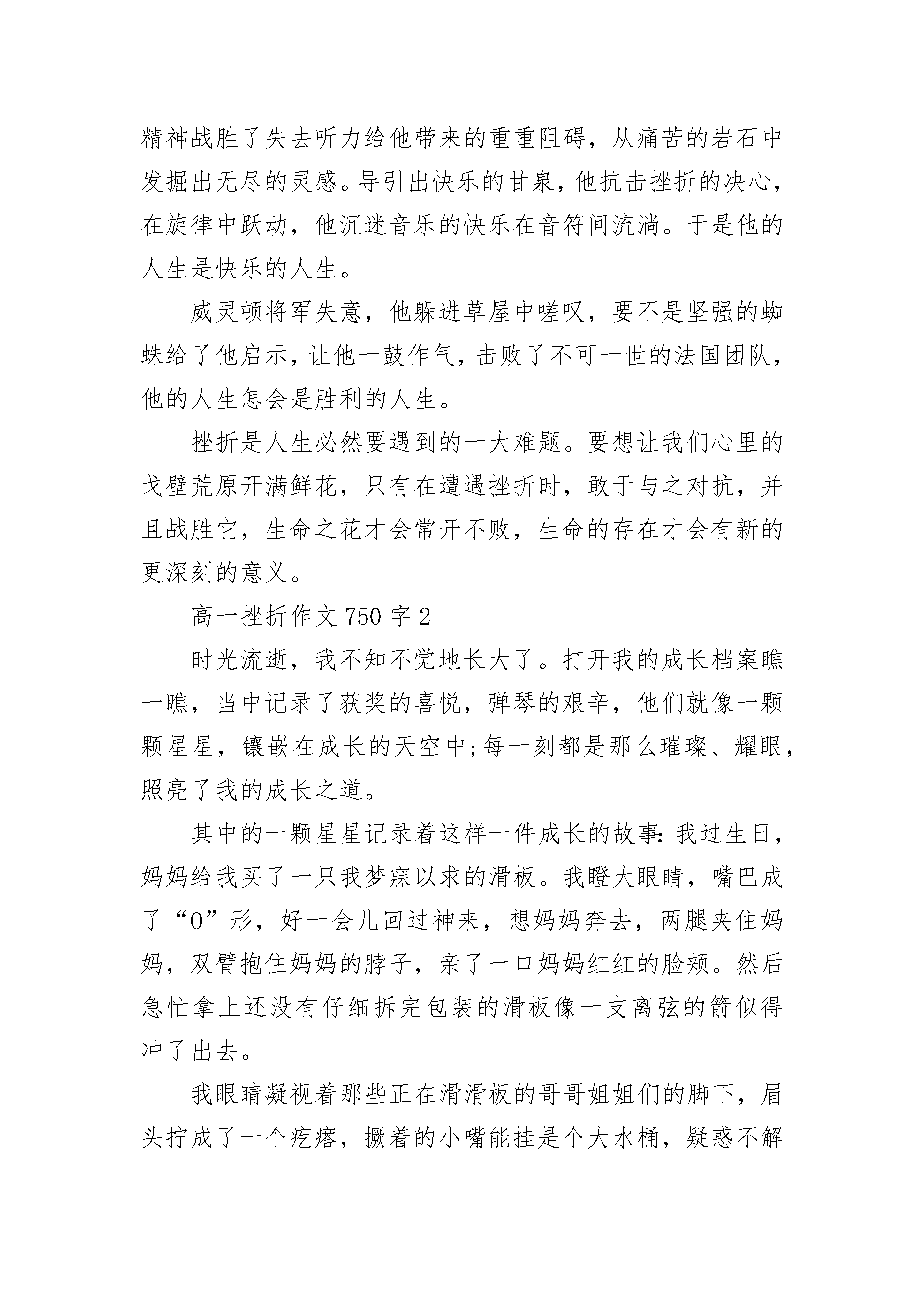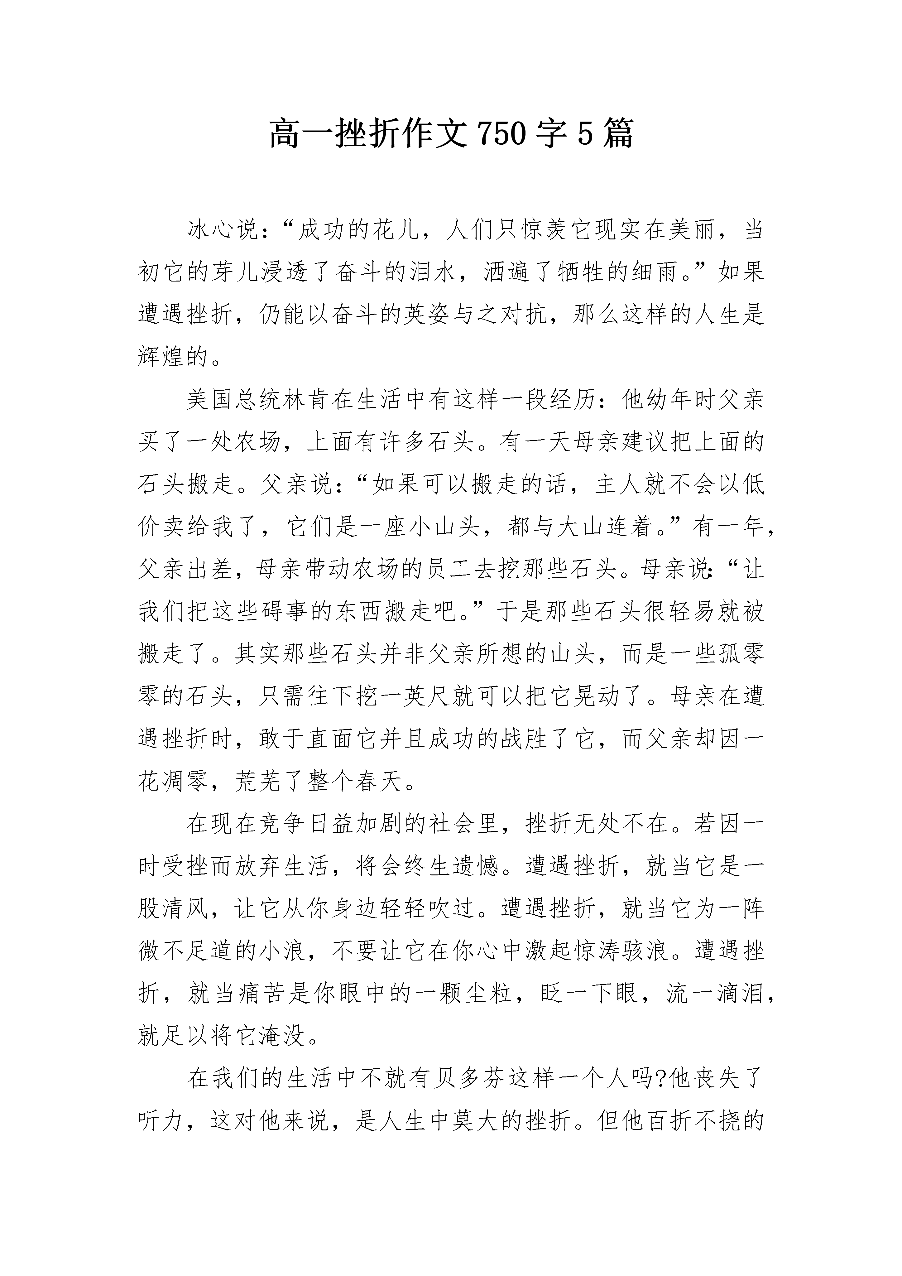 高一挫折作文750字5篇冰心说:“成功的花儿,人们只惊羡它现实在美丽,当初它的芽儿浸透了奋斗的泪水,洒遍了牺牲的细雨。”如果遭遇挫折,仍能以奋斗的英姿与之对抗,那么这样的人生是辉煌的。美国总统林肯在生活中有这样一段经历:他幼年时父亲买了一处农场,上面有许多石头。有一天母亲建议把上面的石头搬走。父亲说:“如果可以搬走的话,主人就不会以低价卖给我了,它们是一座小山头,都与大山连着。”有一年,父亲出差,母亲带动农场的员工去挖那些石头。母亲说:“让我们把这些碍事的东西搬走吧。”于是那些石头很轻易就被搬走了。其实那些石头并非父亲所想的山头,而是一些孤零零的石头,只需往下挖一英尺就可以把它晃动了。母亲在遭遇挫折时,敢于直面它并且成功的战胜了它,而父亲却因一花凋零,荒芜了整个春天。在现在竞争日益加剧的社会里,挫折无处不在。若因一时受挫而放弃生活,将会终生遗憾。遭遇挫折,就当它是一股清风,让它从你身边轻轻吹过。遭遇挫折,就当它为一阵微不足道的小浪,不要让它在你心中激起惊涛骇浪。遭遇挫折,就当痛苦是你眼中的一颗尘粒,眨一下眼,流一滴泪,就足以将它淹没。在我们的生活中不就有贝多芬这样一个人吗?他丧失了听力,这对他来说,是人生中莫大的挫折。但他百折不挠的精神战胜了失去听力给他带来的重重阻碍,从痛苦的岩石中发掘出无尽的灵感。导引出快乐的甘泉,他抗击挫折的决心,在旋律中跃动,他沉迷音乐的快乐在音符间流淌。于是他的人生是快乐的人生。威灵顿将军失意,他躲进草屋中嗟叹,要不是坚强的蜘蛛给了他启示,让他一鼓作气,击败了不可一世的法国团队,他的人生怎会是胜利的人生。挫折是人生必然要遇到的一大难题。要想让我们心里的戈壁荒原开满鲜花,只有在遭遇挫折时,敢于与之对抗,并且战胜它,生命之花才会常开不败,生命的存在才会有新的更深刻的意义。高一挫折作文750字2时光流逝,我不知不觉地长大了。打开我的成长档案瞧一瞧,当中记录了获奖的喜悦,弹琴的艰辛,他们就像一颗颗星星,镶嵌在成长的天空中;每一刻都是那么璀璨、耀眼,照亮了我的成长之道。其中的一颗星星记录着这样一件成长的故事:我过生日,妈妈给我买了一只我梦寐以求的滑板。我瞪大眼睛,嘴巴成了“O”形,好一会儿回过神来,想妈妈奔去,两腿夹住妈妈,双臂抱住妈妈的脖子,亲了一口妈妈红红的脸颊。然后急忙拿上还没有仔细拆完包装的滑板像一支离弦的箭似得冲了出去。我眼睛凝视着那些正在滑滑板的哥哥姐姐们的脚下,眉头拧成了一个疙瘩,撅着的小嘴能挂是个大水桶,疑惑不解地挠着后脑勺。他们的滑板两边前后摆动,脚好像钉在了滑板上面,总是那么稳,腿脚灵活自如,手臂和肩膀也跟着腿脚前后摆动。我也扶着栏杆,上了花瓣,学着他们的样子,腿脚僵硬地前后挪动,上身和下身总是格格不入,腿一直微微颤抖,每头上的疙瘩月拧越紧,身子那么不协调,像一只笨重的狗熊。心想:加油,我一定能行。没滑到三米就摔了下来。我再次坚定地上了滑板,这次腿脚不再那样僵硬了,放松了许多,腿不在颤抖了,眉头上的疙瘩也解开了一点,上半身也有了感觉,身体协调了很多,喃喃自语到:“继续努力,坚持住啊!但好景不长,还是重蹈覆辙,滑了没四米又跌了下来。我灰心丧气地低下头,叹了口长气,生气的噘起小嘴,把滑板重重地,但又很心疼地摔倒地上。心想:哎,怎么回事,老是达不到目标。不过坚持一定能实力,再试一试。我振作起来,仰起头,用力握紧坚实的小拳头,重返战场。这回,我上了滑板后,腿脚更灵活了,前后摆动着,上身也与下身协调了,肩膀和手臂前后摆动,脚也稳稳得,像钉在了滑板上,脖子使劲往上拉,身轻如燕,飞似的滑了五米,我下了滑板,不过,这次是我自己跳下来。我心满意足地拿着滑板,摆着小手,哼着小曲回家了。心里像打翻了蜜罐一样美滋滋的。在这次学滑板的过程中我长大了,因为我明白了只要不灰心,一直坚持不懈就一定会胜利,并且我也懂得了遇到挫折时,伊东遥勇敢面对不畏惧,不退缩。最重要的是我有学会了一种技巧。高一挫折作文750字3大树经过寒冷的冬天,长出了绿色的嫩芽,海浪撞击坚硬的岩石,产生了美丽的浪花,虫子挣脱顽固的虫茧,成为了美丽的蝴蝶。挫折是人生中必须经历的一个阶段,也是一个磨砺自己的机会。挫折像一块石头,对于没有毅力的弱者来说,是一块绊脚石,而对有毅力的弱者来说。只是个垫脚石,站在上面,看得更远。难道伟人的路是一帆风顺。我可以告诉你,人生的路没有困难是不可能的。伟人是从困难里诞生出来的。我也不说空话,来举个例子吧!陶渊明知道吧!他遇到的挫折十分多,八岁时,父亲去世,十二岁时母亲去逝。只得去外婆家。由于外婆家书十分多,所以他博览群书。他时隐时居,正因为它读了孟子、老子等大哲学家的书,受到了教育。他在十三年中,断断续续做了几次小官,最后在田园生活。所以许多田园诗,后来,因为他是第一个写田园诗的人。于是收到了徒弟:孟浩然、王勃。我的人生
