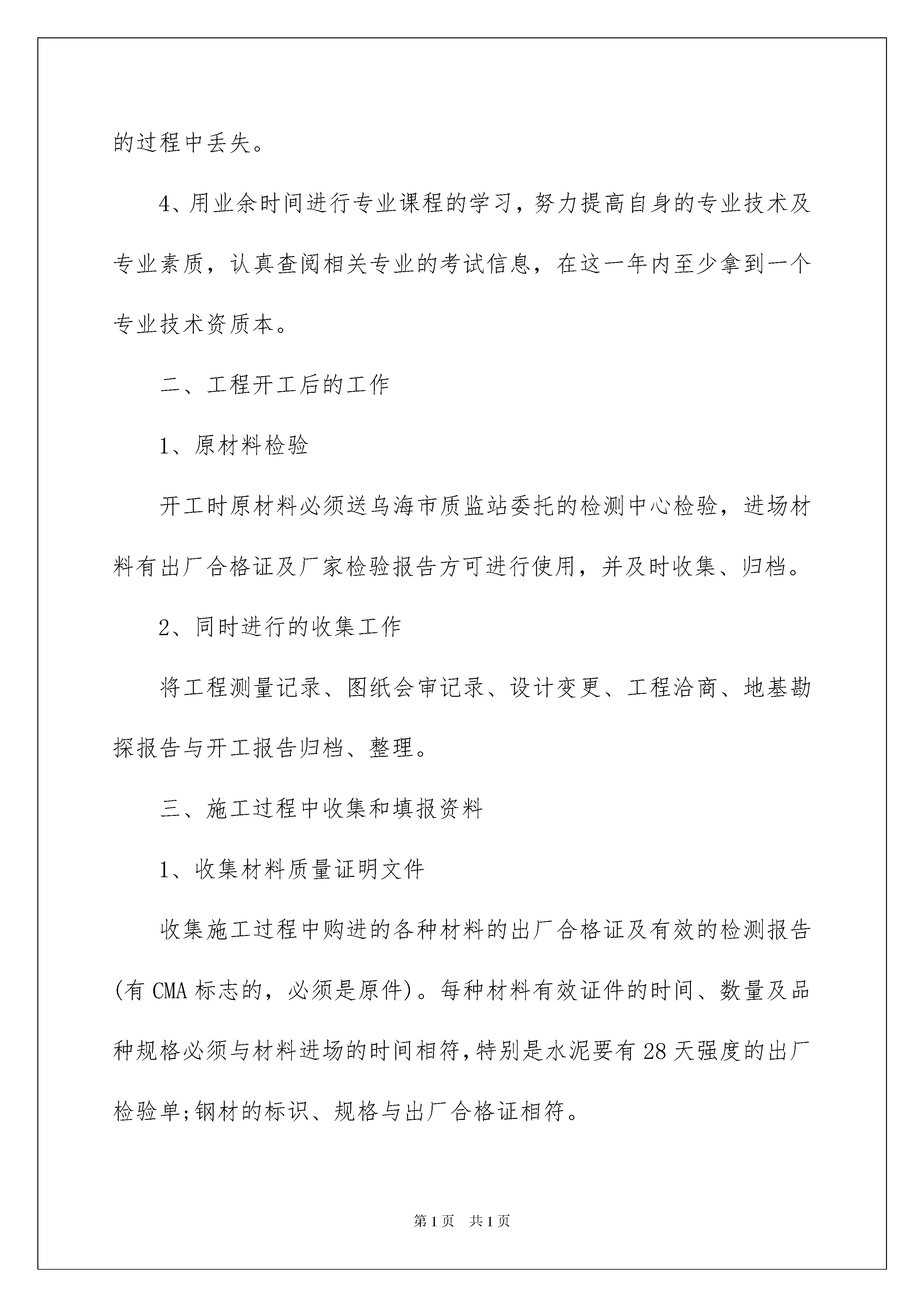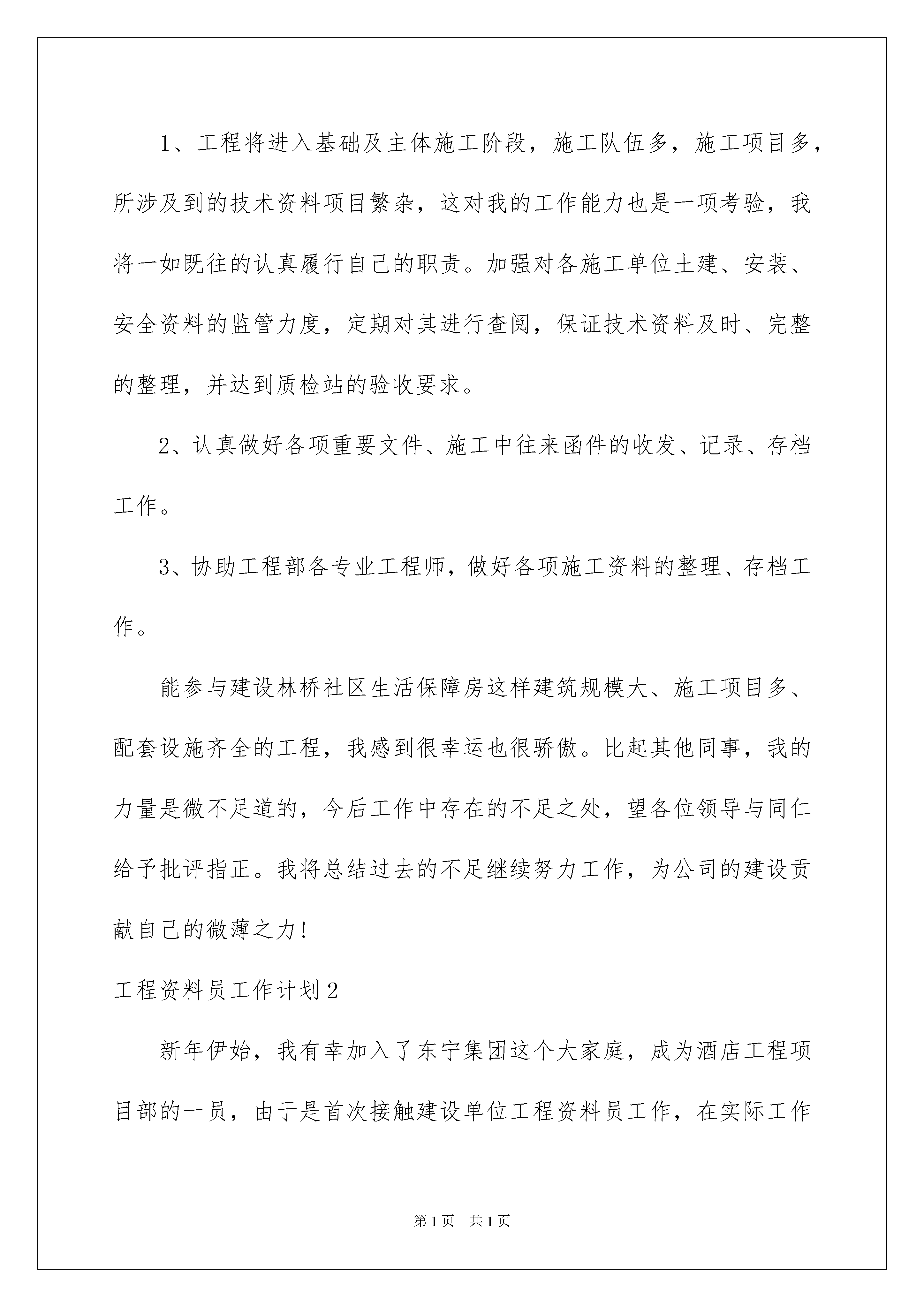 2022工程资料员工作计划工程资料员工作计划时间真是转瞬即逝,相信大家对即将到来的工作生活满心期待吧!此时此刻需要为接下来的工作做一个详细的计划了。工作计划怎么写才不会流于形式呢?以下是我为大家整理的工程资料员工作计划,希望能够帮助到大家。工程资料员工作计划1自进入公司以来,我一直负责林桥社区生活保障房工程项目的资料整理、收集、管理工作,工程资料真实反映工程项目的施工结果,本着“各项工作资料先行”的原则,严格按照国家标准规范及各类规定,主动会同相关部门及责任人随施工进度及时整理完善各项资料。我的主要工作及总结如下:1、配合各专业工程师对施工单位的工程资料做好严格把关,资料就是在工程建设过程中形成的各种形式的信息记录,只有和专业工程师、施工单位资料员、监理单位全力配合才能完成并做好这项工作。资料的整理、收集是一个逐渐积累的过程,要确保资料的真实与完整,为工程验收提供及时、有效、适用的资料。2、对前期的地质勘察、施工图设计形成的文件,进行积累、组卷、归档。3、负责施工现场会议的记录工作,做到真实、有效的记录,整理出会议纪要,经各参加单位会签后下发。4、负责工程部与各参建单位往来文件、联系函件、施工图纸的收发,做好记录,建册存档。5、负责工程重要施工部位的影像资料拍摄,进行整理、归档。以便日后查阅及工程结算之用。以上是我在工程部近半年的主要工作,其中也有些不足之处:对于施工单位工程资料报验的监督有一定的松懈,开工初期施工单位不重视工程资料的编制,往往某一分项工程已施工完毕才将工程资料上报,存在拖延、滞后等现象。工程资料应随施工进度同步收集、整理并按规定移交。在今后的工作中,我将严格要求施工单位做好工程资料的编制与报验工作,保证工程资料的真实、有效、完整,为工程的顺利验收奠定基础。工作计划:1、工程将进入基础及主体施工阶段,施工队伍多,施工项目多,所涉及到的技术资料项目繁杂,这对我的工作能力也是一项考验,我将一如既往的认真履行自己的职责。加强对各施工单位土建、安装、安全资料的监管力度,定期对其进行查阅,保证技术资料及时、完整的整理,并达到质检站的验收要求。2、认真做好各项重要文件、施工中往来函件的收发、记录、存档工作。3、协助工程部各专业工程师,做好各项施工资料的整理、存档工作。能参与建设林桥社区生活保障房这样建筑规模大、施工项目多、配套设施齐全的工程,我感到很幸运也很骄傲。比起其他同事,我的力量是微不足道的,今后工作中存在的不足之处,望各位领导与同仁给予批评指正。我将总结过去的不足继续努力工作,为公司的建设贡献自己的微薄之力!工程资料员工作计划2新年伊始,我有幸加入了东宁集团这个大家庭,成为酒店工程项目部的一员,由于是首次接触建设单位工程资料员工作,在实际工作中处于边工作边学习的状况,但我一定会凭着我的责任心以及对工作的热忱,尽心尽力做好这项工作。本年度我的主要工作计划:一、做好工程开工前的准备工作1、熟悉设计施工图、设计说明,填写和准备工程开工必备的资料,资料必须相关单位签字、盖章、审核。收集工程开工的前期资料,包括:施工组织设计、施工方案、安全组织设计、安全方案、监理规划及细则。2、分类存放各种资料为便于日后资料的整理,在平日的资料收集过程中所有的.资料按施工阶段、分类别设立专门的档案盒,每个盒子都贴上明确的案卷脊背,方便查找。对于用于施工中的各种表格分编号、单位放好,便于使用时拿取。3、积极配合各部门或个人对资料的借、查工作,做到对资料情况心知肚明,在档案内里有他们所要资料的情况下,在第一时间内为他们拿到,如果没有所要查找的资料,也给予他们明确的答复,没有。对资料的借阅、领取做好详细的登记台帐,防止档案室的资料在借阅的过程中丢失。4、用业余时间进行专业课程的学习,努力提高自身的专业技术及专业素质,认真查阅相关专业的考试信息,在这一年内至少拿到一个专业技术资质本。二、工程开工后的工作1、原材料检验开工时原材料必须送乌海市质监站委托的检测中心检验,进场材料有出厂合格证及厂家检验报告方可进行使用,并及时收集、归档。2、同时进行的收集工作将工程测量记录、图纸会审记录、设计变更、工程洽商、地基勘探报告与开工报告归档、整理。三、施工过程中收集和填报资料1、收集材料质量证明文件收集施工过程中购进的各种材料的出厂合格证及有效的检测报告(有CMA标志的,必须是原件)。每种材料有效证件的时间、数量及品种规格必须与材料进场的时间相符,特别是水泥要有28天强度的出厂检验单;钢材的标识、规格与出厂合格证相符。2、填报资料按照规范规定对施工过程中的相关资料进行填写、报送。四、认真落实岗位责任制1、对