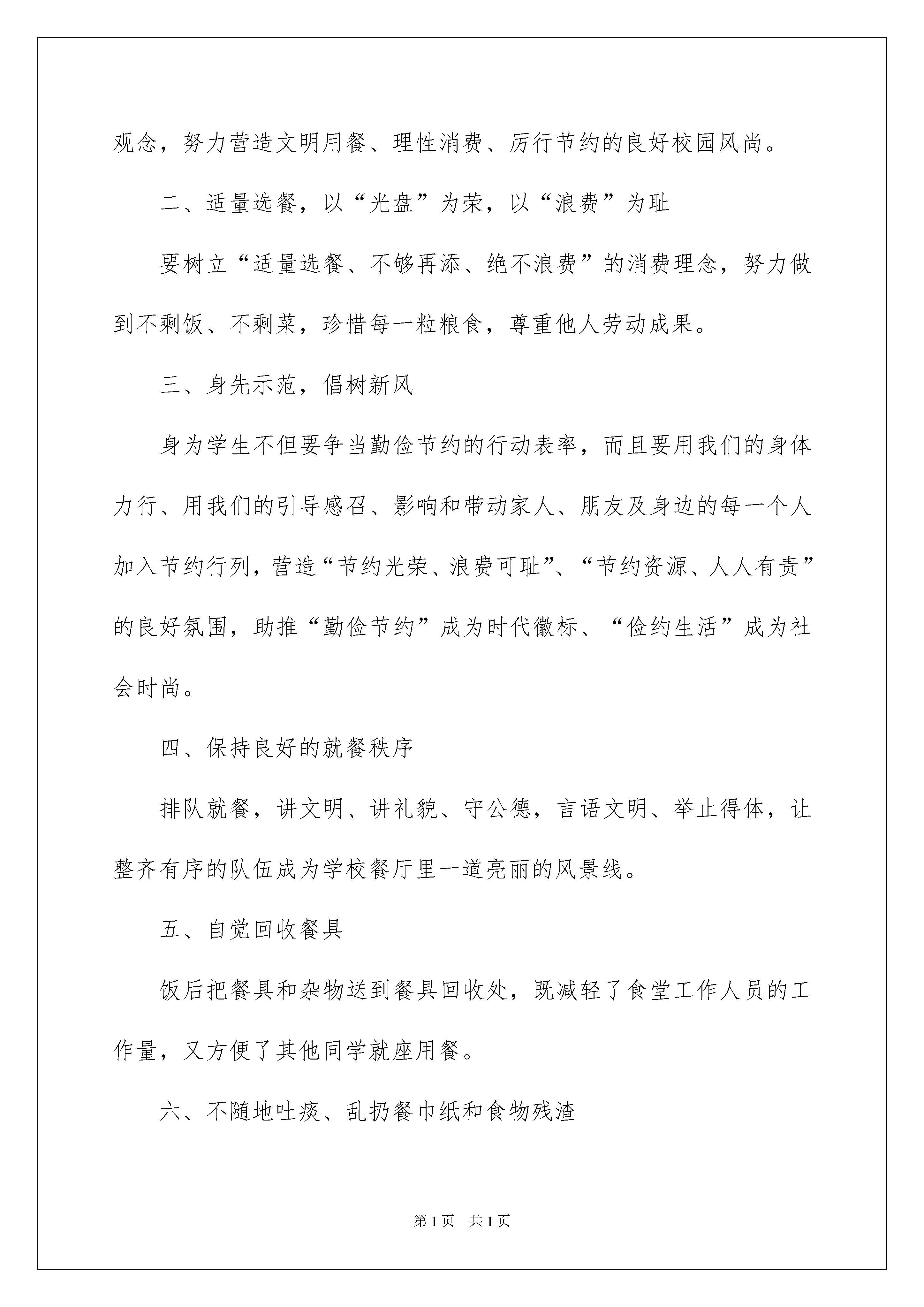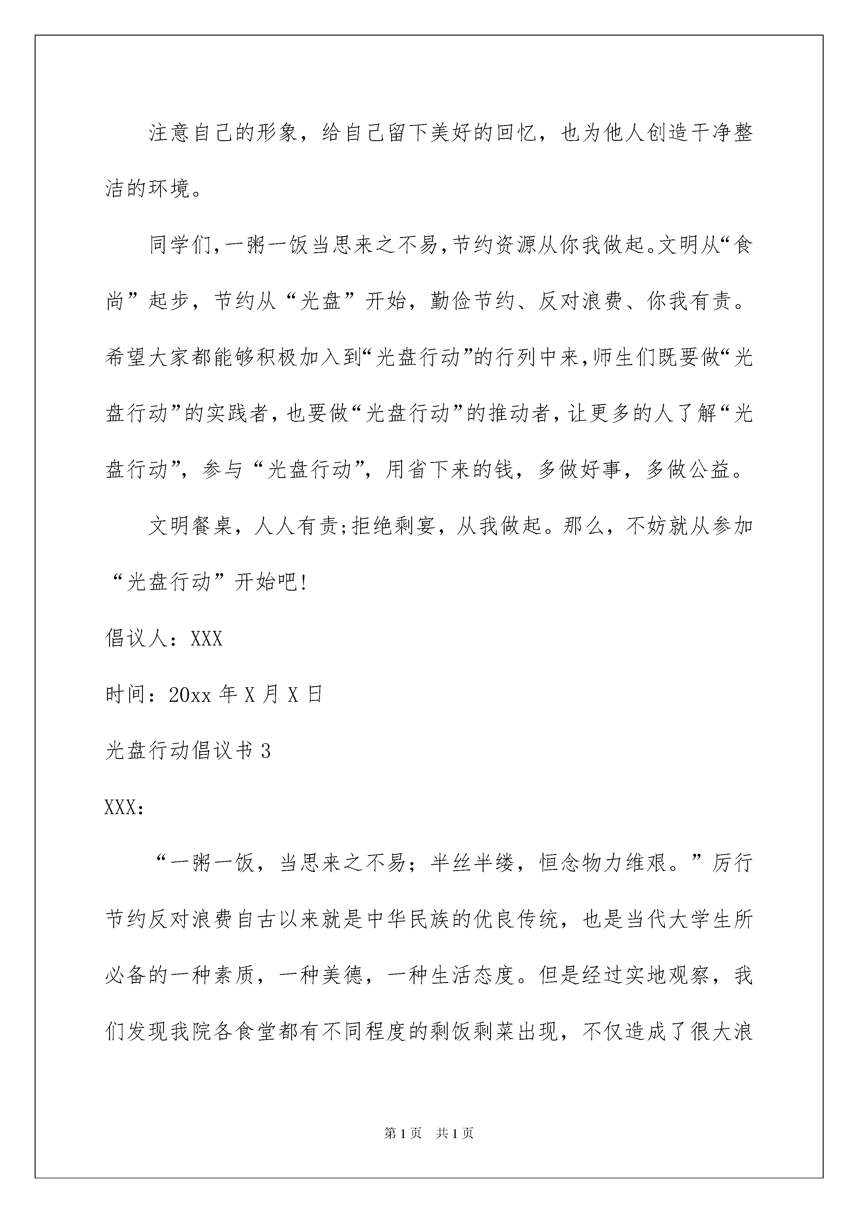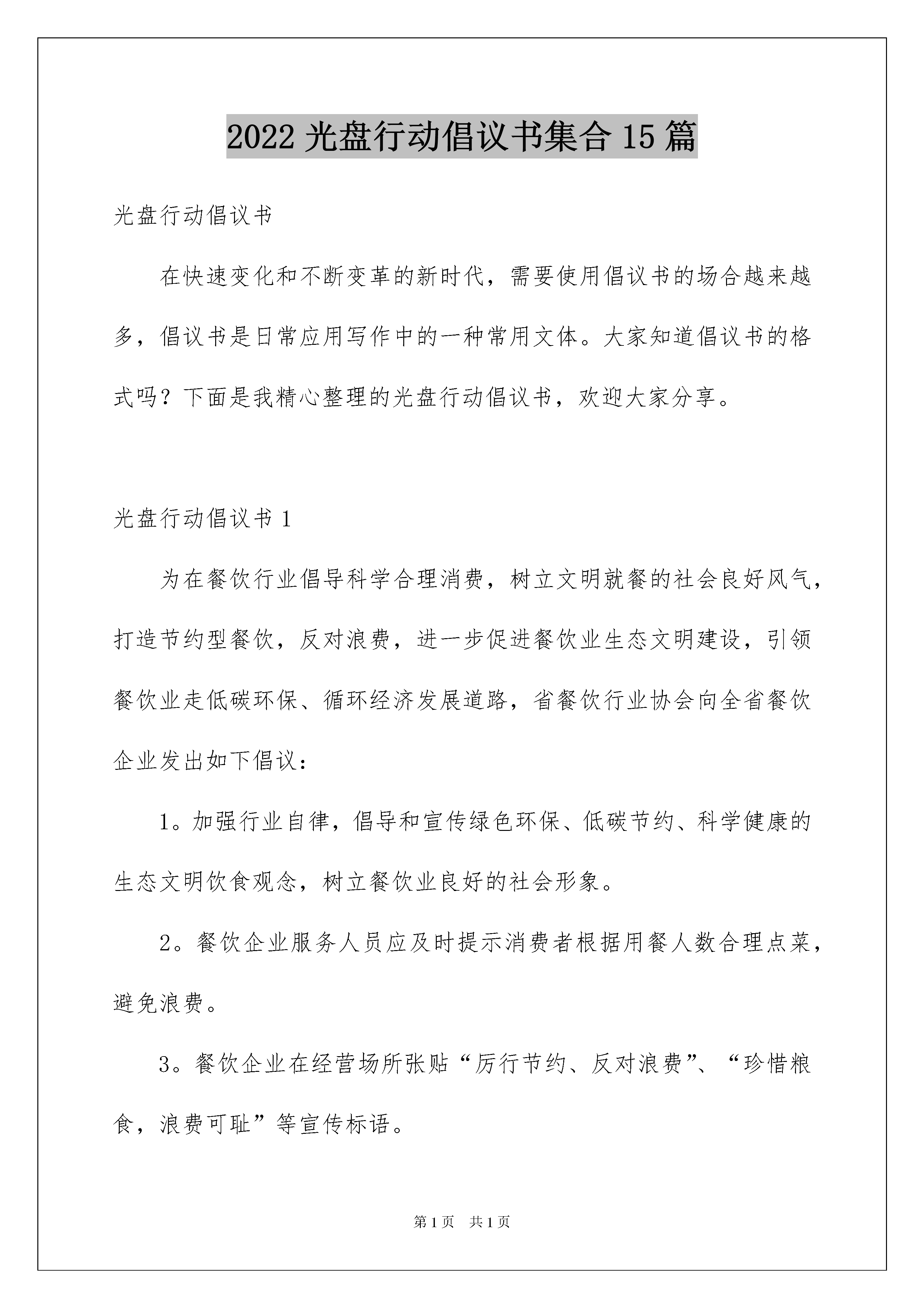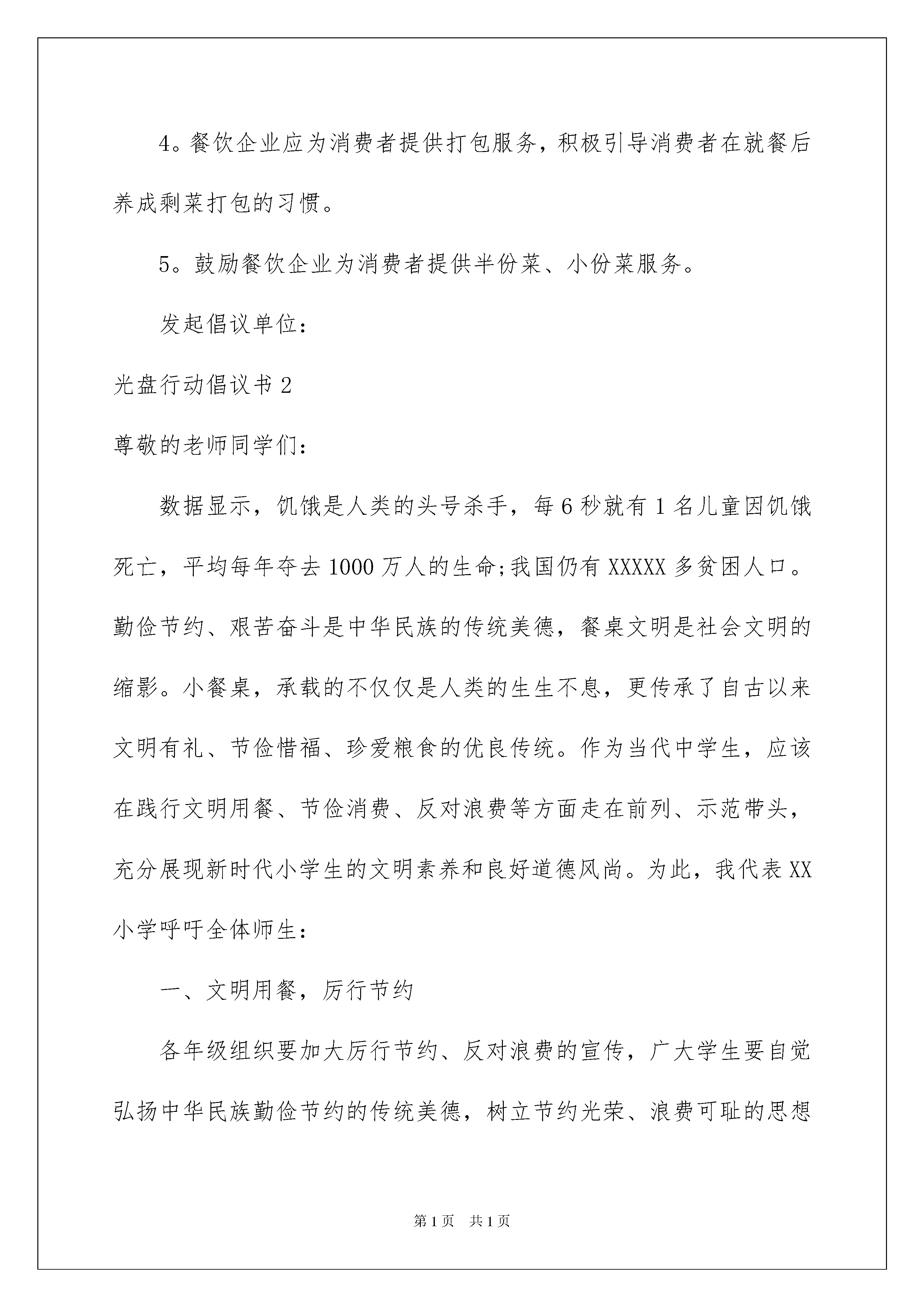 2022光盘行动倡议书集合15篇光盘行动倡议书在快速变化和不断变革的新时代,需要使用倡议书的场合越来越多,倡议书是日常应用写作中的一种常用文体。大家知道倡议书的格式吗?下面是我精心整理的光盘行动倡议书,欢迎大家分享。光盘行动倡议书1为在餐饮行业倡导科学合理消费,树立文明就餐的社会良好风气,打造节约型餐饮,反对浪费,进一步促进餐饮业生态文明建设,引领餐饮业走低碳环保、循环经济发展道路,省餐饮行业协会向全省餐饮企业发出如下倡议:1。加强行业自律,倡导和宣传绿色环保、低碳节约、科学健康的生态文明饮食观念,树立餐饮业良好的社会形象。2。餐饮企业服务人员应及时提示消费者根据用餐人数合理点菜,避免浪费。3。餐饮企业在经营场所张贴“厉行节约、反对浪费”、“珍惜粮食,浪费可耻”等宣传标语。4。餐饮企业应为消费者提供打包服务,积极引导消费者在就餐后养成剩菜打包的习惯。5。鼓励餐饮企业为消费者提供半份菜、小份菜服务。发起倡议单位:光盘行动倡议书2尊敬的老师同学们:数据显示,饥饿是人类的头号杀手,每6秒就有1名儿童因饥饿死亡,平均每年夺去1000万人的生命;我国仍有XXXXX多贫困人口。勤俭节约、艰苦奋斗是中华民族的传统美德,餐桌文明是社会文明的缩影。小餐桌,承载的不仅仅是人类的生生不息,更传承了自古以来文明有礼、节俭惜福、珍爱粮食的优良传统。作为当代中学生,应该在践行文明用餐、节俭消费、反对浪费等方面走在前列、示范带头,充分展现新时代小学生的文明素养和良好道德风尚。为此,我代表XX小学呼吁全体师生:一、文明用餐,厉行节约各年级组织要加大厉行节约、反对浪费的宣传,广大学生要自觉弘扬中华民族勤俭节约的传统美德,树立节约光荣、浪费可耻的思想观念,努力营造文明用餐、理性消费、厉行节约的良好校园风尚。二、适量选餐,以“光盘”为荣,以“浪费”为耻要树立“适量选餐、不够再添、绝不浪费”的消费理念,努力做到不剩饭、不剩菜,珍惜每一粒粮食,尊重他人劳动成果。三、身先示范,倡树新风身为学生不但要争当勤俭节约的行动表率,而且要用我们的身体力行、用我们的引导感召、影响和带动家人、朋友及身边的每一个人加入节约行列,营造“节约光荣、浪费可耻”、“节约资源、人人有责”的良好氛围,助推“勤俭节约”成为时代徽标、“俭约生活”成为社会时尚。四、保持良好的就餐秩序排队就餐,讲文明、讲礼貌、守公德,言语文明、举止得体,让整齐有序的队伍成为学校餐厅里一道亮丽的风景线。五、自觉回收餐具饭后把餐具和杂物送到餐具回收处,既减轻了食堂工作人员的工作量,又方便了其他同学就座用餐。六、不随地吐痰、乱扔餐巾纸和食物残渣注意自己的形象,给自己留下美好的回忆,也为他人创造干净整洁的环境。同学们,一粥一饭当思来之不易,节约资源从你我做起。文明从“食尚”起步,节约从“光盘”开始,勤俭节约、反对浪费、你我有责。希望大家都能够积极加入到“光盘行动”的行列中来,师生们既要做“光盘行动”的实践者,也要做“光盘行动”的推动者,让更多的人了解“光盘行动”,参与“光盘行动”,用省下来的钱,多做好事,多做公益。文明餐桌,人人有责;拒绝剩宴,从我做起。那么,不妨就从参加“光盘行动”开始吧!倡议人:XXX时间:20xx年X月X日光盘行动倡议书3XXX:“一粥一饭,当思来之不易;半丝半缕,恒念物力维艰。”厉行节约反对浪费自古以来就是中华民族的优良传统,也是当代大学生所必备的一种素质,一种美德,一种生活态度。但是经过实地观察,我们发现我院各食堂都有不同程度的剩饭剩菜出现,不仅造成了很大浪费,也影响了学院形象。鉴于此,为进一步弘扬中华民族勤俭节约的美德,学院向全校师生发出倡议:1、注意文明就餐,倡导健康饮食。用餐时注意自觉排队、主动礼让;爱护餐厅设施,保持环境卫生,主动回收餐具;饮食注重营养分配,合理选择。2、按需选餐,按量购买。树立“浪费可耻、节约光荣”的理念,珍惜粮食,不剩菜,不剩饭,做“光盘一族”,努力厉行节俭,坚决杜绝浪费。3、坚持身先示范,积极倡导新风。在自身厉行节约的同时,也倡导大家做勤俭节约的实践者、宣传者、监督者,在全校范围内营造勤俭节约的良好氛围。希望全院师生员工积极支持和响应“光盘行动”,从现在做起,从身边做起,从一日三餐做起,珍惜资源,理性消费,做一个光荣的“光盘一族”,共同为建设文明、和谐、环保的社会环境做出自己的贡献!倡议人:XXX时间:XXXX年XX月XX日光盘行动倡议书4亲爱的同学们:古人云“一粥一饭,当思来之不易,半丝半缕,恒念物力维艰”一粒米,一粒饭都是农民伯伯用汗水浇灌出来的。当前,我国每年浪费粮食总量折合粮食约500亿公斤,接近全国粮食总量的