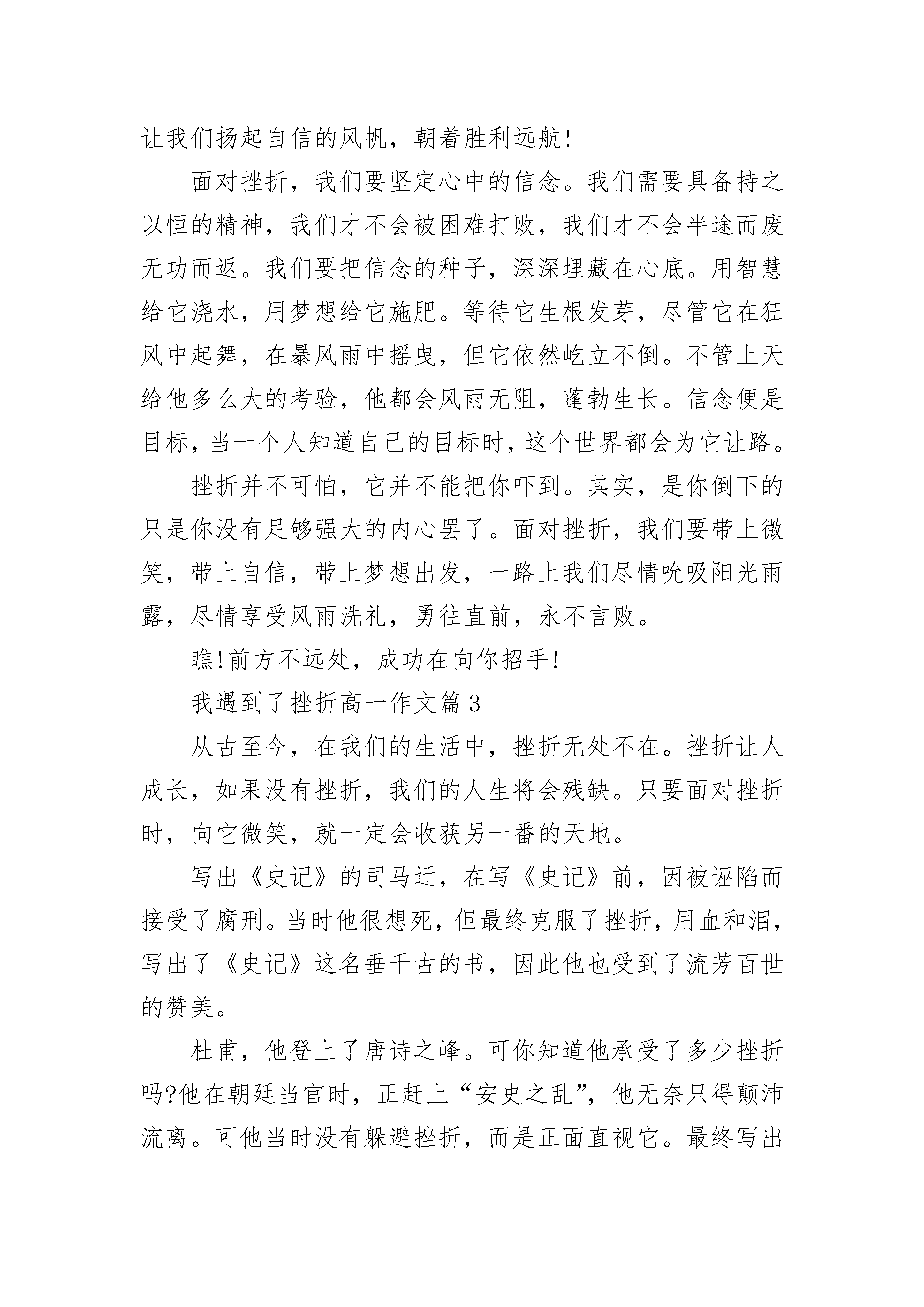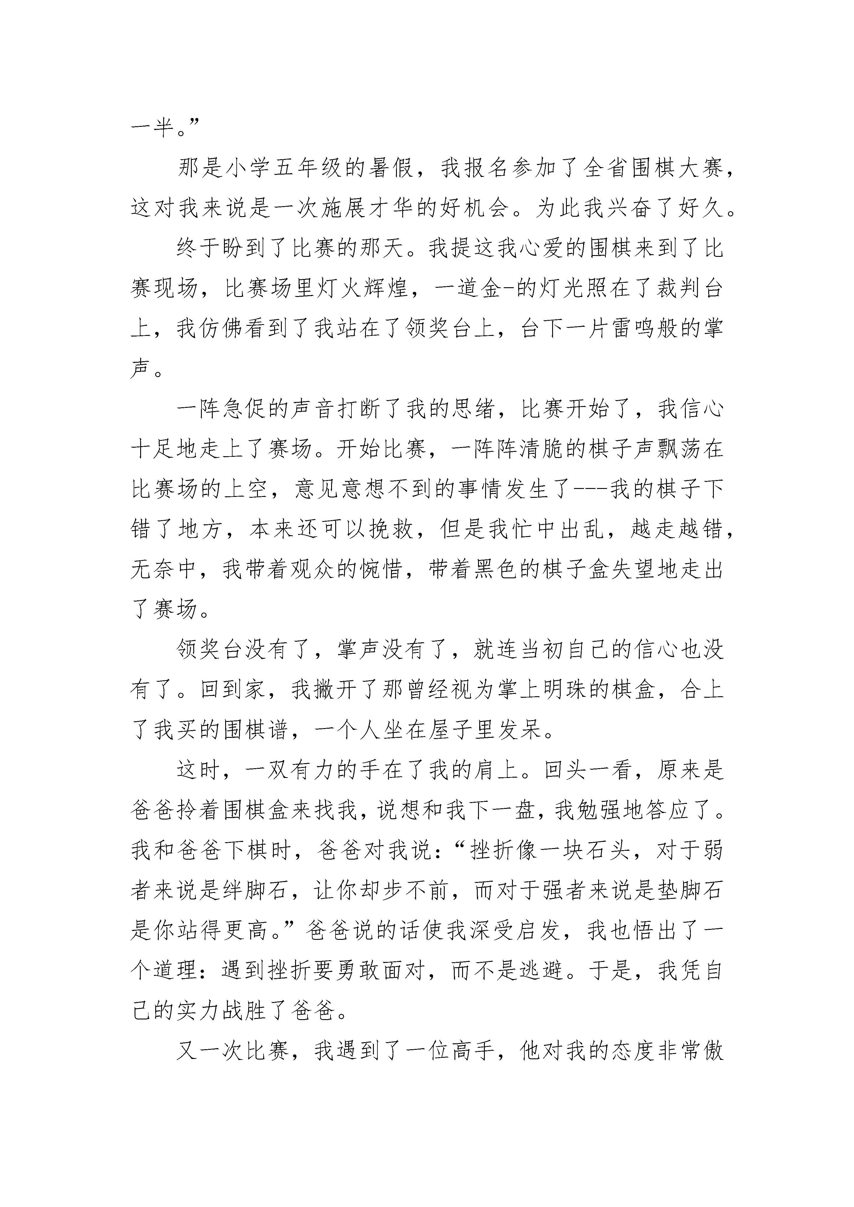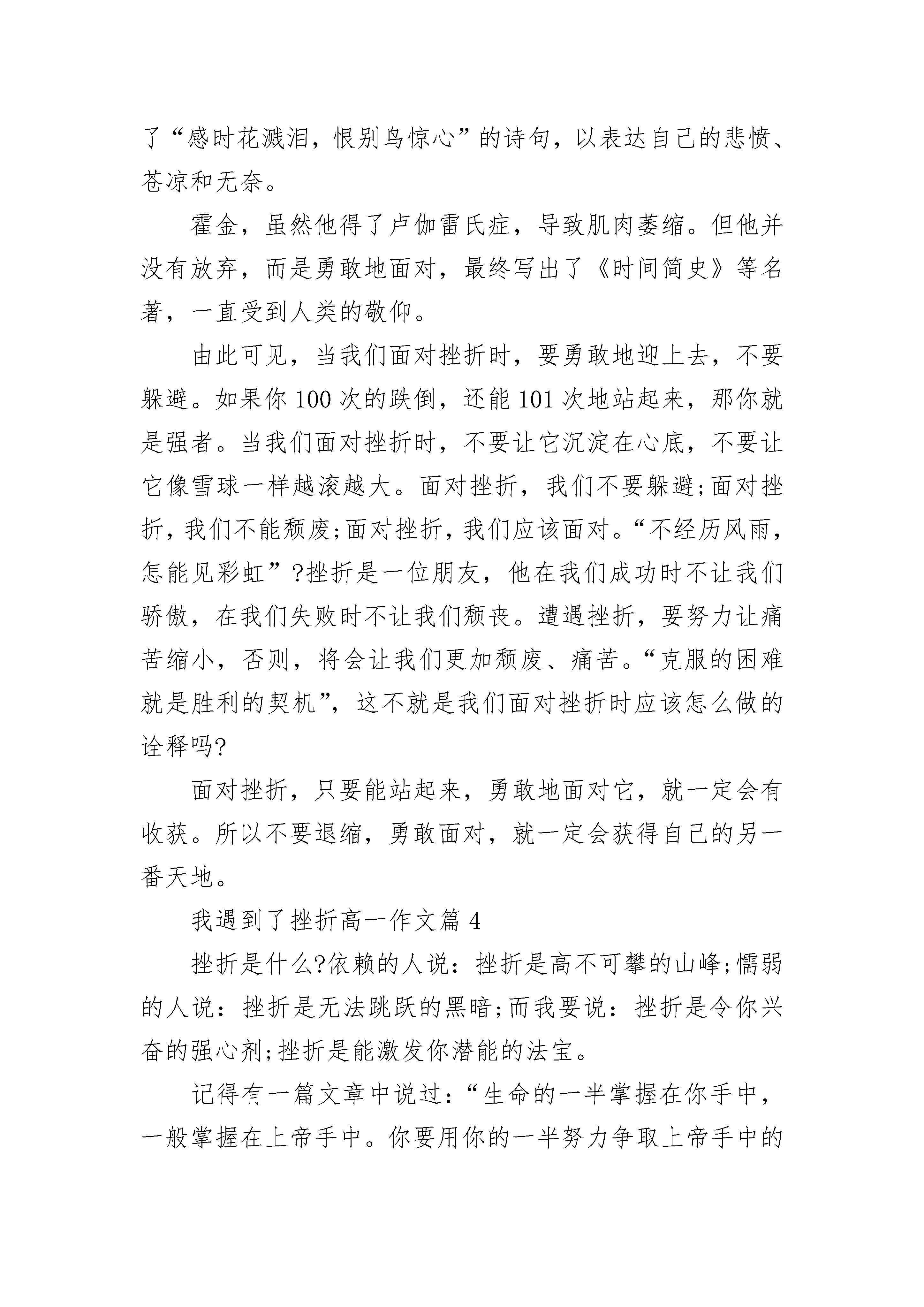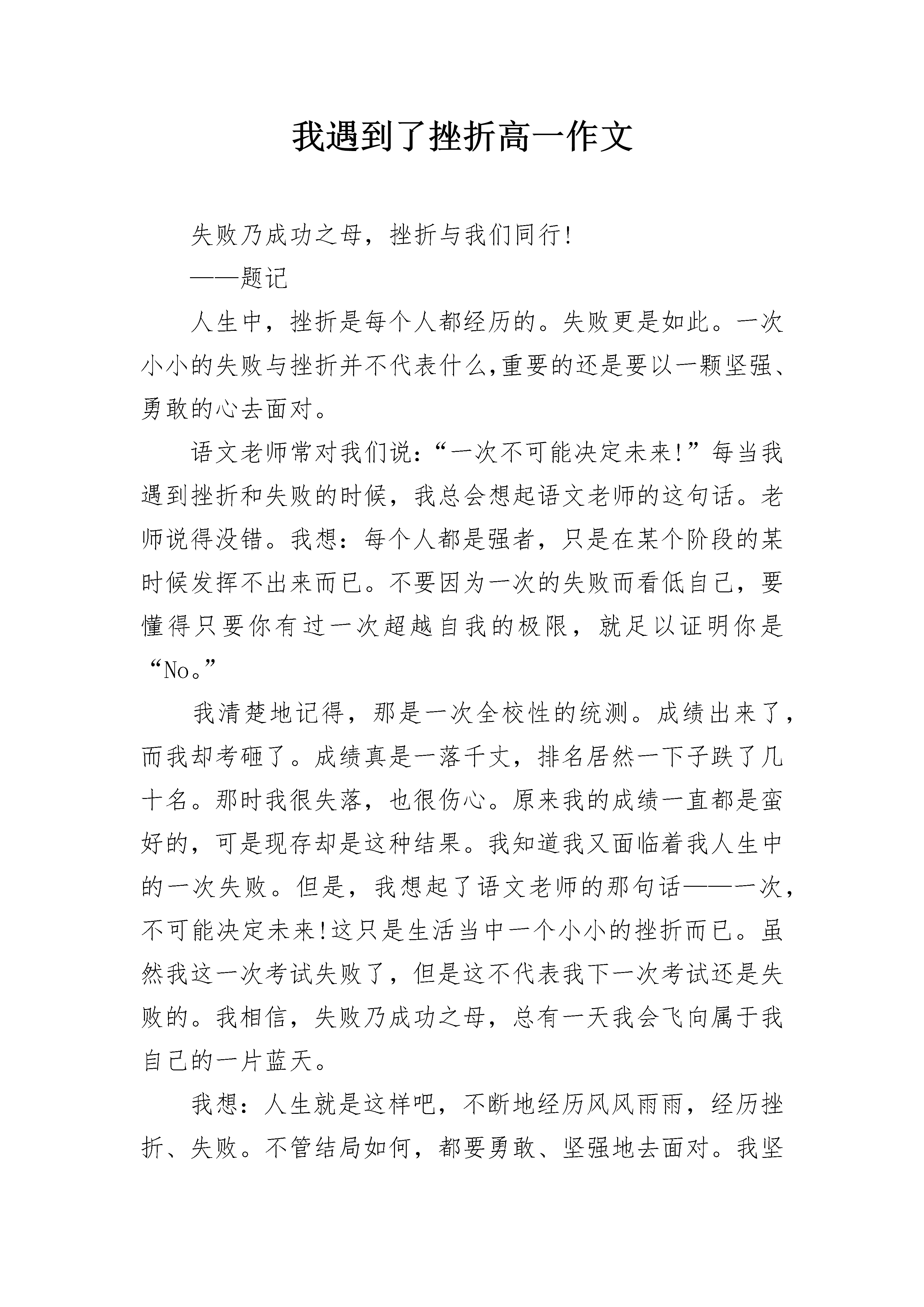 我遇到了挫折高一作文失败乃成功之母,挫折与我们同行!——题记人生中,挫折是每个人都经历的。失败更是如此。一次小小的失败与挫折并不代表什么,重要的还是要以一颗坚强、勇敢的心去面对。语文老师常对我们说:“一次不可能决定未来!”每当我遇到挫折和失败的时候,我总会想起语文老师的这句话。老师说得没错。我想:每个人都是强者,只是在某个阶段的某时候发挥不出来而已。不要因为一次的失败而看低自己,要懂得只要你有过一次超越自我的极限,就足以证明你是“No。”我清楚地记得,那是一次全校性的统测。成绩出来了,而我却考砸了。成绩真是一落千丈,排名居然一下子跌了几十名。那时我很失落,也很伤心。原来我的成绩一直都是蛮好的,可是现存却是这种结果。我知道我又面临着我人生中的一次失败。但是,我想起了语文老师的那句话——一次,不可能决定未来!这只是生活当中一个小小的挫折而已。虽然我这一次考试失败了,但是这不代表我下一次考试还是失败的。我相信,失败乃成功之母,总有一天我会飞向属于我自己的一片蓝天。我想:人生就是这样吧,不断地经历风风雨雨,经历挫折、失败。不管结局如何,都要勇敢、坚强地去面对。我坚信,风雨过后会是彩虹,因为挫折是每个人都必须经历的。或许,它就是考验我们坚强意志的证据吧,这样才能体现出我们人生的价值观!所以,我们应该为自己加油!相信自己,一定能够战胜挫折,超越自我,这样的人生才有意义!我遇到了挫折高一作文篇2我们犹如大海上一艘漂泊的小船,不知某一刻天空便会乌云密布。不知某一刻我们就会接受暴风雨的洗礼。所以我们要做好面对挫折的准备,我们才会勇往直前,抵达成功的彼岸。面对挫折,首先我们要学会微笑。因为但你微笑对待挫折时,它也会以微笑来回应。我们只有学会微笑,我们才能乐观的去面对挫折与困难。微笑以它特有的力量,去融化你面前的重重冰山。它带给人们光明与温暖。让你相信,希望就在不远处,就在那转角等你。只有学会微笑,我们才有继续走下去的勇气,我们才能勇敢的去面对天空大喊:“让暴风雨来的更猛烈些吧!”面对挫折,我们要有自信。泰戈尔曾说过,天空虽然没有我的痕迹,但我已经飞过。自信是成功的第一步,是成功路上第一块基石,人生好比一座险峻的山峰,自信的攀上峰顶,才能将无限风光尽收眼底。自信是茫茫草原上独行的睿智和勇气,有了自信,人才会冷静地面对挫折与困难,有了自信,人才会有足够的勇气去面对挫折与障碍,克服胆怯,让我们走得更加坚定。“自信人生二百年,会当水击三千里。”让我们扬起自信的风帆,朝着胜利远航!面对挫折,我们要坚定心中的信念。我们需要具备持之以恒的精神,我们才不会被困难打败,我们才不会半途而废无功而返。我们要把信念的种子,深深埋藏在心底。用智慧给它浇水,用梦想给它施肥。等待它生根发芽,尽管它在狂风中起舞,在暴风雨中摇曳,但它依然屹立不倒。不管上天给他多么大的考验,他都会风雨无阻,蓬勃生长。信念便是目标,当一个人知道自己的目标时,这个世界都会为它让路。挫折并不可怕,它并不能把你吓到。其实,是你倒下的只是你没有足够强大的内心罢了。面对挫折,我们要带上微笑,带上自信,带上梦想出发,一路上我们尽情吮吸阳光雨露,尽情享受风雨洗礼,勇往直前,永不言败。瞧!前方不远处,成功在向你招手!我遇到了挫折高一作文篇3从古至今,在我们的生活中,挫折无处不在。挫折让人成长,如果没有挫折,我们的人生将会残缺。只要面对挫折时,向它微笑,就一定会收获另一番的天地。写出《史记》的司马迁,在写《史记》前,因被诬陷而接受了腐刑。当时他很想死,但最终克服了挫折,用血和泪,写出了《史记》这名垂千古的书,因此他也受到了流芳百世的赞美。杜甫,他登上了唐诗之峰。可你知道他承受了多少挫折吗?他在朝廷当官时,正赶上“安史之乱”,他无奈只得颠沛流离。可他当时没有躲避挫折,而是正面直视它。最终写出了“感时花溅泪,恨别鸟惊心”的诗句,以表达自己的悲愤、苍凉和无奈。霍金,虽然他得了卢伽雷氏症,导致肌肉萎缩。但他并没有放弃,而是勇敢地面对,最终写出了《时间简史》等名著,一直受到人类的敬仰。由此可见,当我们面对挫折时,要勇敢地迎上去,不要躲避。如果你100次的跌倒,还能101次地站起来,那你就是强者。当我们面对挫折时,不要让它沉淀在心底,不要让它像雪球一样越滚越大。面对挫折,我们不要躲避;面对挫折,我们不能颓废;面对挫折,我们应该面对。“不经历风雨,怎能见彩虹”?挫折是一位朋友,他在我们成功时不让我们骄傲,在我们失败时不让我们颓丧。遭遇挫折,要努力让痛苦缩小,否则,将会让我们更加颓废、痛苦。“克服的困难就是胜利的契机”,这不就是我们面对挫折时应该怎么做的诠释吗?面对挫折,只要能站起来,勇敢地面对它,就一定会有收获。所以不要退缩,勇敢面对,就一定会获得自己的另一番天地。我遇到了挫折高一作文篇4挫折是什么?依赖的人说:挫折是高不可攀