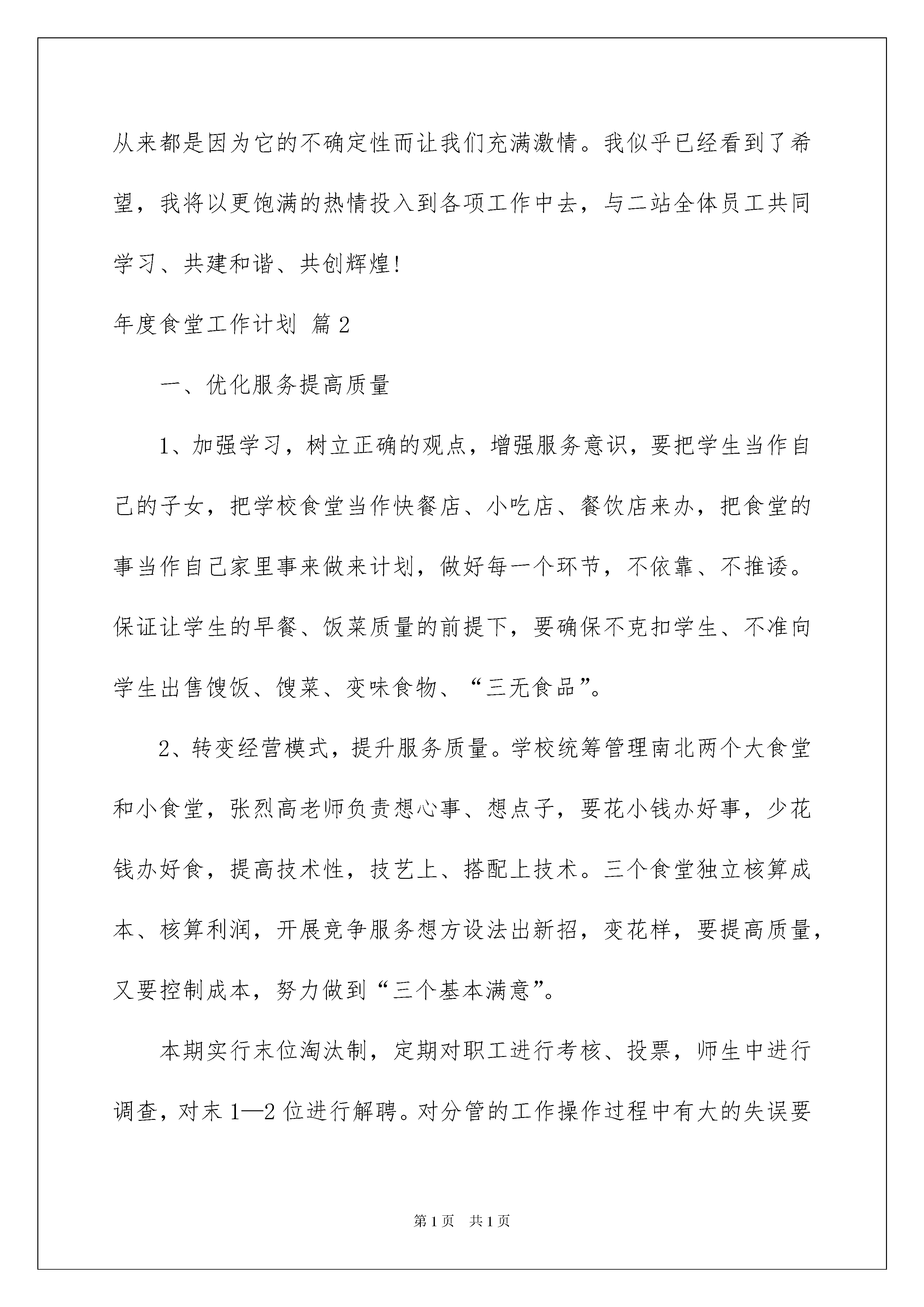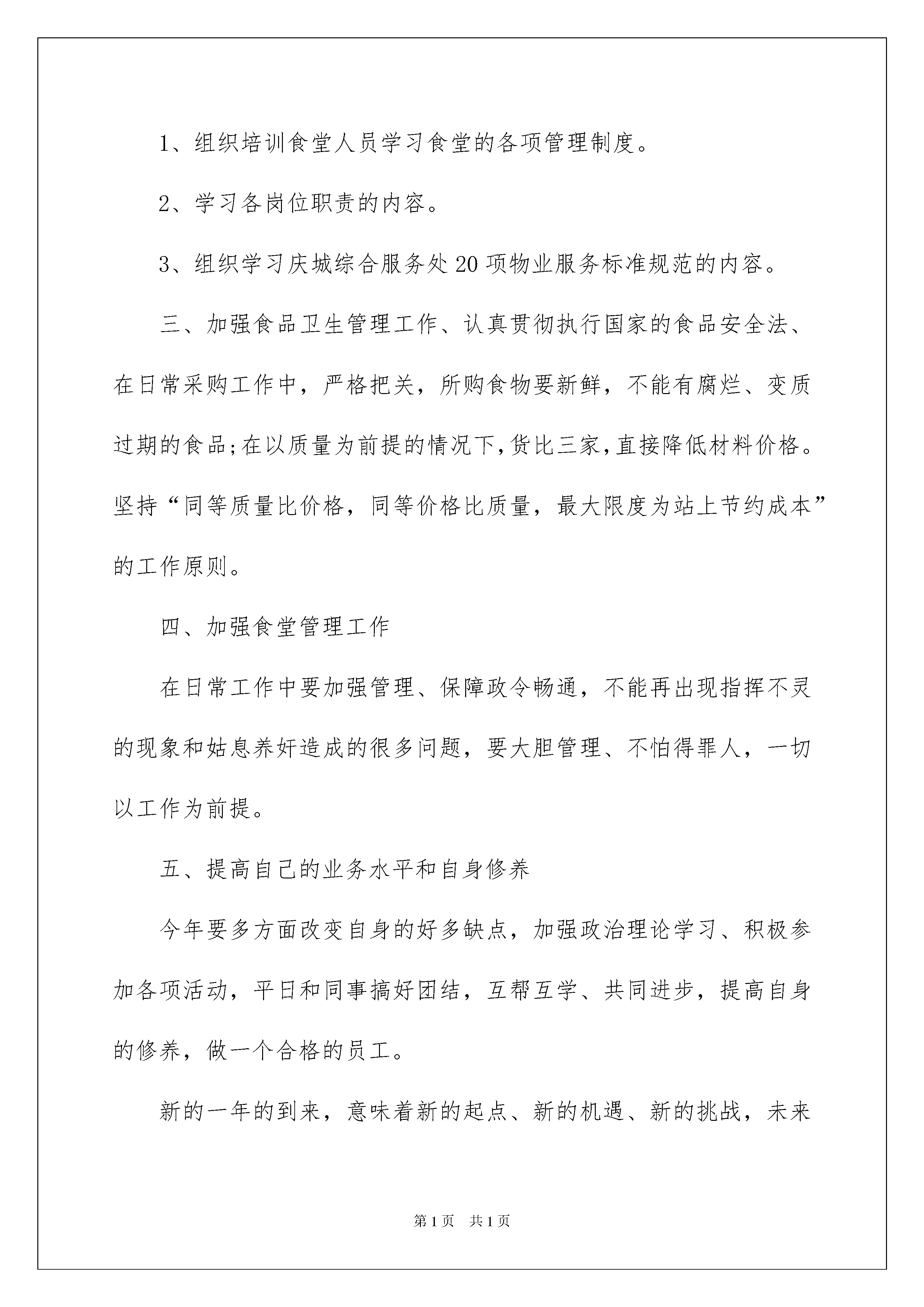 2022年度食堂工作计划七篇年度食堂工作计划日子如同白驹过隙,不经意间,我们的工作又将在忙碌中充实着,在喜悦中收获着,现在的你想必不是在做计划,就是在准备做计划吧。计划怎么写才不会流于形式呢?下面是我为大家整理的年度食堂工作计划7篇,欢迎大家借鉴与参考,希望对大家有所帮助。年度食堂工作计划篇1XX年已经过去,回想过去的一年,有欢笑,有泪水,有收获,也有淡淡的失落。随着春天脚步的来临,我们迎来了新的一年,对新的一年有了一些期待和展望,面向新的一年,怀着感恩的心,我将明年的工作做了以下部署:一、加强政治学习、提高思想觉悟。认真学习处、站20xx年工作会议精神,准确的掌握会议内容、提高思想认识,为自己的工作指明方向,有了明确的方向,才能更好的完成上级领导交给我们的工作任务。二、学习食堂各项工作制度及岗位职责1、组织培训食堂人员学习食堂的各项管理制度。2、学习各岗位职责的内容。3、组织学习庆城综合服务处20项物业服务标准规范的内容。三、加强食品卫生管理工作、认真贯彻执行国家的食品安全法、在日常采购工作中,严格把关,所购食物要新鲜,不能有腐烂、变质过期的食品;在以质量为前提的情况下,货比三家,直接降低材料价格。坚持“同等质量比价格,同等价格比质量,最大限度为站上节约成本”的工作原则。四、加强食堂管理工作在日常工作中要加强管理、保障政令畅通,不能再出现指挥不灵的现象和姑息养奸造成的很多问题,要大胆管理、不怕得罪人,一切以工作为前提。五、提高自己的业务水平和自身修养今年要多方面改变自身的好多缺点,加强政治理论学习、积极参加各项活动,平日和同事搞好团结,互帮互学、共同进步,提高自身的修养,做一个合格的员工。新的一年的到来,意味着新的起点、新的机遇、新的挑战,未来从来都是因为它的不确定性而让我们充满激情。我似乎已经看到了希望,我将以更饱满的热情投入到各项工作中去,与二站全体员工共同学习、共建和谐、共创辉煌!年度食堂工作计划篇2一、优化服务提高质量1、加强学习,树立正确的观点,增强服务意识,要把学生当作自己的子女,把学校食堂当作快餐店、小吃店、餐饮店来办,把食堂的事当作自己家里事来做来计划,做好每一个环节,不依靠、不推诿。保证让学生的早餐、饭菜质量的前提下,要确保不克扣学生、不准向学生出售馊饭、馊菜、变味食物、“三无食品”。2、转变经营模式,提升服务质量。学校统筹管理南北两个大食堂和小食堂,张烈高老师负责想心事、想点子,要花小钱办好事,少花钱办好食,提高技术性,技艺上、搭配上技术。三个食堂独立核算成本、核算利润,开展竞争服务想方设法出新招,变花样,要提高质量,又要控制成本,努力做到“三个基本满意”。本期实行末位淘汰制,定期对职工进行考核、投票,师生中进行调查,对末1—2位进行解聘。对分管的工作操作过程中有大的失误要提出批评和扣发工资,多次失职失误的解聘,食堂设意见箱,广泛听取师生反应,及时反馈信息,及时纠正提高服务质量,食堂内部要记载考勤,迟到、早退扣工资,请事假请人顶替,长假由学校重新安排人员,记载人员分工情况,要能查每天煮饭,做白案、炒粉、炒菜、洗切菜等主要工序的分工情况,对照检查信息查到人,发现一次扣工资5—10元。二、加强管理,完善制度1、加强领导,健全规章制度①学生就餐大食堂早餐按人数分发到各班,由各班老师、学生代表领到教室分发就餐,各班早餐款与食堂结算,中晚餐到大食堂刷卡就餐,要求学生自己带碗筷。②在小食堂就餐的同学作好登记造册工作,按上报人数核实就餐人数,全额收取资金,确保按时交纳,不流失一分钱不漏交一个人。③严格把好刷卡关,不讲人情,不循私情,坚决杜绝吃饭不出钱,不刷卡行为,若发现一例一次将从工资中加倍扣还,不改者全校通报,一票否决。④食堂内部管理人员,含微机、锅炉、记帐、扫地、售票、财会原则上不在食堂吃免费餐,除补课有老师就餐或特殊情况一般吃饭要刷卡(食堂内因工作原因的除外)。⑤锅炉房供应开、热水一律要凭票供水,一律要用开水瓶打开水,提桶、水桶一律不供。如发现管理人员不履行职责,不坚持原则,轻者提出批评直至扣工资。⑥微机管理人员要热情服务广大师生。保证学生充值款全额到位,确保帐帐相符,帐机相符(充值消费余额)微机员、锅炉工要服务于厨房,为其提供一流服务。⑦清洁工必须保证大厅及周边卫生小区内的卫生及时打扫,每天做到“三扫”到位,有班上课,有学生就餐就必须打扫。⑧小食堂物品的采购必须由库房调出,需要购置须经学校批准,统一购置。常用蔬菜可由大厨房一同采购,小食堂记帐,特殊菜可一同采购或轮流采购,单独核算。⑨所有物品的采购必须严格把好采购关,专人负责,索证检查,定点采购,确保品名、
